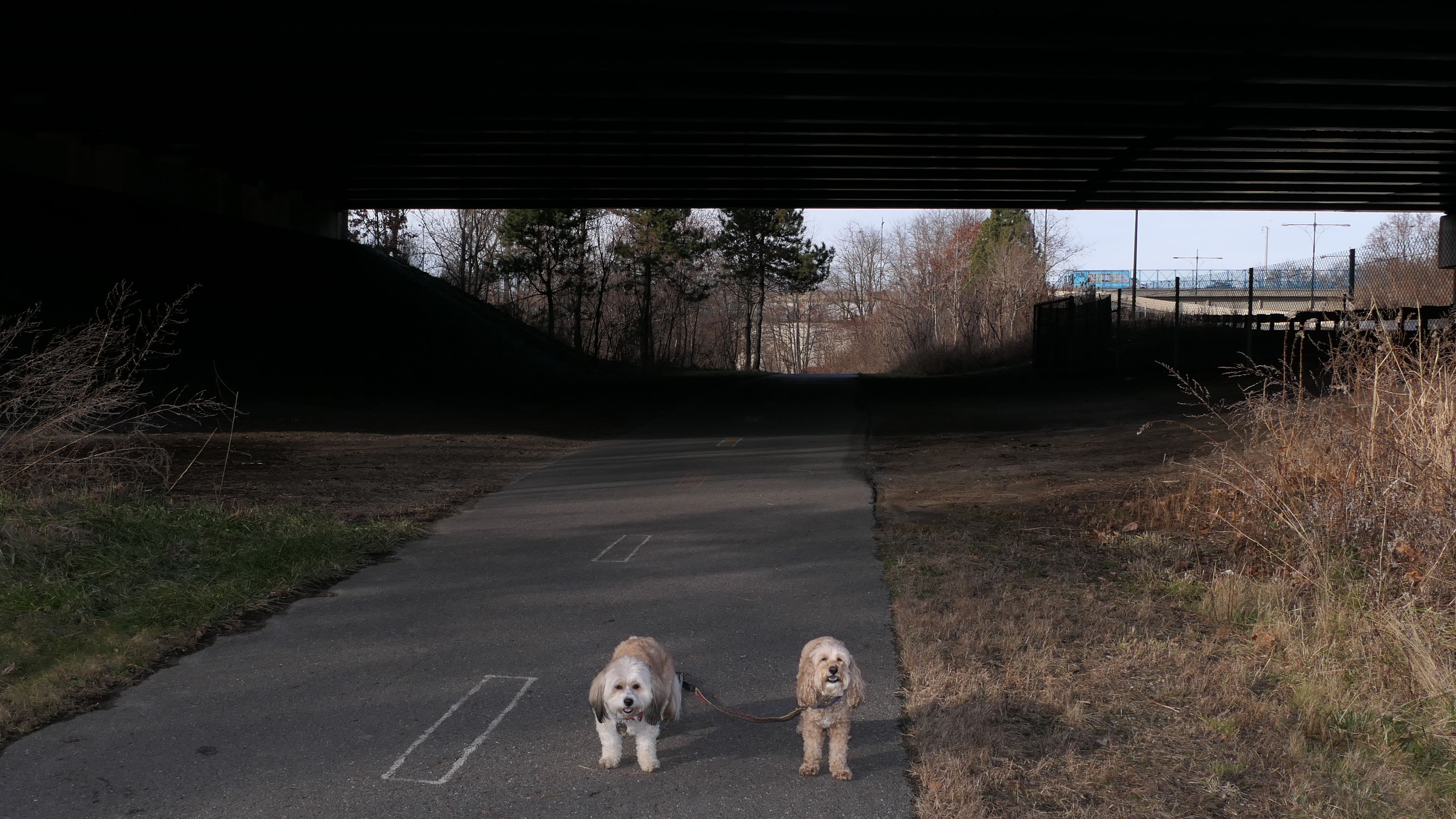We came here to escape the fog in the Connecticut River Valley. It was actually 60 degrees when we started our walk. We started at the trailhead on North Main Street, which is the south end of this section of the trail. This section of bike trail is not very scenic. It is situated mostly between railroad tracks, the Route 146 Expressway and the Blackstone River. This section passes under a number of different overpasses, before continuing into Worcester. We continuted into Worcester to where we left off a year and half ago, a total of two and a half miles, before turning around and heading back.
