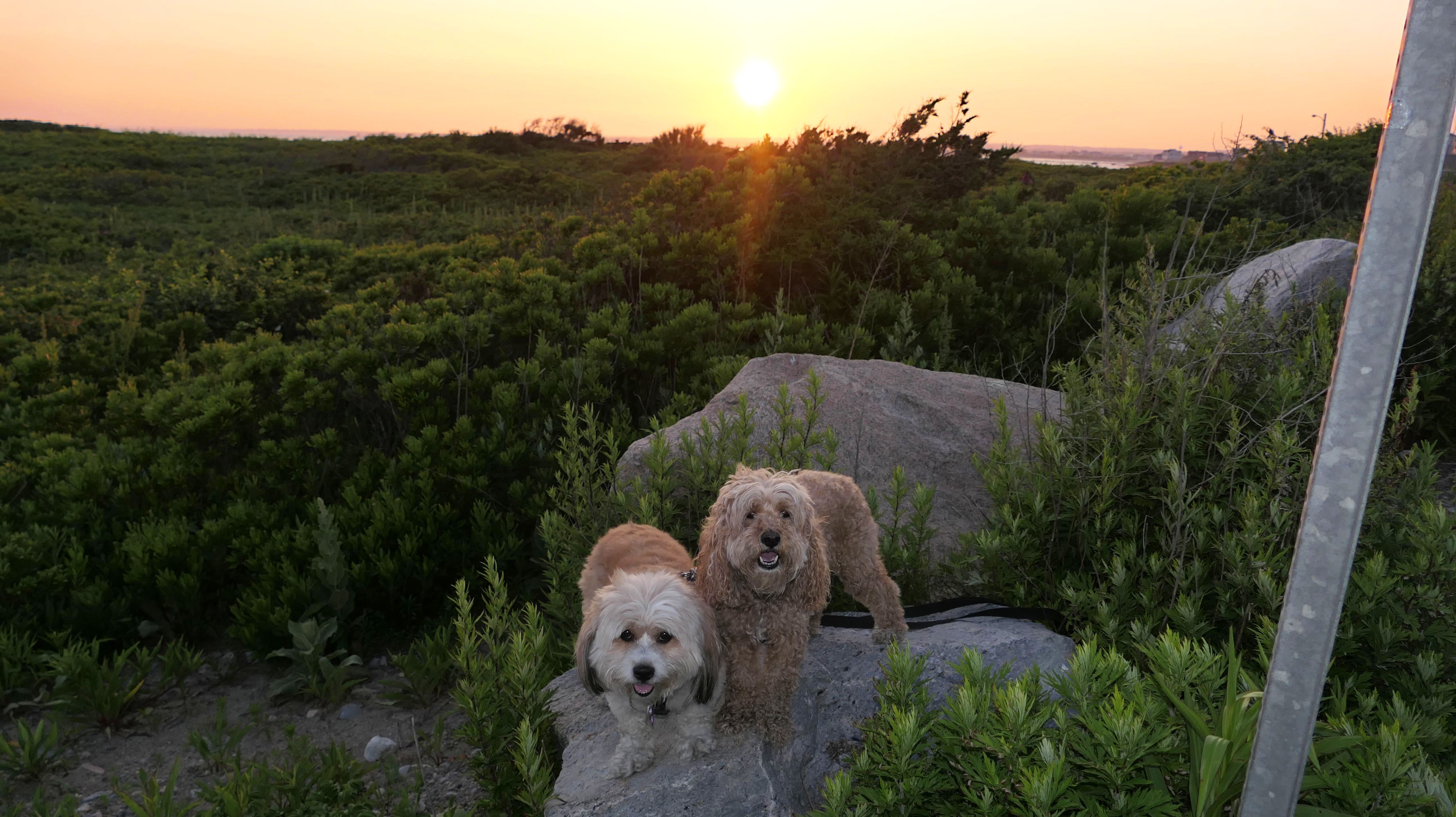 We parked near the intersection of Ocean Avenue and Point Judith Road, and walked to the access point on Major Arnold Road. We walked along the rocky shoreline until we hit the beach. Despite being a beautiful evening, the beach was practically deserted. Mandy and Lexi got to run around a bit.