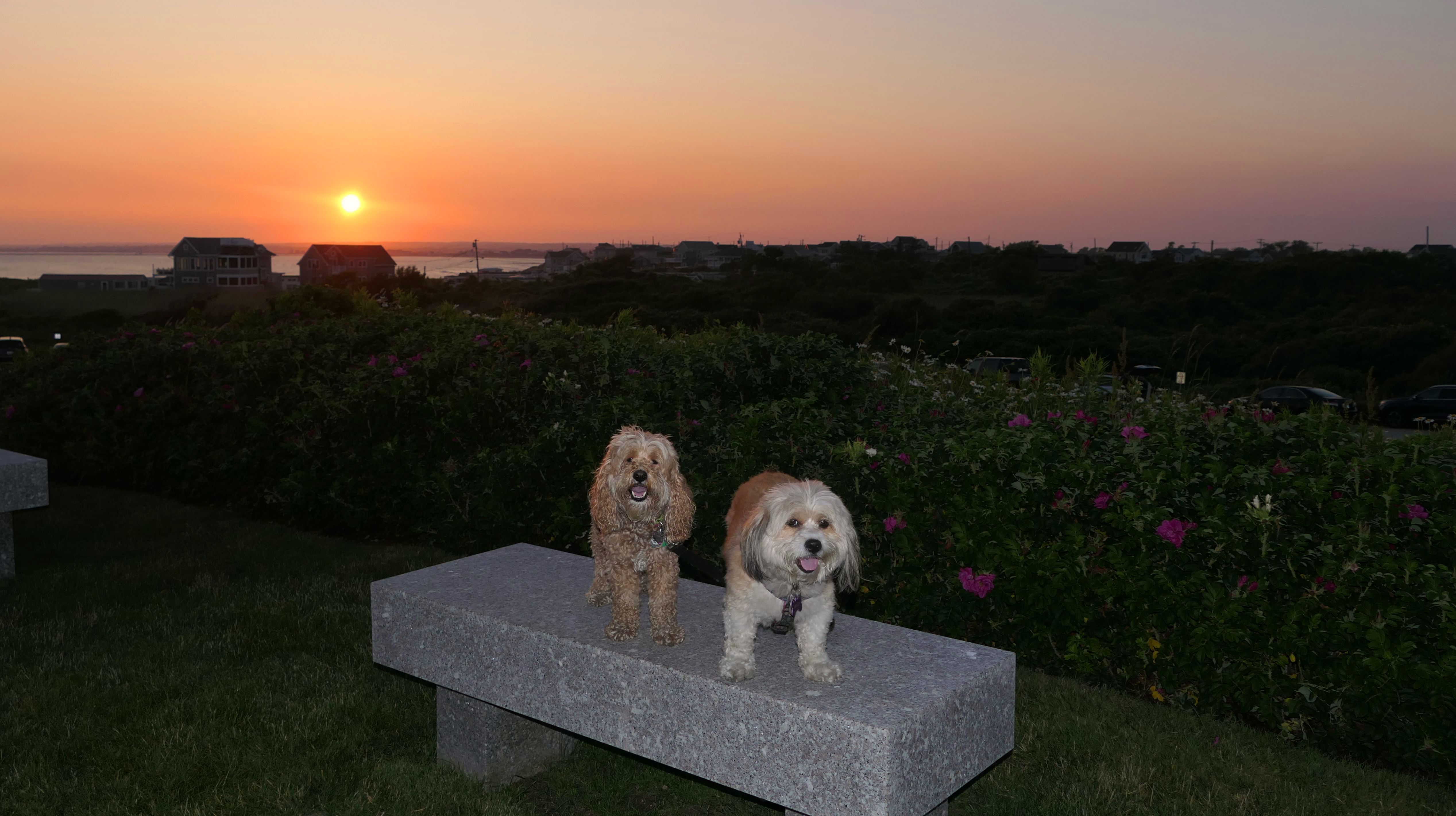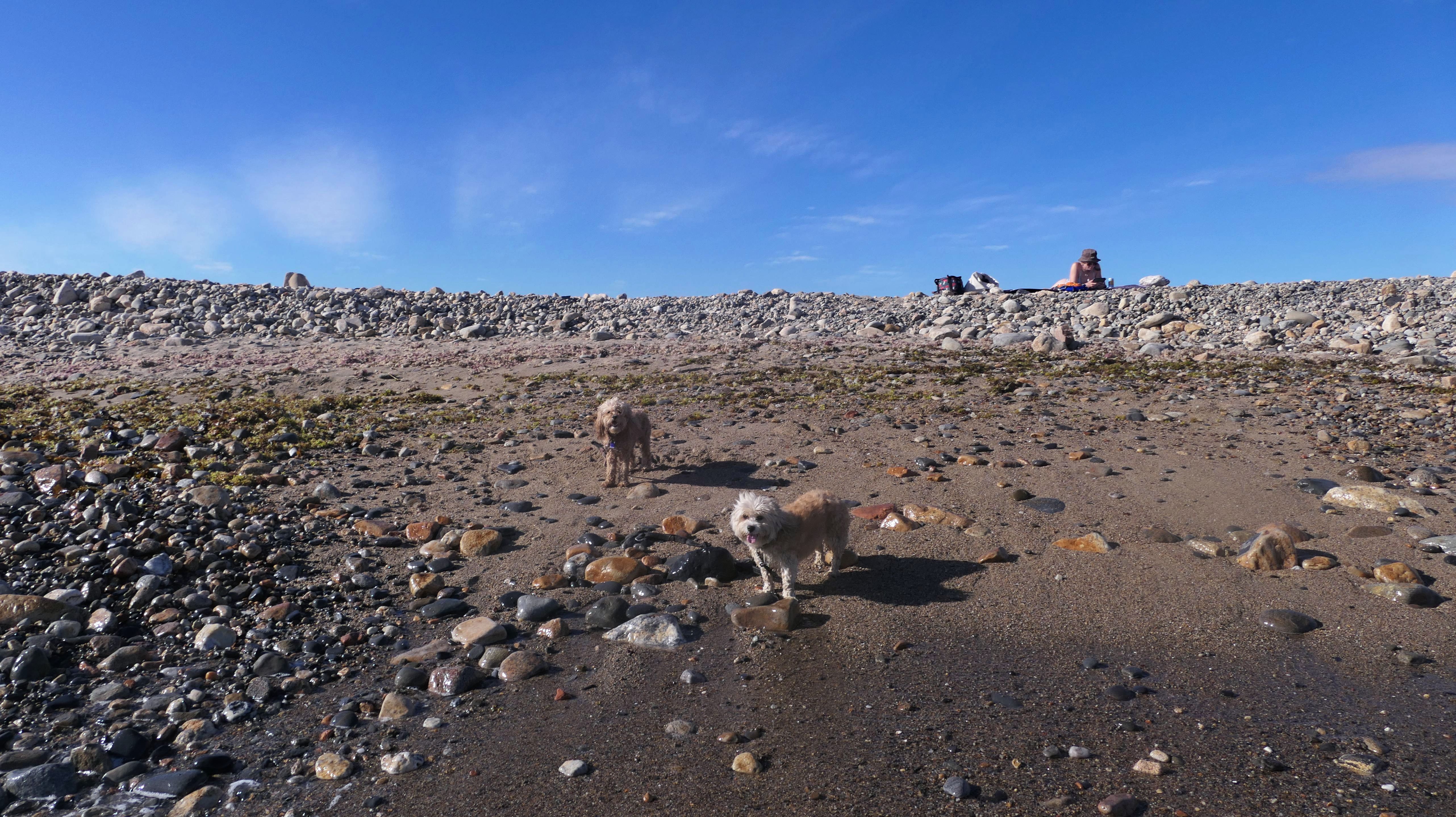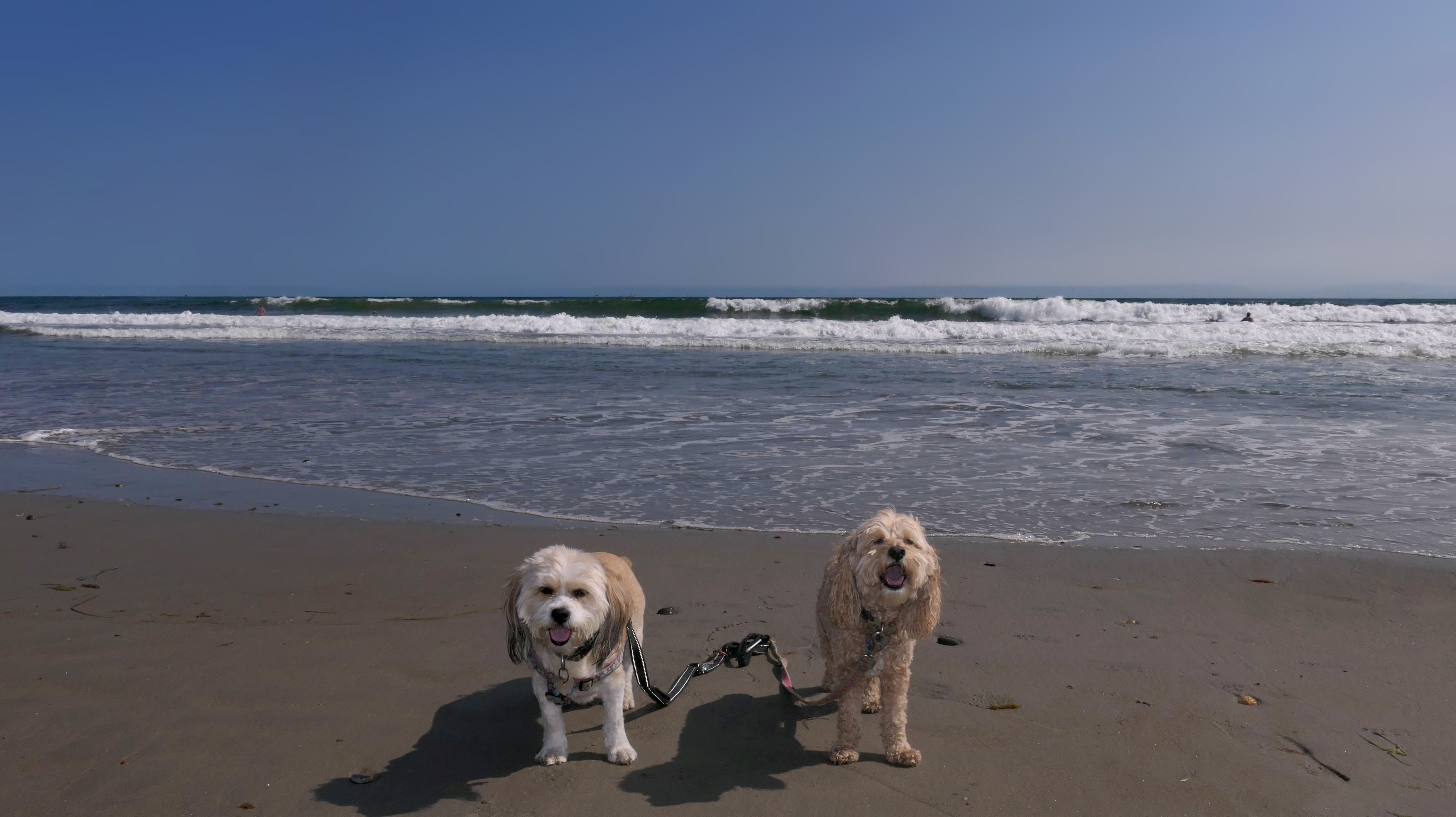 This is one of our favorite spots in the area. For this visit, there was wildfire smoke in the upper atmosphere that really dimmed the sunlight. We walked on the jetty a bit, the dogs cooled off, and then they played on the beach. We also took a walk to Rose Nulman Park and back.