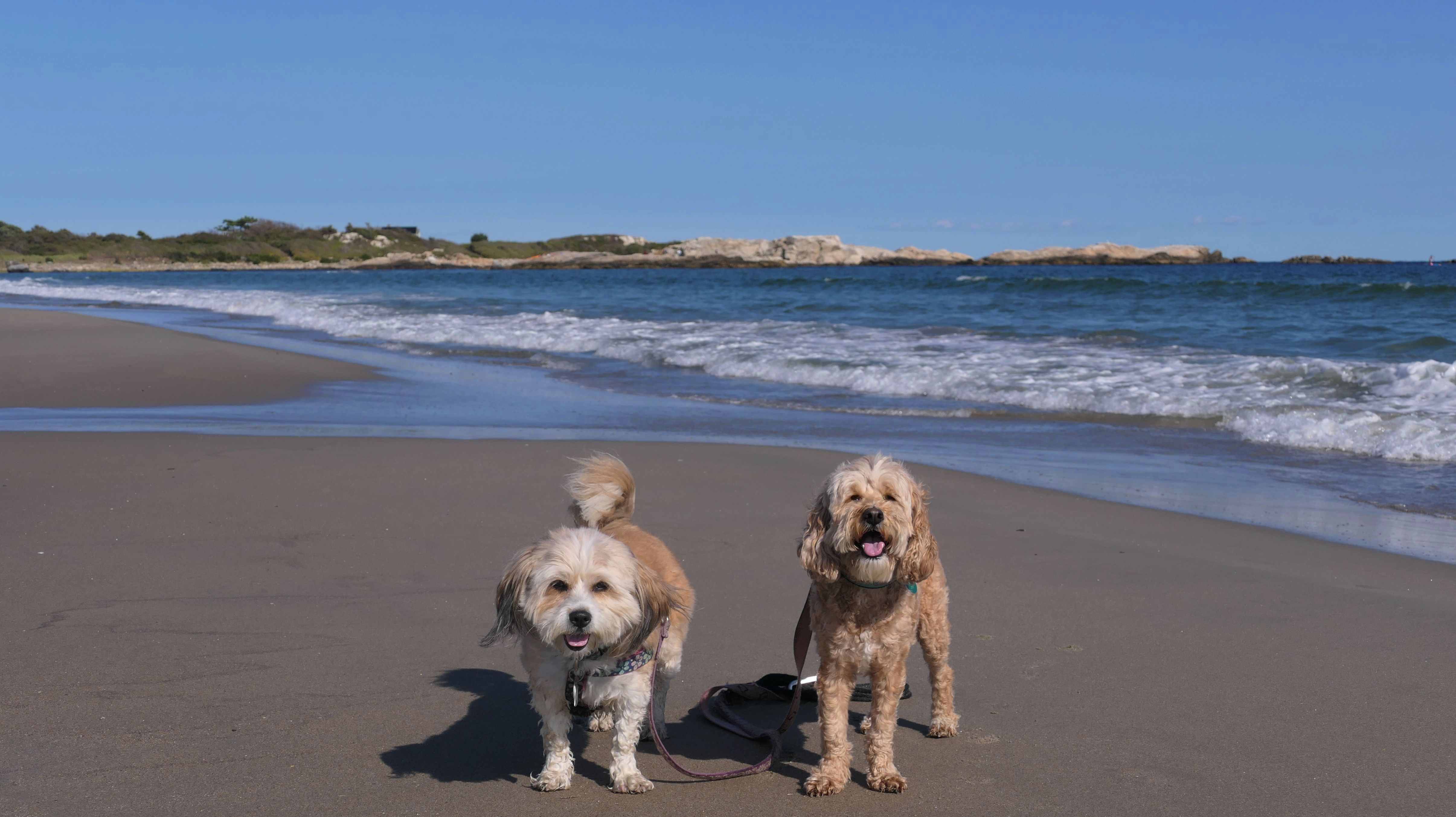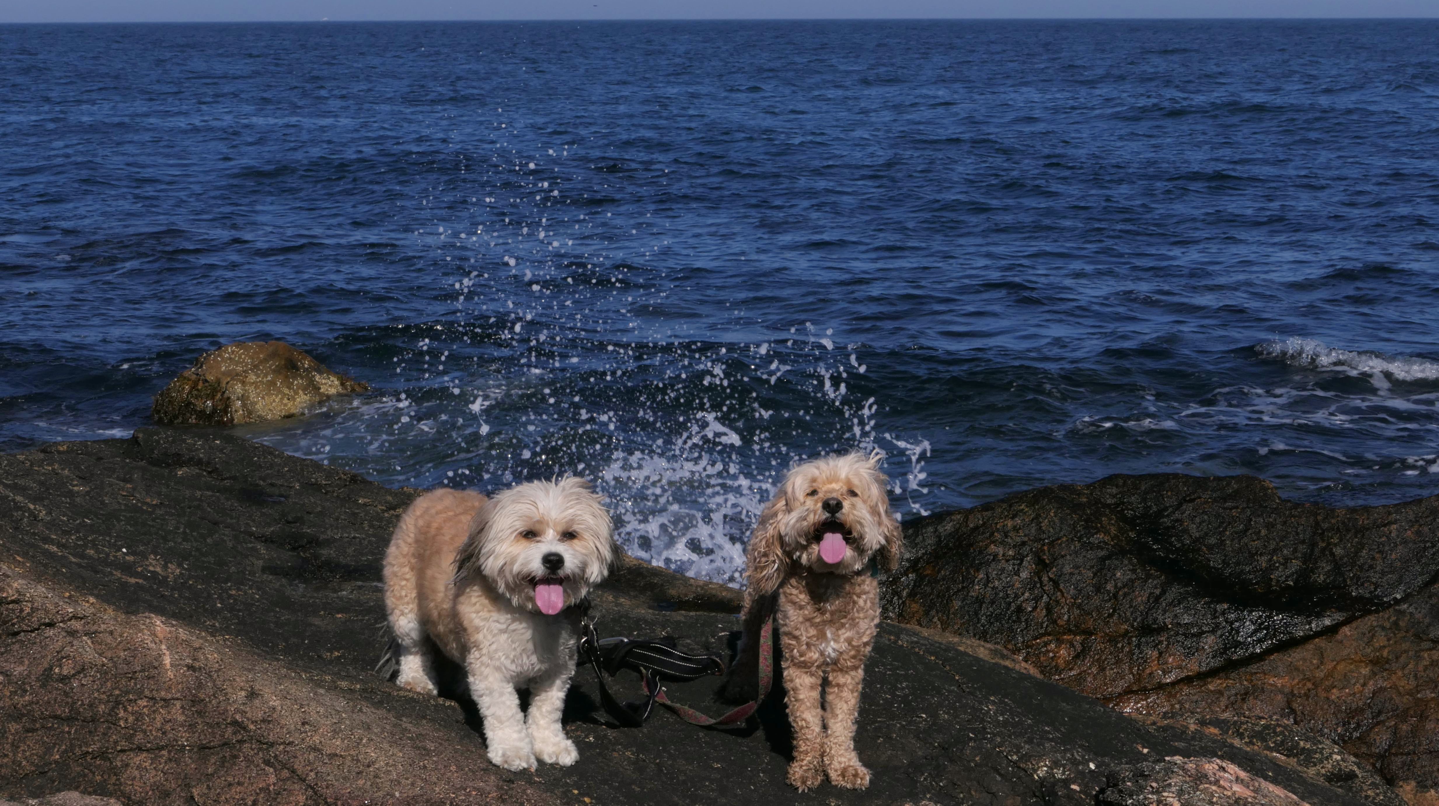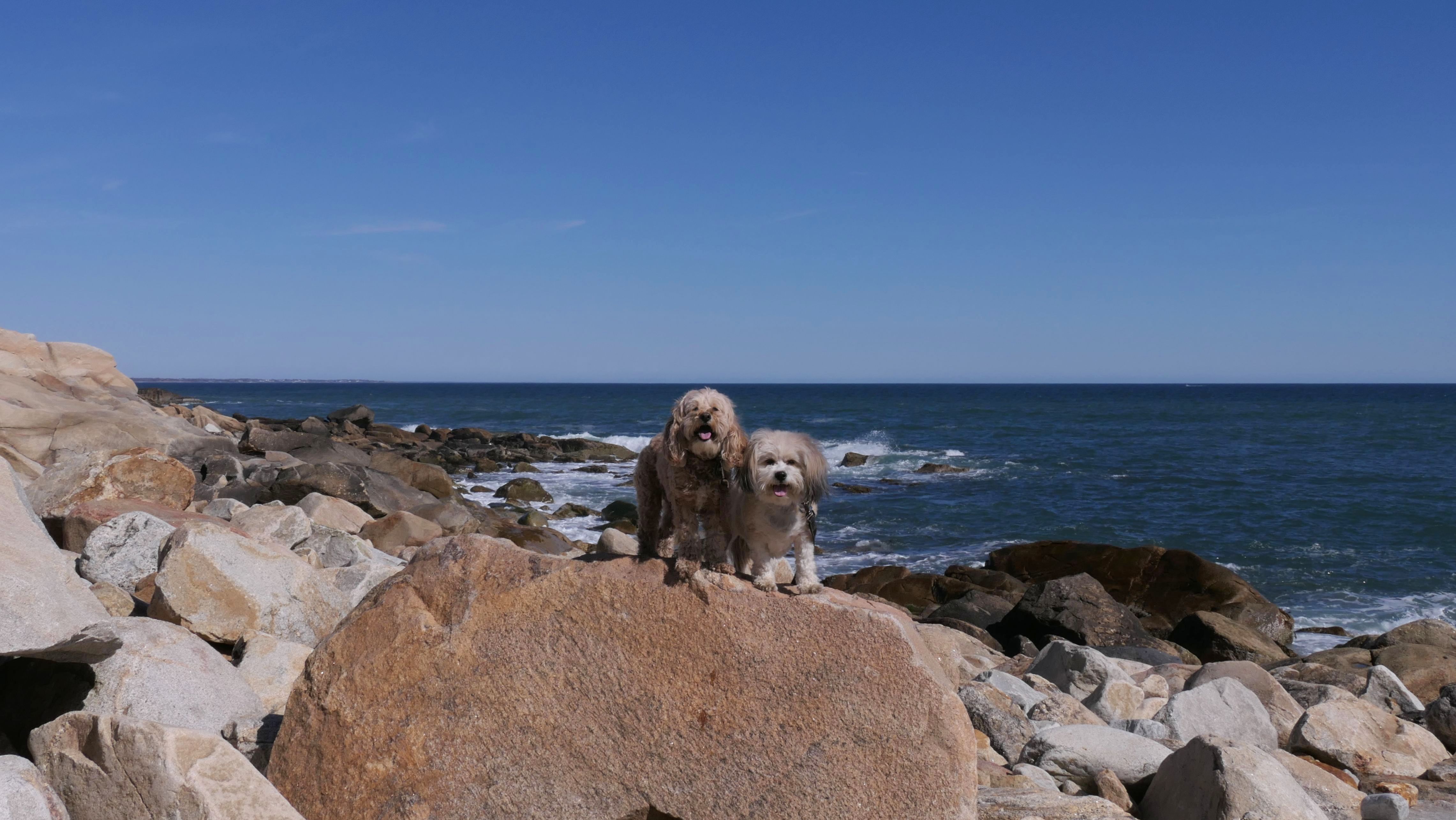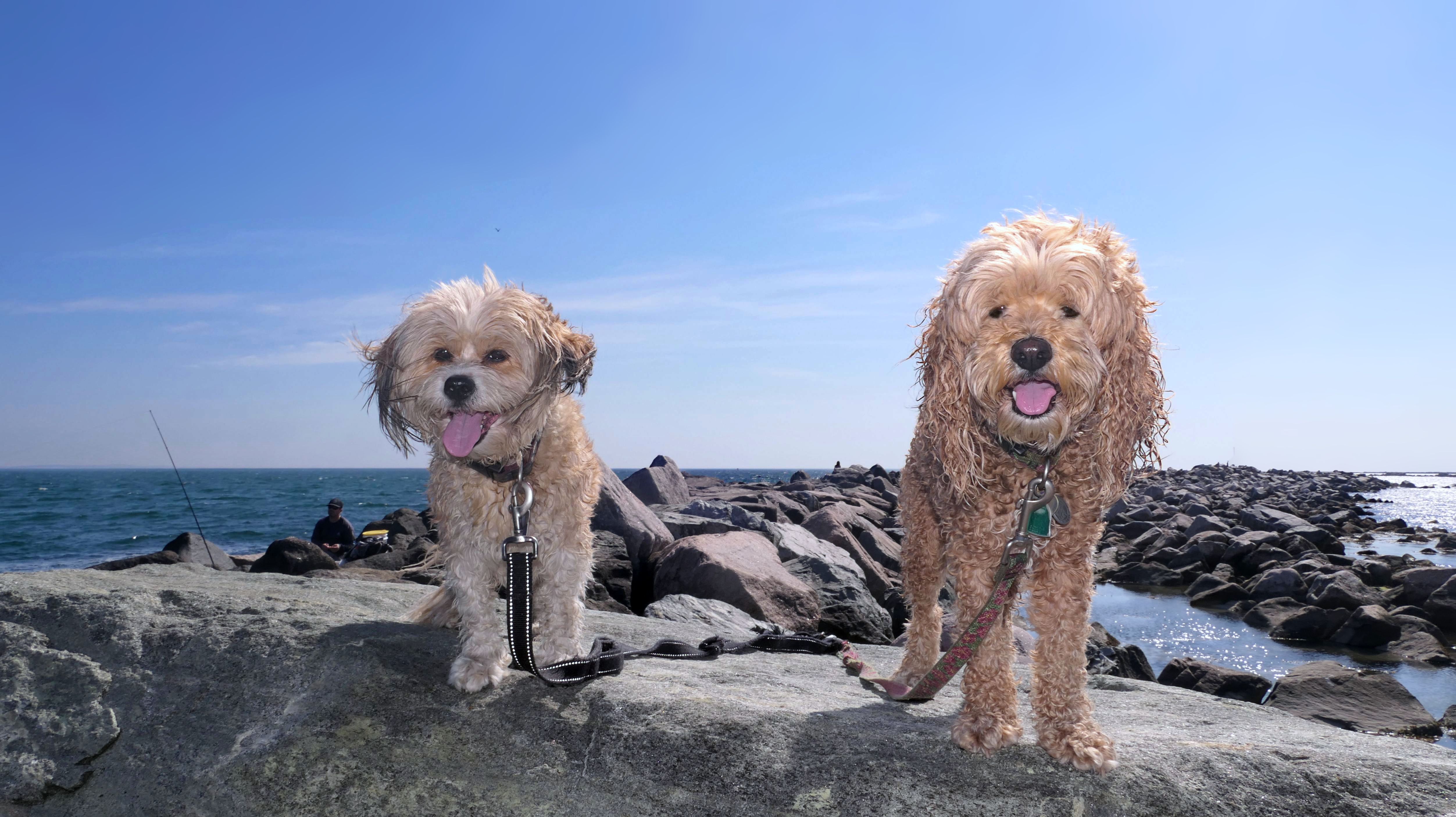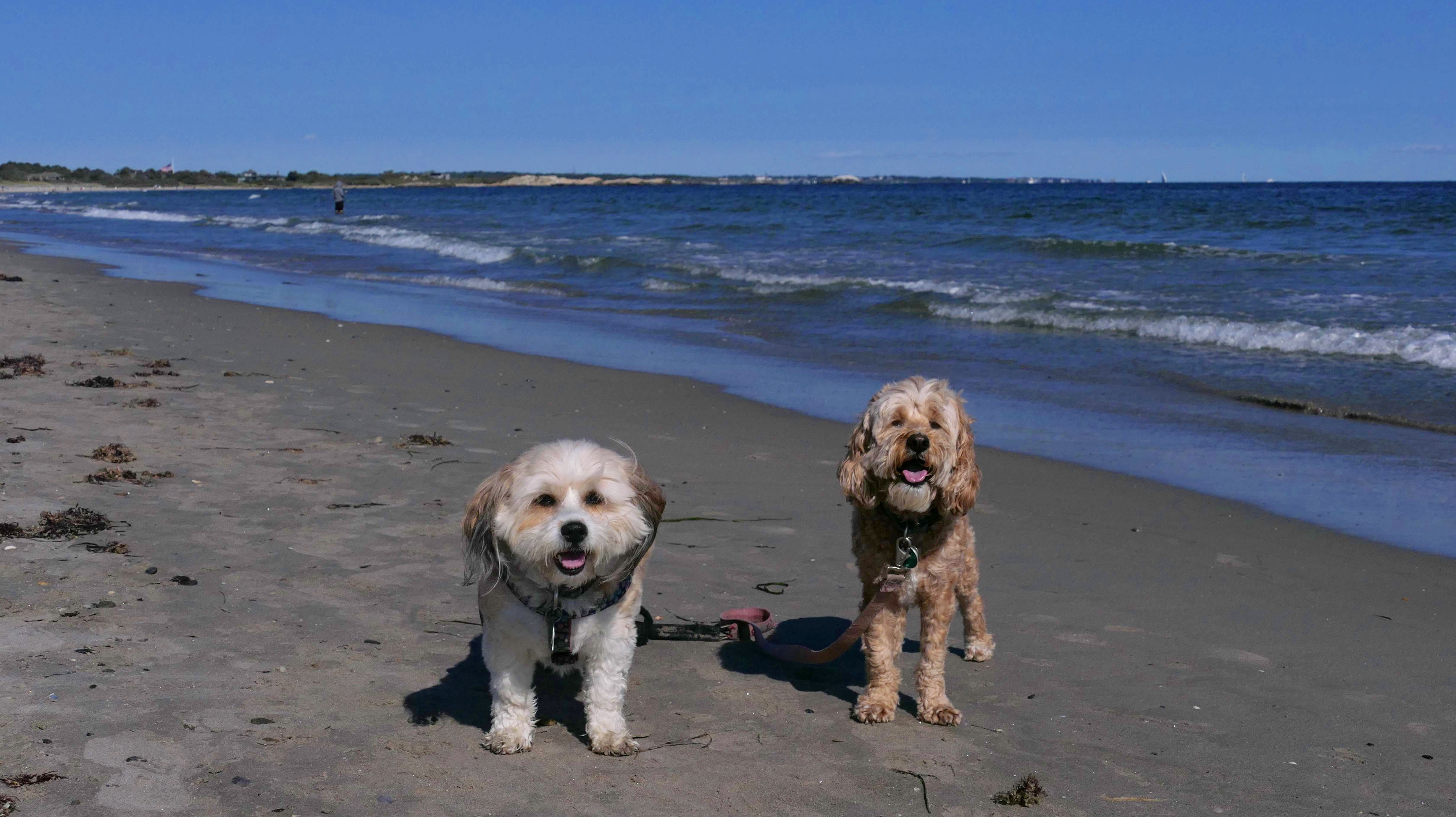 Due to the long weekend, we were let out of work early. I quickly decided to come to this beach, since we had only walked this stretch of sand once before. We started at Roger Wheeler State Beach and walked to Camp Cronin Beach and back. There's nothing new or noteworthy here. It's pretty much the same as last time we were here, except it was lower tide and we didn't have to climb over any large rocks. Waves are mild here, as breakwaters protect this area. It was cooler than it has been, but the dogs still went into the water toward the end of our walk.