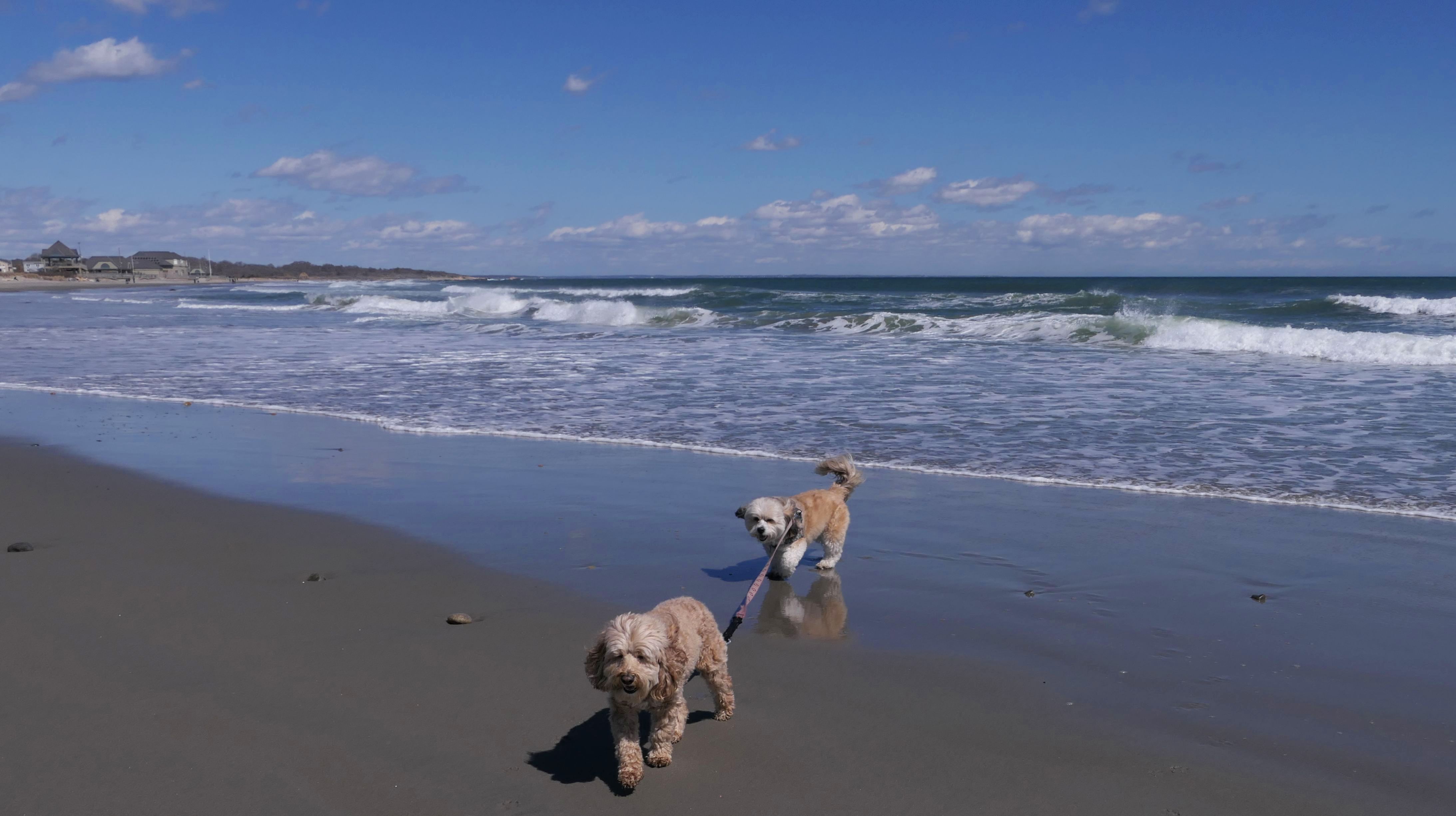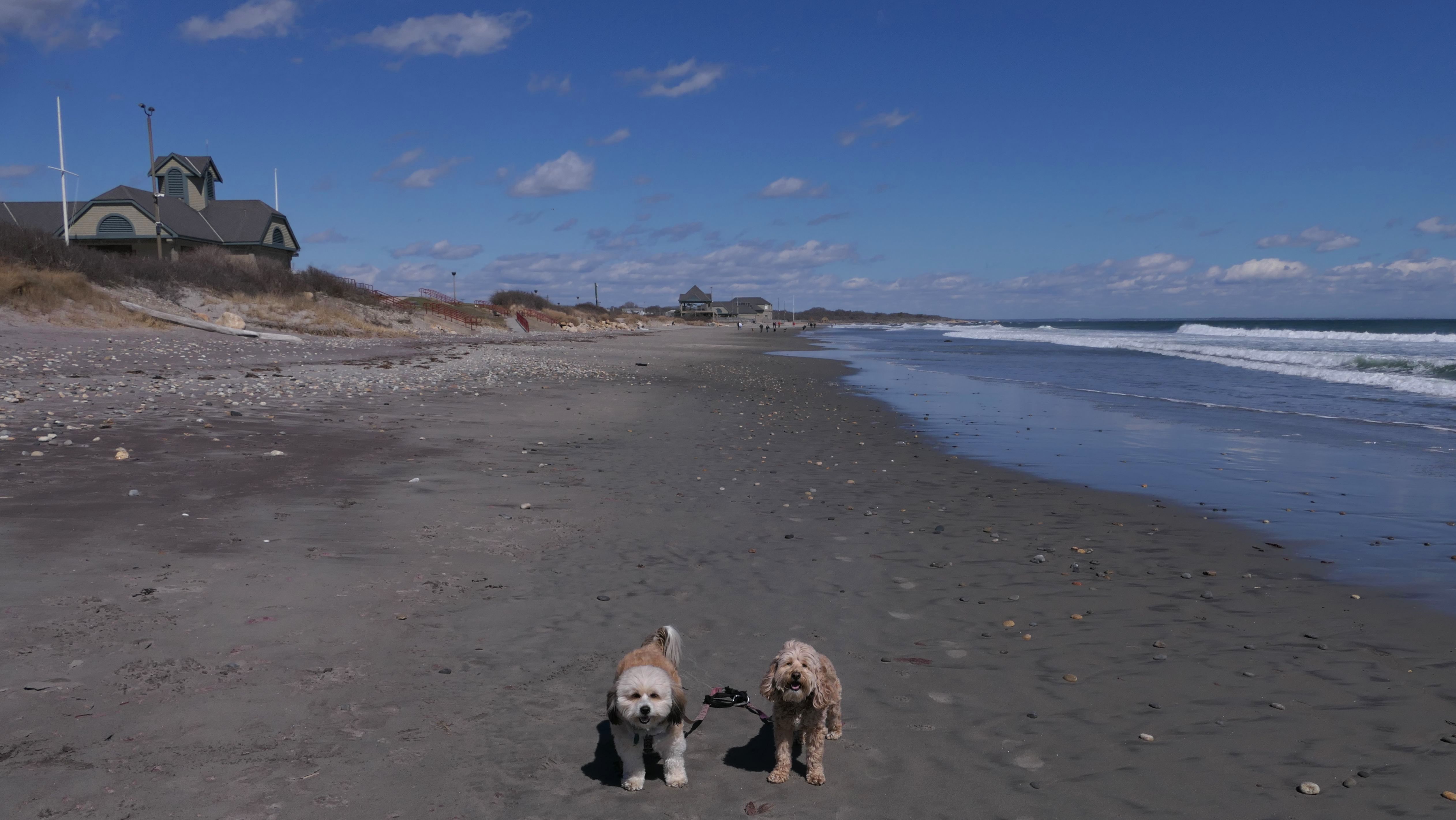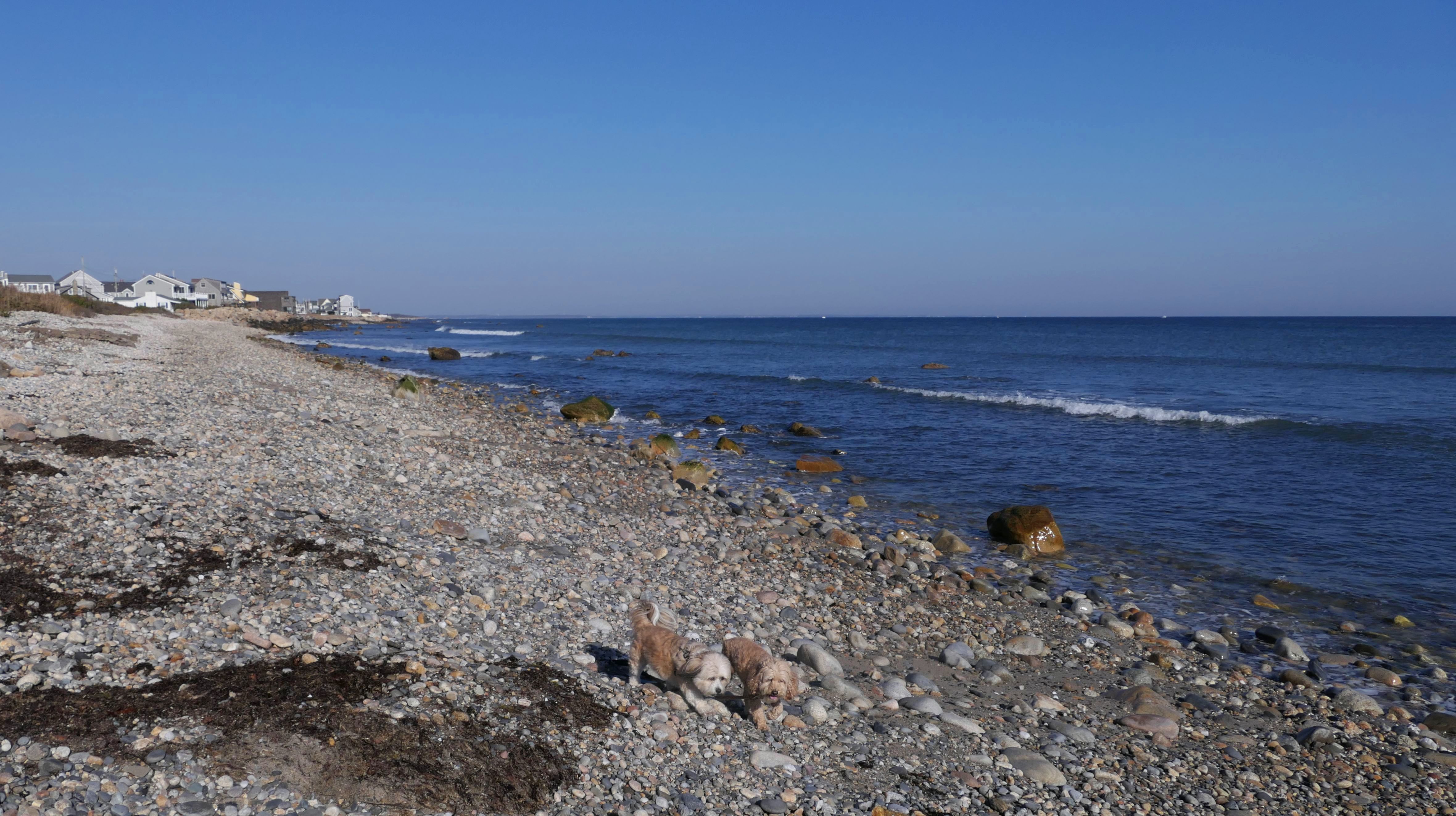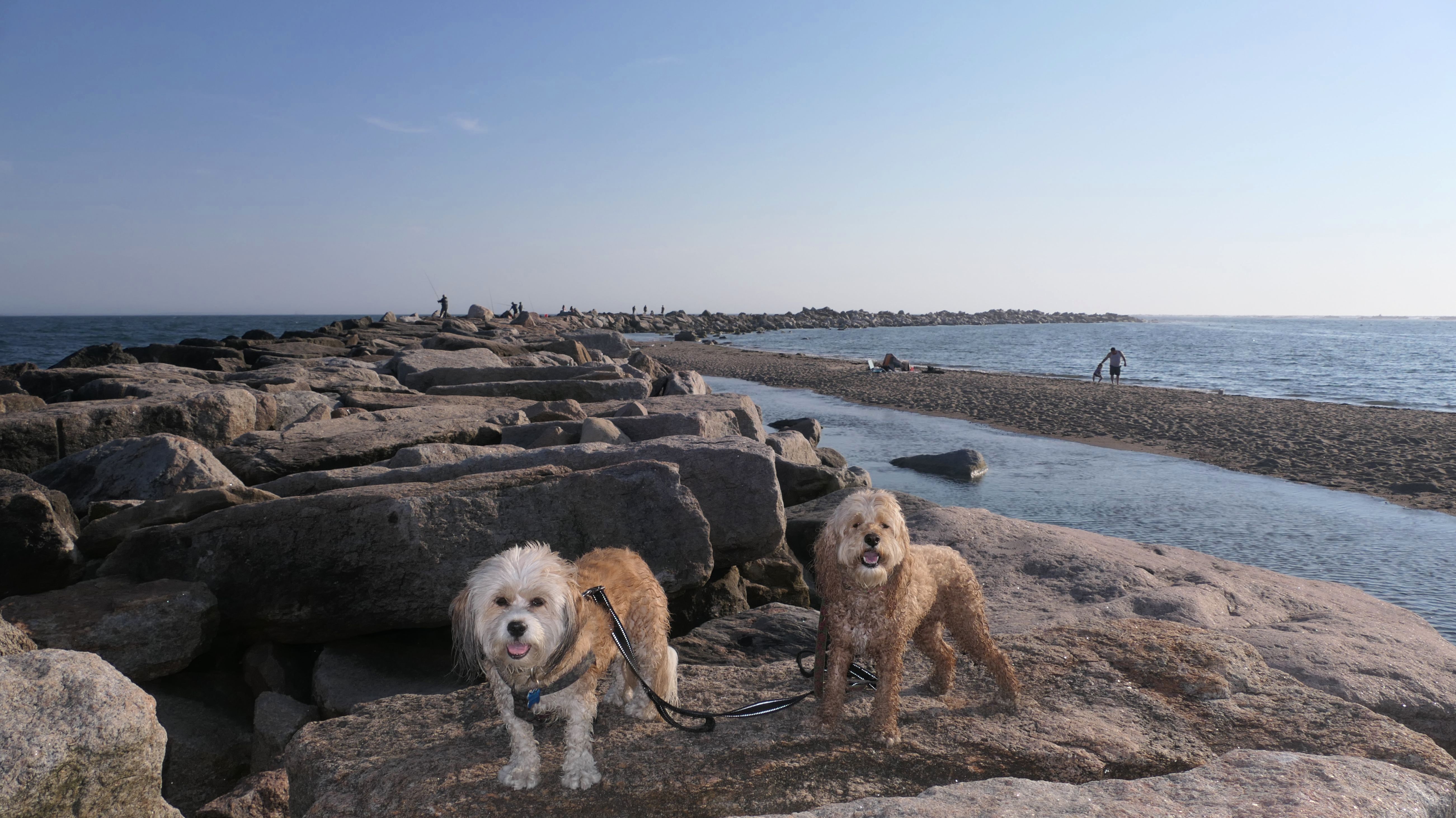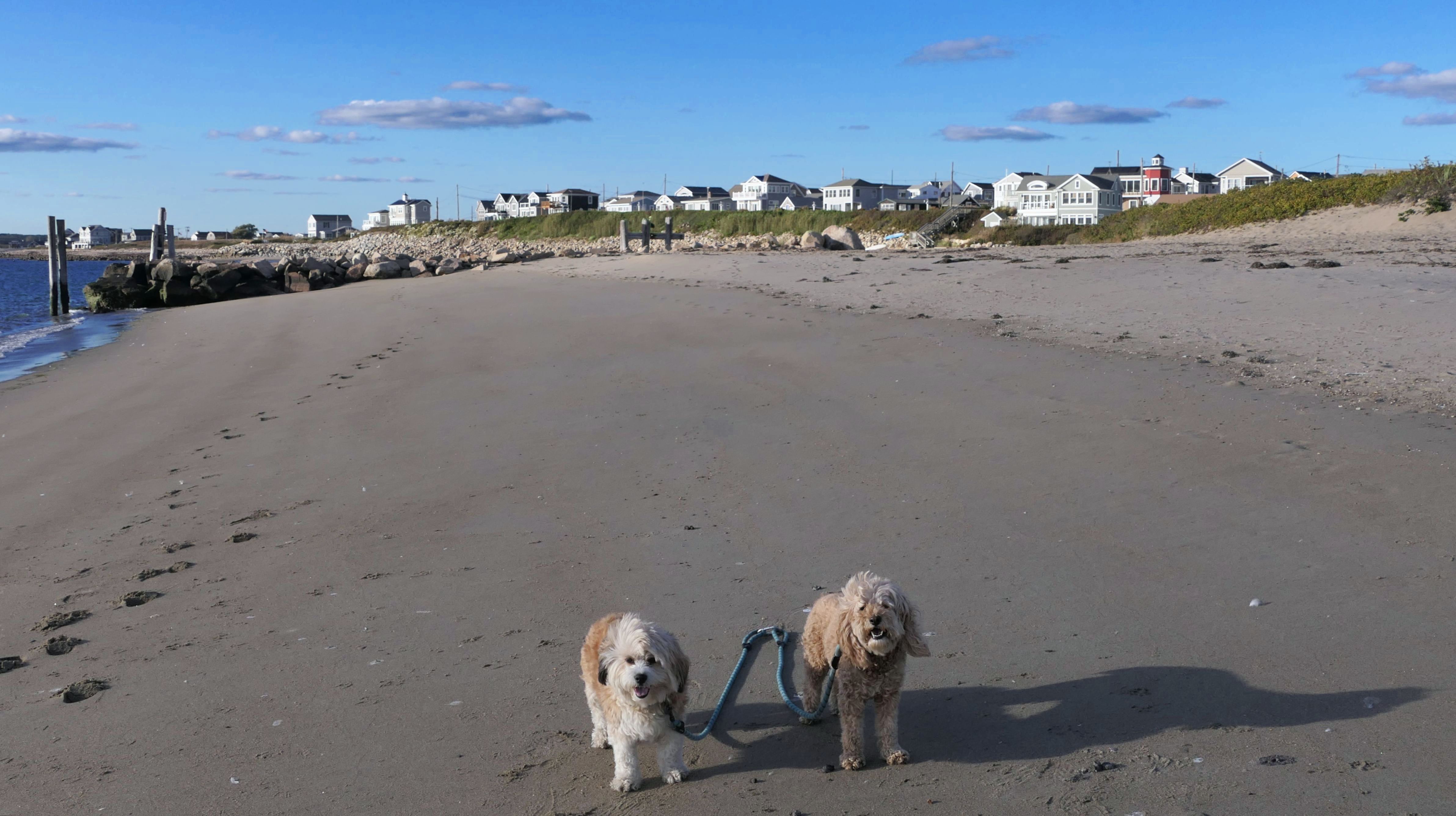 These are State Beaches in the Galilee section of Narragansett, right next to the Block Island Ferry. Dogs are allowed on Rhode Island State Beaches in the off-season, and even though it's 70 degrees in November, it's still the off-season. These beaches are connected, at least in the off-season. I think there might be a private beach in between that's roped off during the summer. I'm not really sure. These are okay beaches, but I think the Town Beach is nicer.