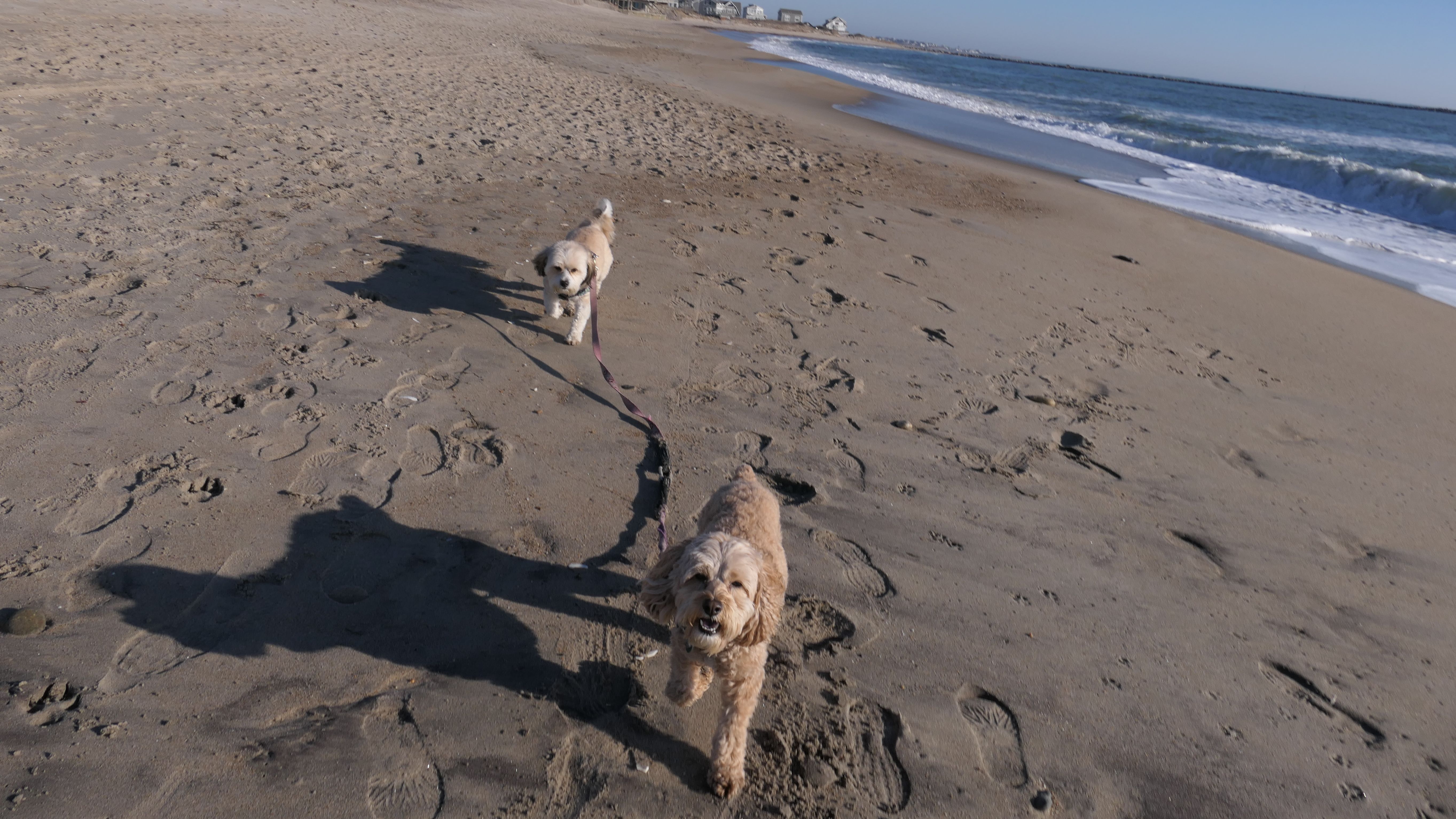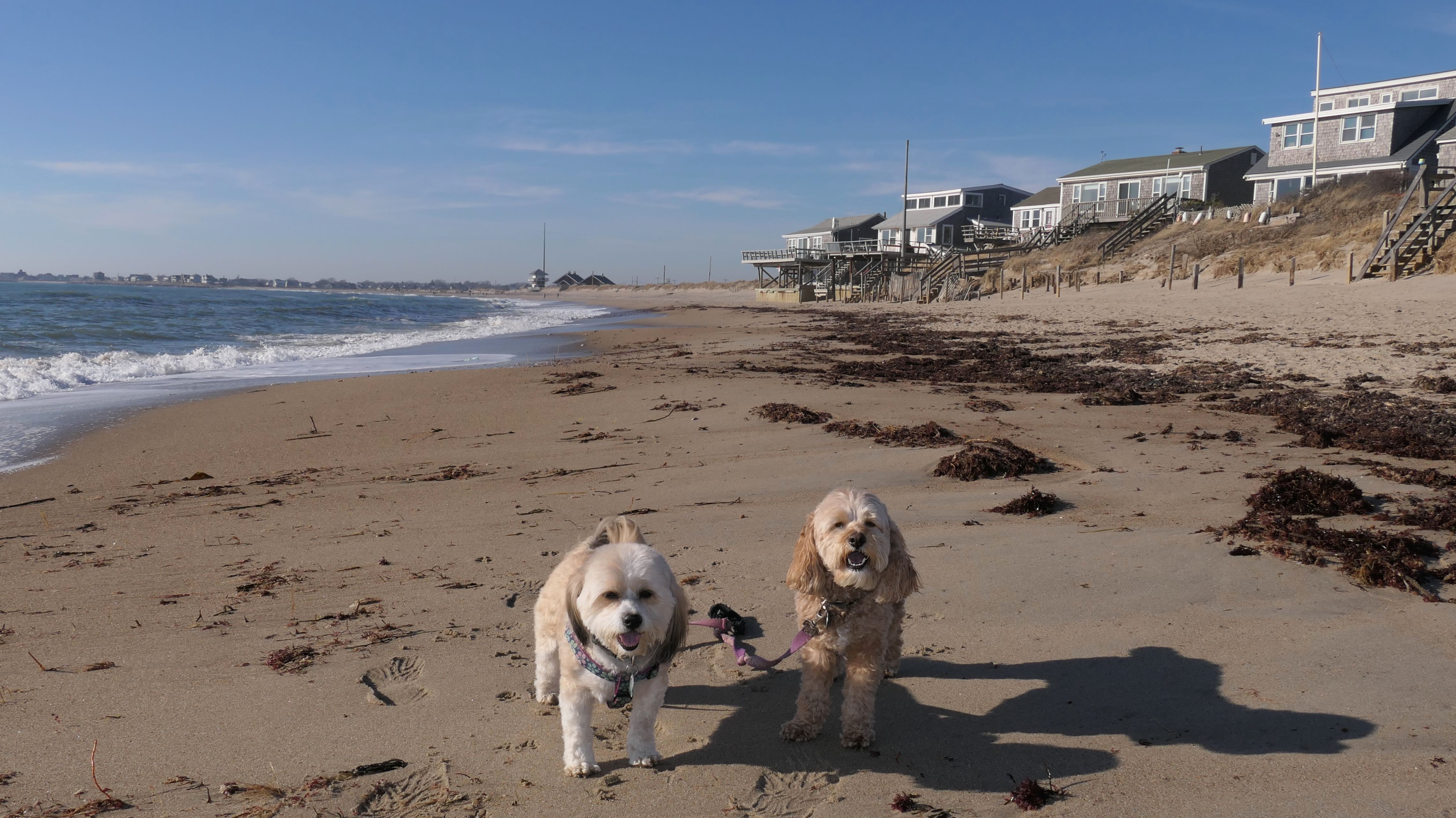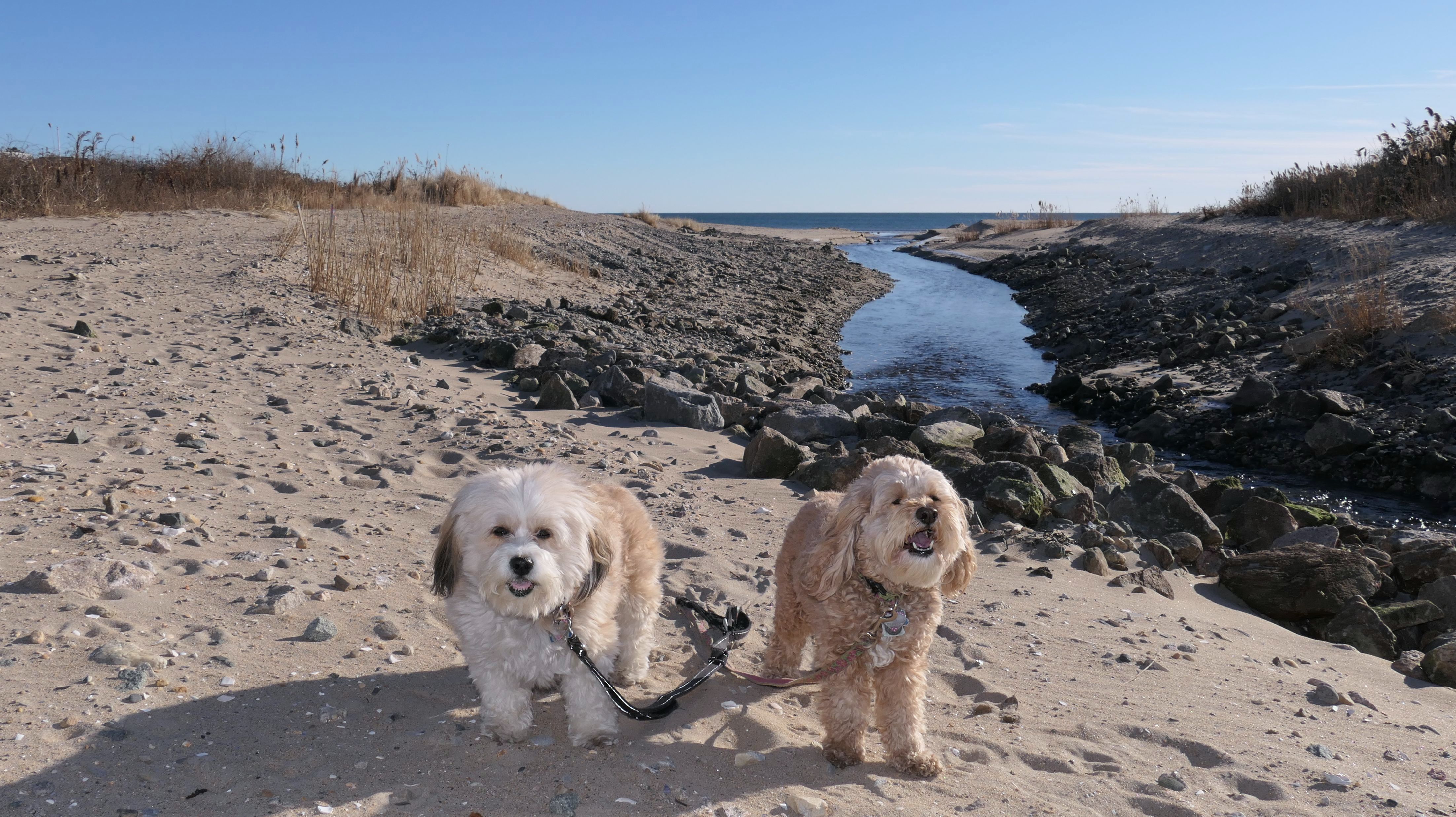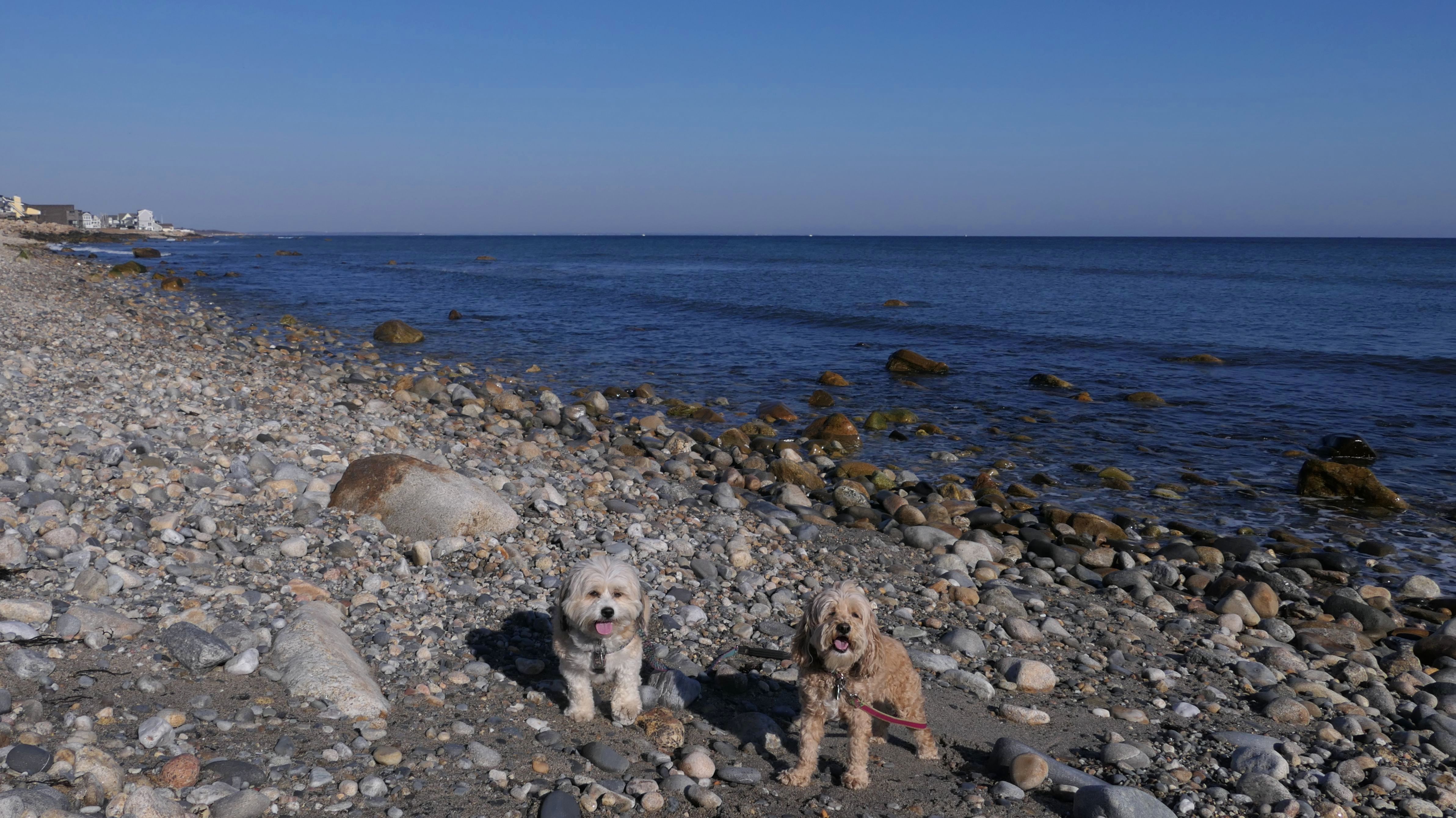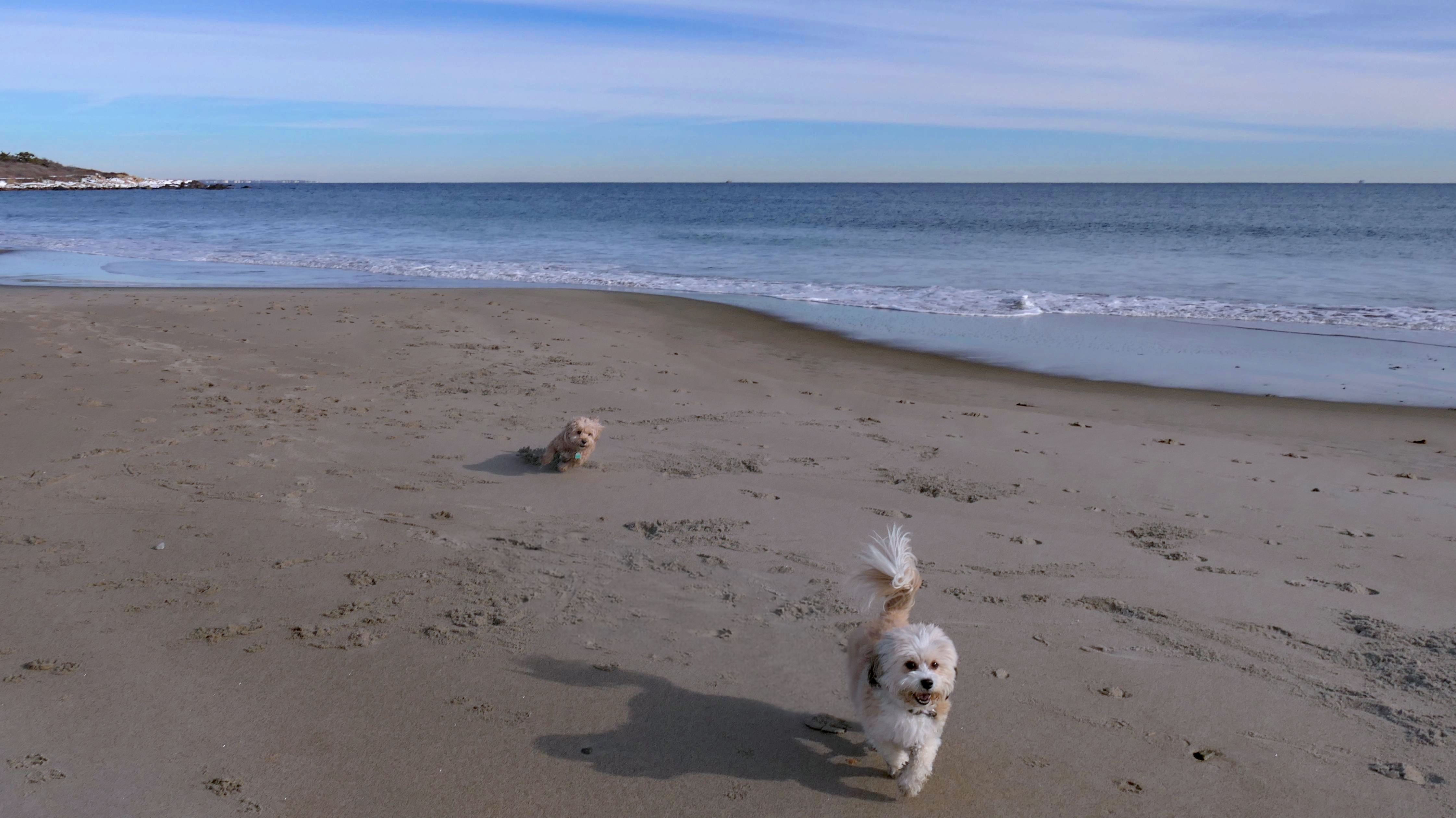 These are State Beaches in the Galilee section of Narragansett, right next to the Block Island Ferry. Dogs are allowed on Rhode Island State Beaches in the off-season, and even though it's 70 degrees in November, it's still the off-season. These beaches are connected, at least in the off-season. I think there might be a private beach in between that's roped off during the summer. I'm not really sure. These are okay beaches, but I think the Town Beach is nicer.