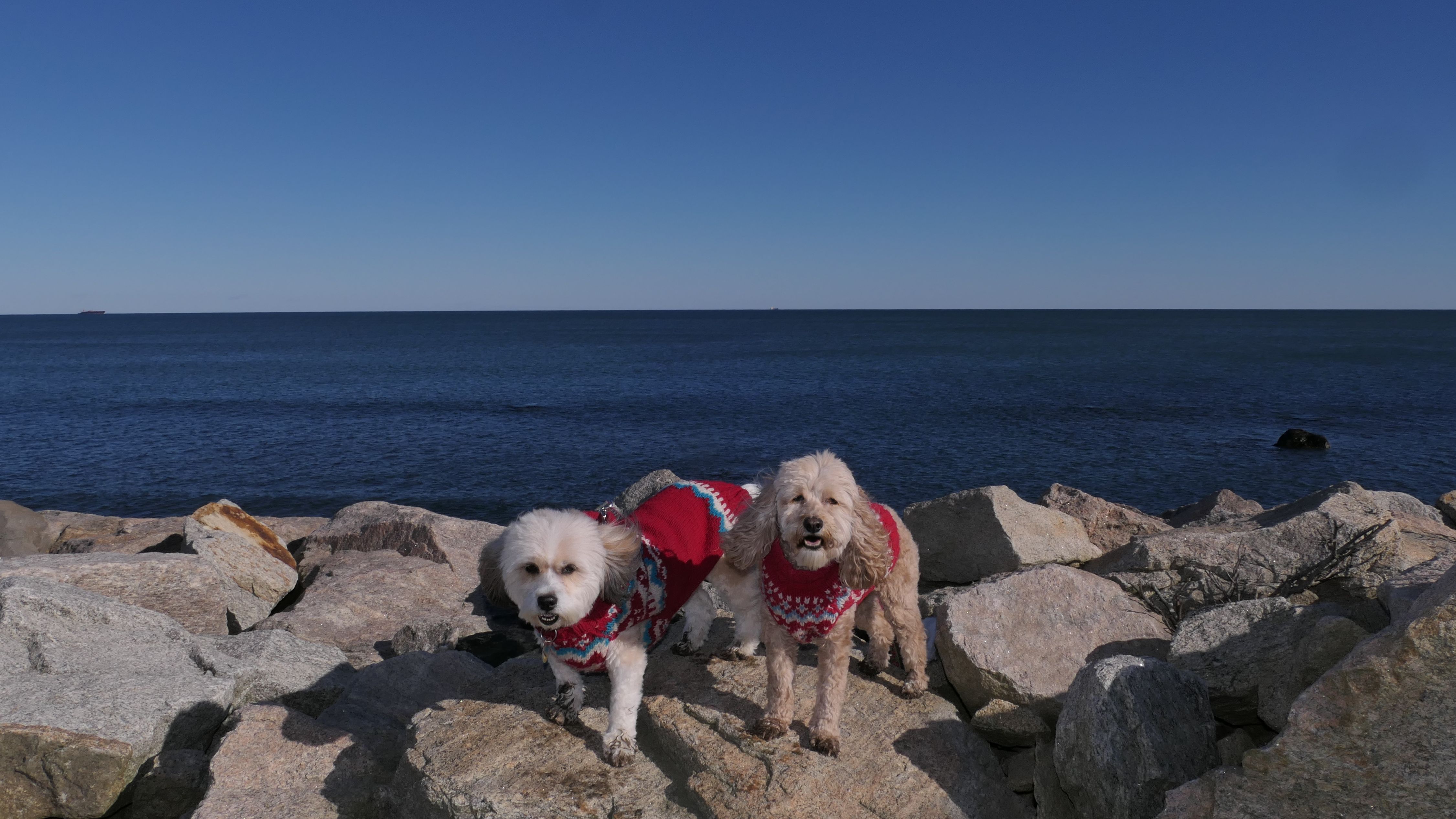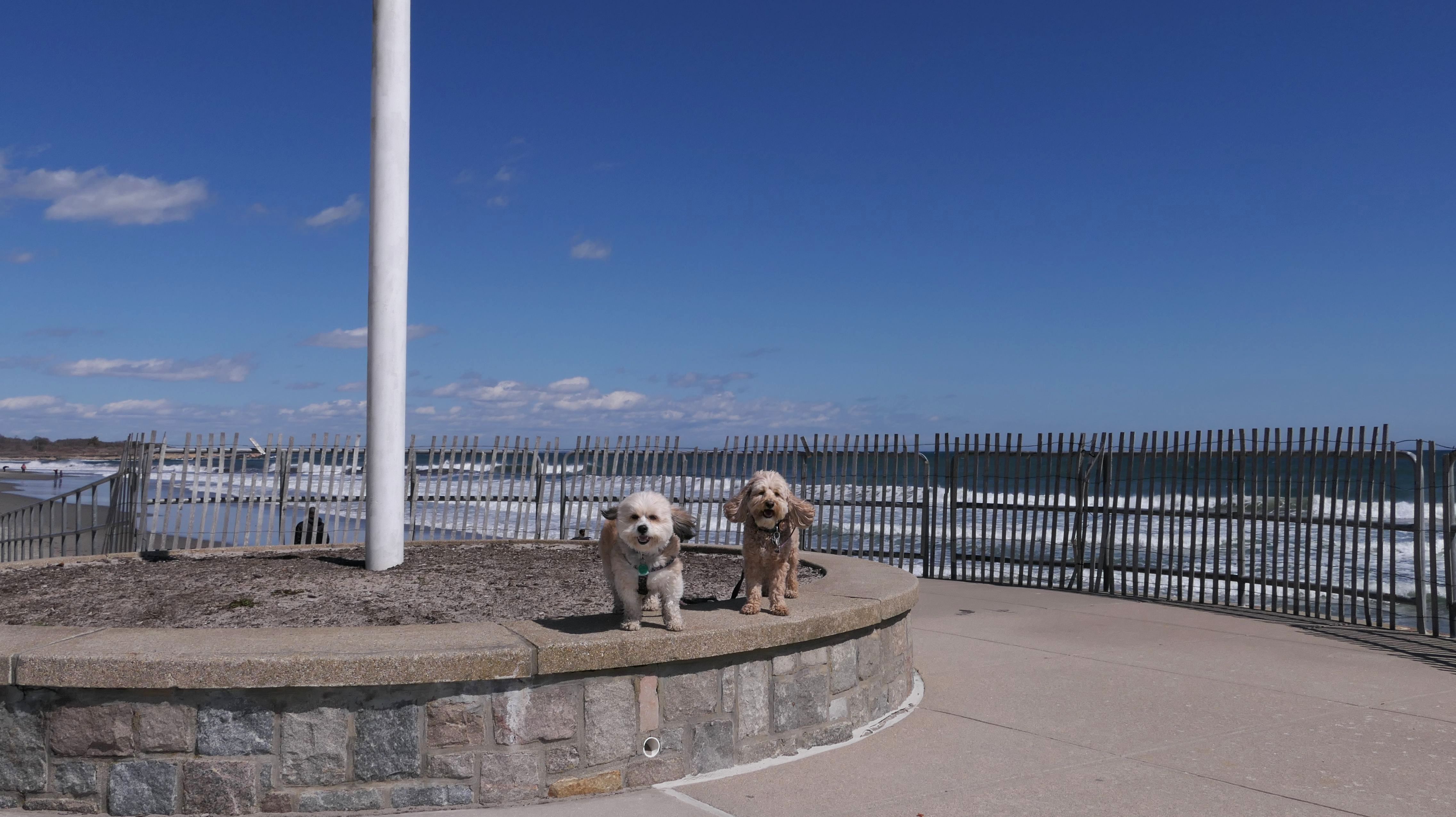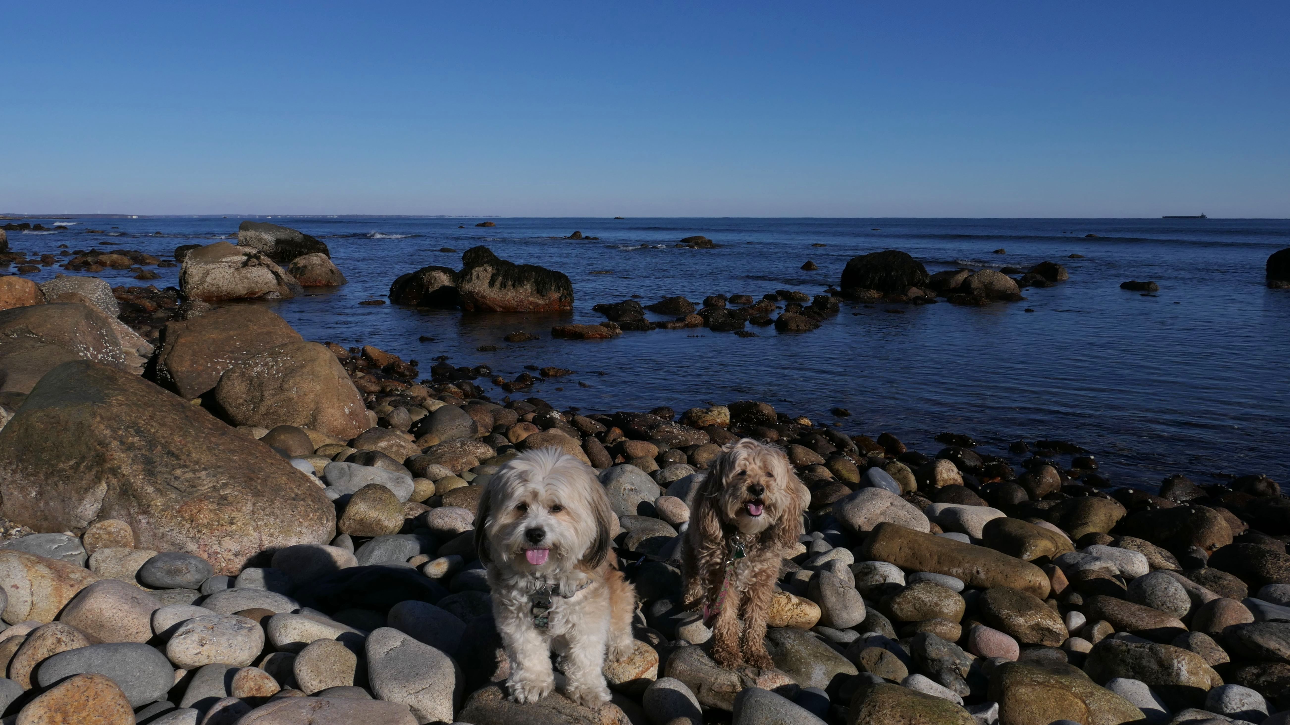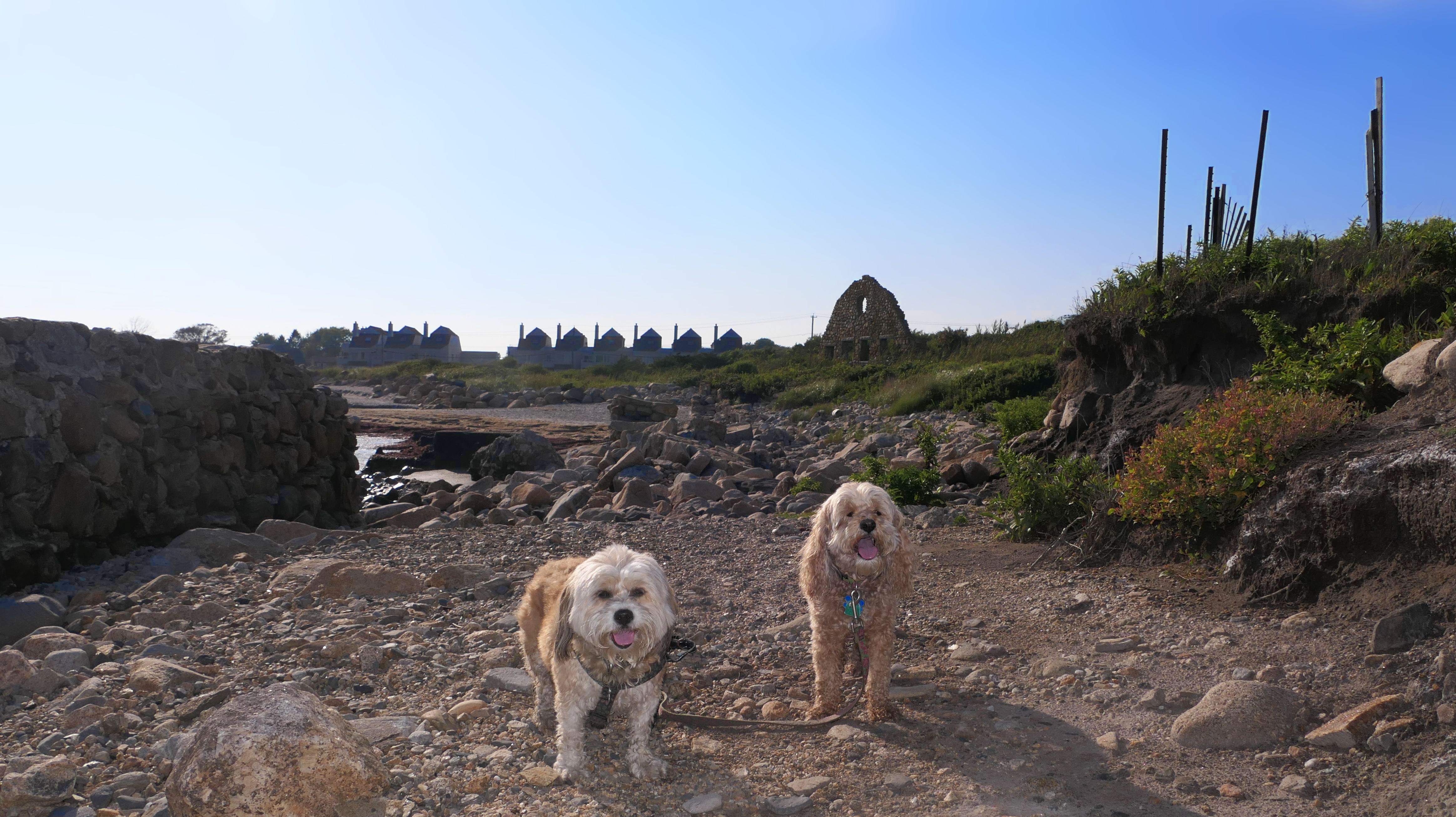 My brother was visiting from Colorado, and I wanted to take him to one of my favorite spots to bring the dogs. This is the first time we've ever been here with snow on the ground. That made this trip feel unique! We stuck mostly to the trail, though we did try to explore the rocks a bit. The snow and ice made navigating them a challenge. After reaching the ruins, we continued along Scarborough Beach for a short stretch before turning around and heading back.