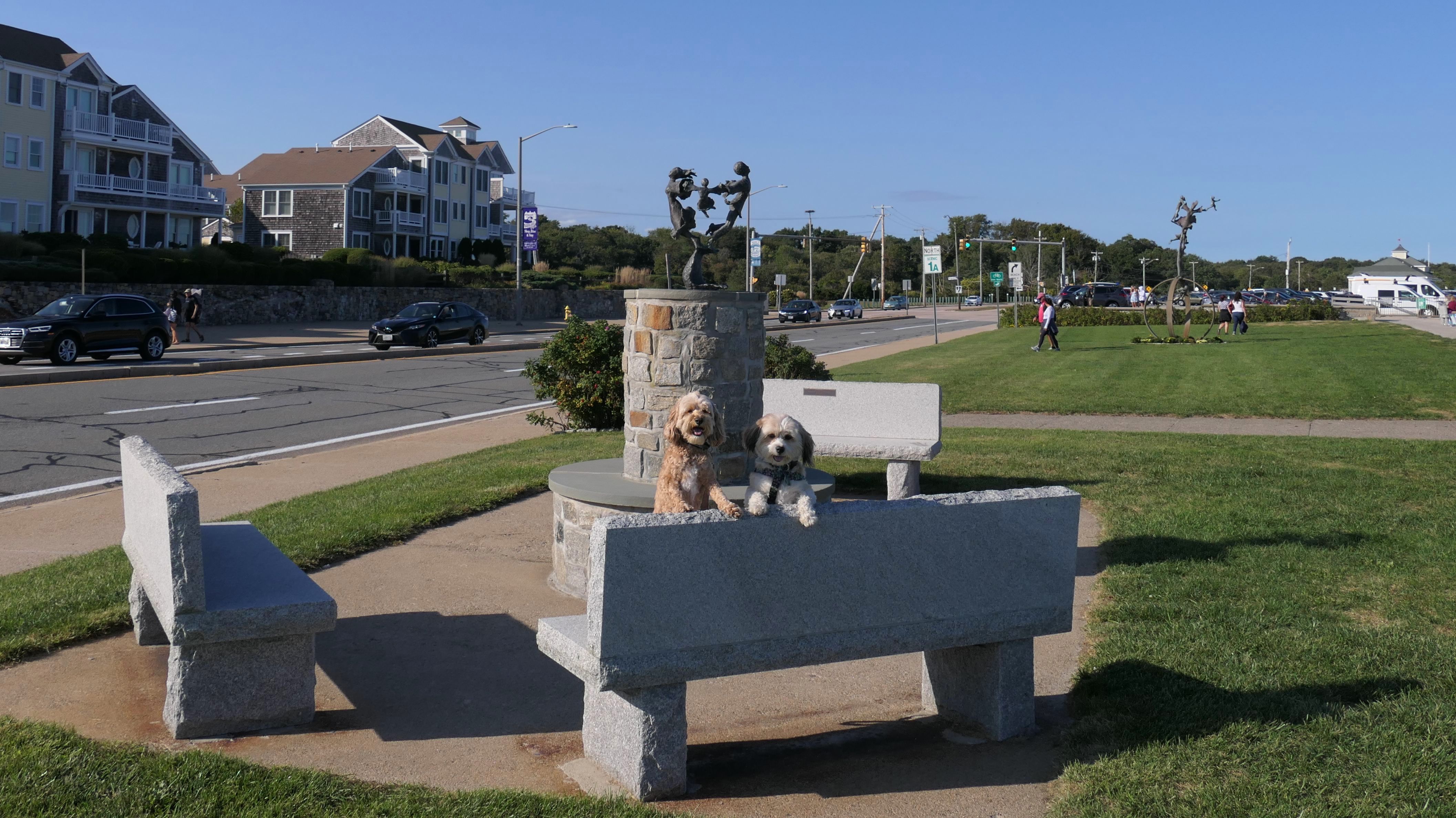 This was our fourth visit to this beach, almost two years to the day after our first visit. That's not coincidence. Dogs are allowed here after September 16th, so we didn't waste any time this year! This is one of the most popular beaches in the area, it's flat and easy to access. Our walk was pretty much a repeat of our 2022 adventure. We walked the length of the beach, up until the mouth of the Pettaquamscutt River and back. Waves rip here, and the beach was quite busy with shell collectors, sunbathers, surfers, and swimmers, even on a Monday afternoon where the temperatures didn't get much above 70 degrees. There was even a cruise ship passing by. This time around we also explored the Narragansett Pier Marketplace and Memorial Square as well. walking over five miles in the process.