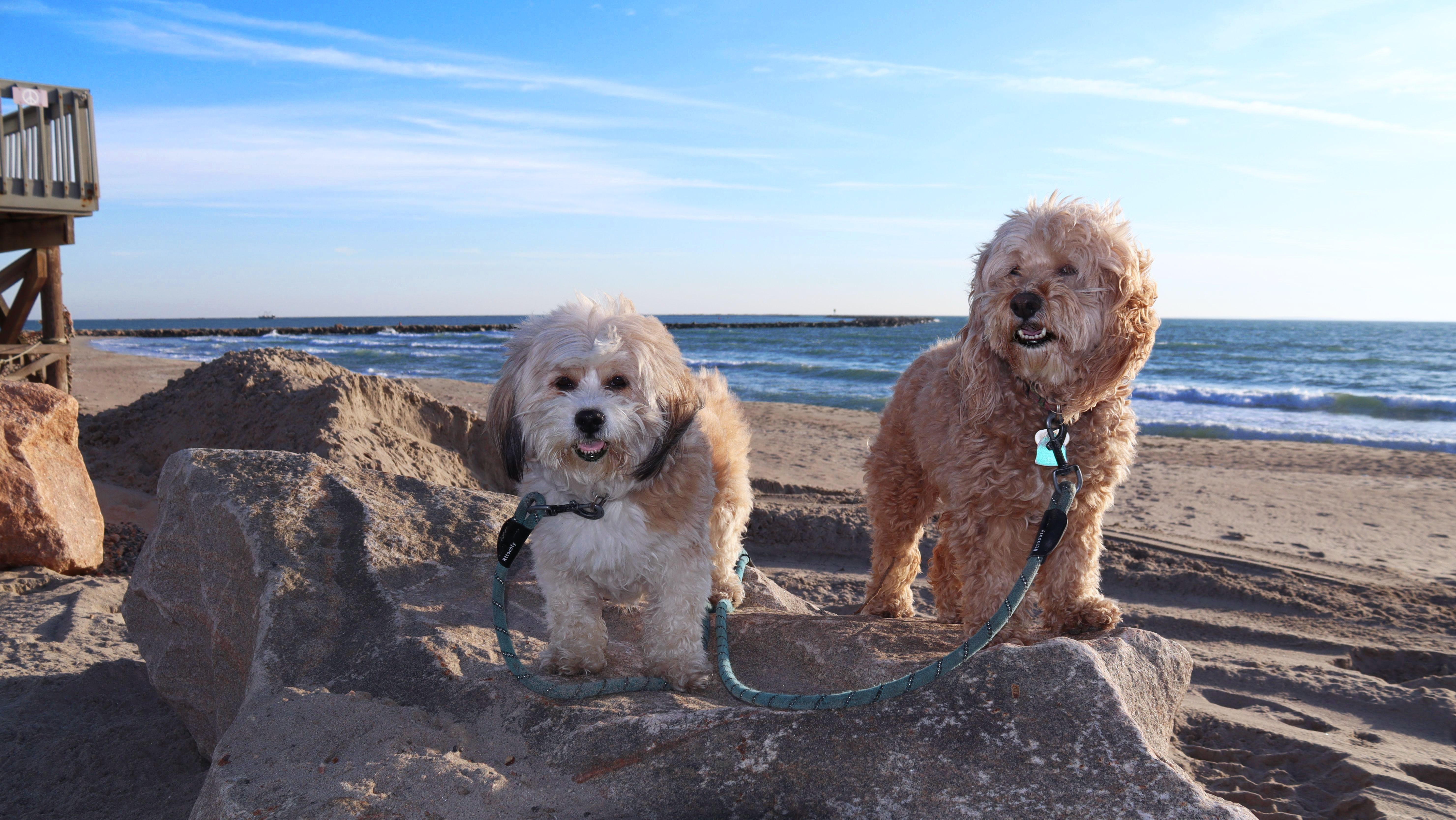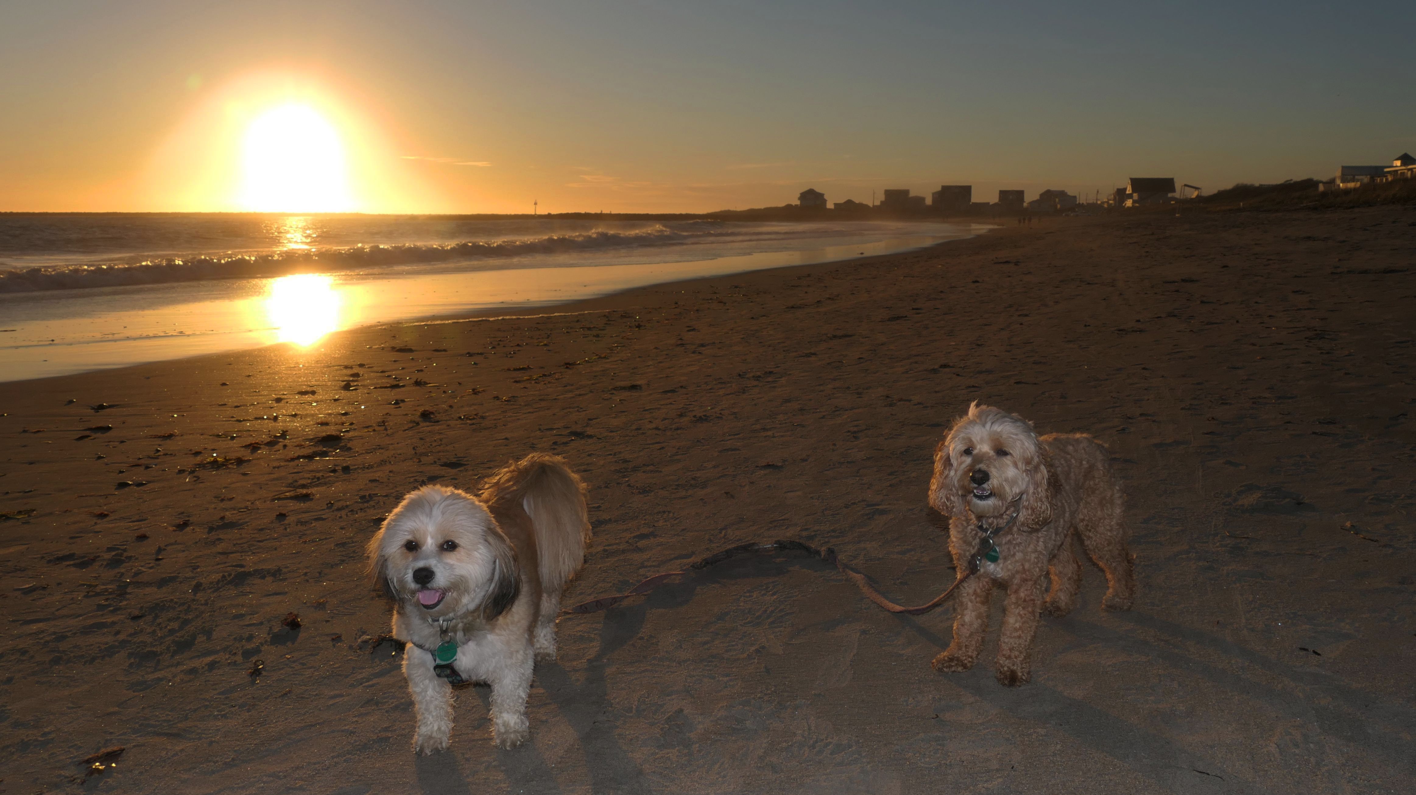 Our second visit here was 13 months after our first. It was still crowded, but this time there were more people fishing than on the beach. We arrived about an hour before sunset. Initially, we tried to walk the rock jetty, but it was hard to navigate the rocks with so many people fishing from them. As the jetty went farther out, it got too dangerous for the dogs. So we just hung around the beach for a while and enjoyed the sunset.