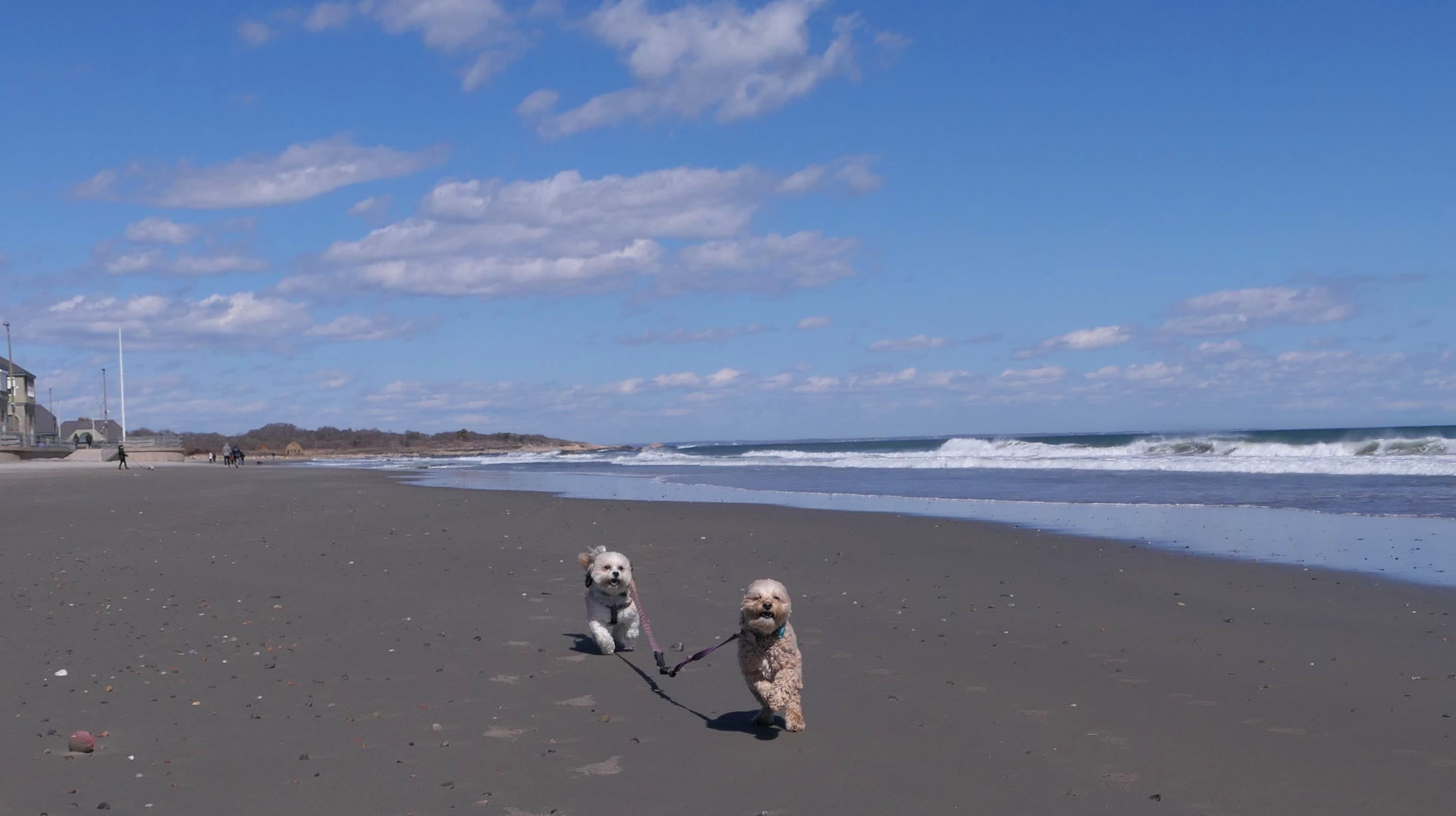 We were hiking the Black Point Trail with my brother, who was visiting from Colorado. He doesn't get to see the ocean that much in Colorado, so we continued along this beach for a bit. While I've been here with the dogs many times, this is the first time we visited this beach with snow on the ground. That didn't stop Mandy and Lexi from running and playing on the beach!