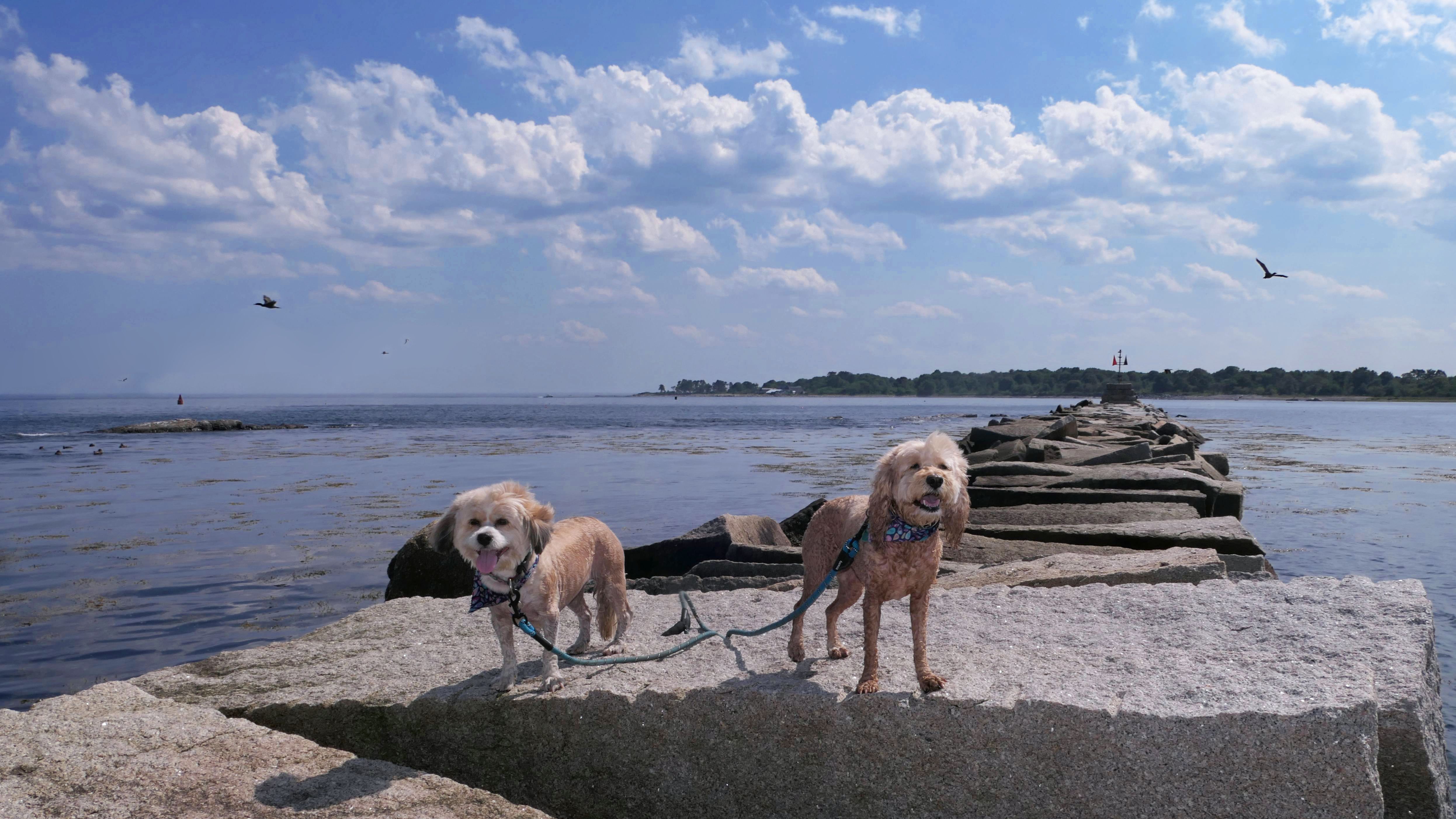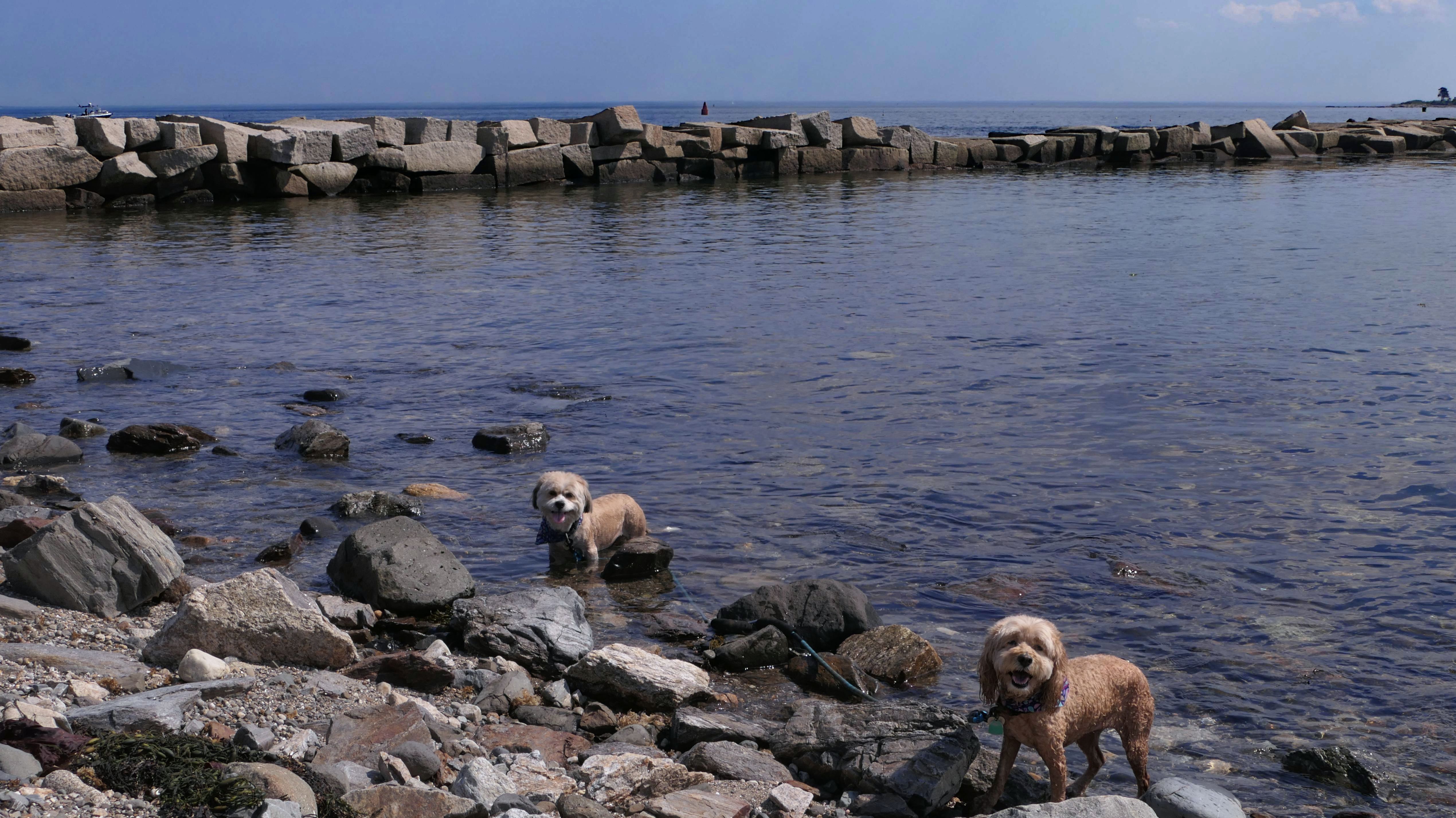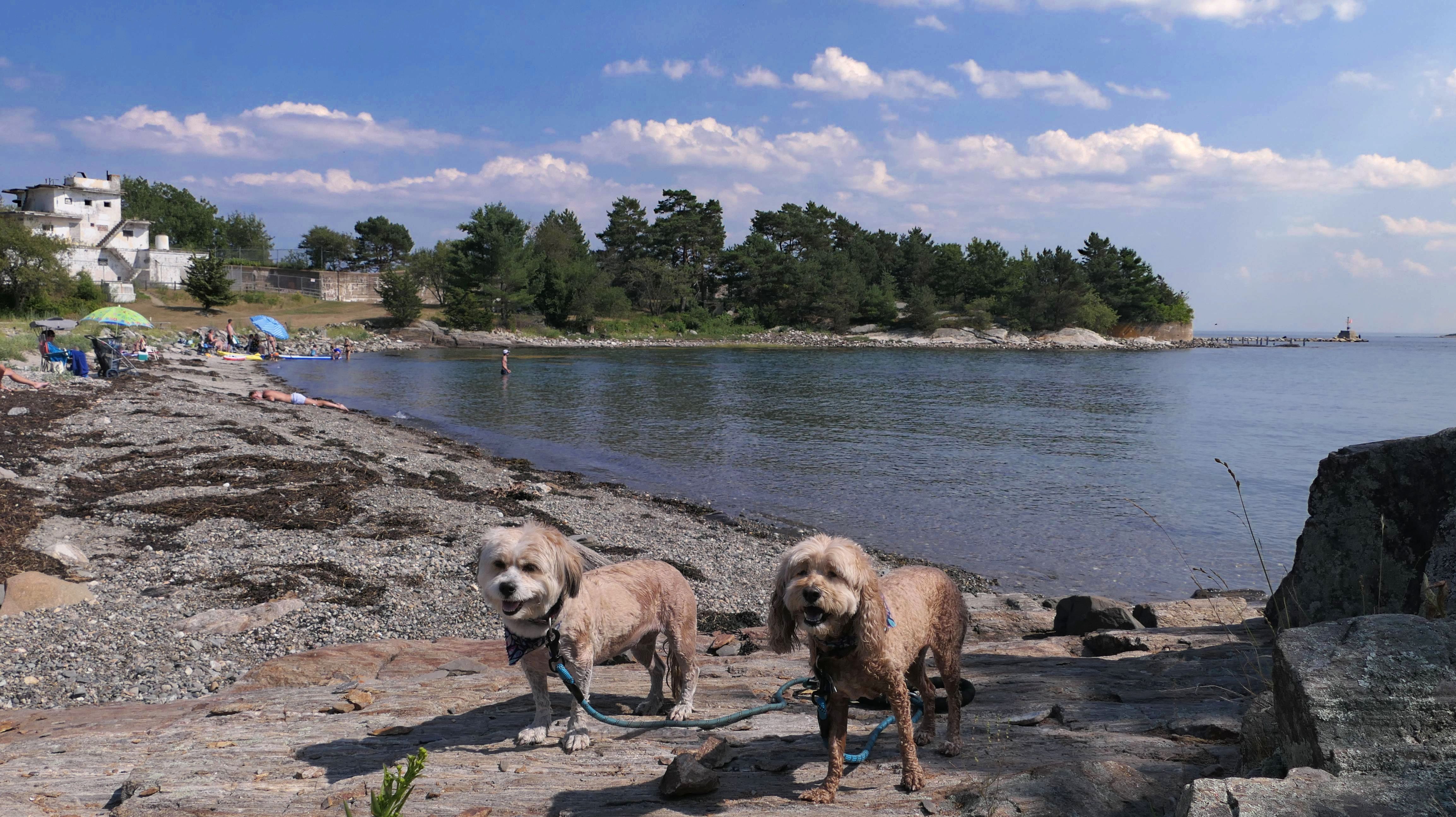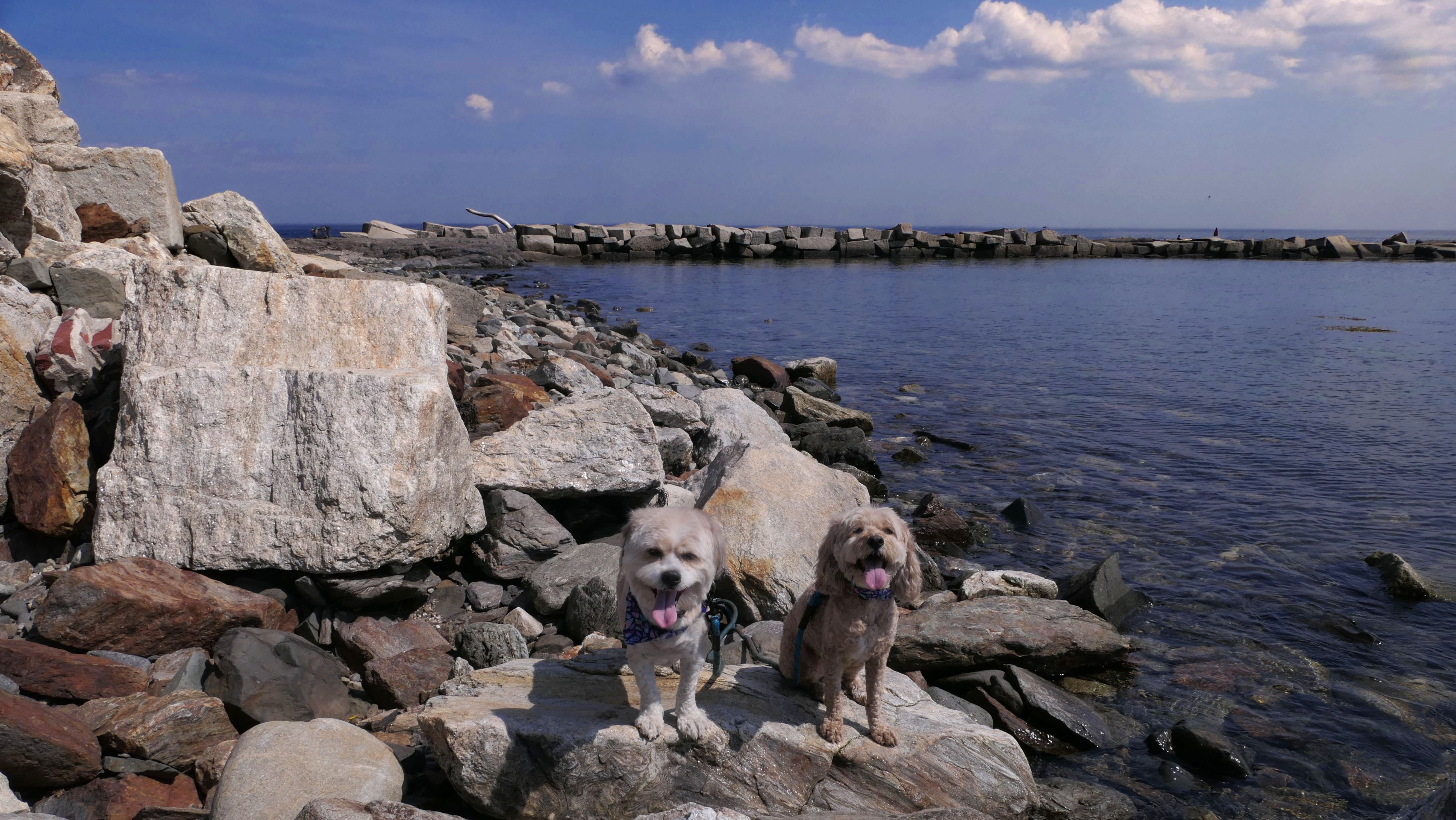 This was a fun visit. This was our second stop of the day on our New Hampshire shoreline adventure. This is the site of an old military fort. There are ruins of the fort, as well as a rocky coastline, and a small beach. It reminded me of Fort Wetherill in Jamestown, Rhode Island. This one isn't quite as nice as that one, but still worth visiting. Leashed dogs are welcome here, even on the small beach. The staff here was very friendly and one of them provided Mandy and Lexi with treats. We walked through the ruins, and out on the rocks, before ending our visit at the small beach.