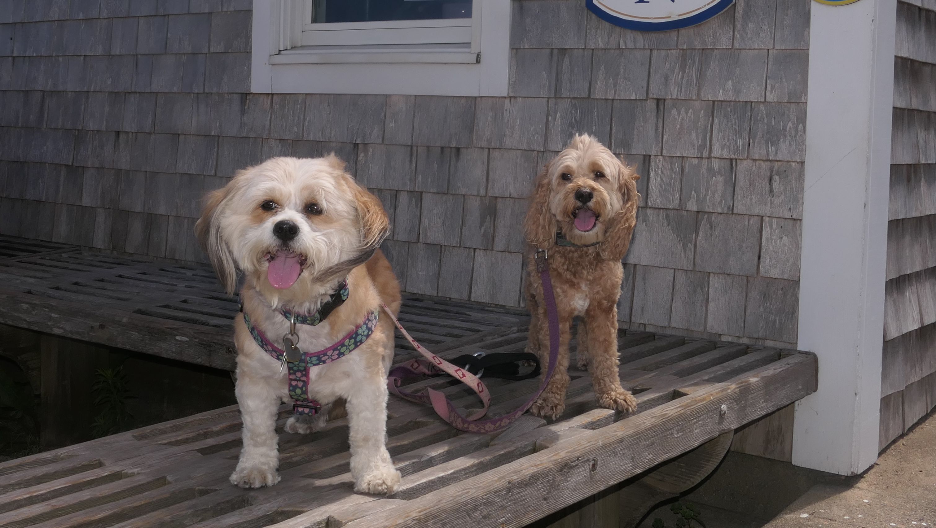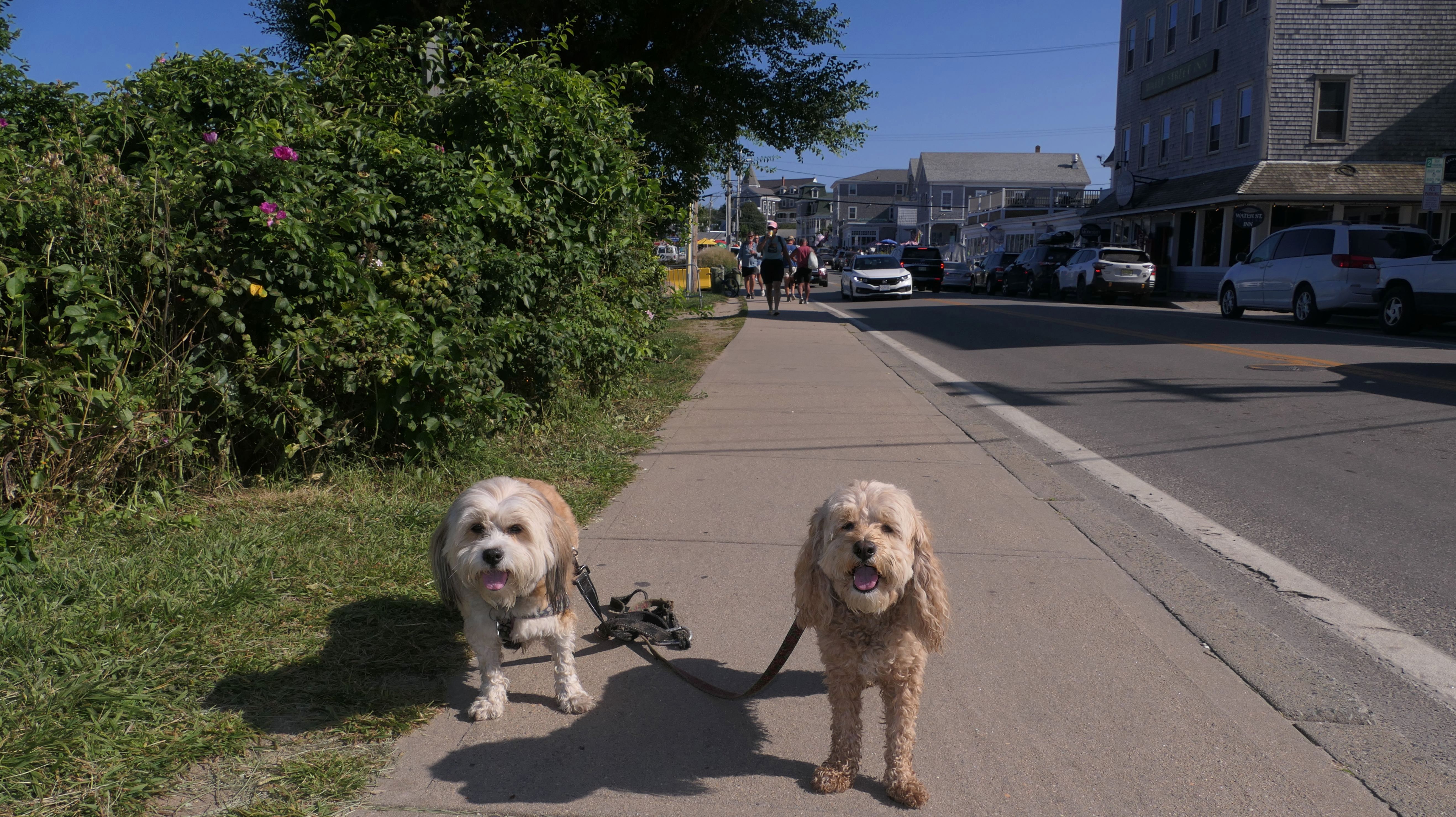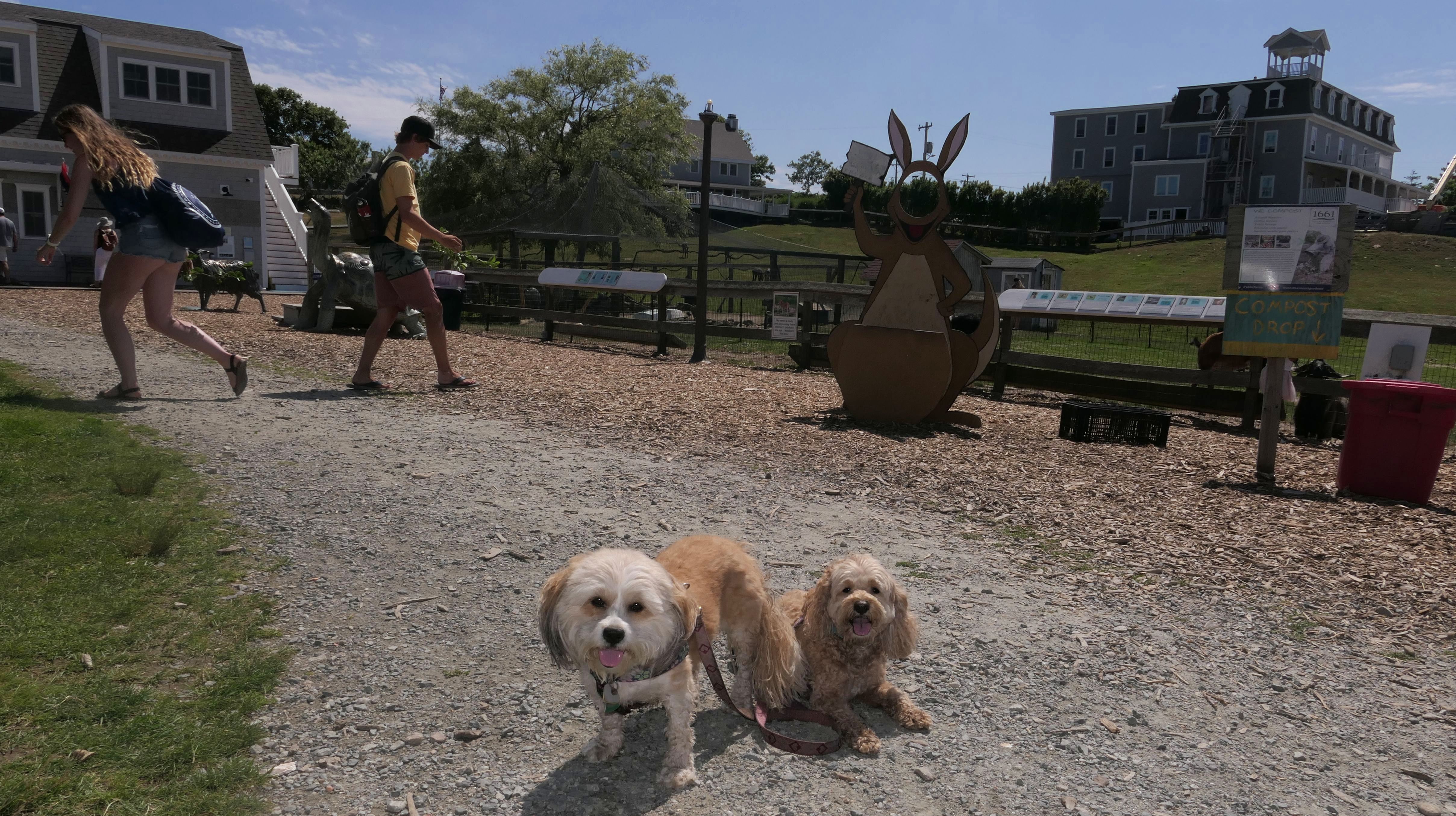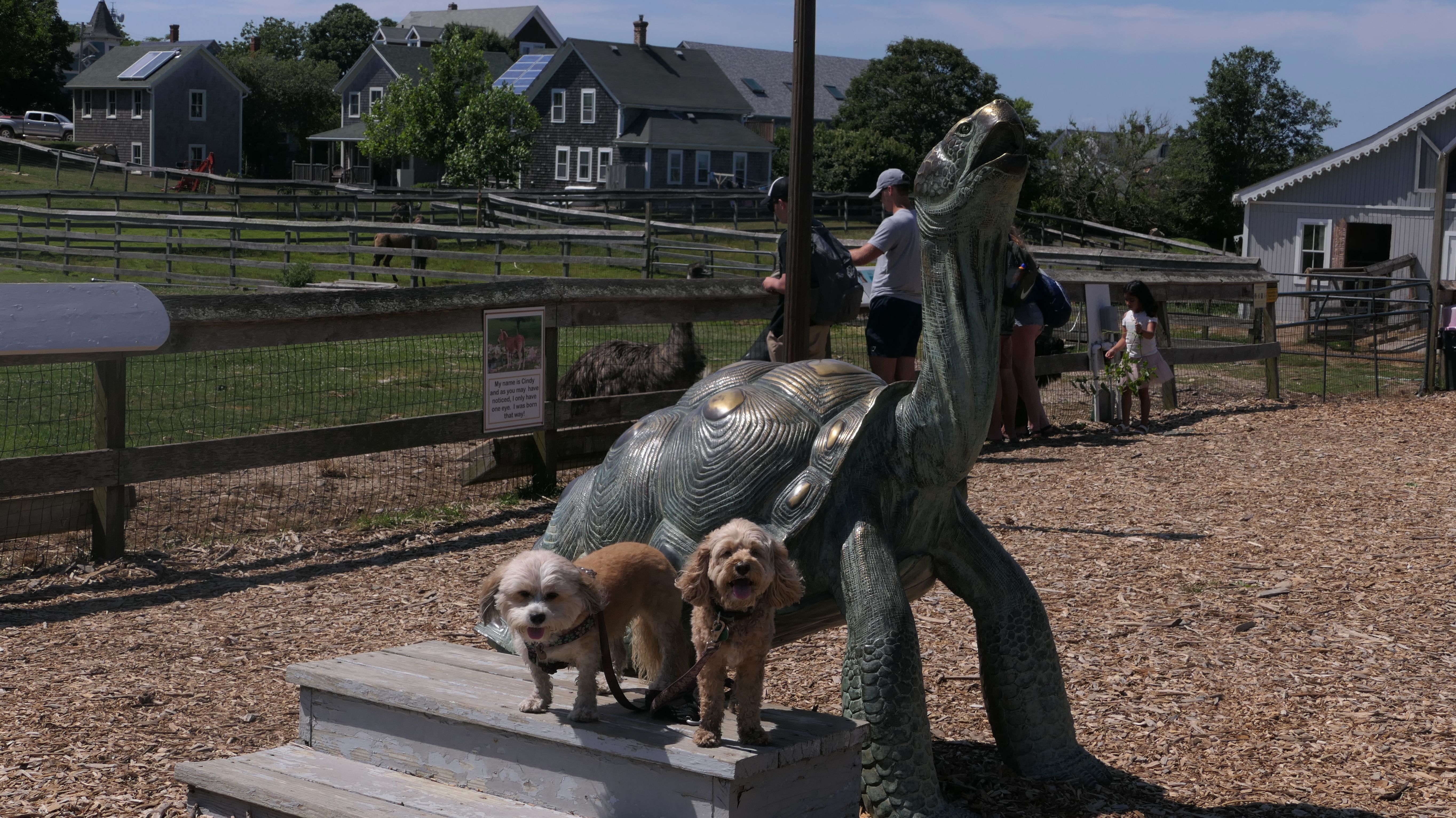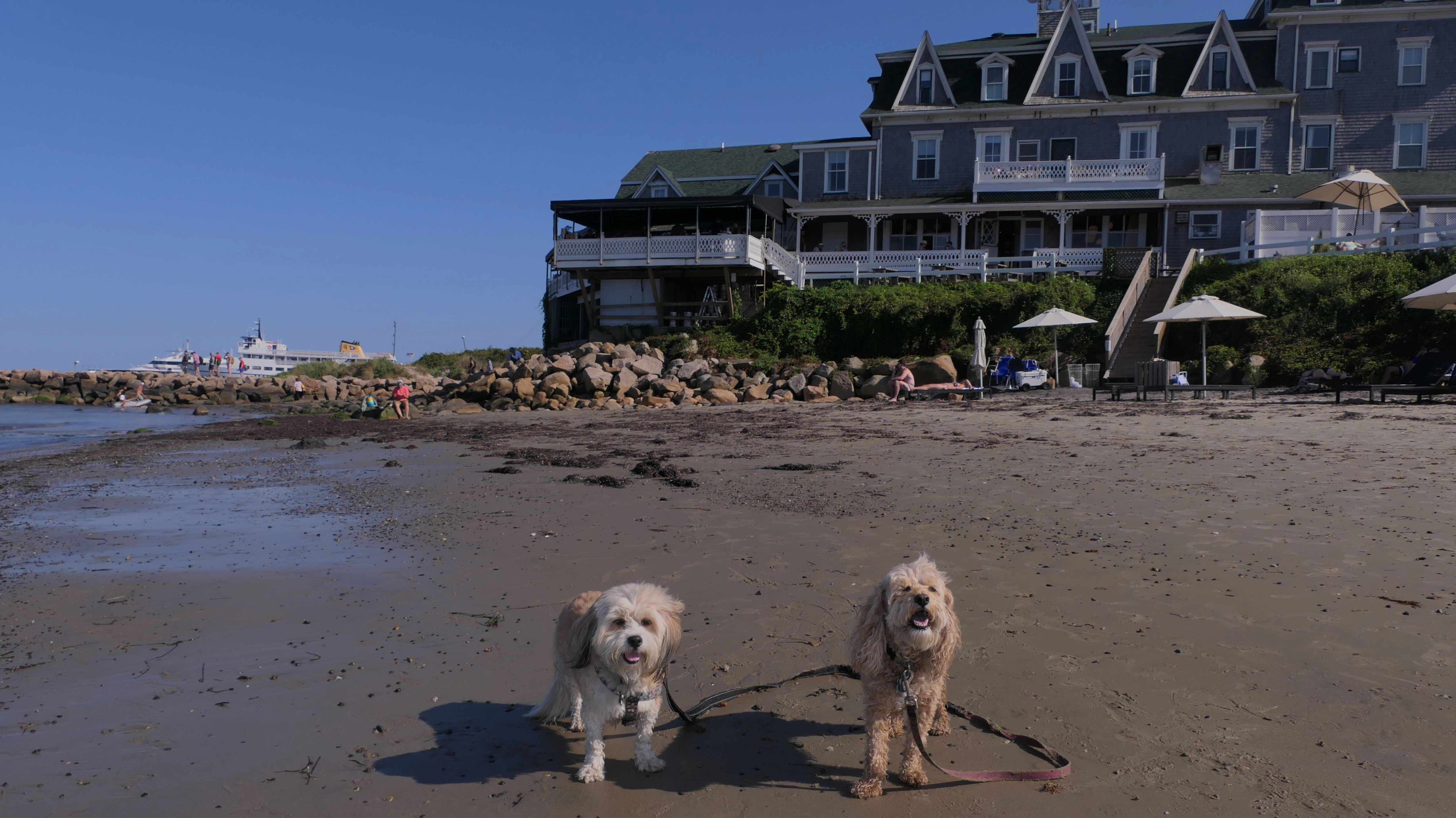 Since we rented a car for the day, I wanted to go to a beach that we couldn't get to on our previous trips. Some of the nicer beaches along the southern coast of the island require long climbs down steep dunes, so we settled for this beach along the northwest side of the island. It's remote and out of the way. We were the only ones there. It's rocky, with milder waves, which is the way the dogs like it! The informational sign near the ferry landing says this is a good spot to find beach glass, but all we found was broken glass from bottles near the entrance to the beach at the end of West Beach Road. Be careful with the dogs at the entrance! We found a trail that leads out toward the Great Salt Pond. We walked down that trail a short distance before turning around and heading back. This was a different experience from the tourist beaches along the northeast side of the island, but I didn't think it was quite as nice. Mandy and Lexi loved the water though, and in the end, isn't that all that counts!