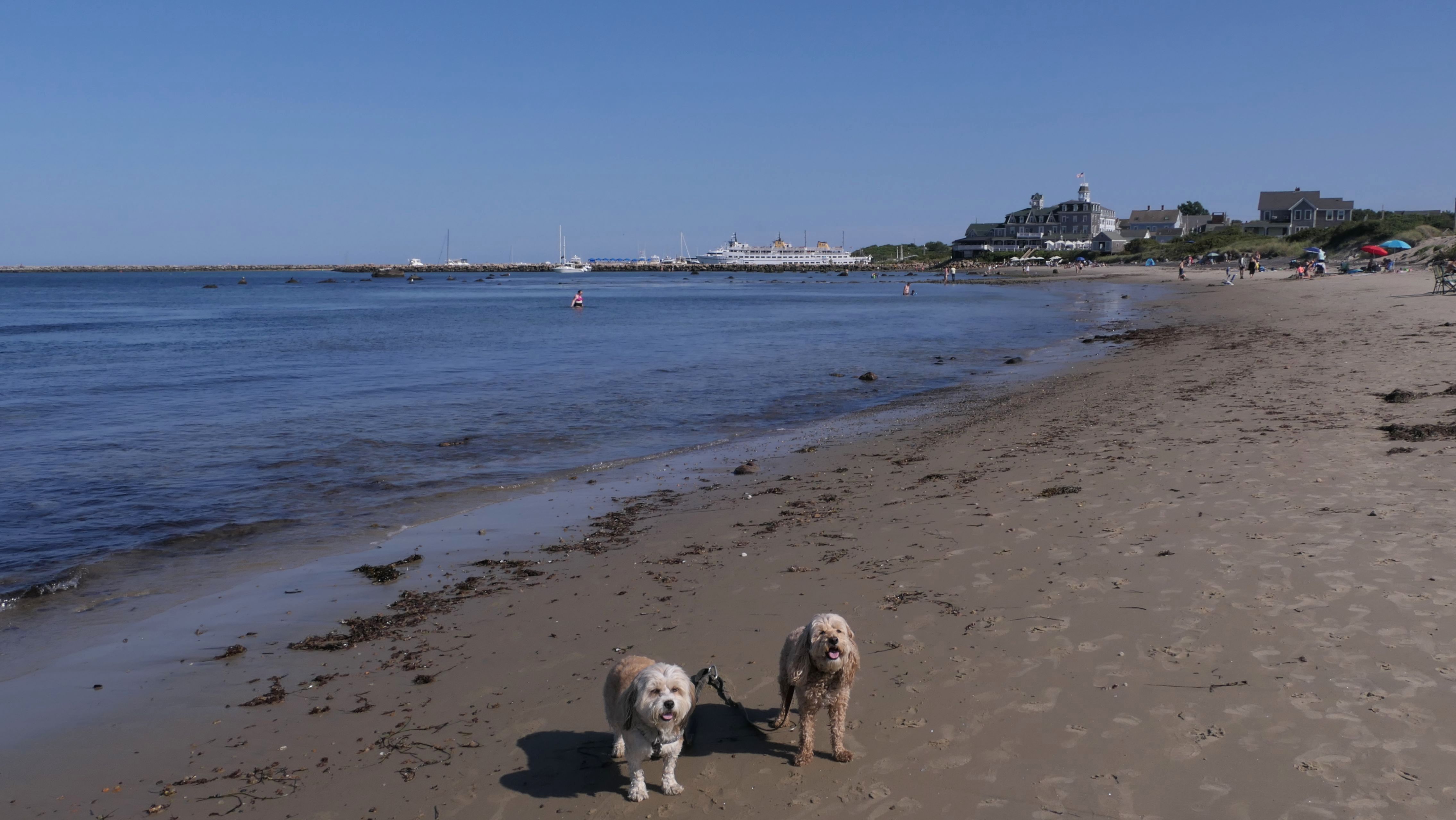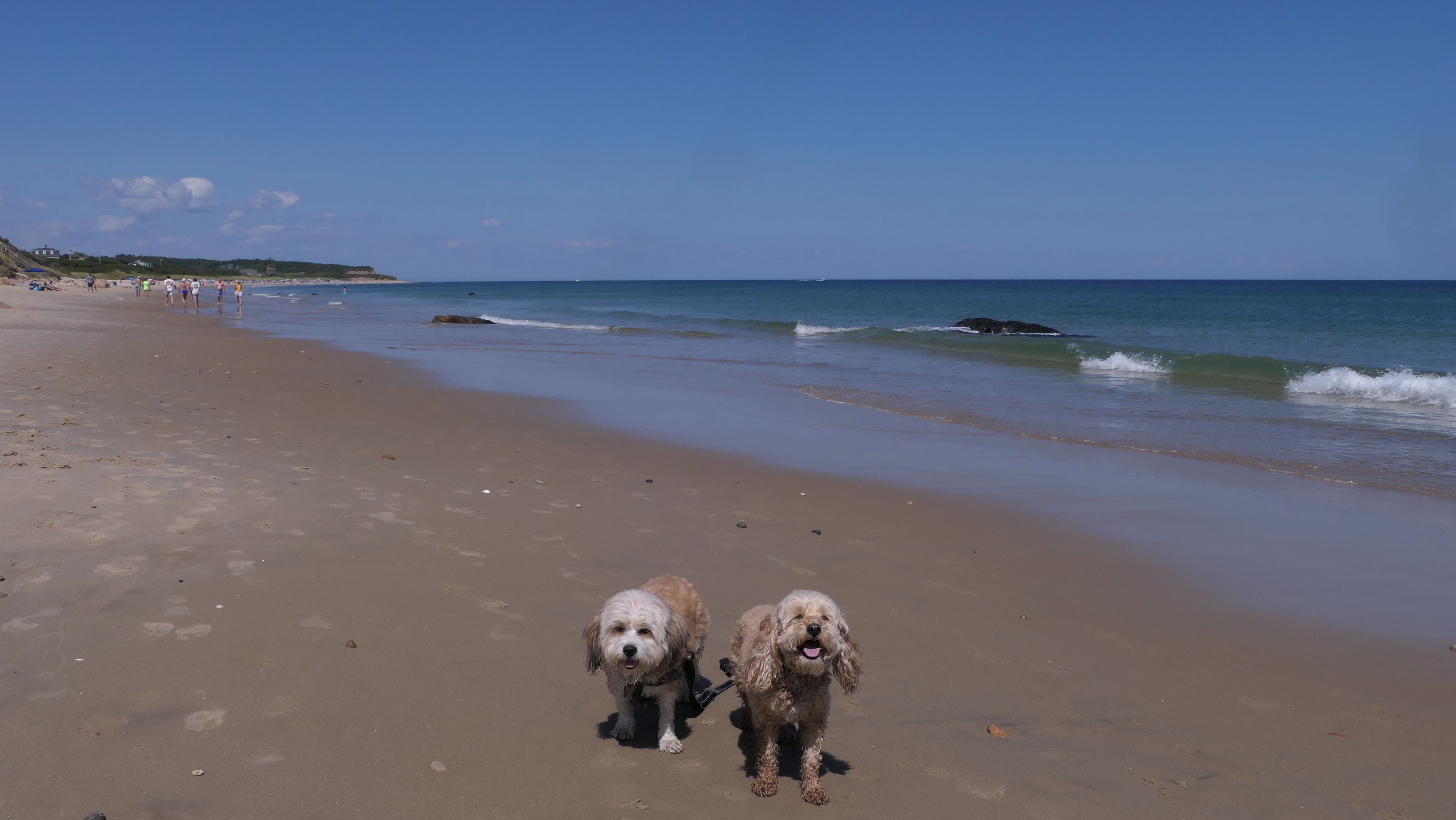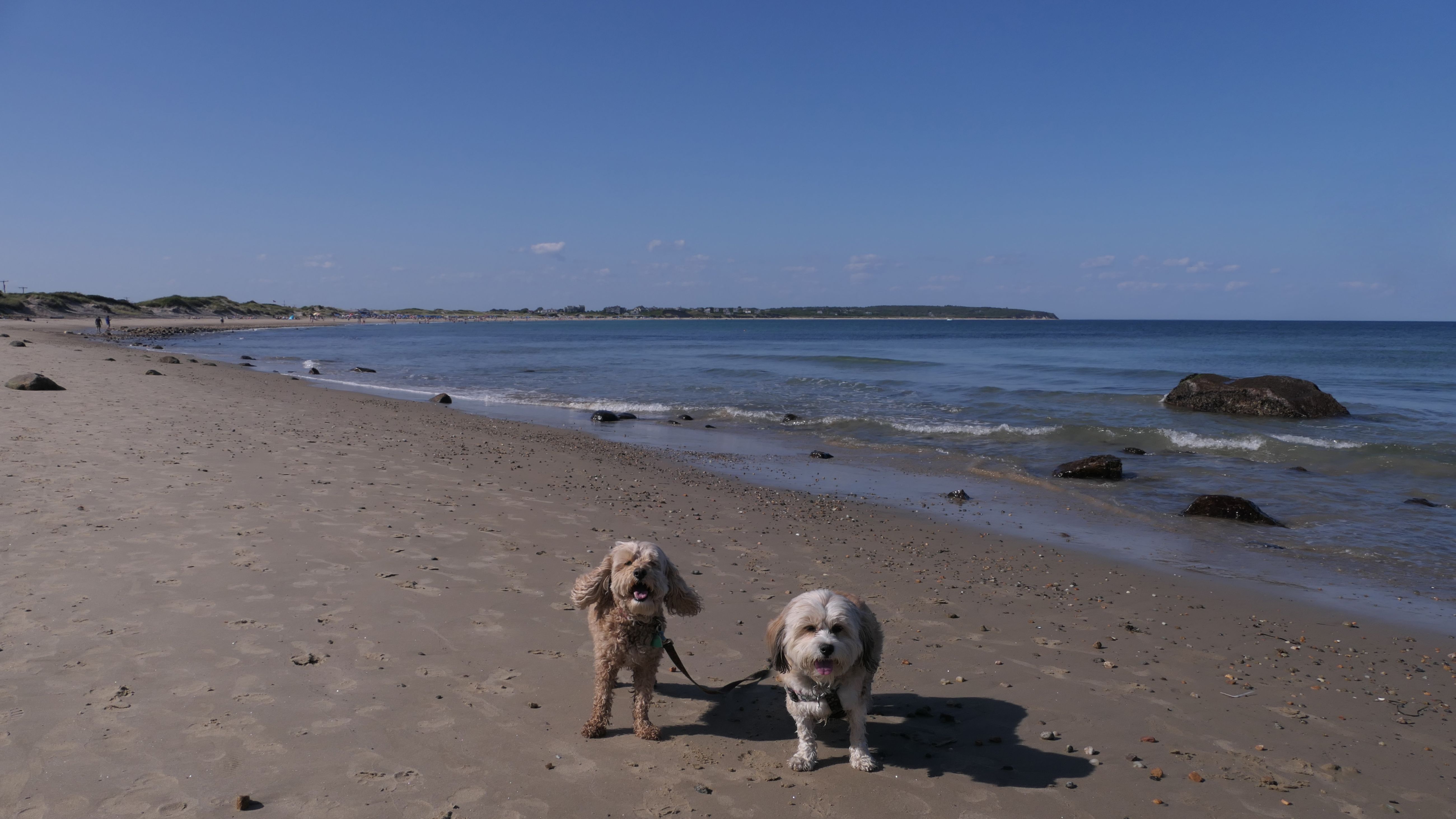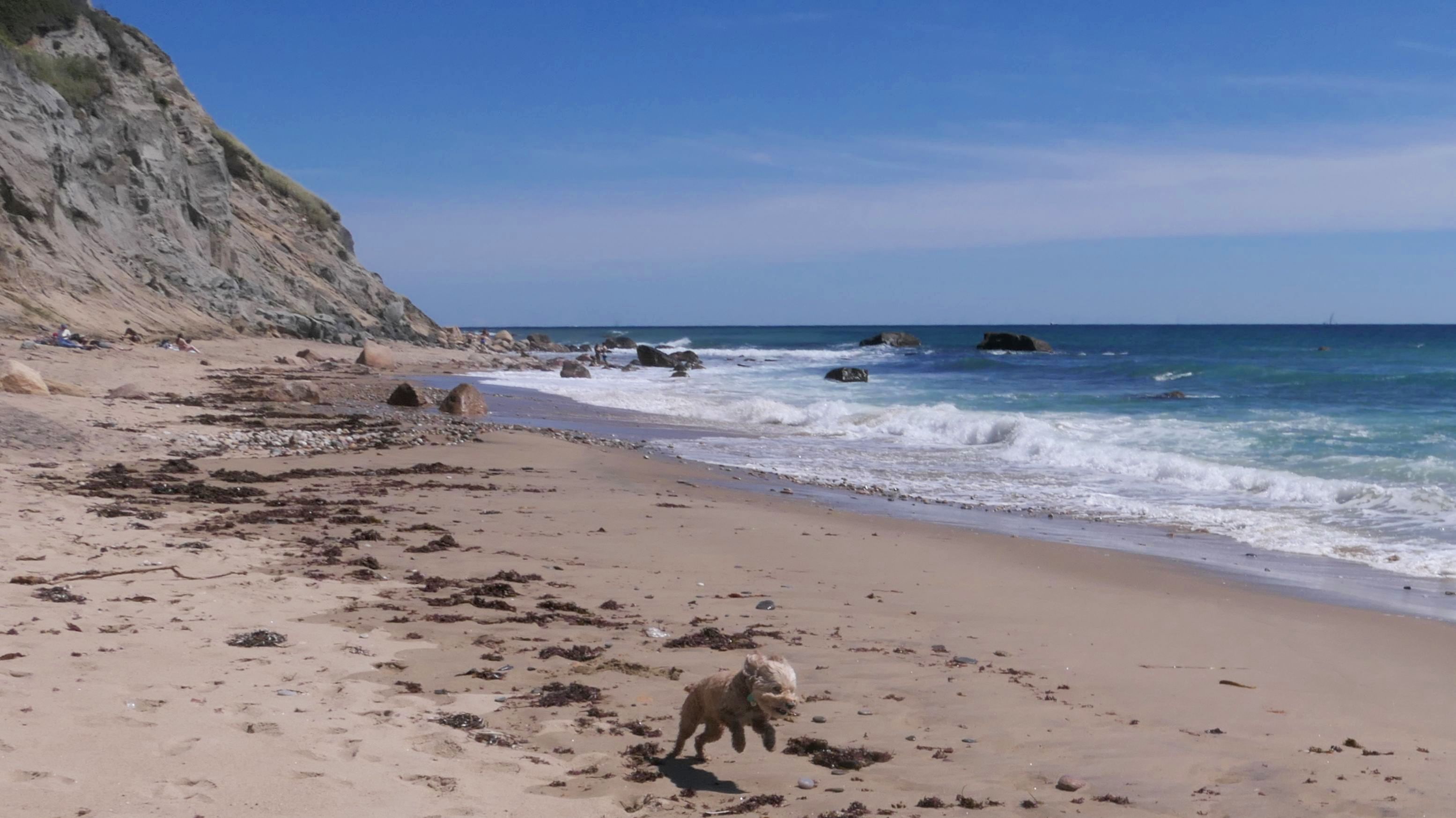 This was the second of four beaches on our Block Island beach adventure. This is probably the most popular beach on the island. It's a 20 minute walk from the ferries, has crystal clear water, and mild waves that are great for families. It goes without saying that leashed dogs are allowed here too, like most (if not all) of the Block Island beaches. We connected from Surf Beach on our way here, so we did not check out the amenities. I've read there is a beach house with bathrooms and showers (I believe there is a charge for the showers). There is also a food stand as well. This was the busiest stretch of beach on our walk. While it's hard to know exactly where one beach begins and the next one ends, we headed to Scotch Beach next, and then Mansion Beach.