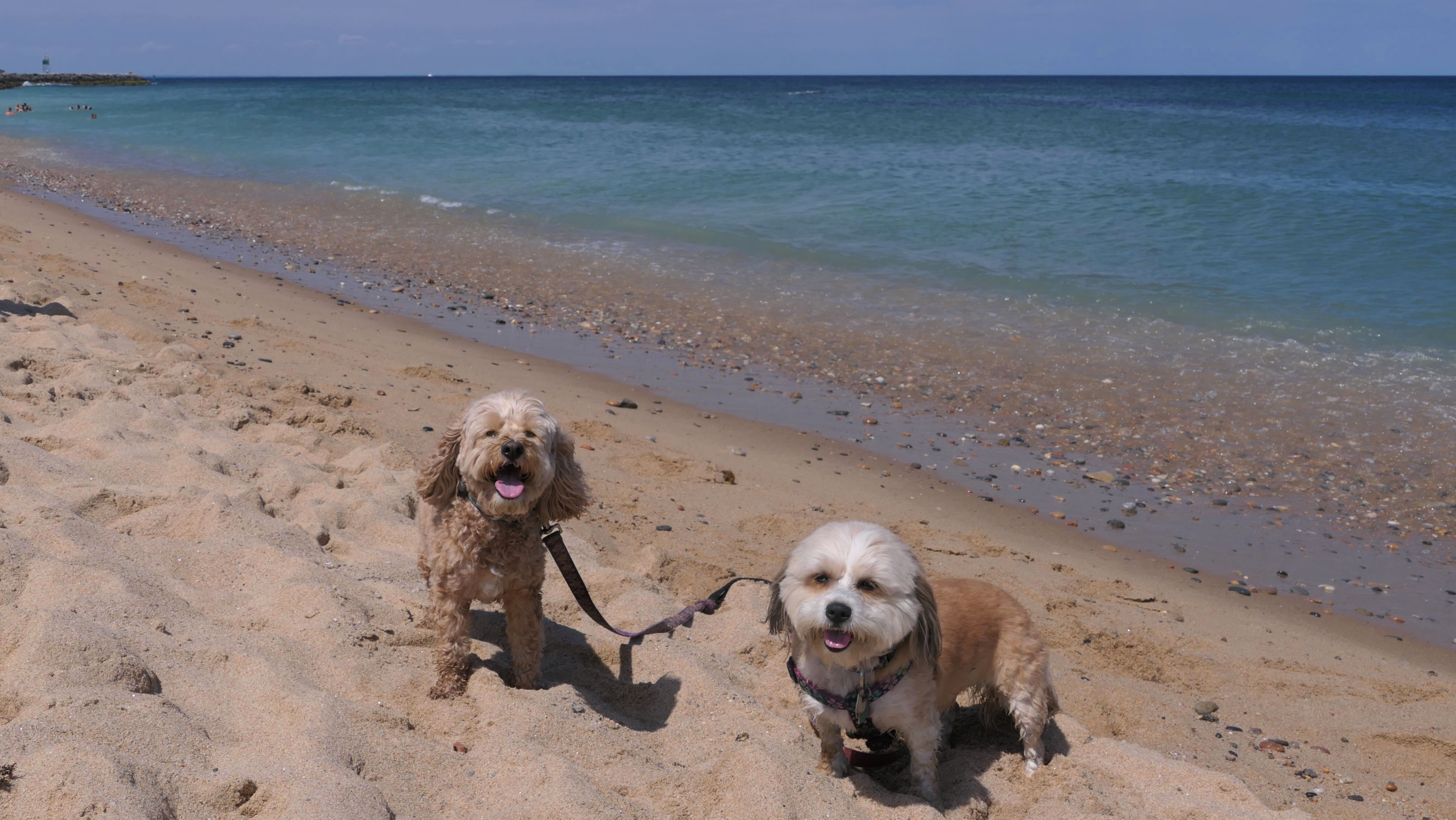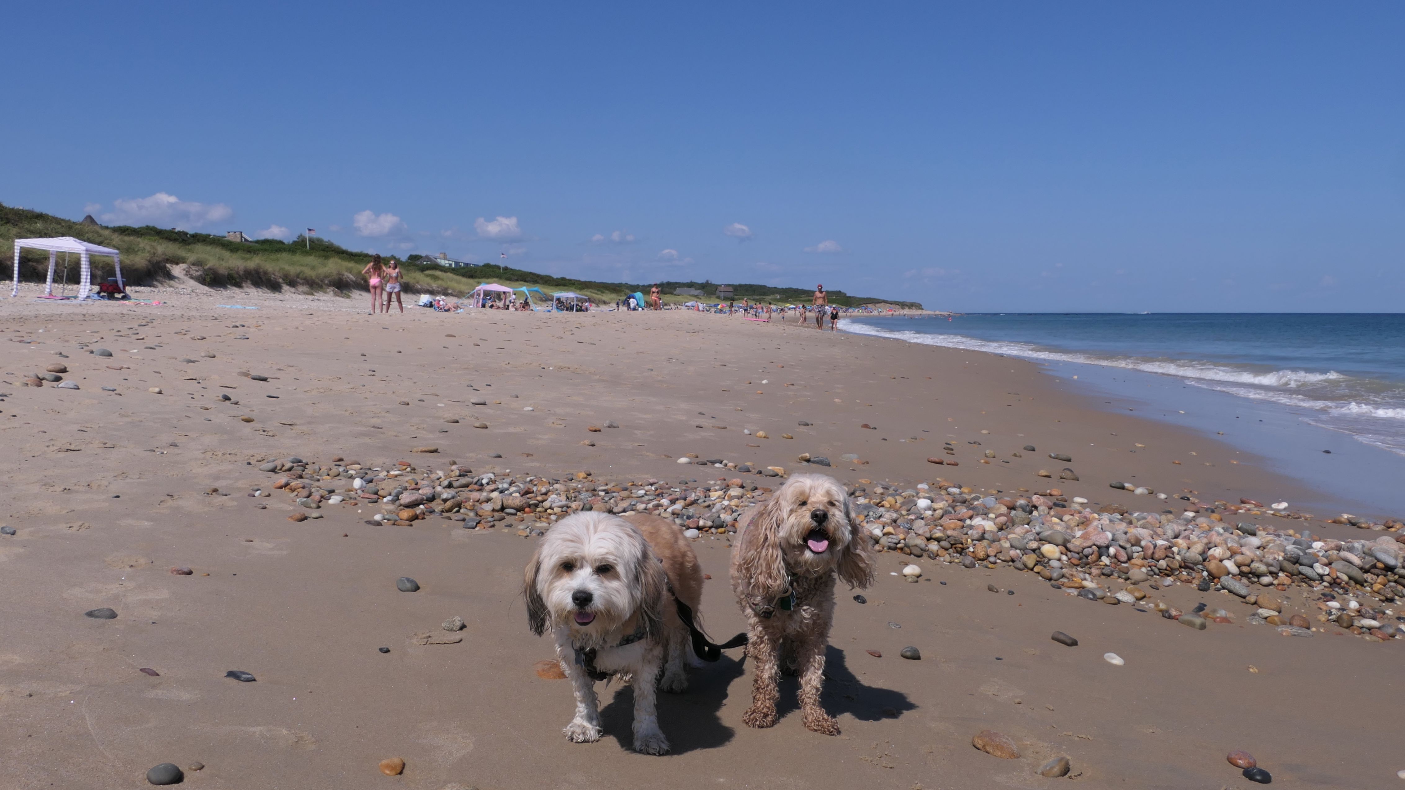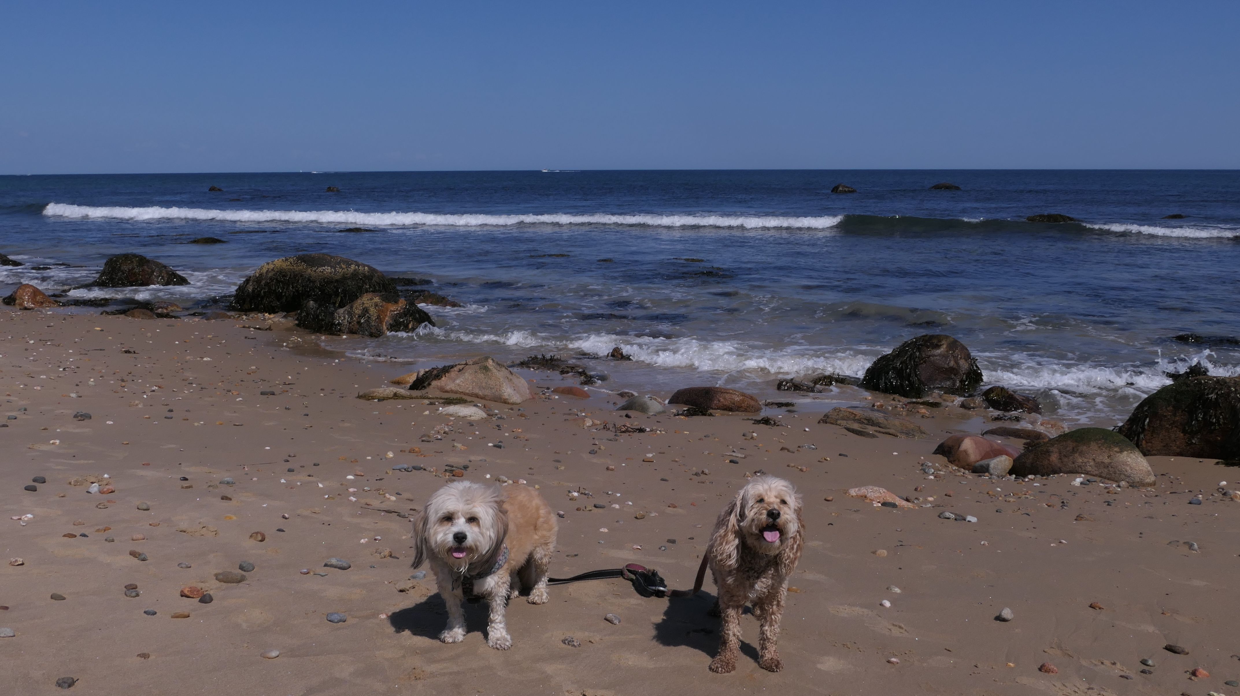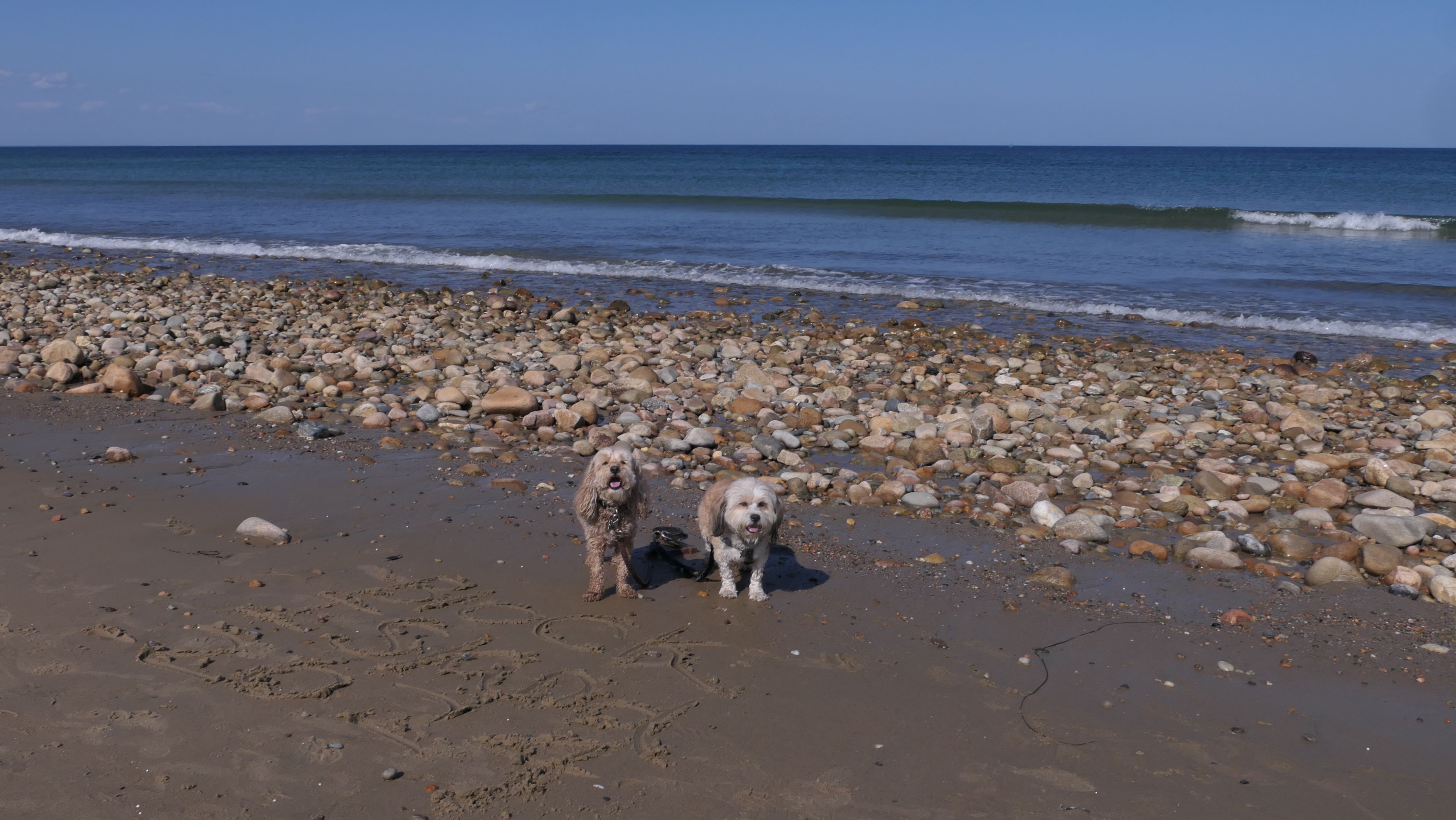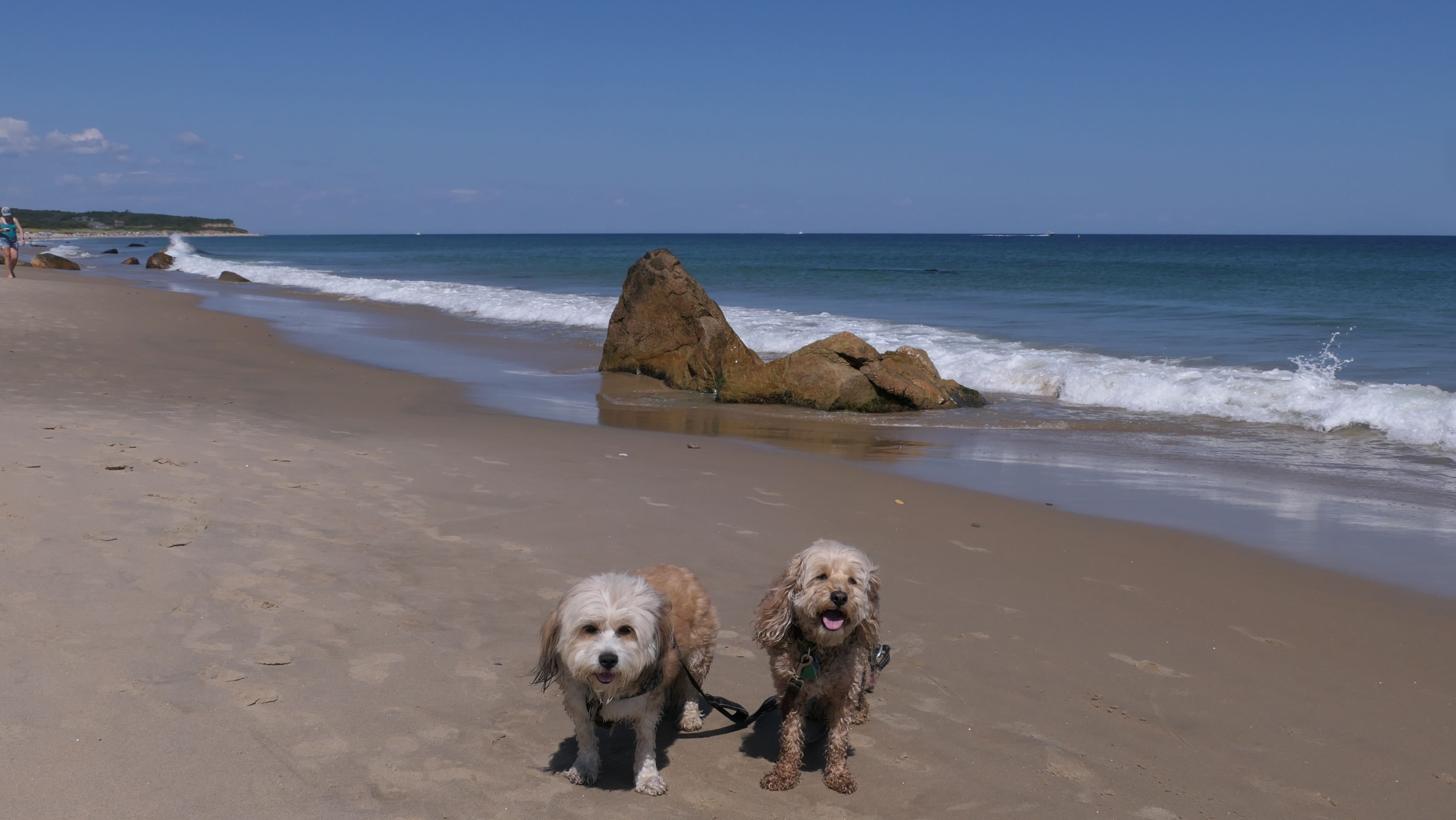 This was the second of four beaches on our Block Island beach adventure. This is probably the most popular beach on the island. It's a 20 minute walk from the ferries, has crystal clear water, and mild waves that are great for families. It goes without saying that leashed dogs are allowed here too, like most (if not all) of the Block Island beaches. We connected from Surf Beach on our way here, so we did not check out the amenities. I've read there is a beach house with bathrooms and showers (I believe there is a charge for the showers). There is also a food stand as well. This was the busiest stretch of beach on our walk. While it's hard to know exactly where one beach begins and the next one ends, we headed to Scotch Beach next, and then Mansion Beach.