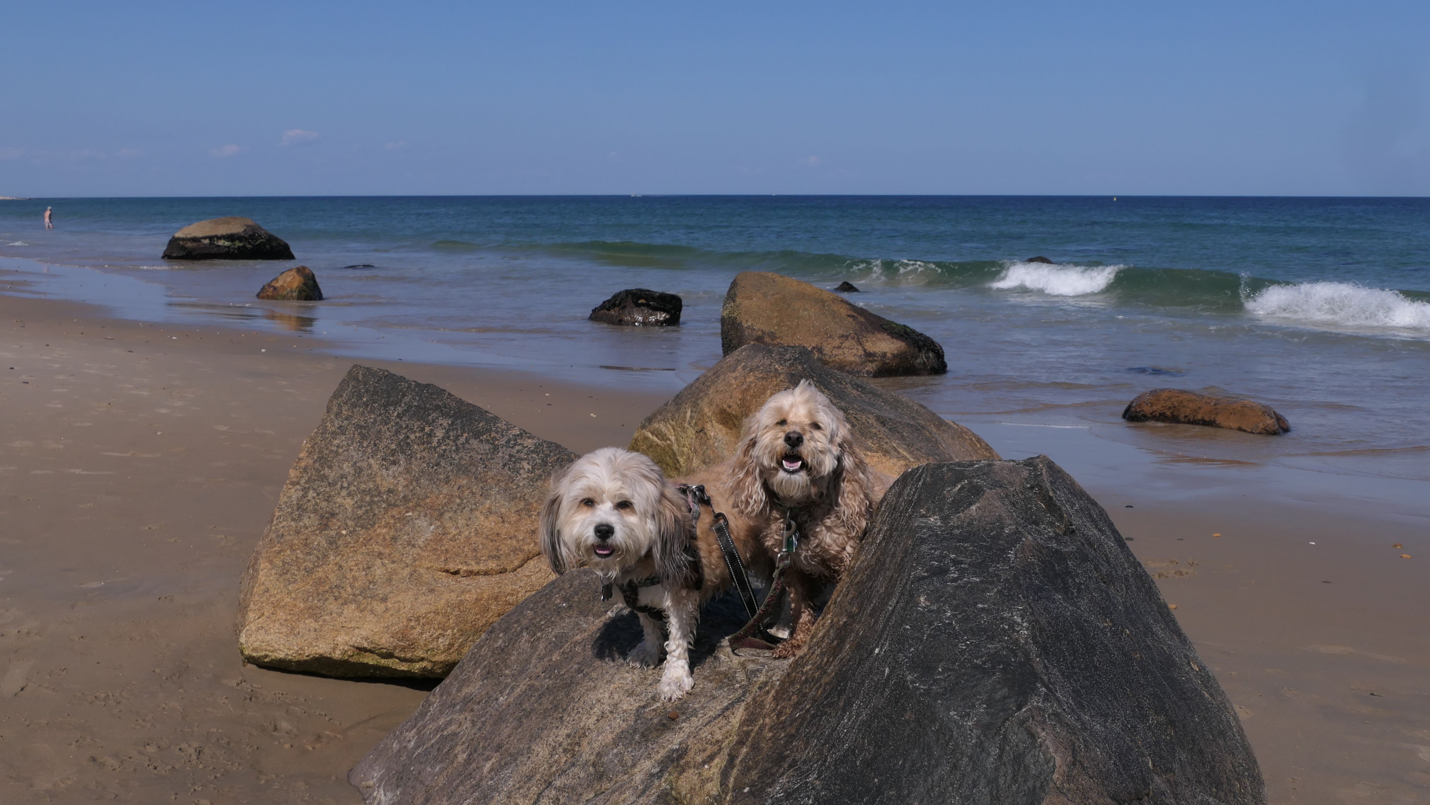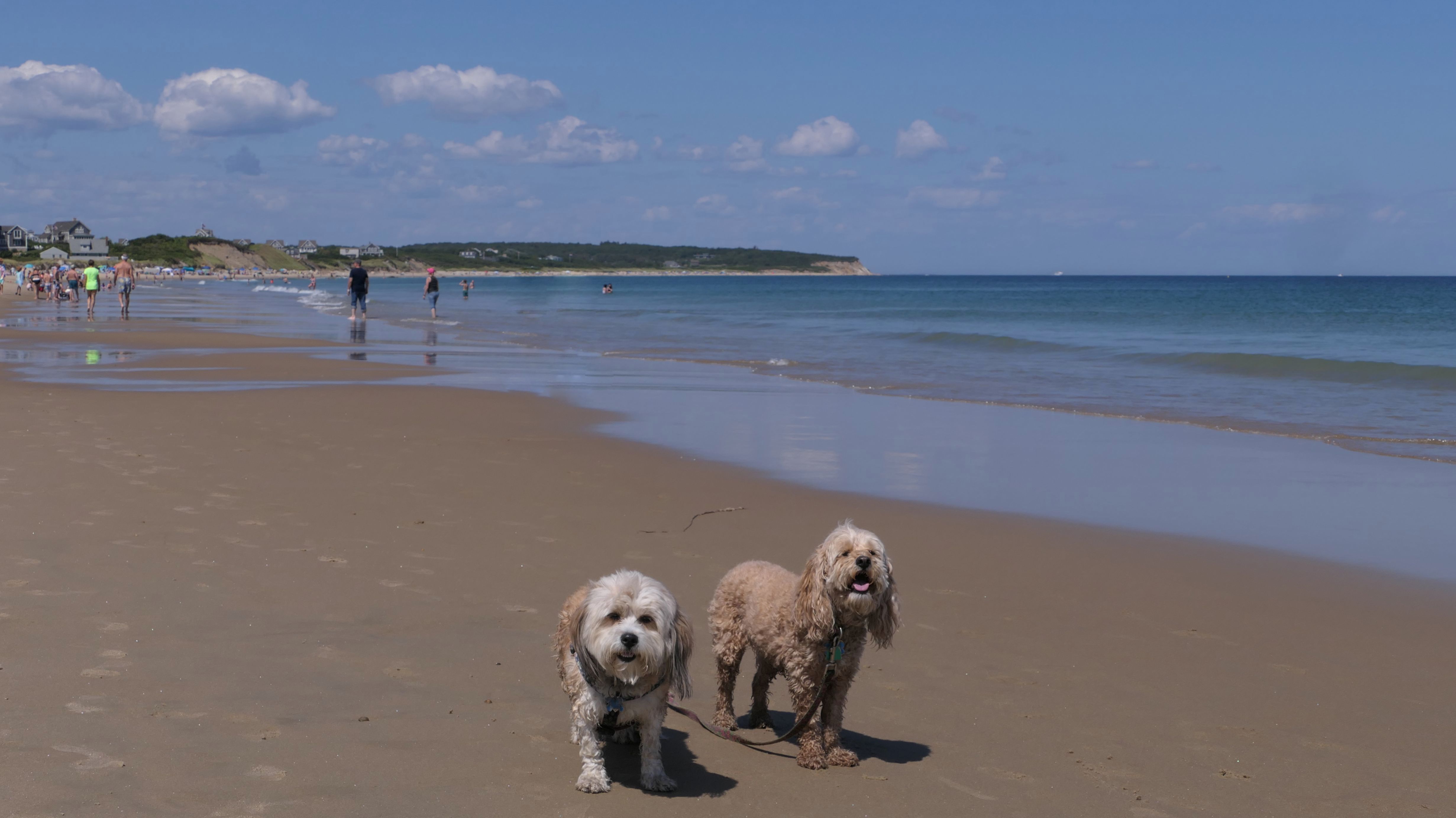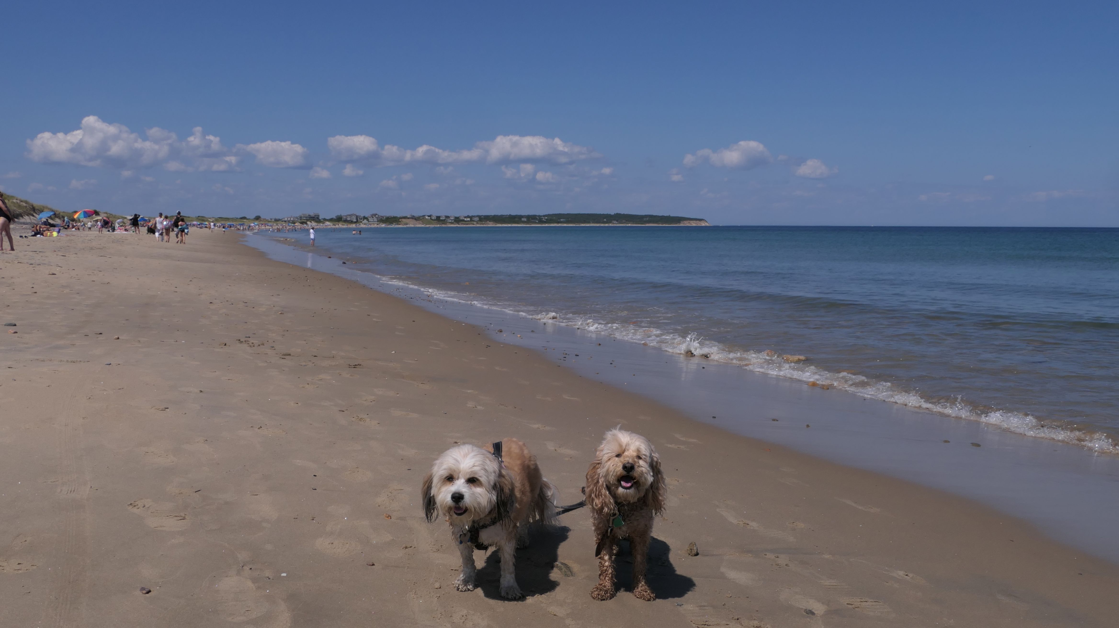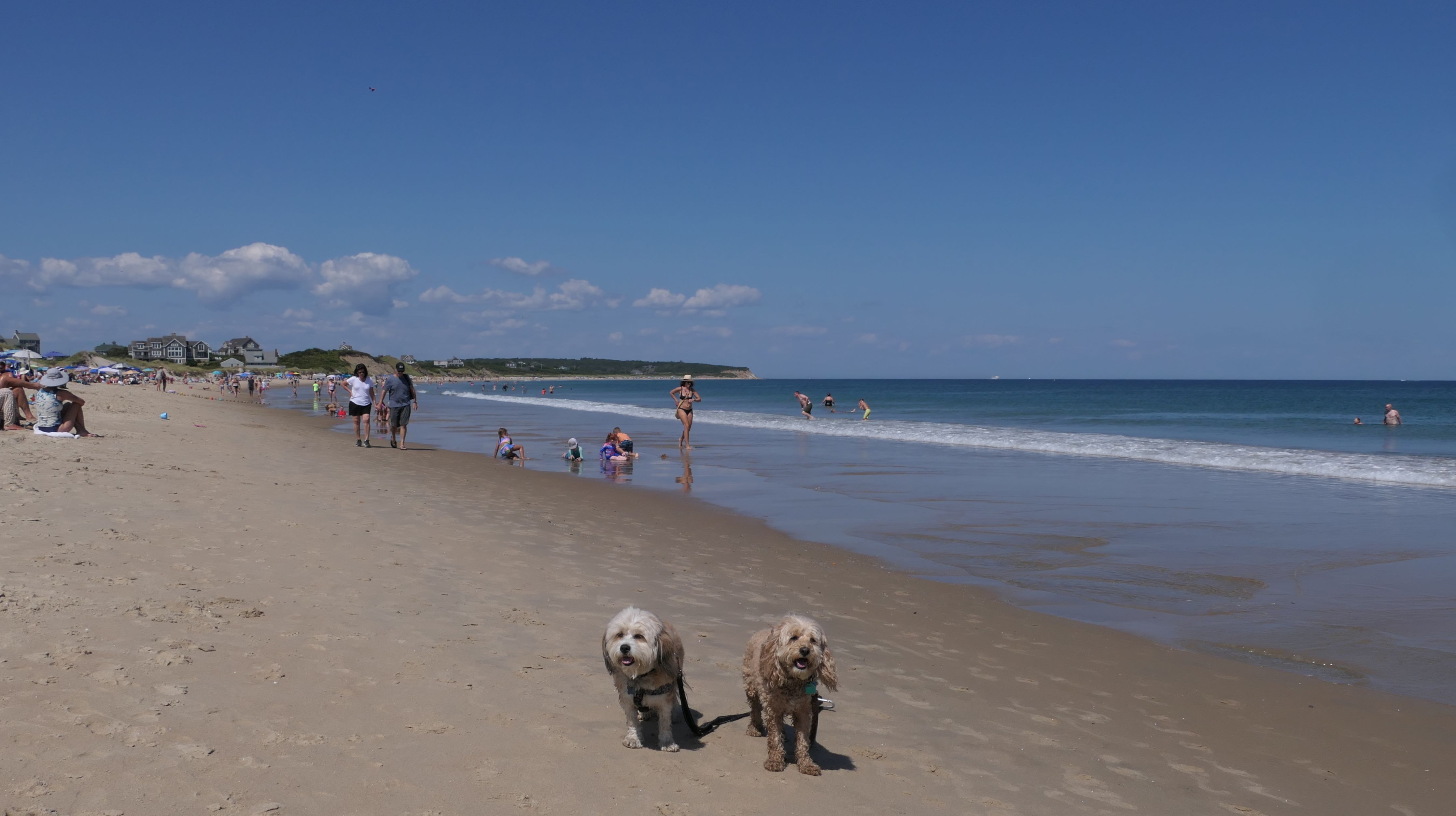 This was the second of four beaches on our Block Island beach adventure. This is probably the most popular beach on the island. It's a 20 minute walk from the ferries, has crystal clear water, and mild waves that are great for families. It goes without saying that leashed dogs are allowed here too, like most (if not all) of the Block Island beaches. We connected from Surf Beach on our way here, so we did not check out the amenities. I've read there is a beach house with bathrooms and showers (I believe there is a charge for the showers). There is also a food stand as well. This was the busiest stretch of beach on our walk. While it's hard to know exactly where one beach begins and the next one ends, we headed to Scotch Beach next, and then Mansion Beach.