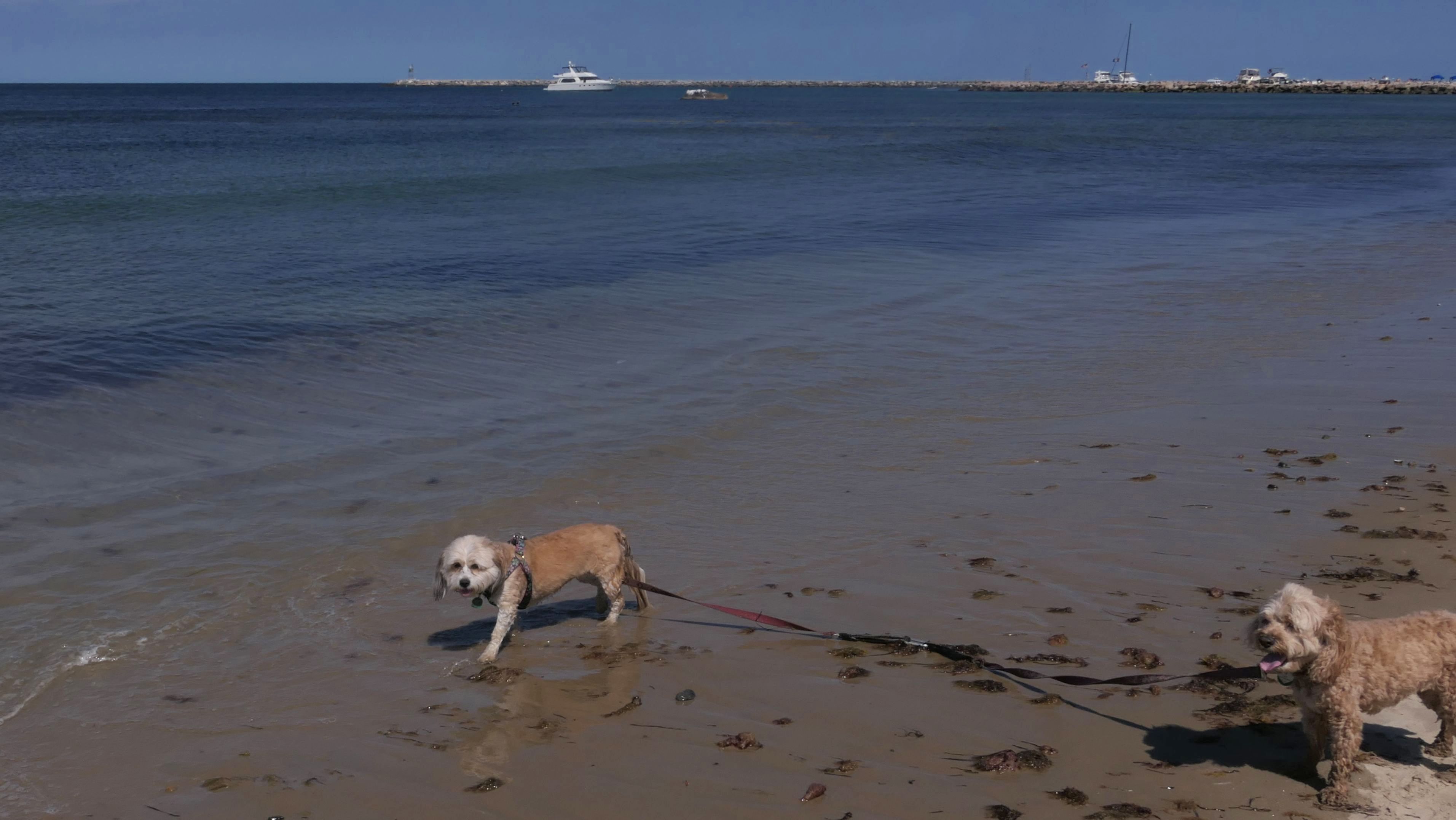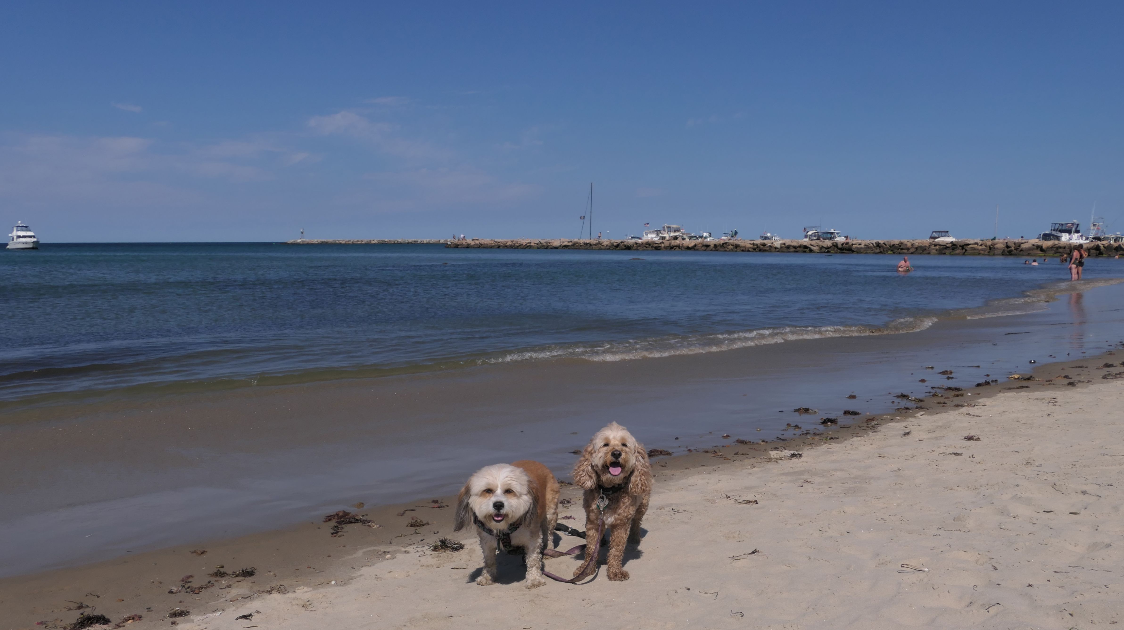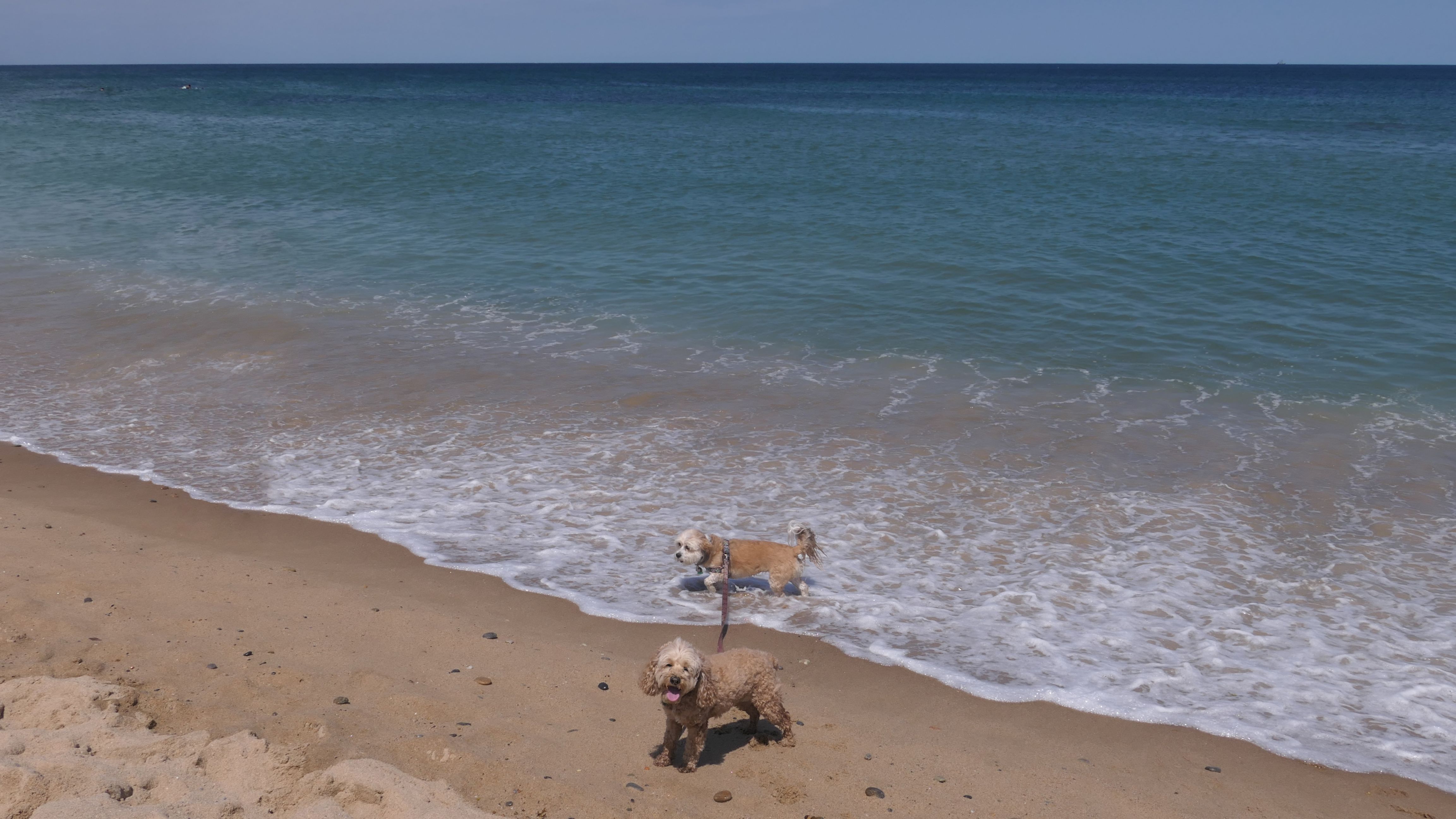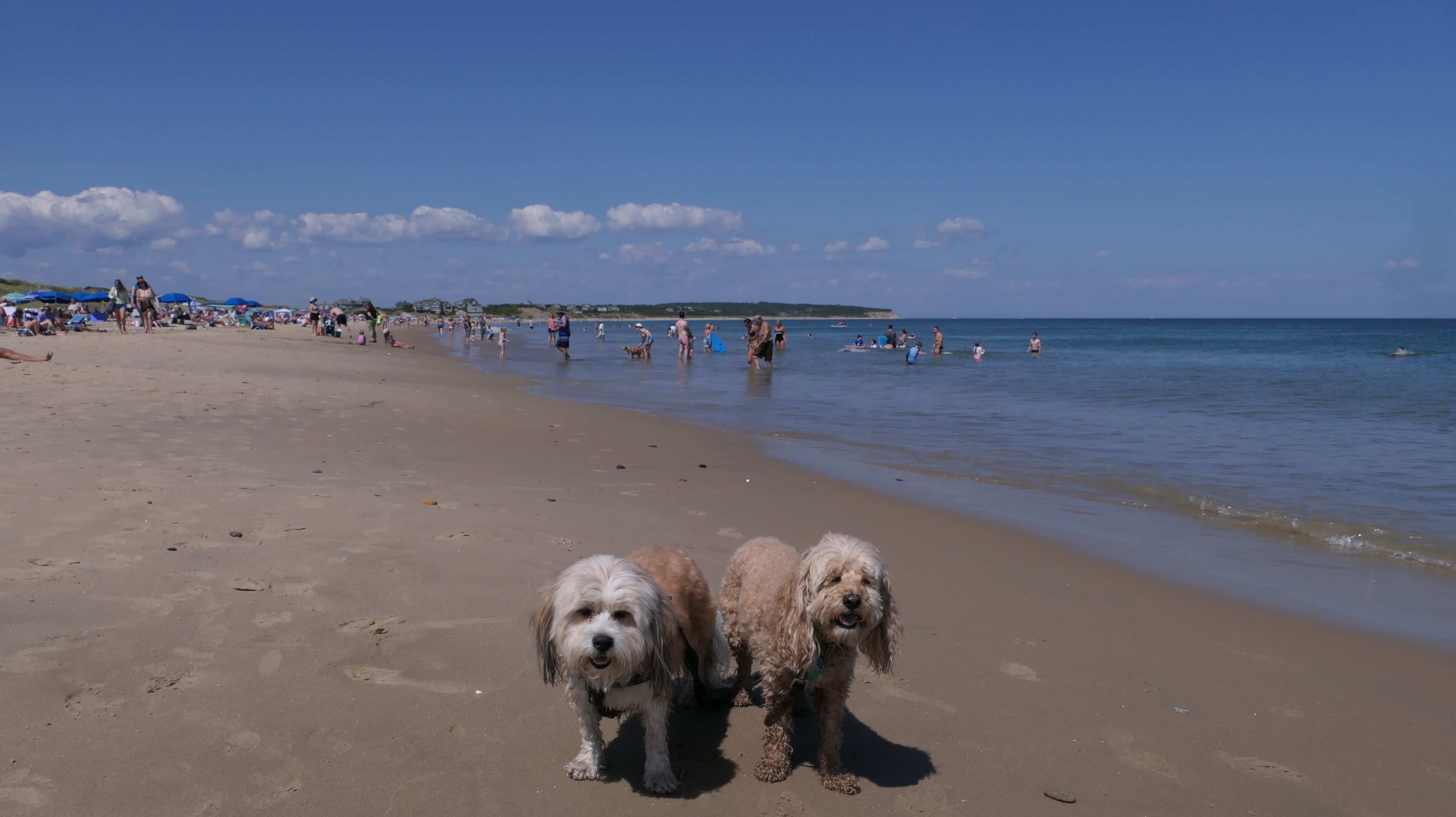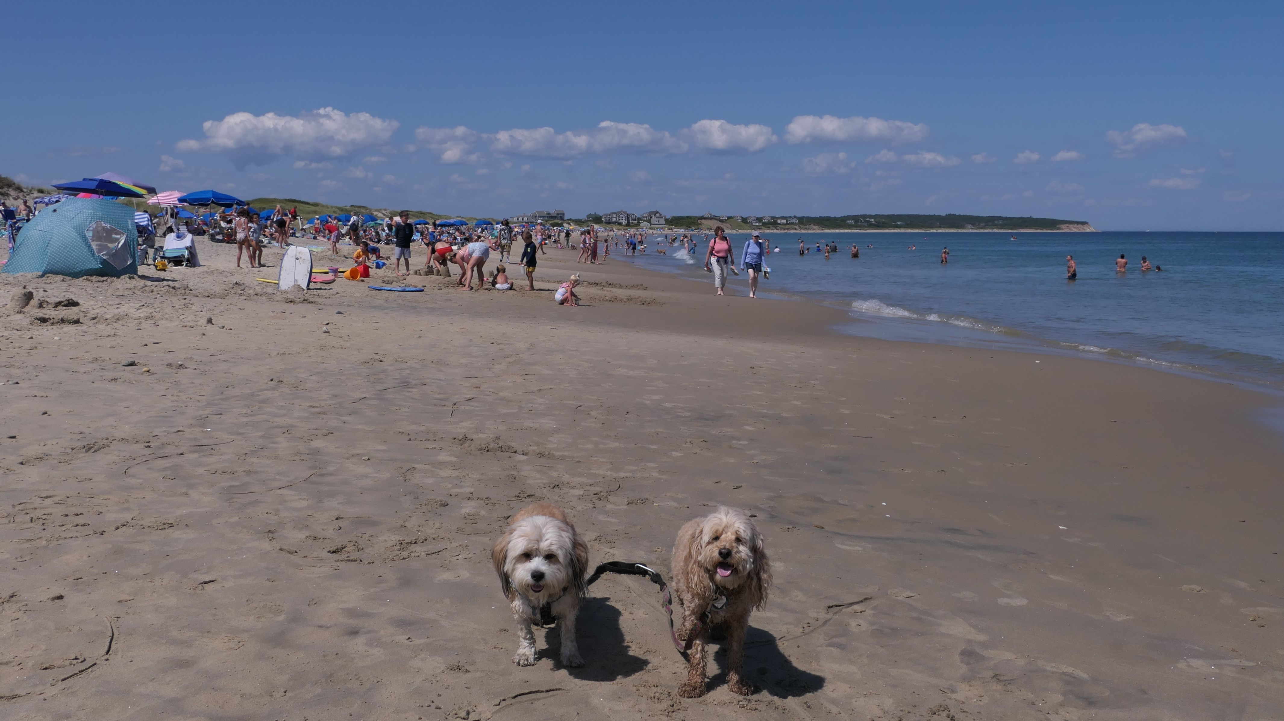 This was the second of four beaches on our Block Island beach adventure. This is probably the most popular beach on the island. It's a 20 minute walk from the ferries, has crystal clear water, and mild waves that are great for families. It goes without saying that leashed dogs are allowed here too, like most (if not all) of the Block Island beaches. We connected from Surf Beach on our way here, so we did not check out the amenities. I've read there is a beach house with bathrooms and showers (I believe there is a charge for the showers). There is also a food stand as well. This was the busiest stretch of beach on our walk. While it's hard to know exactly where one beach begins and the next one ends, we headed to Scotch Beach next, and then Mansion Beach.