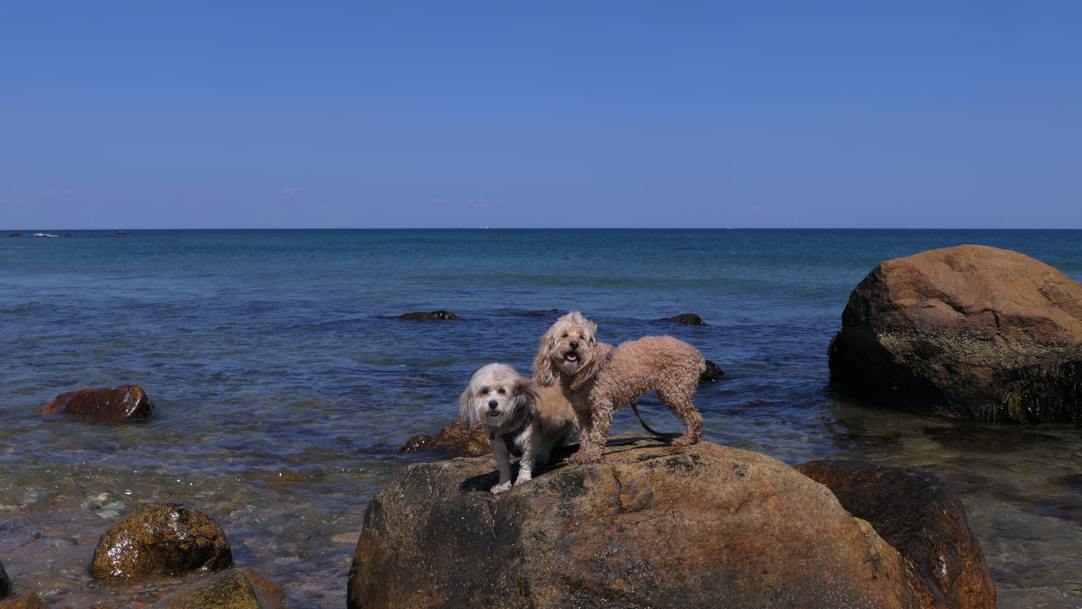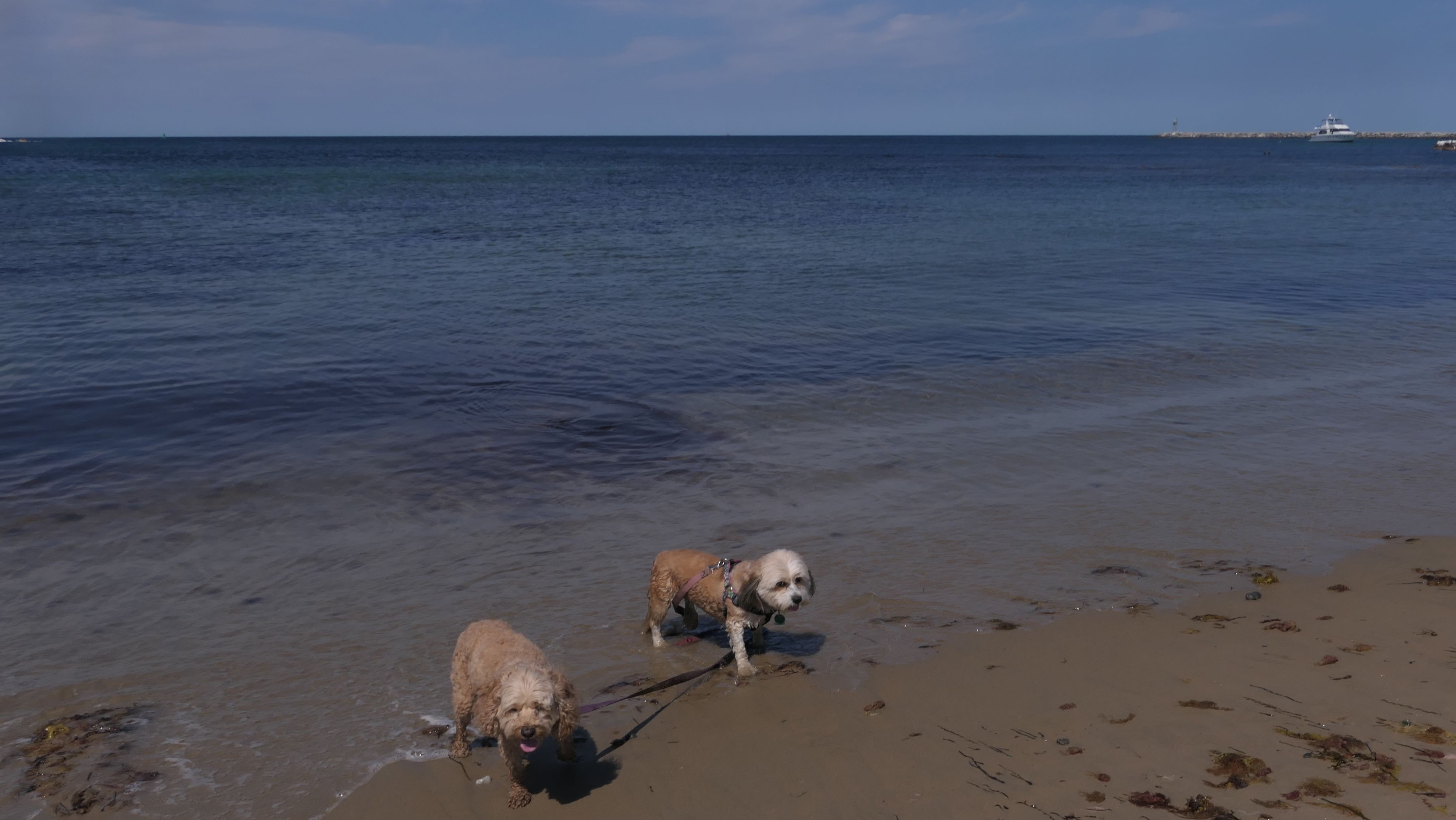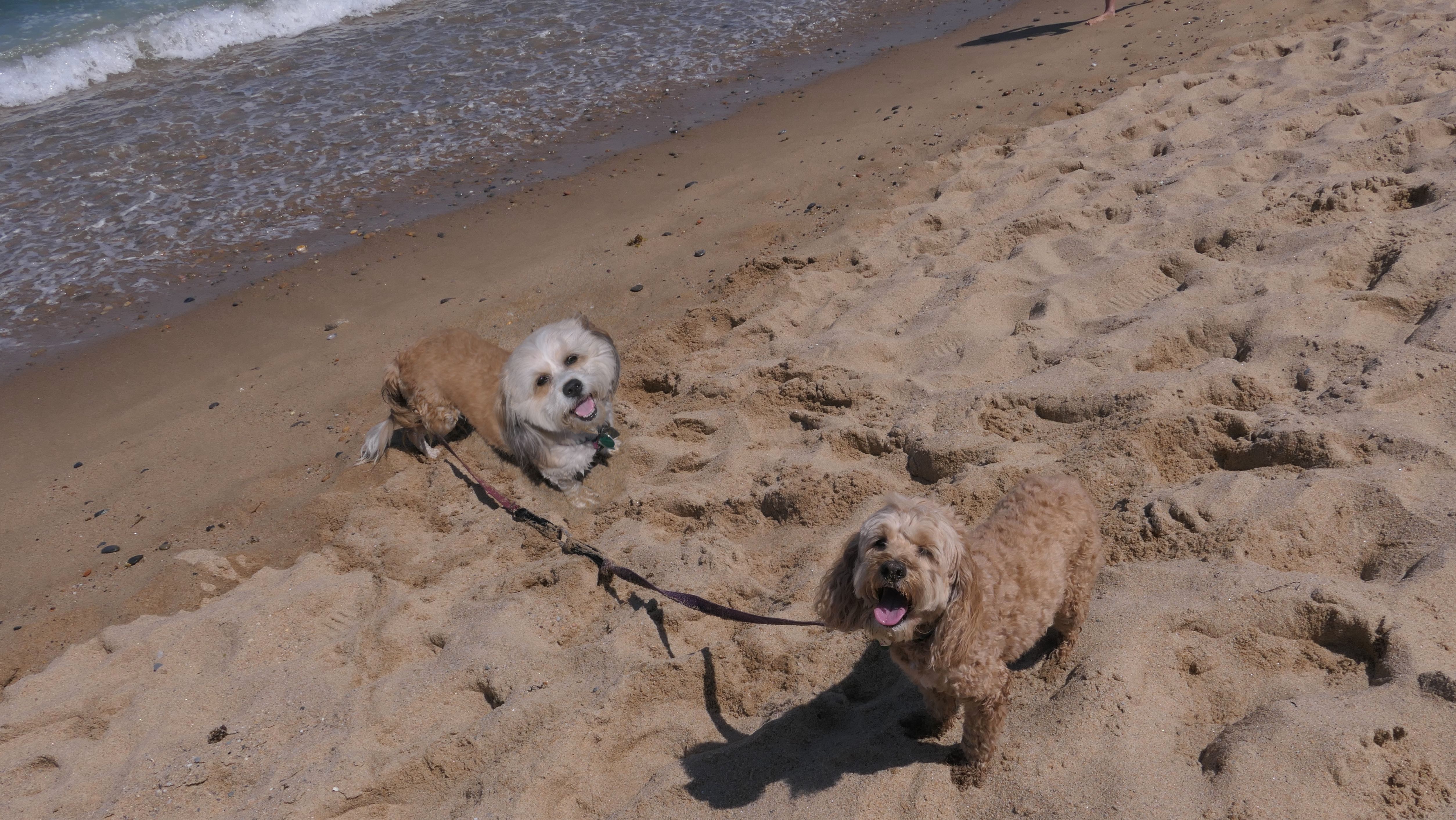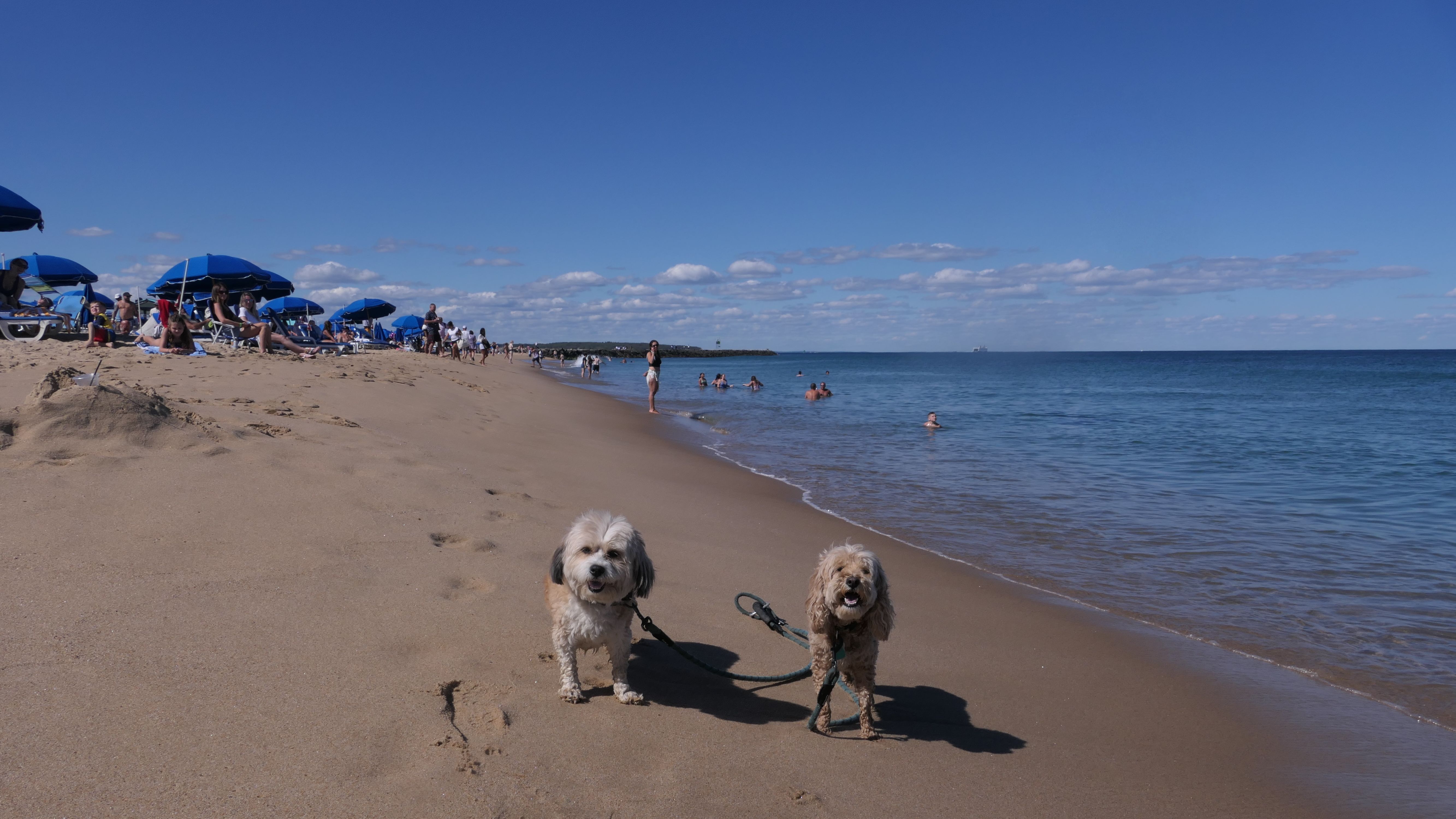 This was the second of four beaches on our Block Island beach adventure. This is probably the most popular beach on the island. It's a 20 minute walk from the ferries, has crystal clear water, and mild waves that are great for families. It goes without saying that leashed dogs are allowed here too, like most (if not all) of the Block Island beaches. We connected from Surf Beach on our way here, so we did not check out the amenities. I've read there is a beach house with bathrooms and showers (I believe there is a charge for the showers). There is also a food stand as well. This was the busiest stretch of beach on our walk. While it's hard to know exactly where one beach begins and the next one ends, we headed to Scotch Beach next, and then Mansion Beach.