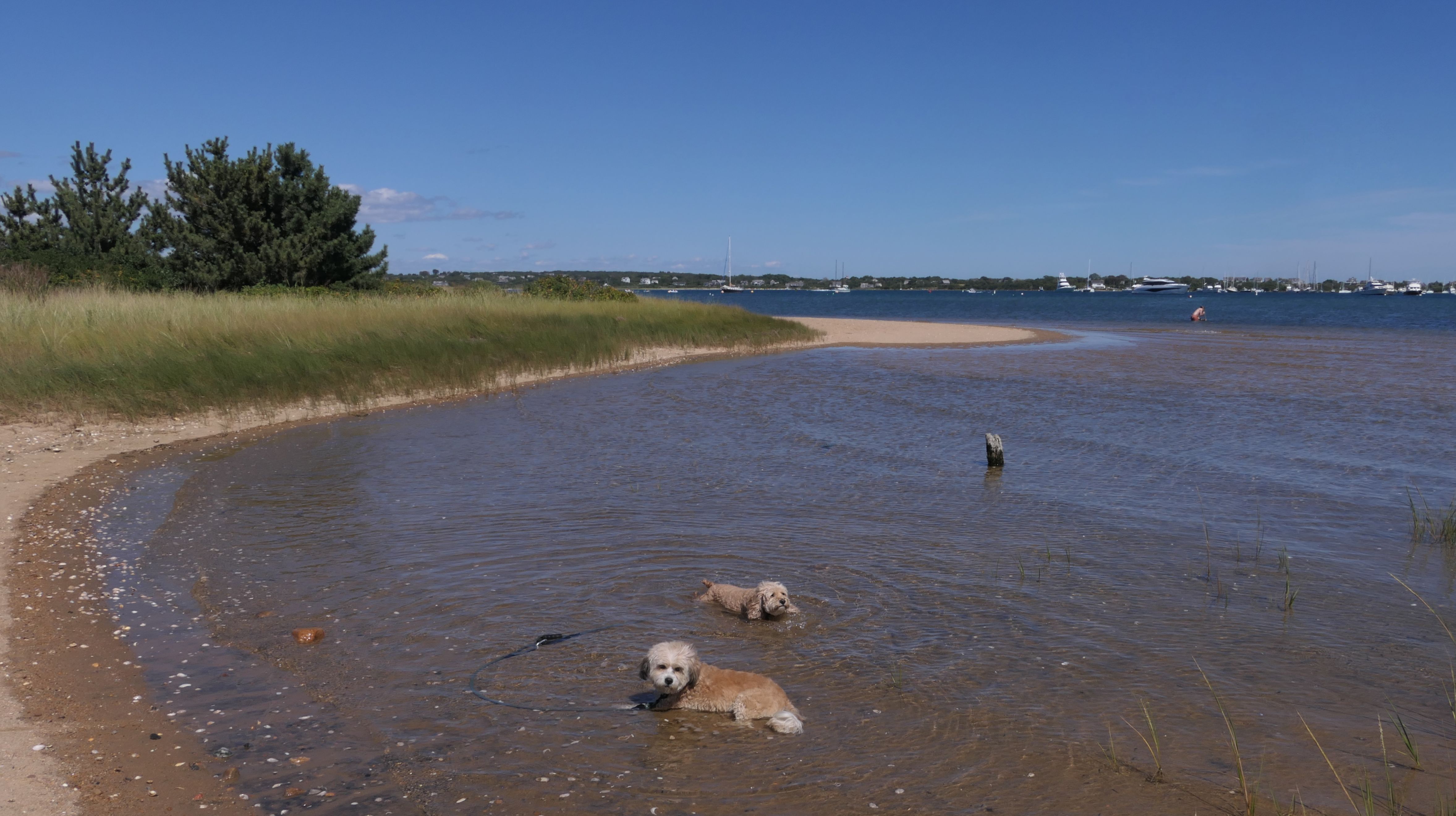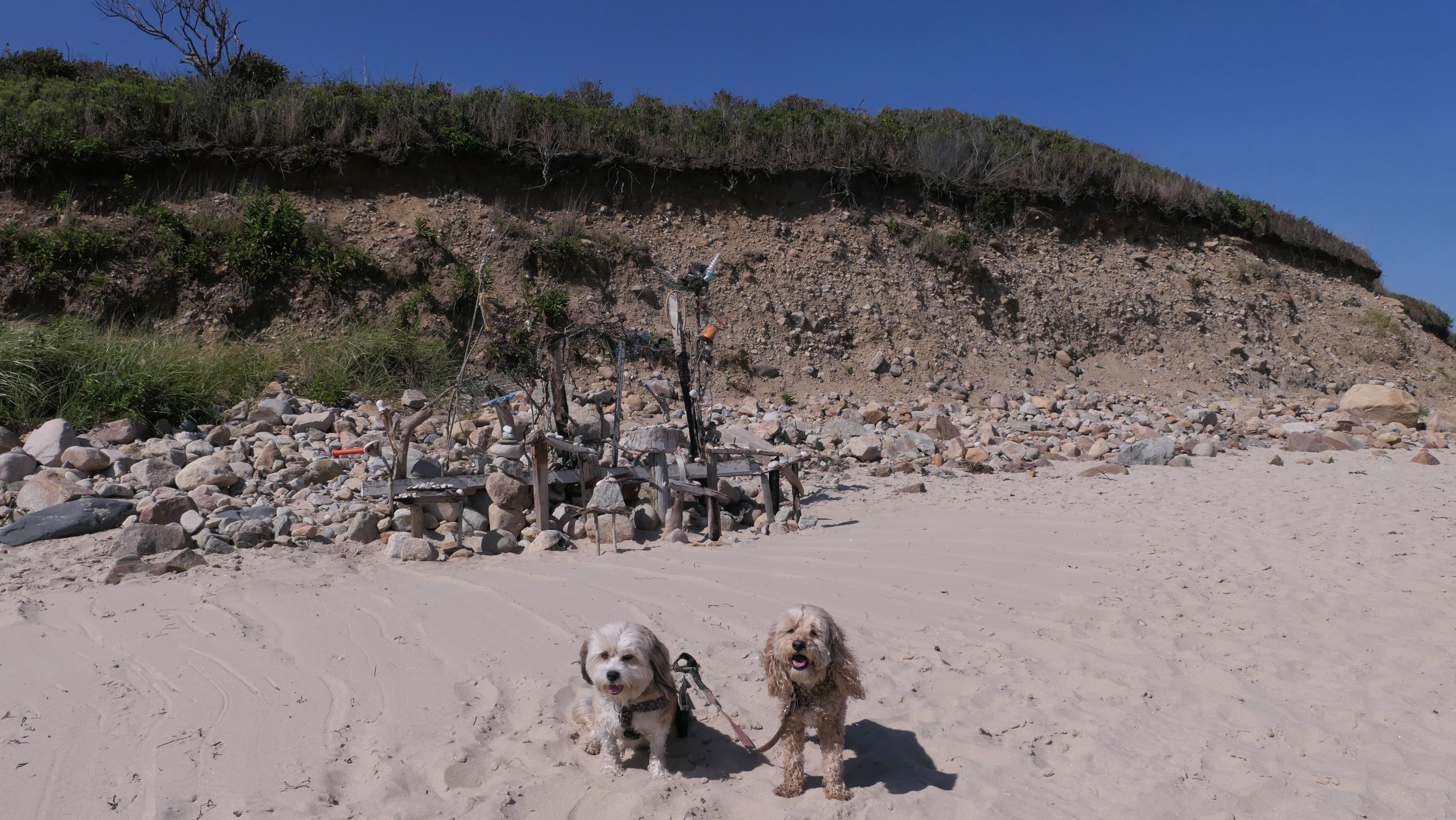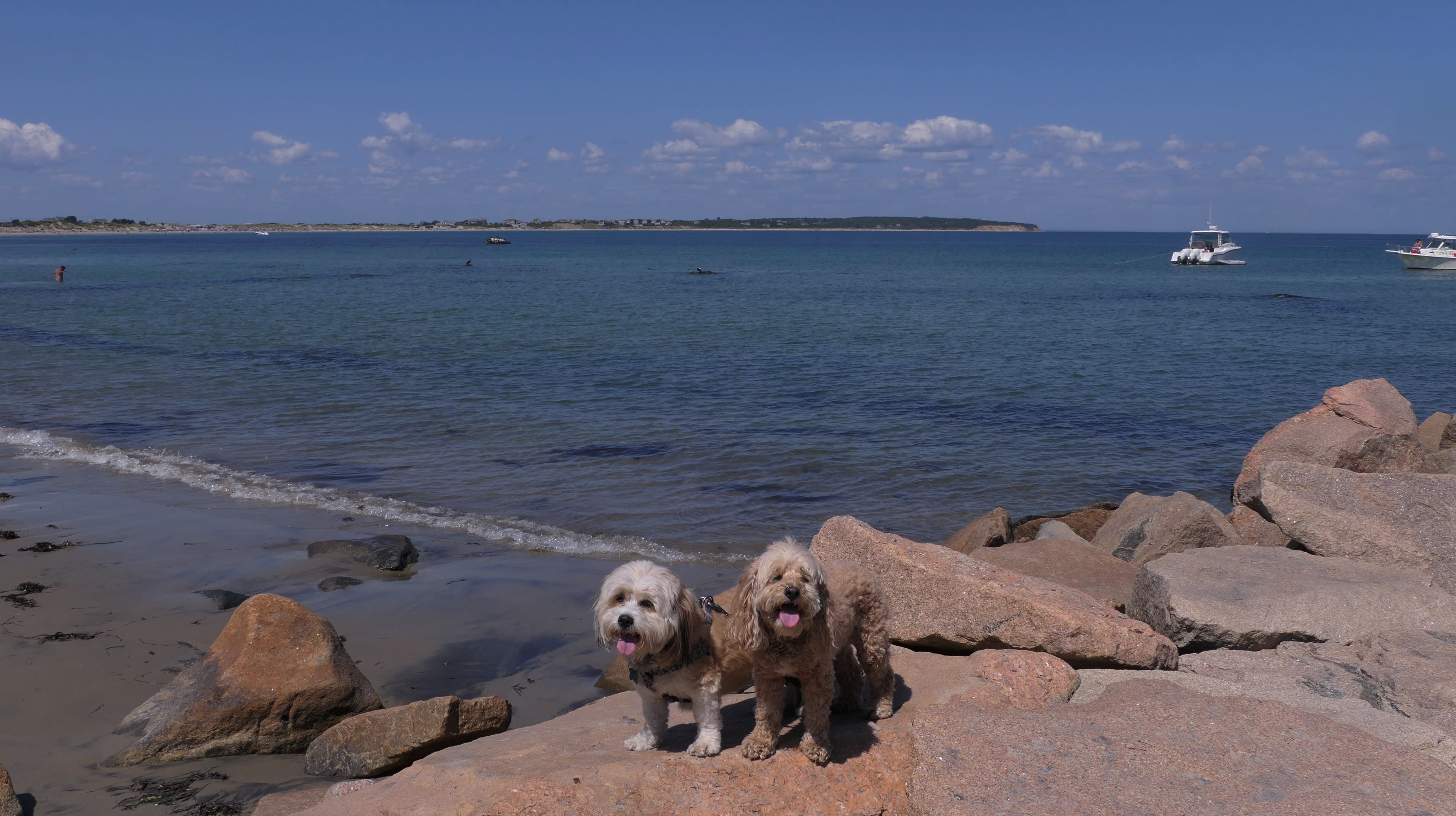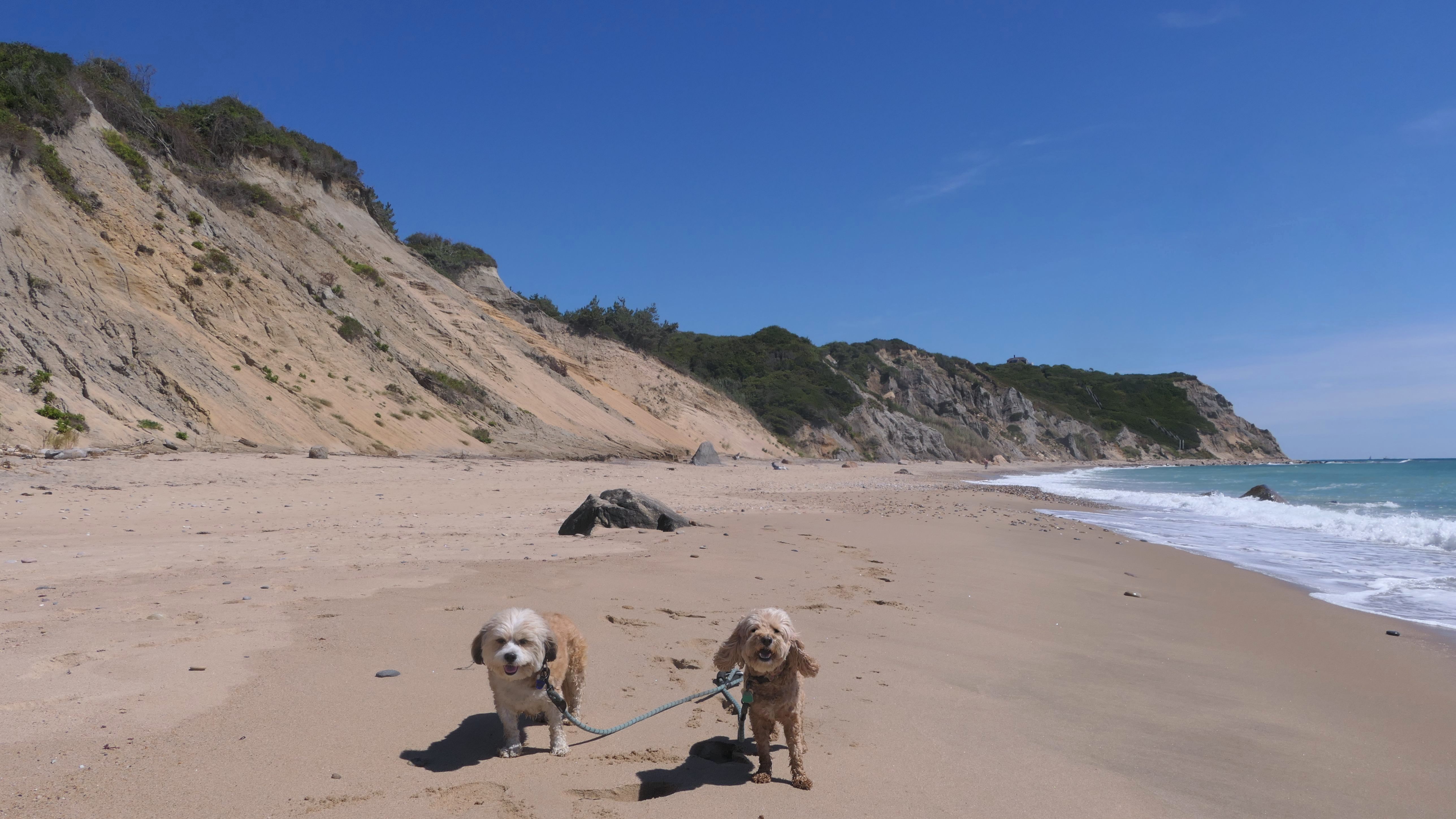 We walked here from nearby Charleston Beach. The cove opens up to the salt pond, and Mandy and Lexi both took the opportunity to sit in the calm salt water for a bit.