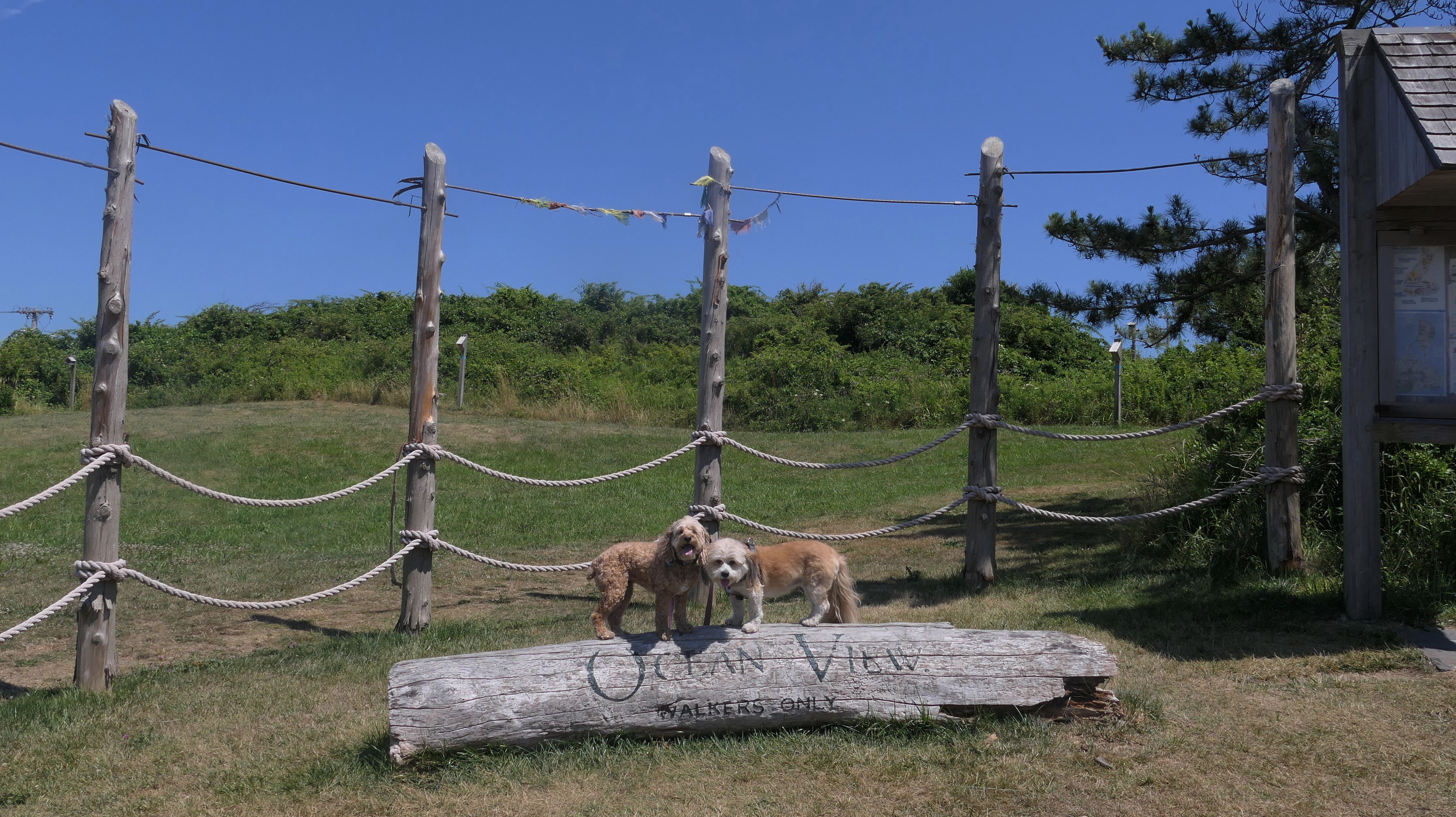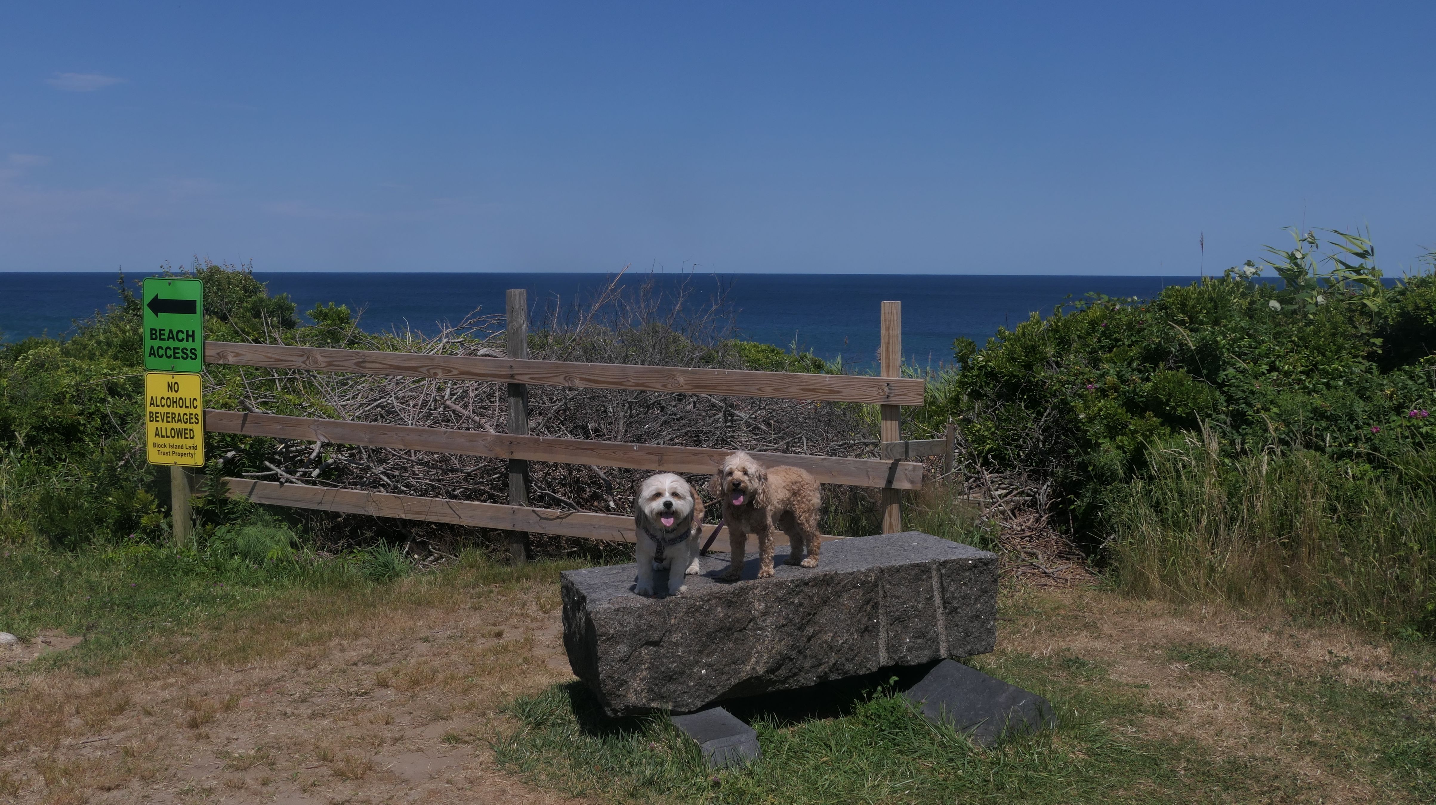 The is a small preserve with no trails, maintained by Block Island Land Conservancy. We used it as a resting spot, taking a break by sitting at the picnic tables. There is a scenic salt pond, that was impossible to get a picture of it with the dogs in it. There is also nice views of Surf Beach across the street.