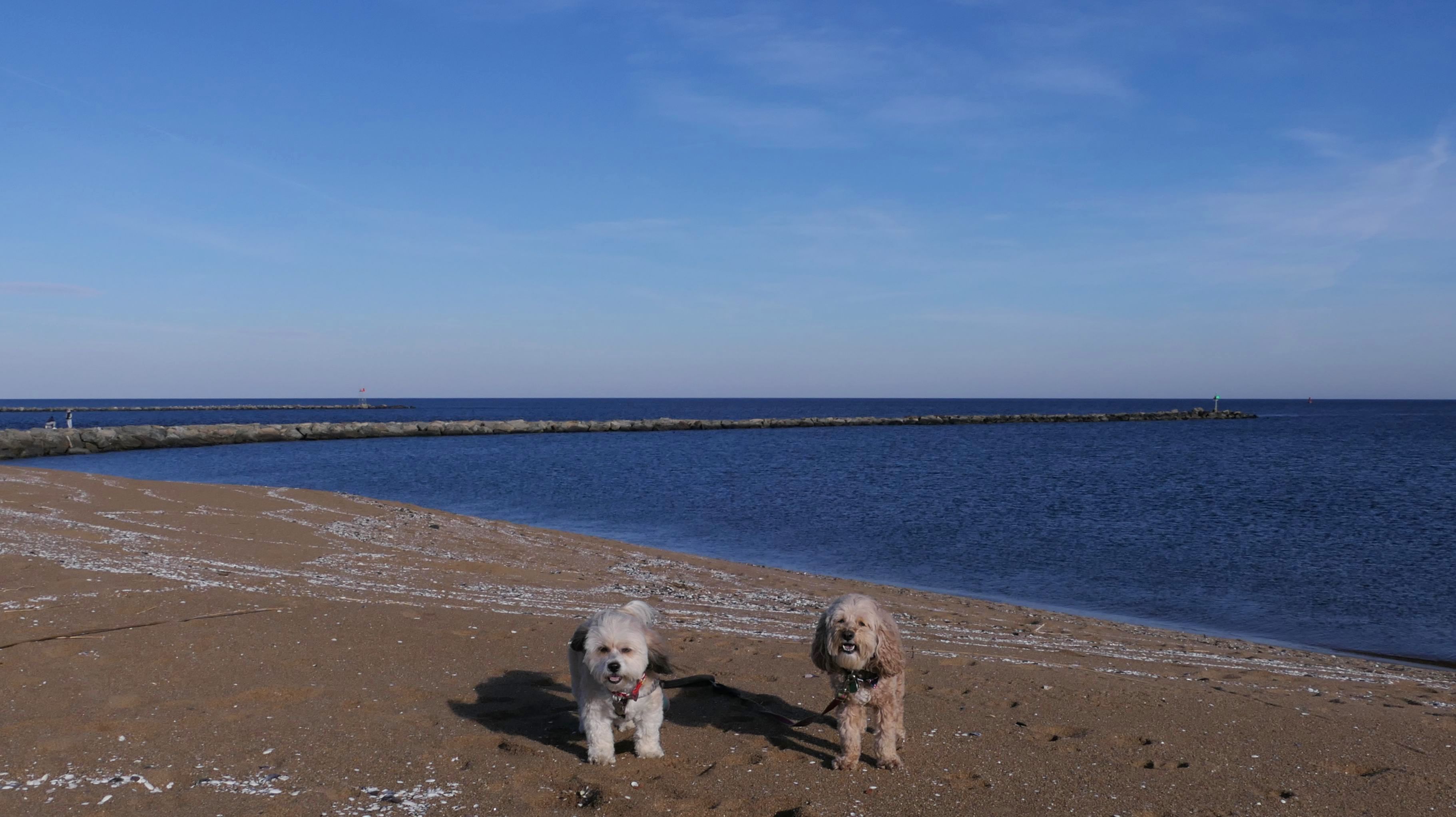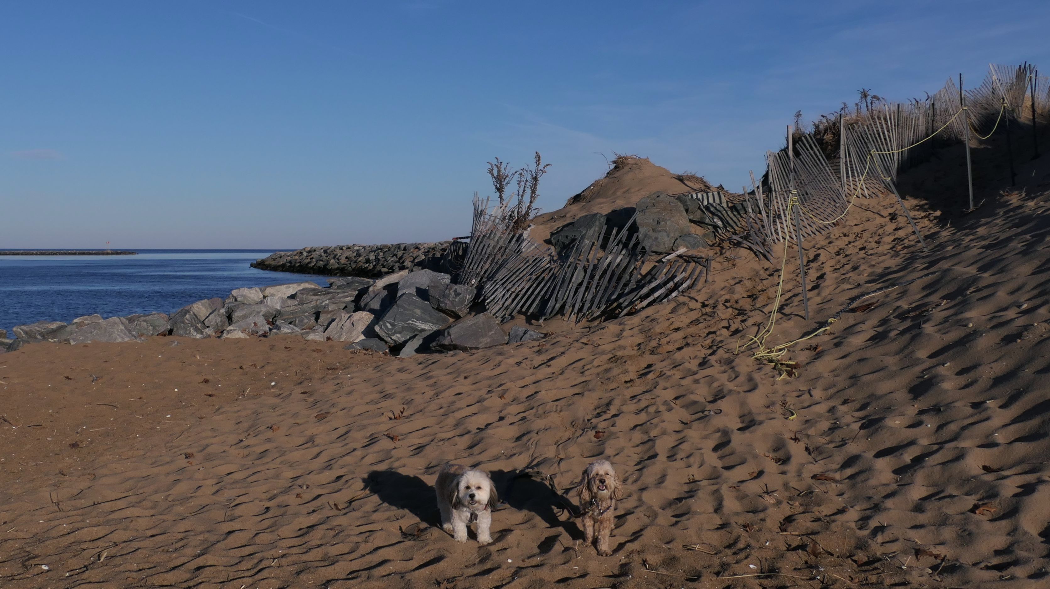 This is a very impressive beach! Dogs are allowed from October 15th until May 15th. There is an off-leash area as well, but I'm not sure exactly where it was. There was some dogs off-leash throughout the beach. The sand is sort of a golden brown here, which really gives the beach a unique look compared to most of the other beaches we've visited. Many of the photos don't look like December! There's no real trail here, but we walked a four mile loop that connected to Newbury Beach in Newbury. While it was a mild day for December, temps were in the low 50's, the water had to be real cold. That didn't stop Mandy and Lexi! They decided to walk right into the water! Mandy even laid down in it for about 20 seconds or so! They really do love the beach. Check out the Newbury page for pictures from that part of our adventure.