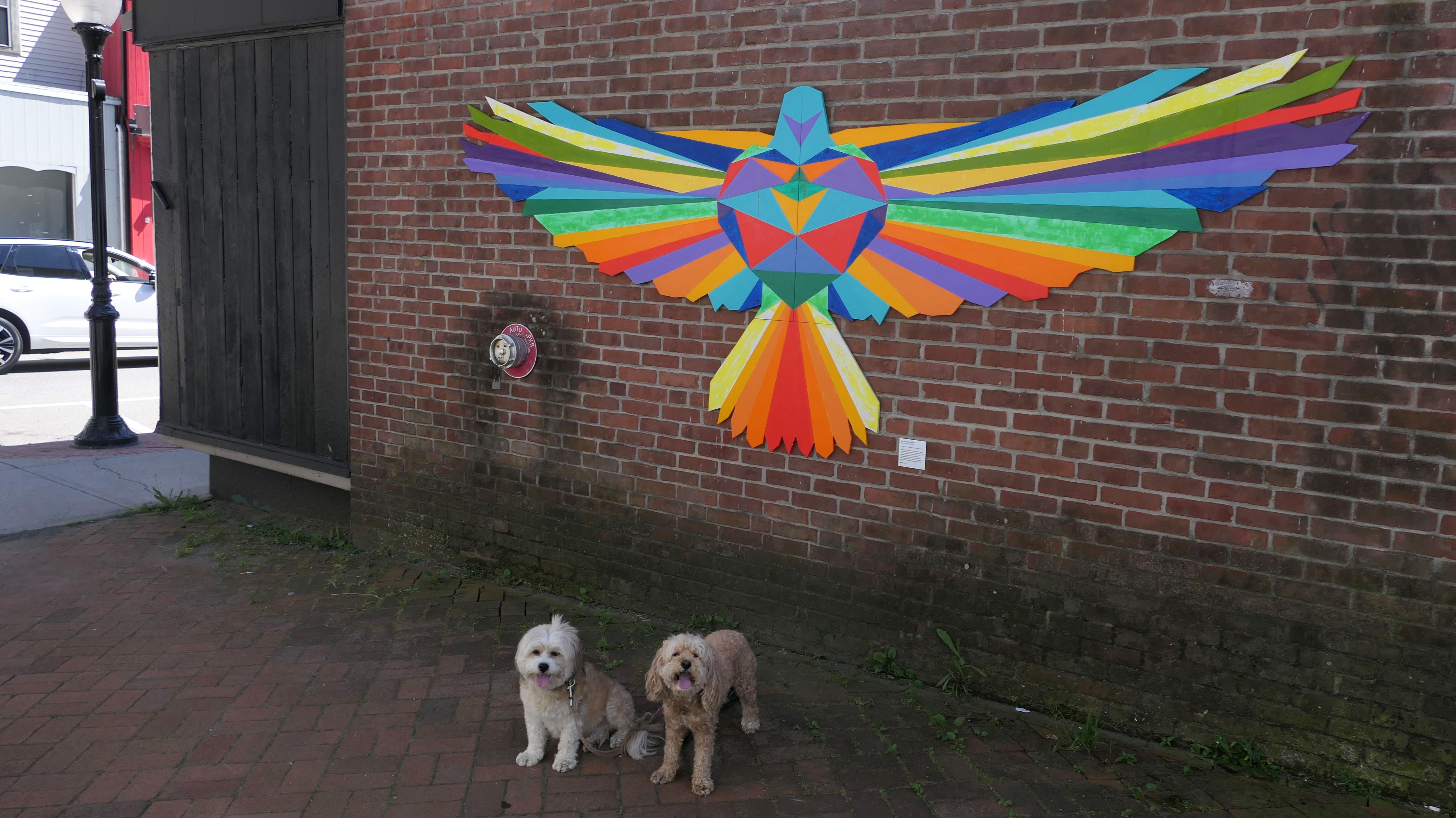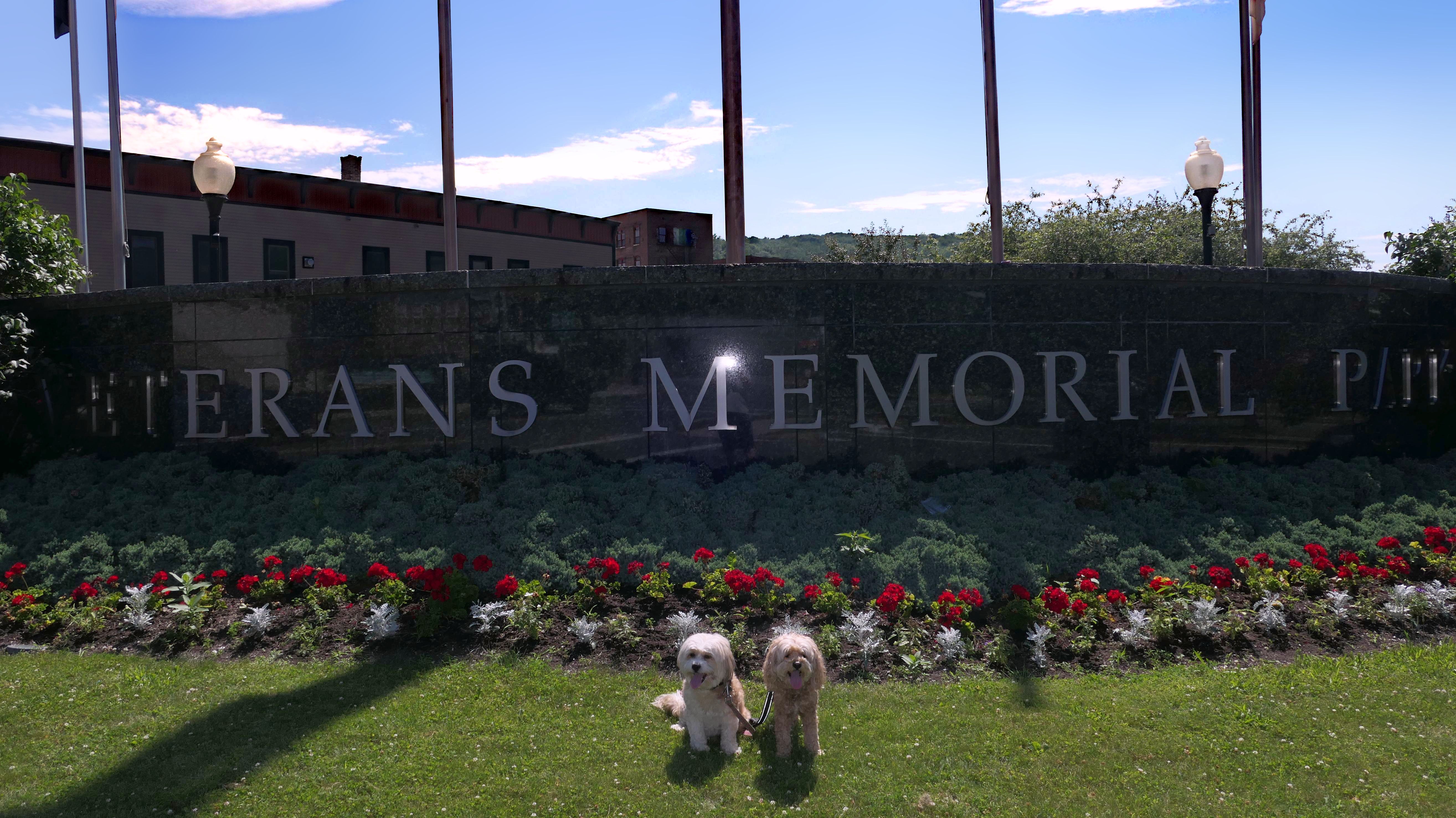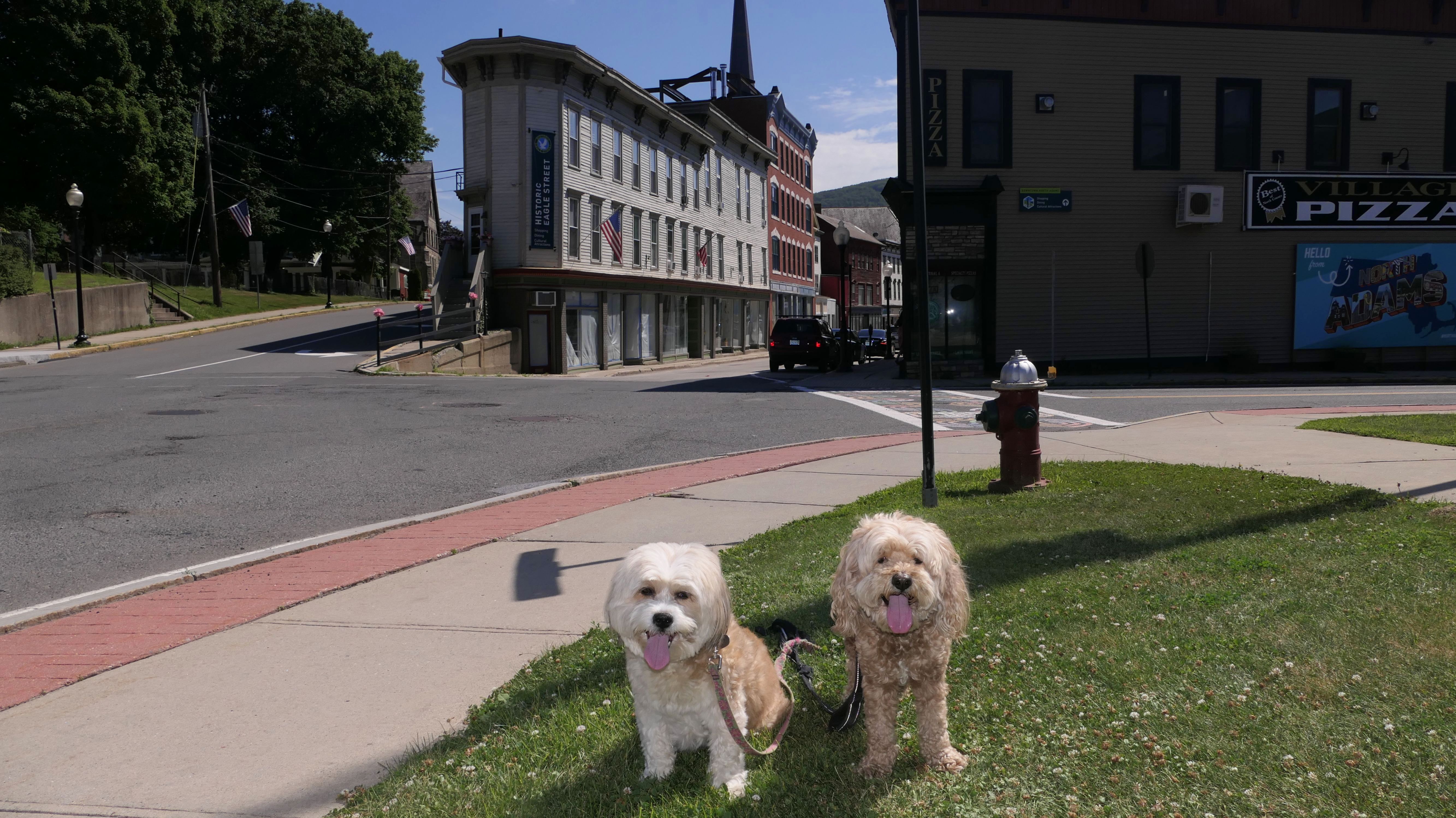 The trail head for this trail is at the end of Marion Avenue, but there is no parking there. Instead, you can park at the Brayton Elementary School where there is a sort of a "pre-trail" path that leads to Pershing Street. From there it's a short walk along Pershing Street and Marion Avenue to "real" trail-head. Alternatively, you can park at the YMCA, but I'm not sure where that is in relation to the trail. At any rate, the trail started out nice. It runs along side Notch Brook, crossing it a couple times on sturdy bridges. About two thirds of the way through, things get dicey. A section of the trail is completely washed out, and it is necessary to walk through the brook to continue. Mandy and Lexi certainly don't mind walking through the water on a hot day, so we continued on. The last part of the trail gets rough. The terrain becomes difficult, and muddy until you reach the waterfall. Getting close to the waterfall requires some effort. It's necessary to cross a pool of water, but it was deeper than Mandy and Lexi like. We got as close as we could, but the pups wouldn't go any further. While most of the 1.2 mile trail is easy, the end of it was a real challenge. I was disappointed we didn't get any closer to the waterfall, which was actually pretty impressive.