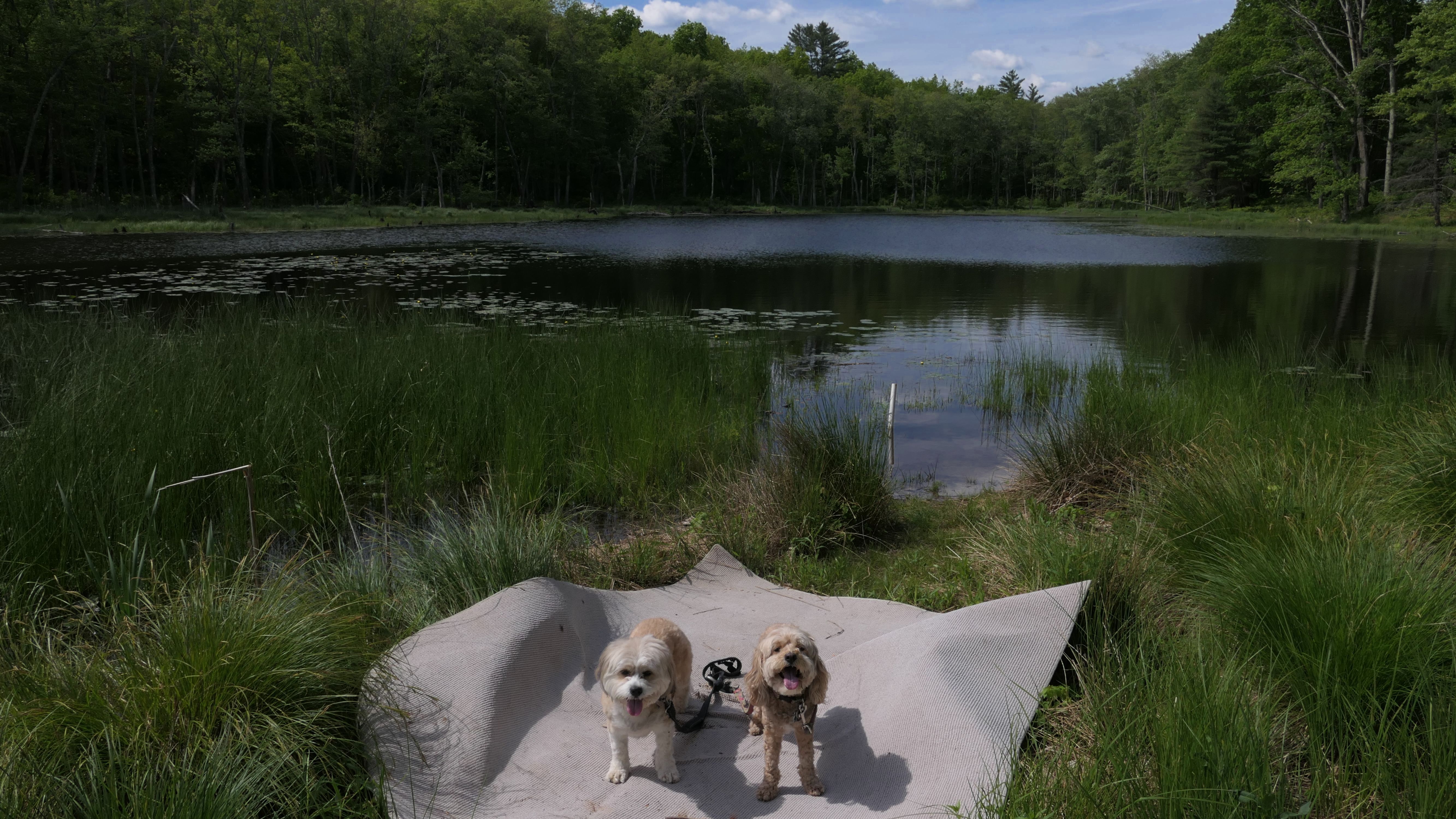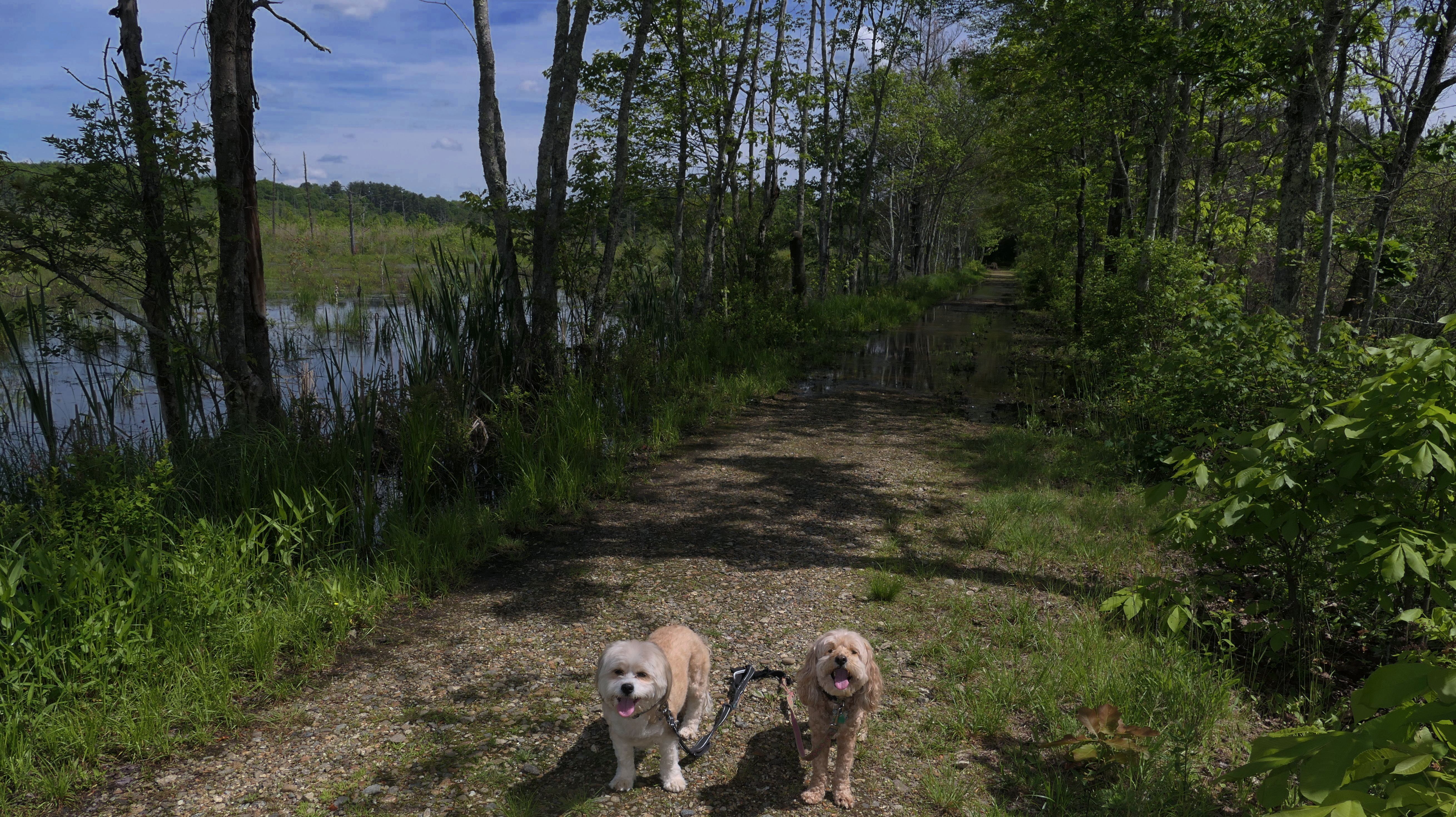 This is a continuation of the trail that started in East Brookfield. The trail widens a short way past the town line, and now resembles a standard rail trail, as opposed to the narrow path on the North Brookfield section. Unfortunately, the trail was washed out. I actually had to pick up the dogs and carry them over the flooded part. It wasn't deep, but it was kind of mucky and I didn't want to have to give them a bath later! The trail crosses Brickyard Road and Bullard Road. We continued past Bullard Road a short distance before turning around. Instead of walking back through the washed out section, we instead took Brickyard Road, past a small pond, and down East Brookfield Road, heading back to East Brookfield where we parked.