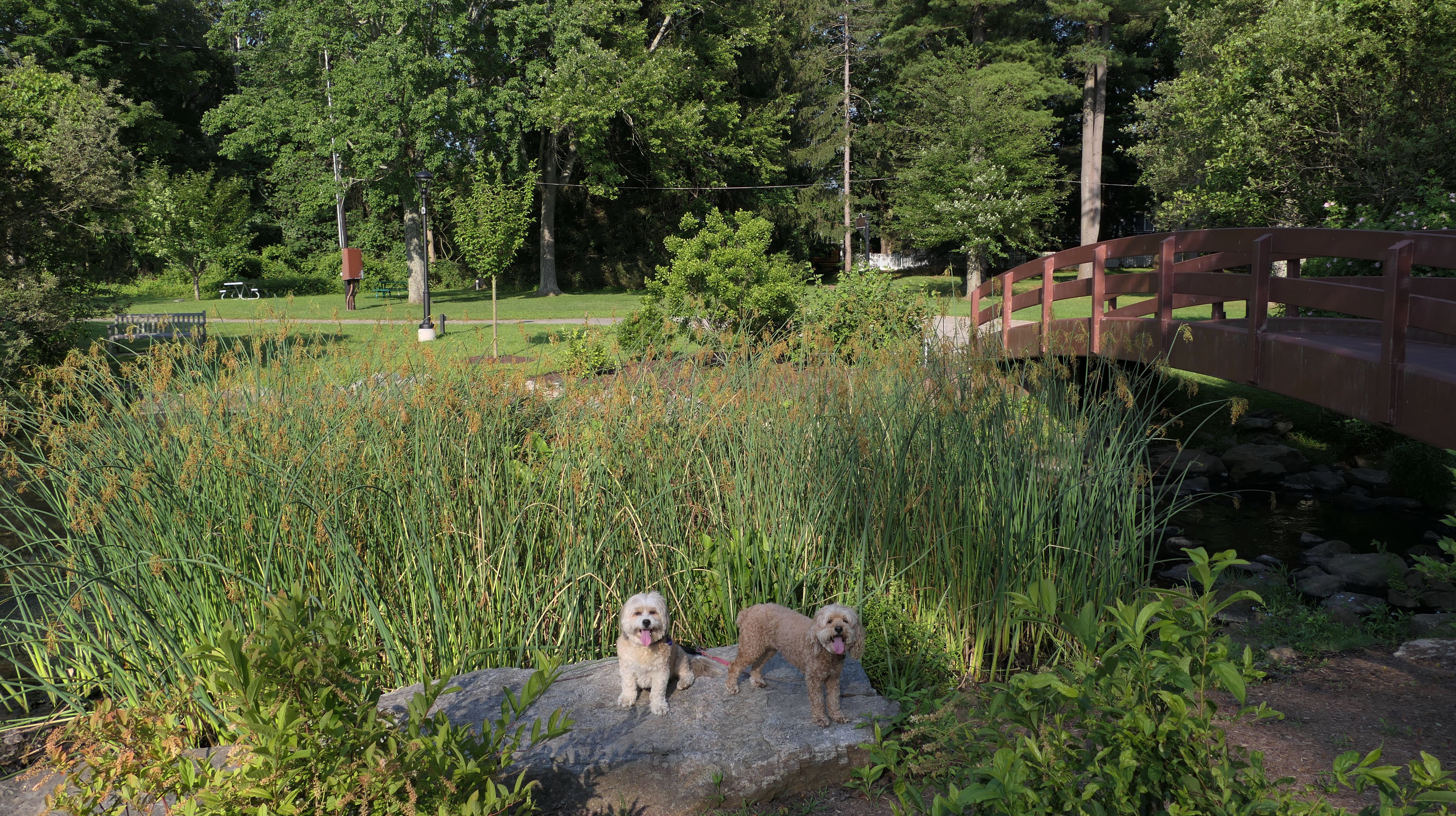 Not to be confused with Wampus Pond Park, Wampus Brook Park is a town park in the center of the Armonk section of town. The park has a series of walking trails, a gazebo, picnic areas, and a couple ponds. People were arriving for a free concert being held at the park, a Bruce Springsteen tribute acts called "Tramps Like Us". I was impressed because the pre-show music was the Umphrey's McGee album "Anchor Drops"! Anyway, we walked through the park, but didn't stay for the concert. Dogs generally don't like loud music. This is a pretty nice park, and a good place for a walk with your dogs.