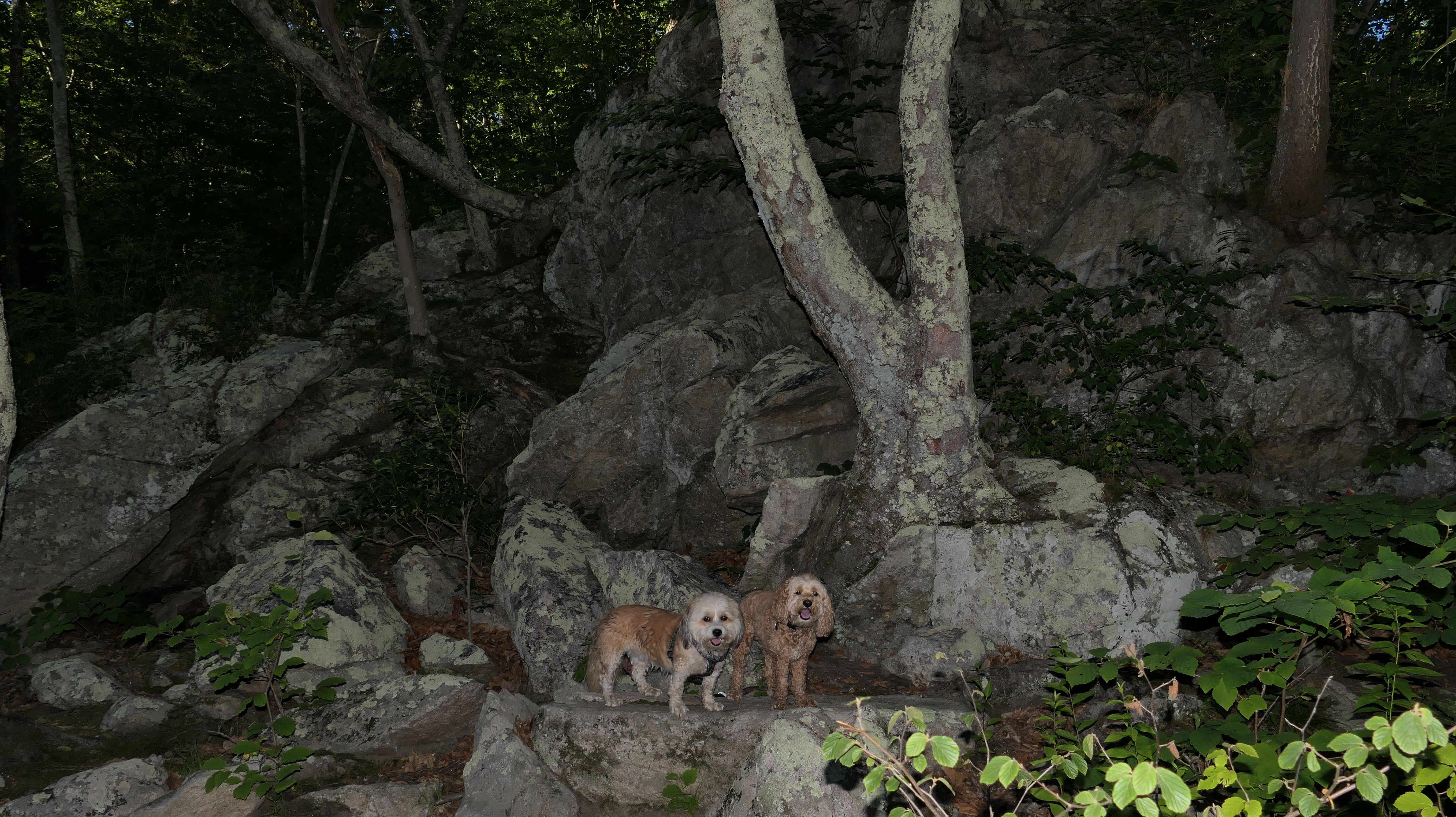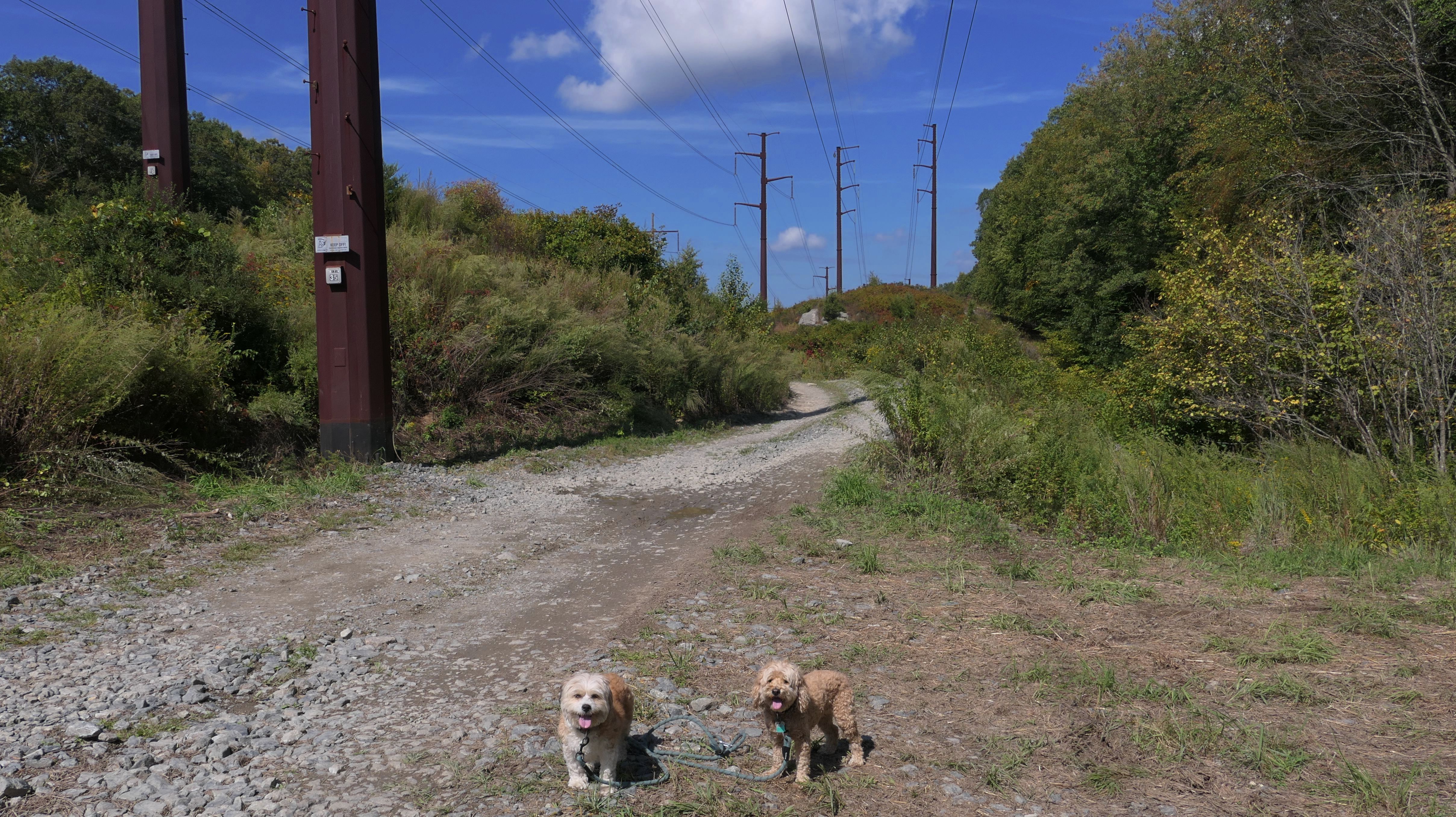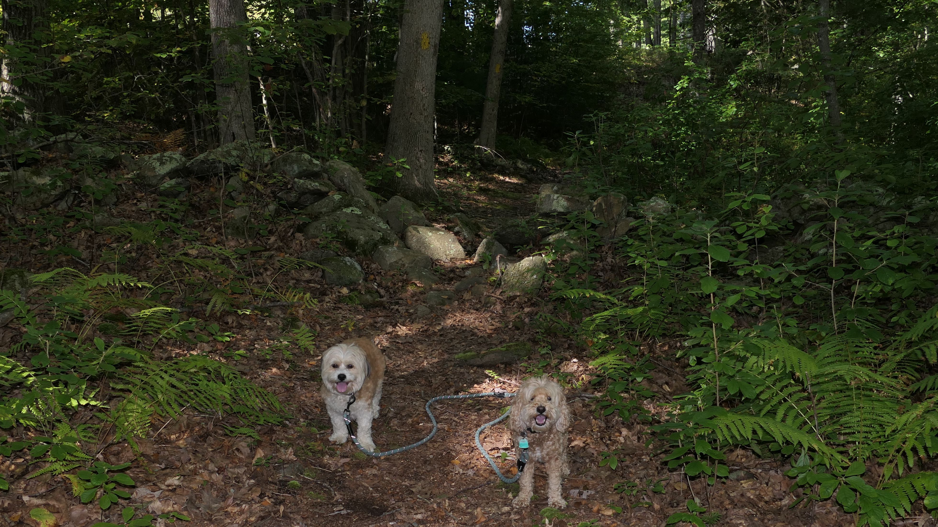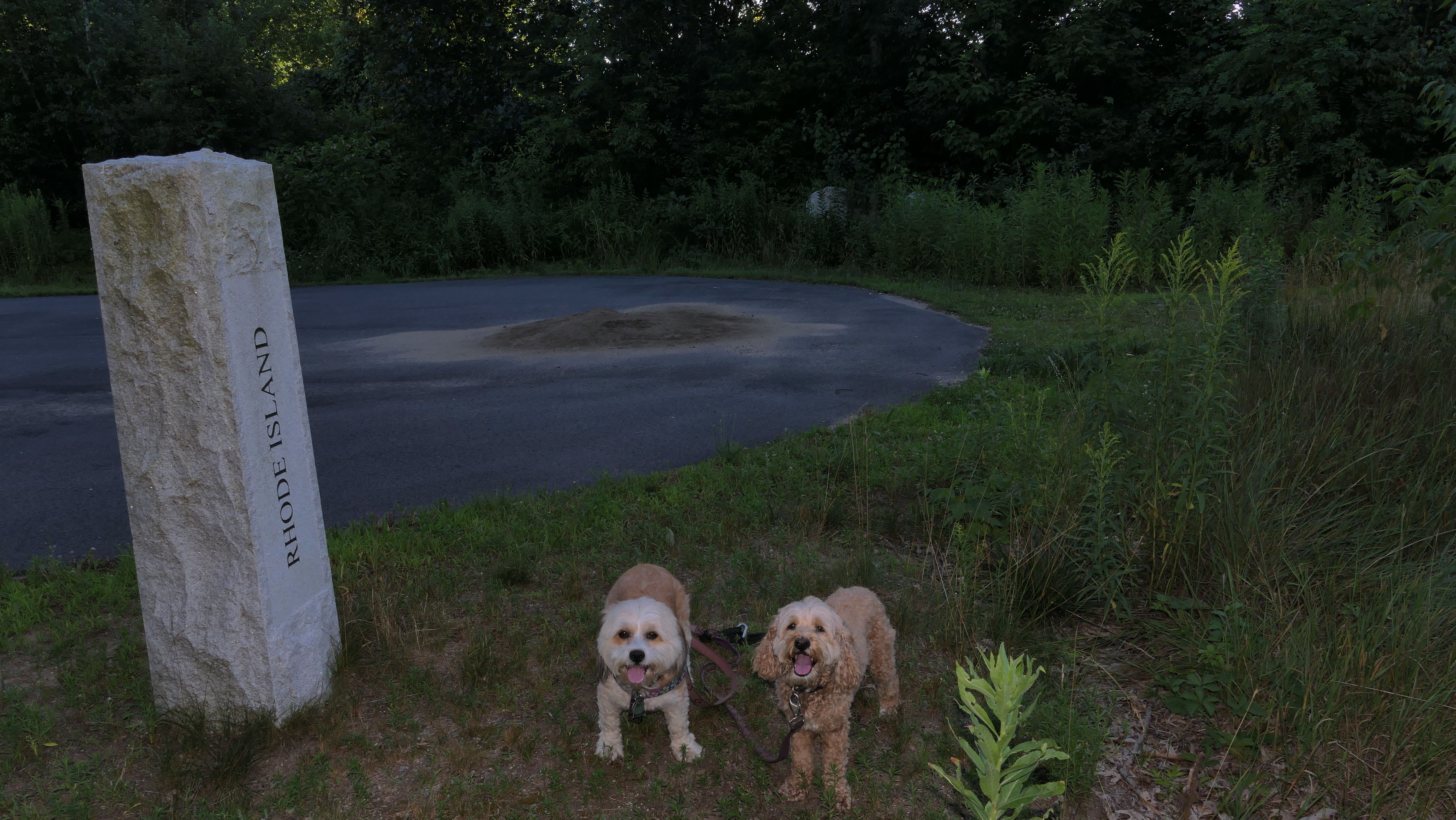 This is a very fun trail. The trail starts in Blackstone, MA but the majority of the trail resides in North Smithfield, RI. The dam and waterfall are in Blackstone. I let the dogs take a quick dip into the river as soon as we got there since it was such a hot day, that's why the dogs look wet in some of these photos. The trail quickly crosses into Rhode Island as it continues along side the Blackstone River. The terrain is rocky and rooty enough to be fun, but not too rocky and rooty to be very difficult. There's a complete landscape change toward the end of the trail as it turns away slightly from the river. Per the route on the All-Trails app, we turned around at the strange old building and headed back. The pictures below are from the North Smithfield, RI section of the trail.