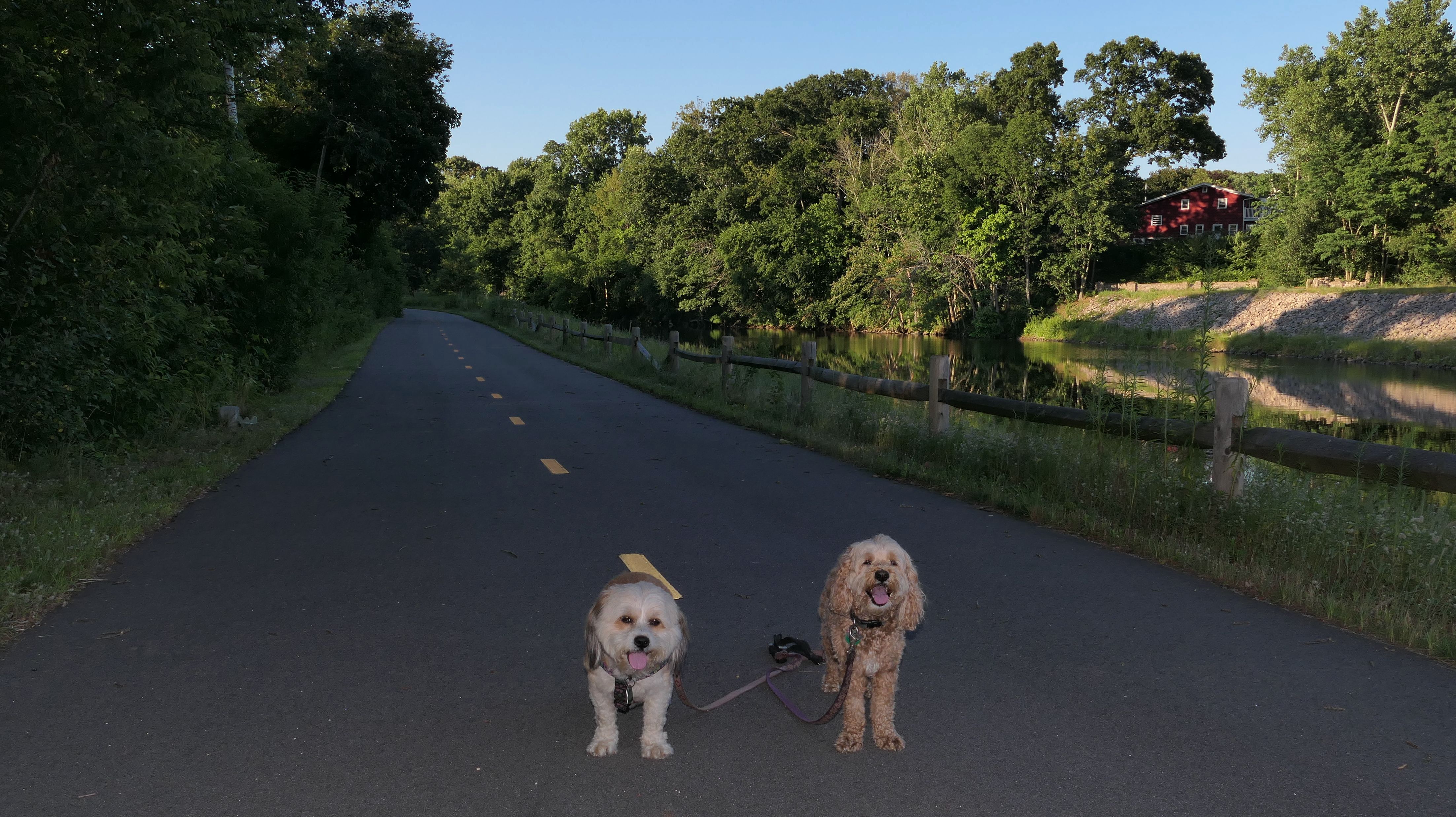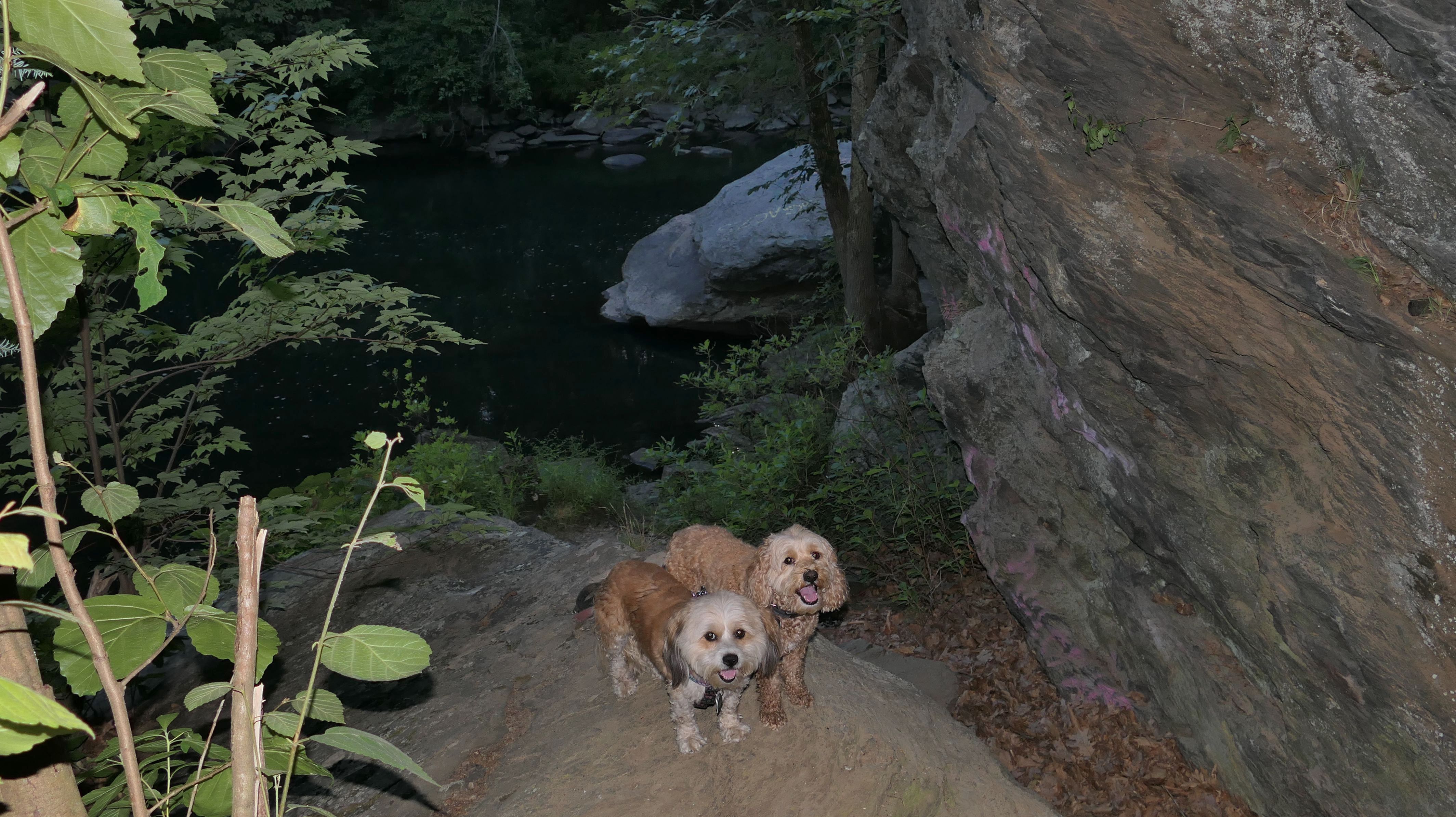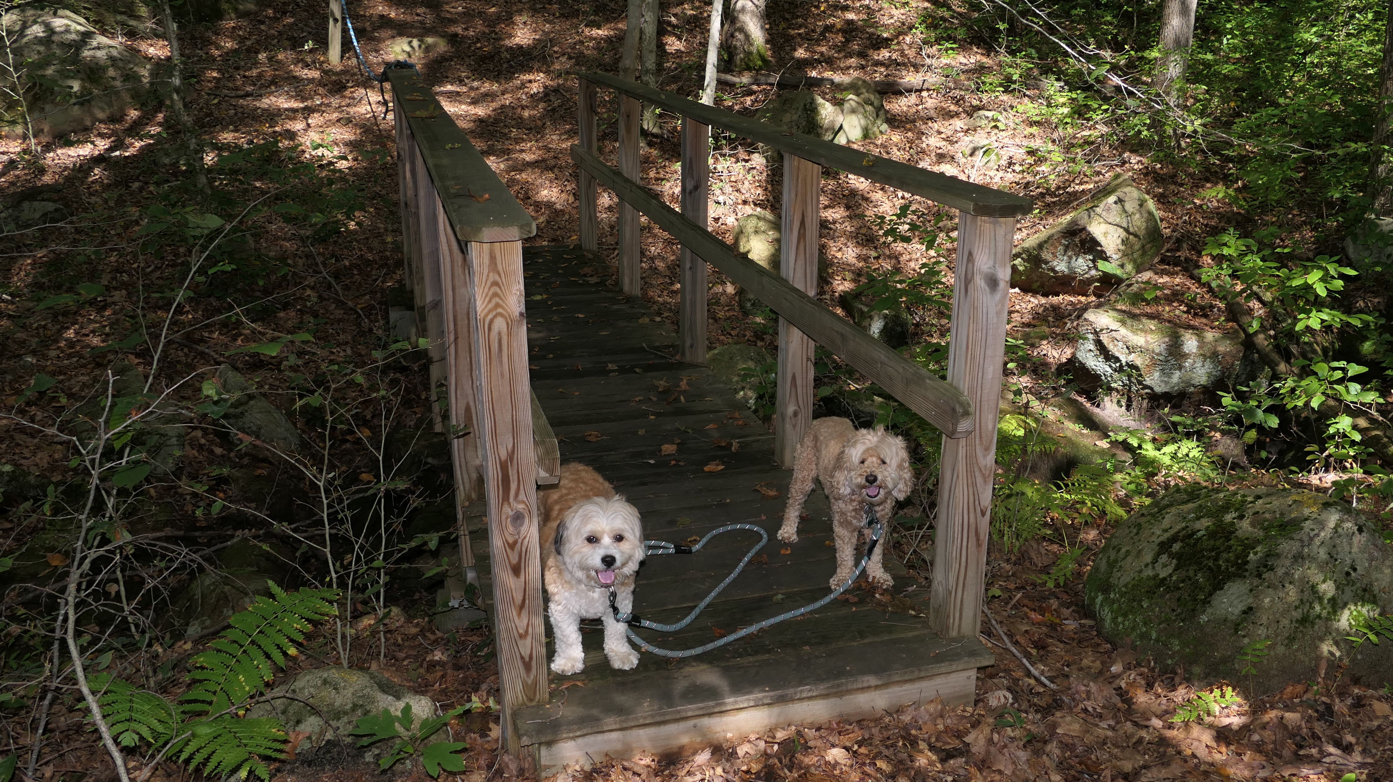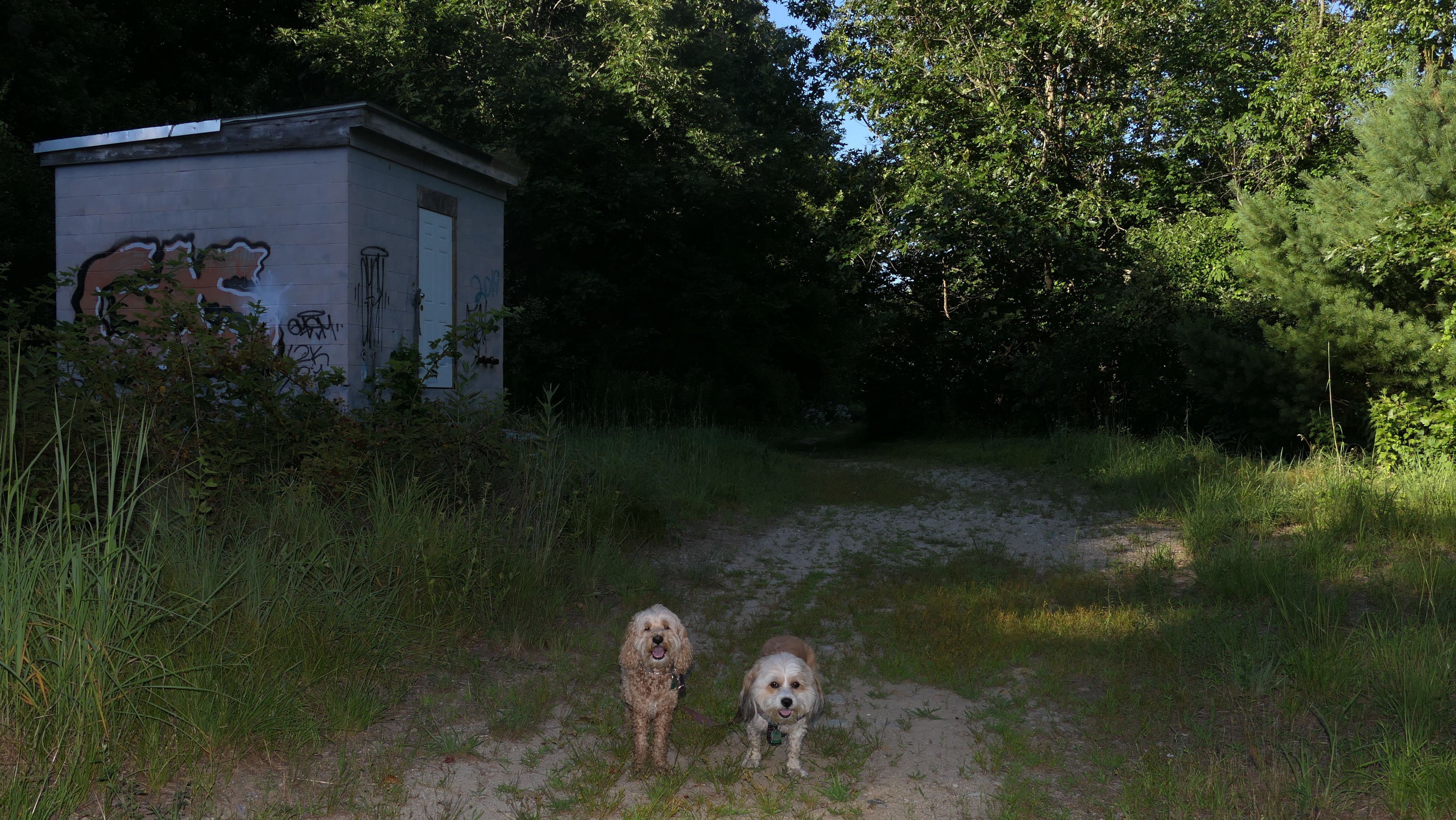 This is a very fun trail. The trail starts in Blackstone, MA but the majority of the trail resides in North Smithfield, RI. The dam and waterfall are in Blackstone. I let the dogs take a quick dip into the river as soon as we got there since it was such a hot day, that's why the dogs look wet in some of these photos. The trail quickly crosses into Rhode Island as it continues along side the Blackstone River. The terrain is rocky and rooty enough to be fun, but not too rocky and rooty to be very difficult. There's a complete landscape change toward the end of the trail as it turns away slightly from the river. Per the route on the All-Trails app, we turned around at the strange old building and headed back. The pictures below are from the North Smithfield, RI section of the trail.