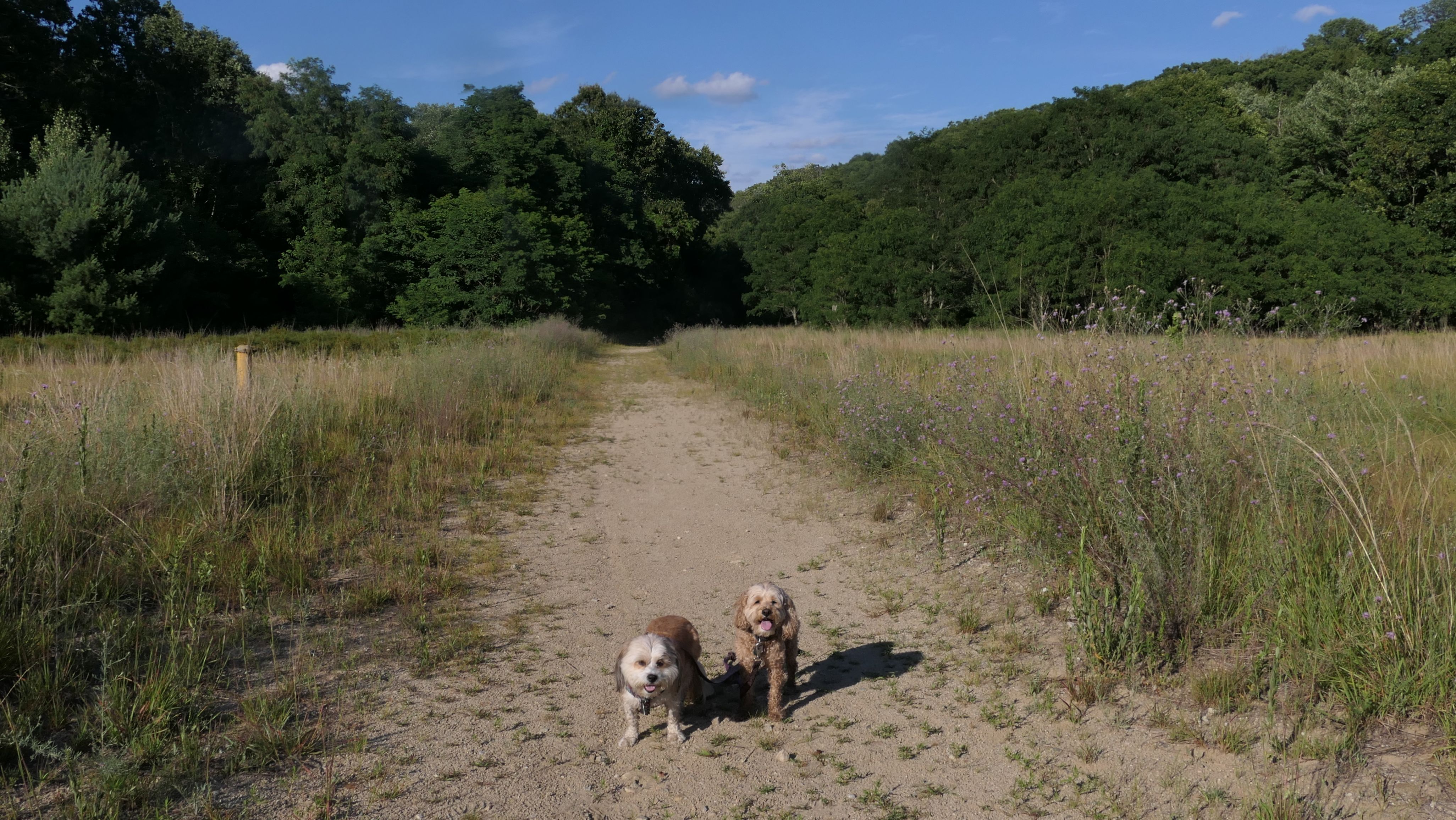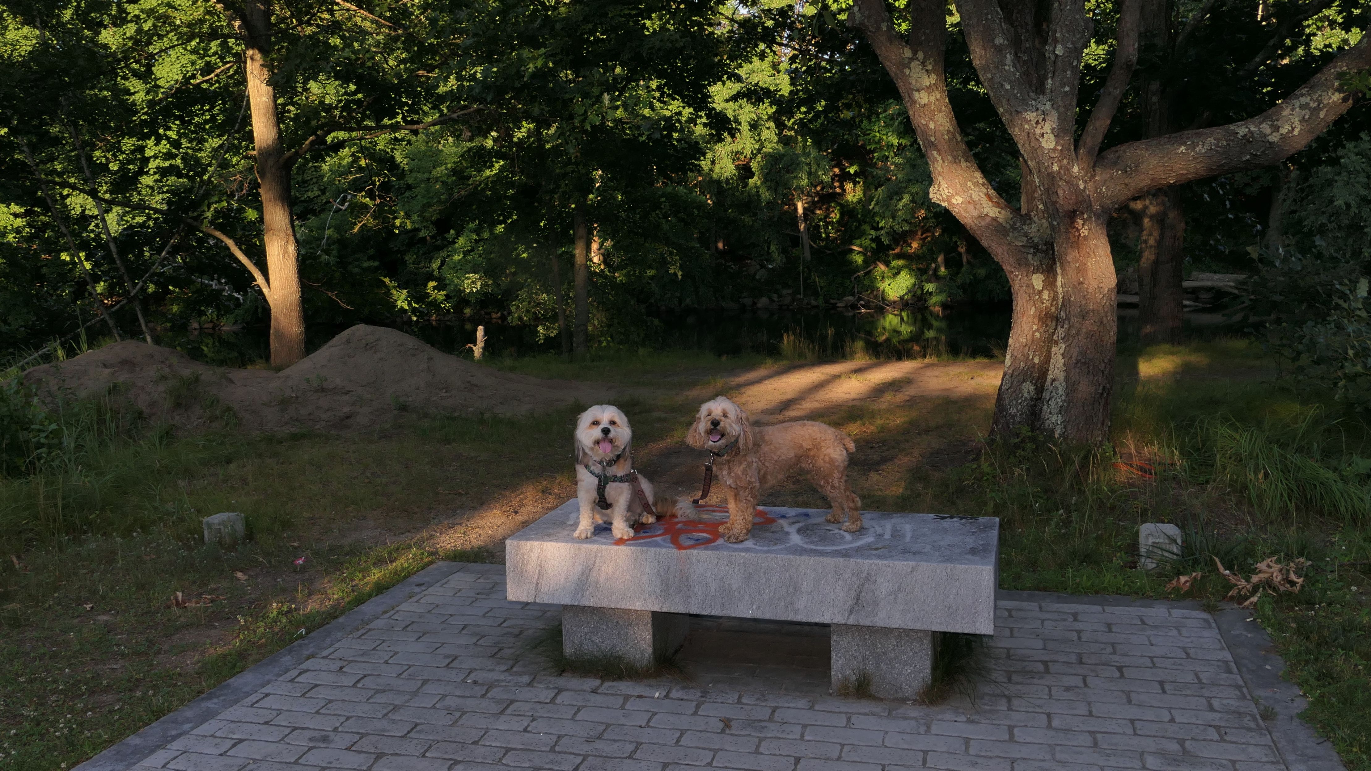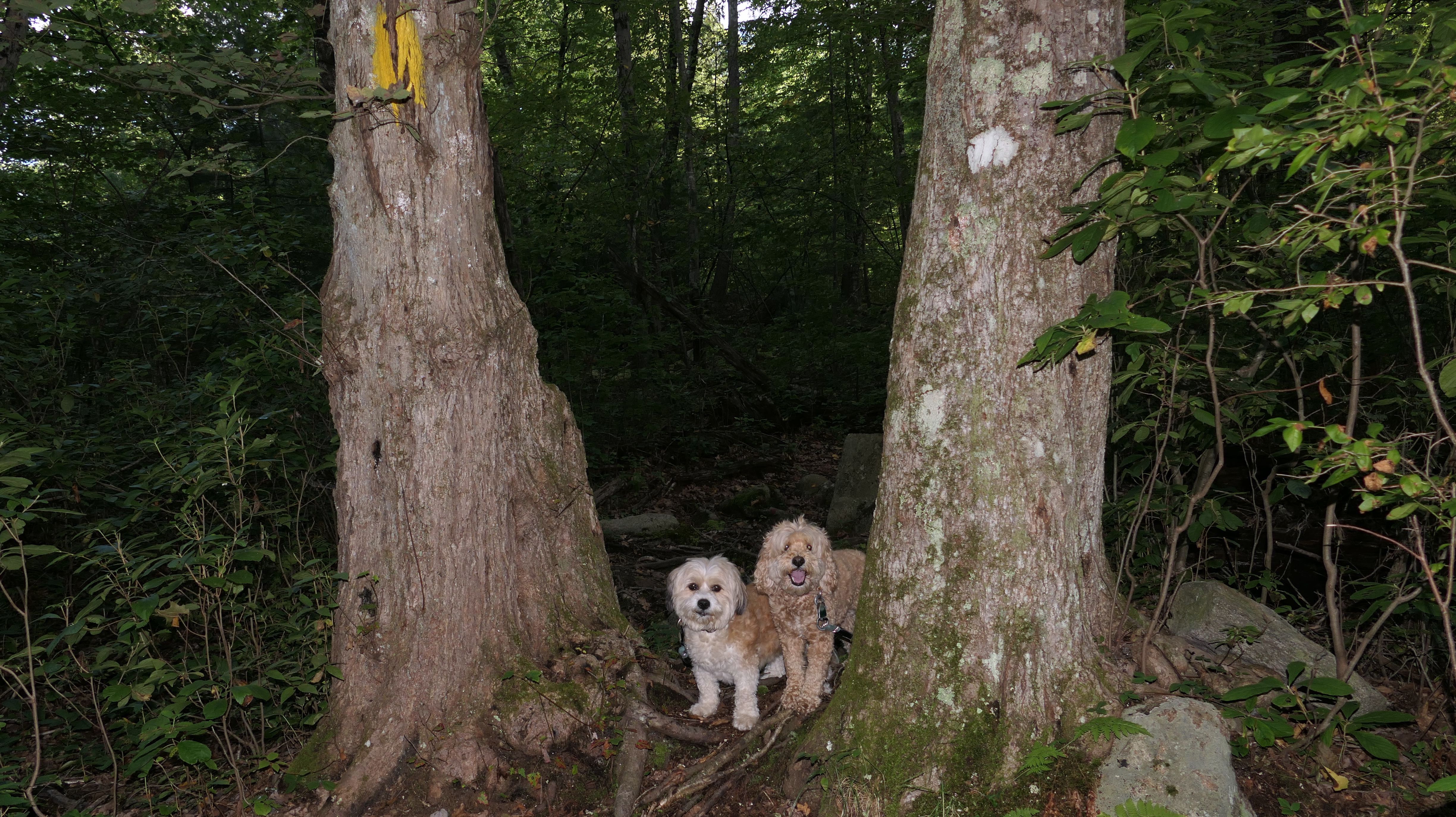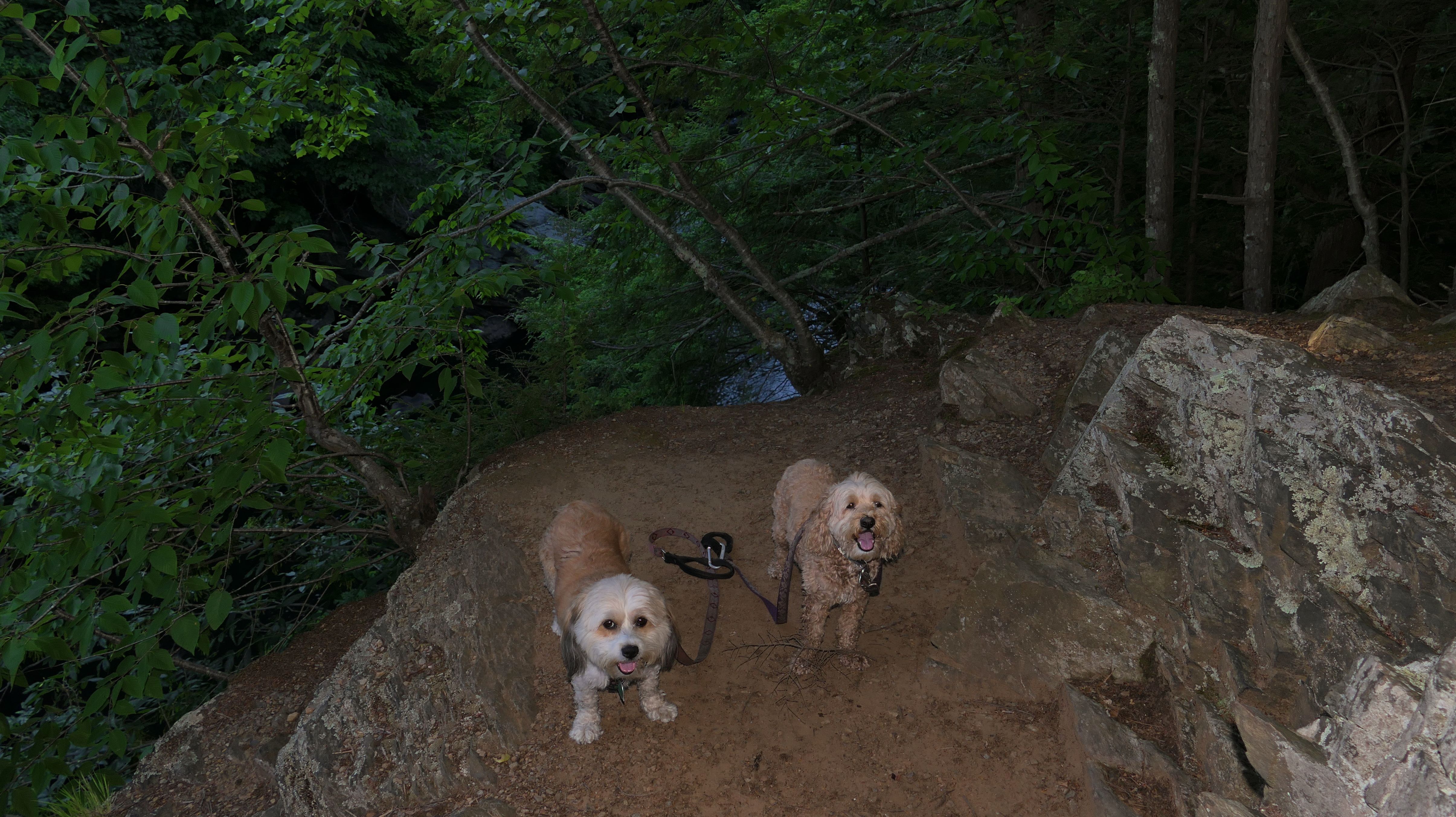 This is a very fun trail. The trail starts in Blackstone, MA but the majority of the trail resides in North Smithfield, RI. The dam and waterfall are in Blackstone. I let the dogs take a quick dip into the river as soon as we got there since it was such a hot day, that's why the dogs look wet in some of these photos. The trail quickly crosses into Rhode Island as it continues along side the Blackstone River. The terrain is rocky and rooty enough to be fun, but not too rocky and rooty to be very difficult. There's a complete landscape change toward the end of the trail as it turns away slightly from the river. Per the route on the All-Trails app, we turned around at the strange old building and headed back. The pictures below are from the North Smithfield, RI section of the trail.