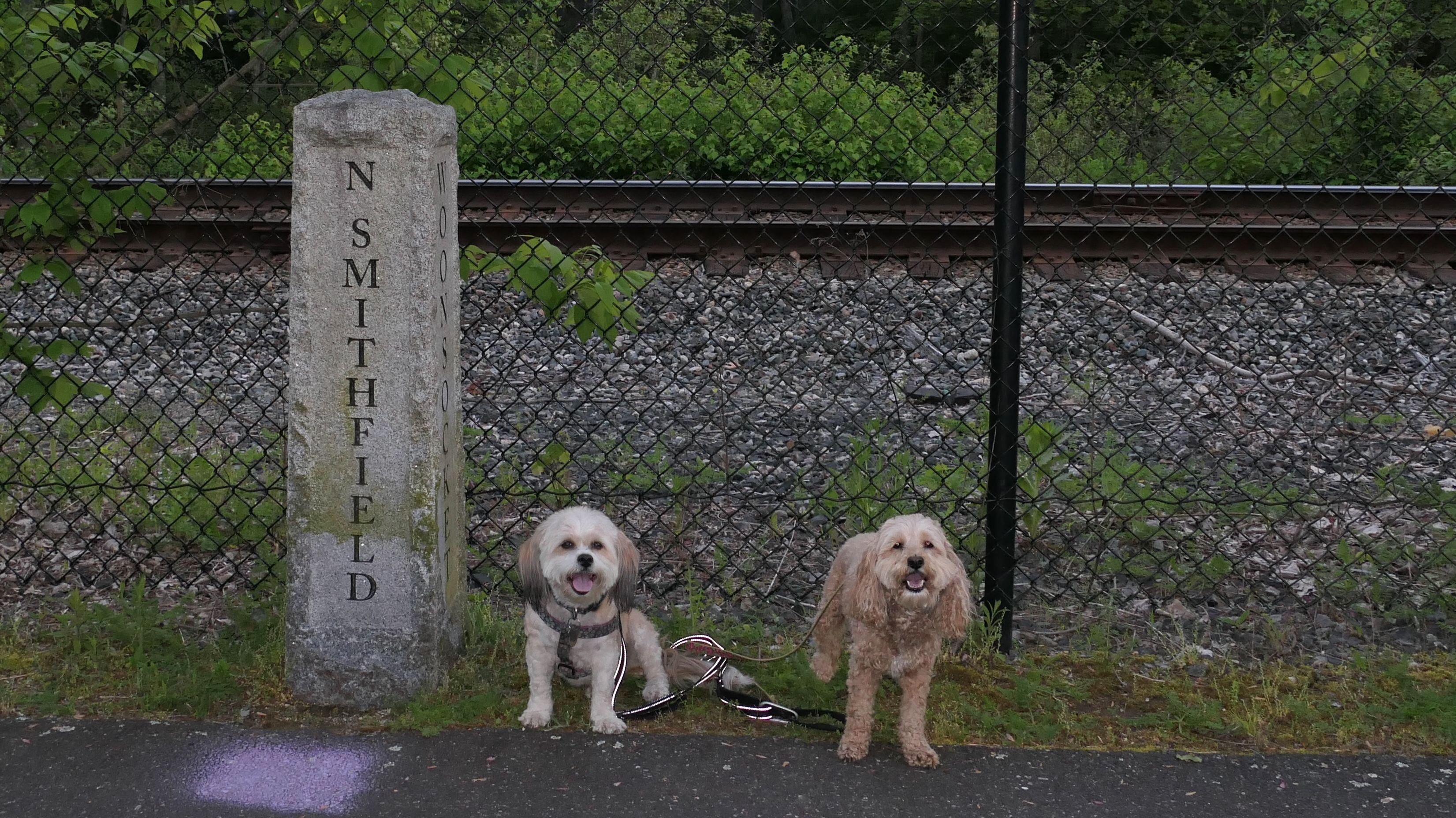 The main portion of the trail just grazes the corner of North Smithfield, between Woonsocket and Lincoln. The marker has all three towns on it.
