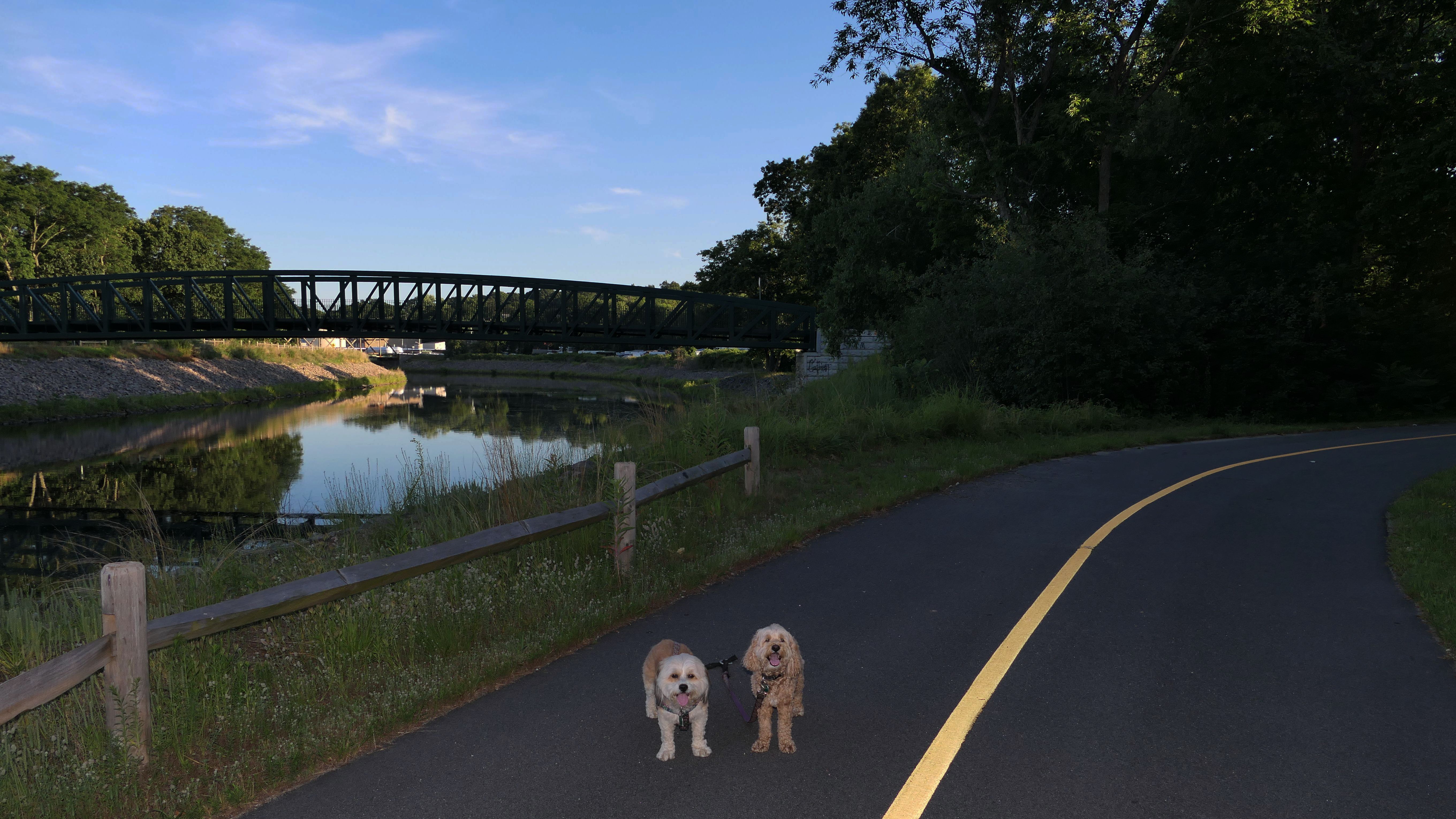This is an odd bike trail, in that this section is very short. The overall Blackstone River Greenway is not completed yet, and this section, disconnected from the rest of the trail, is only about a half mile long in total. It starts at Cold Spring Park in Woonsocket, crosses a newish looking bridge over the Blackstone River into North Smithfield, before ending abrubtly at the Massachusetts border. It's a nice section of bike trail for sure, but not very helpful for bikers trying to get from Worcester to Providence. It is a great place to take the dogs for a walk though! The pictures below are from the North Smithfield section of the trail.