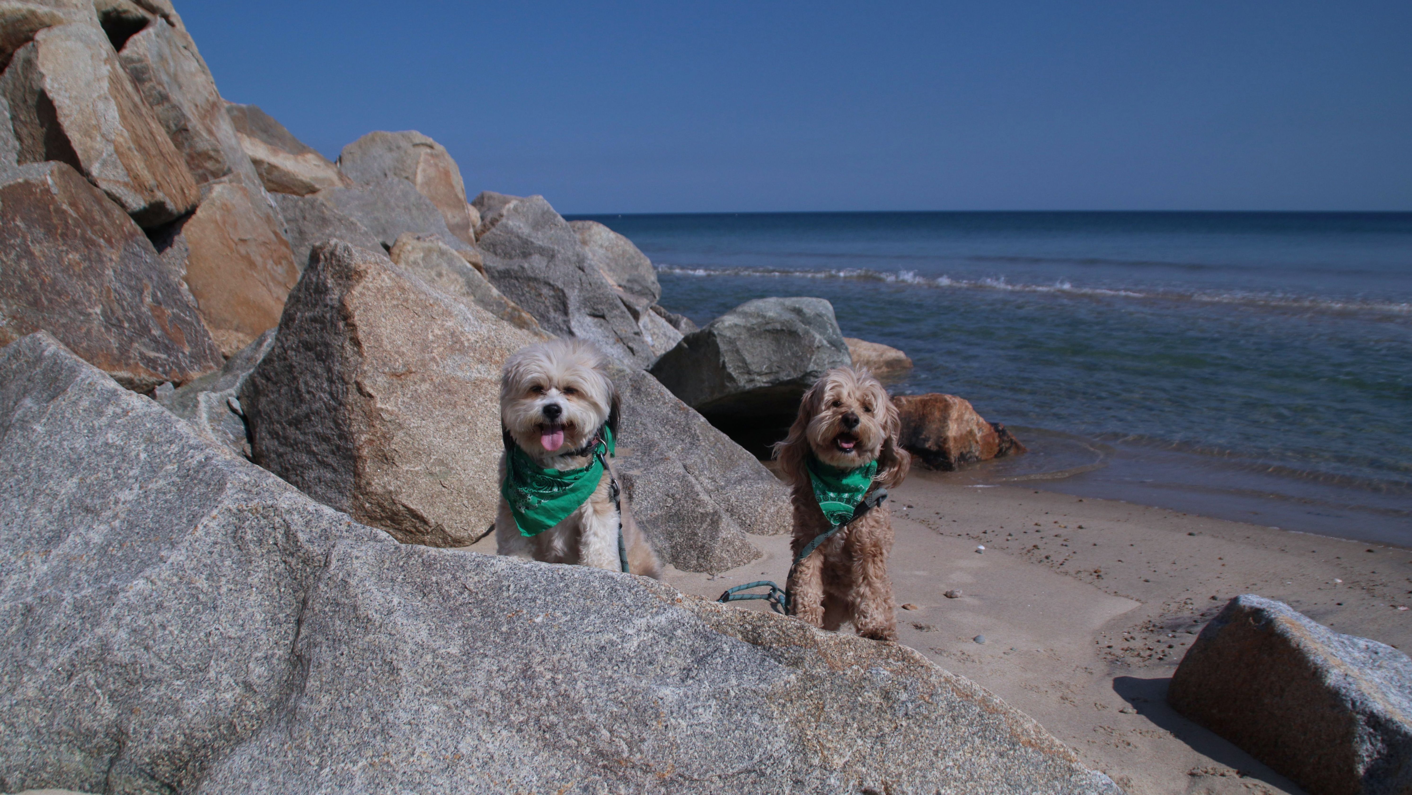 This is the area between Fishermans Memorial Park and Pilgrim Memorial State Park. On our fist visit to this area, the water right up to the wall. This time around, there was a beach where the dogs could cool off!