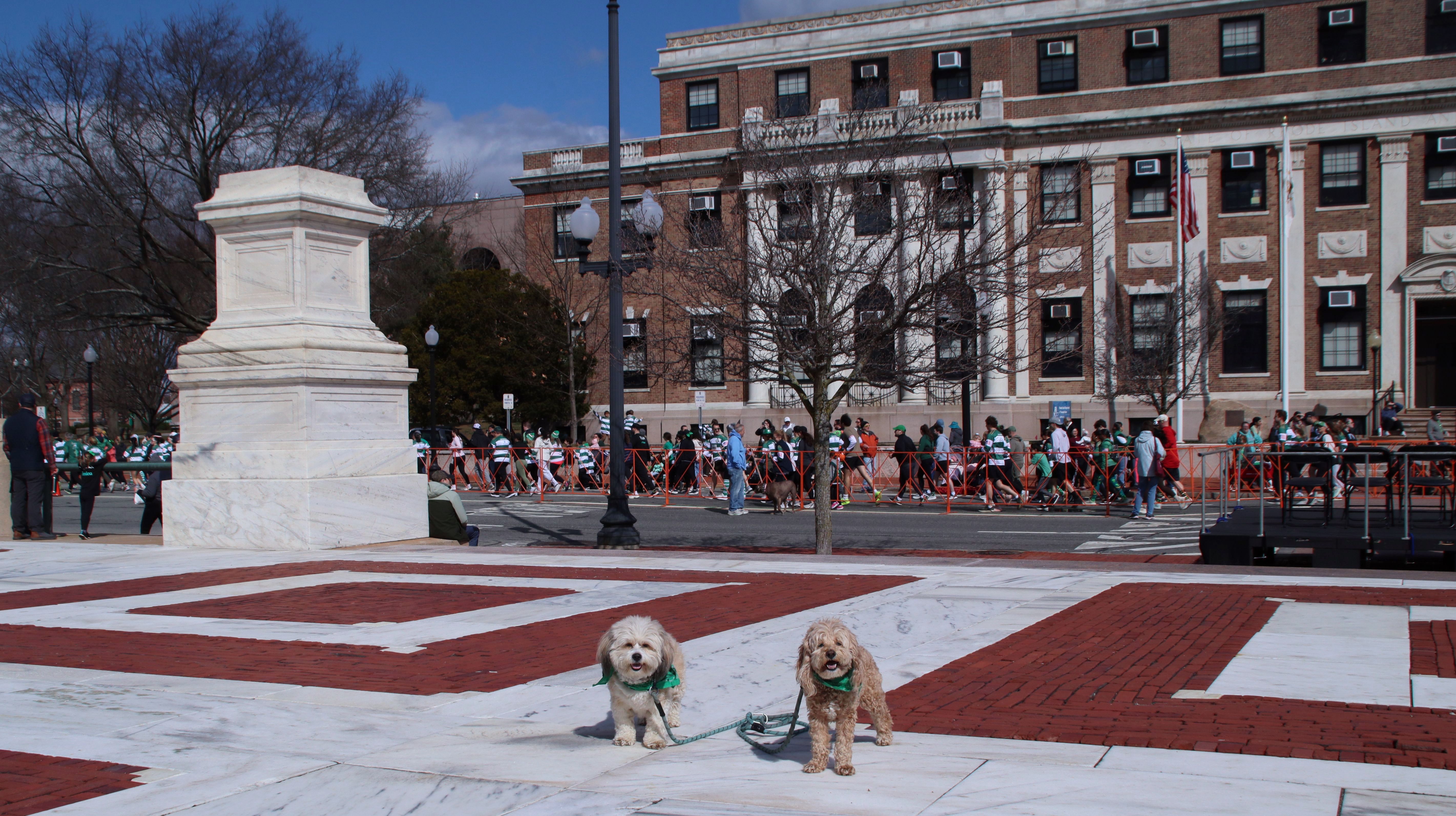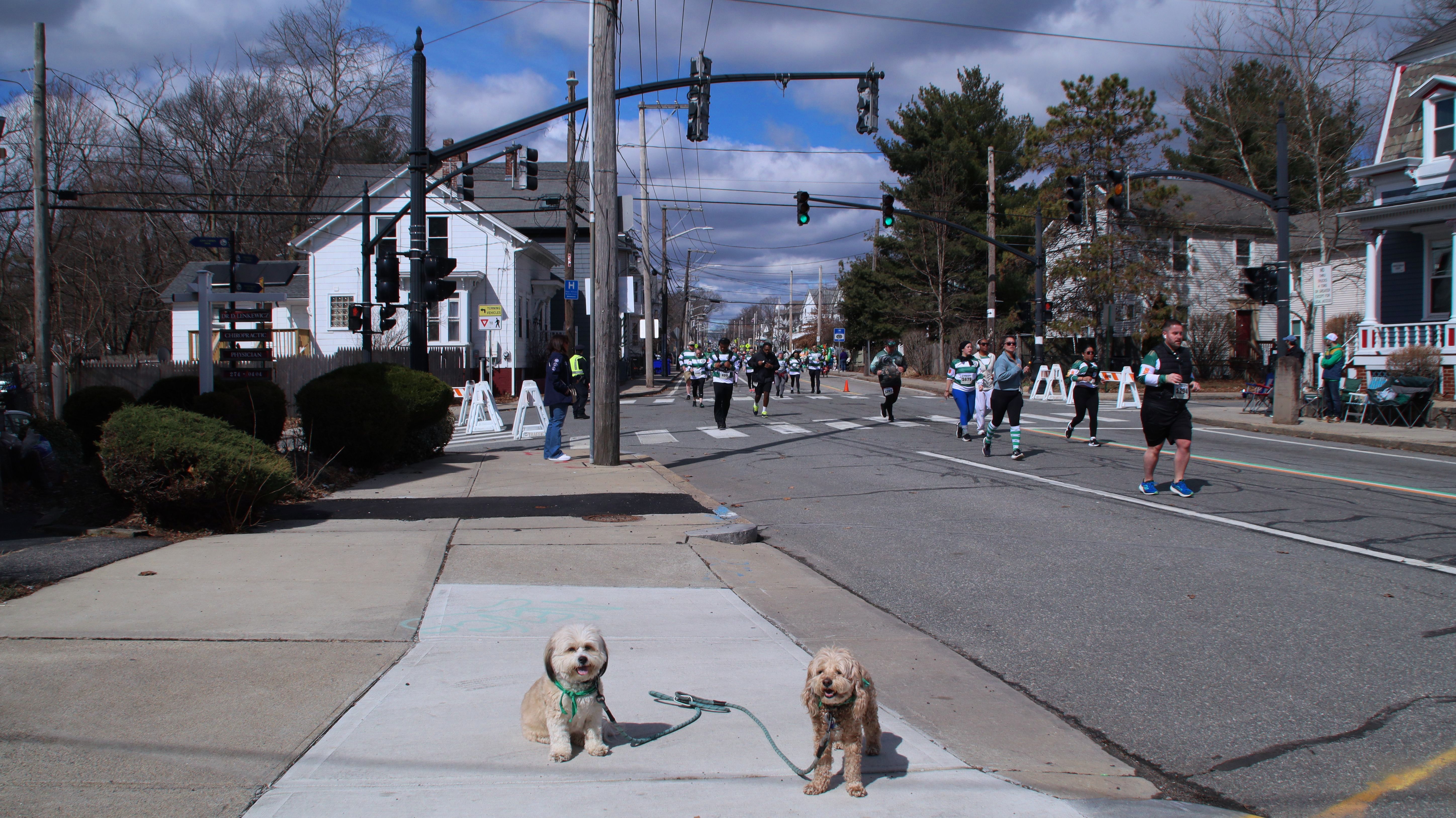 Happy St. Patrick's Day…again! Unlike the Newport St. Patrick's Day Parade, this one took place the Saturday after the holiday. The parade begins in the Elmhurst neighborhood and follows Smith Street (US 44) for about two and a half miles, ending at the State House. Before the parade, the Shoreham Bank St. Patrick's Day 5K road race was held along the same route, starting at the State House. We arrived just before the race began and ended up walking along the course as runners made their way toward us, gradually working our way up the route to the parade's starting point. We got there about 15 minutes before the parade began and found a great spot near the start. Unfortunately, we had to cut our day short. One of the groups in the parade was firing blanks from their guns, along with a cannon that was incredibly loud. The sudden noise made Lexi very nervous—she already struggles with fireworks and thunderstorms, and the repeated blasts were just too much for her. I do wish there had been some kind of warning, as we likely would have planned differently. The Newport parade didn't include any gunfire at all.