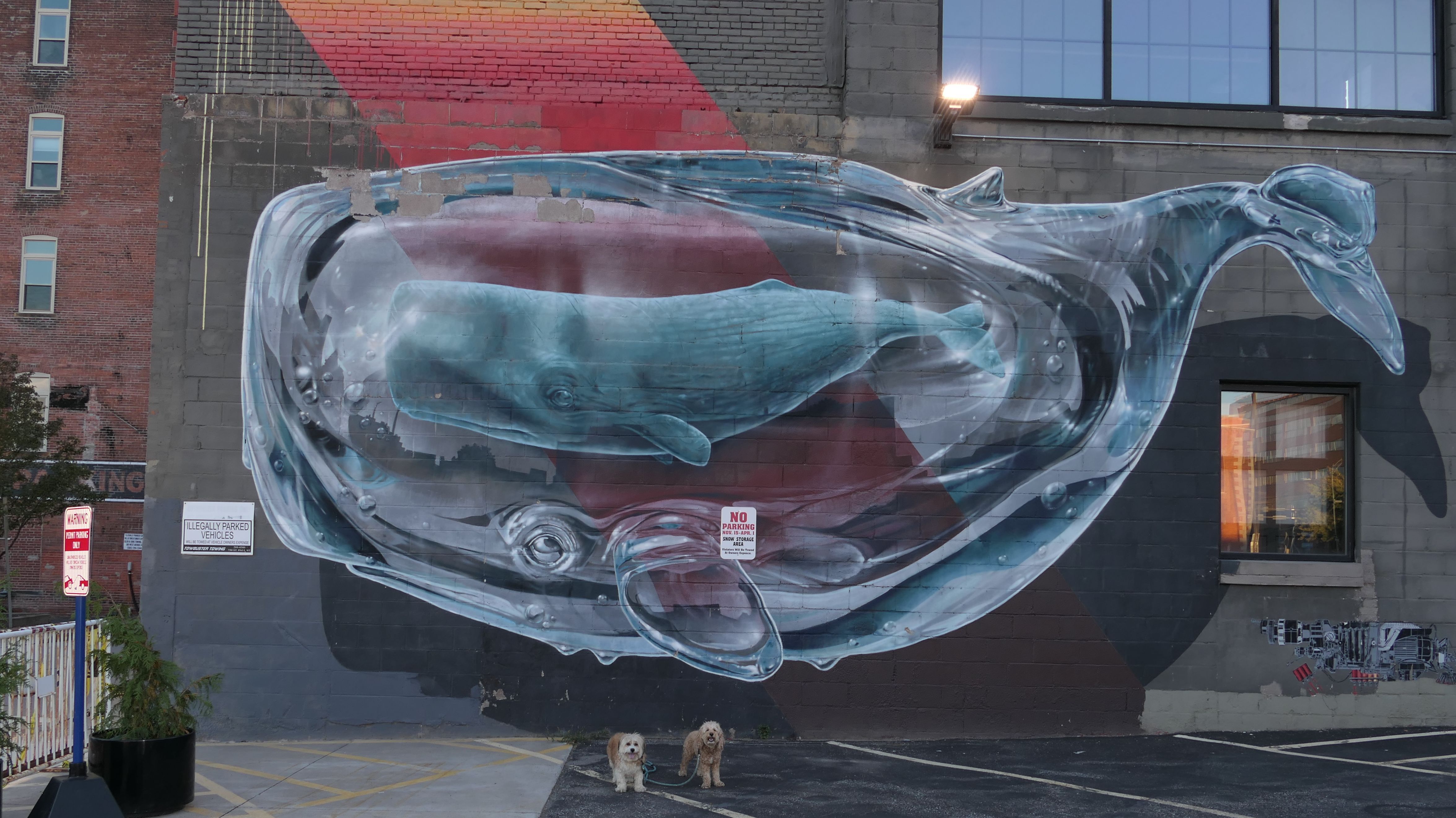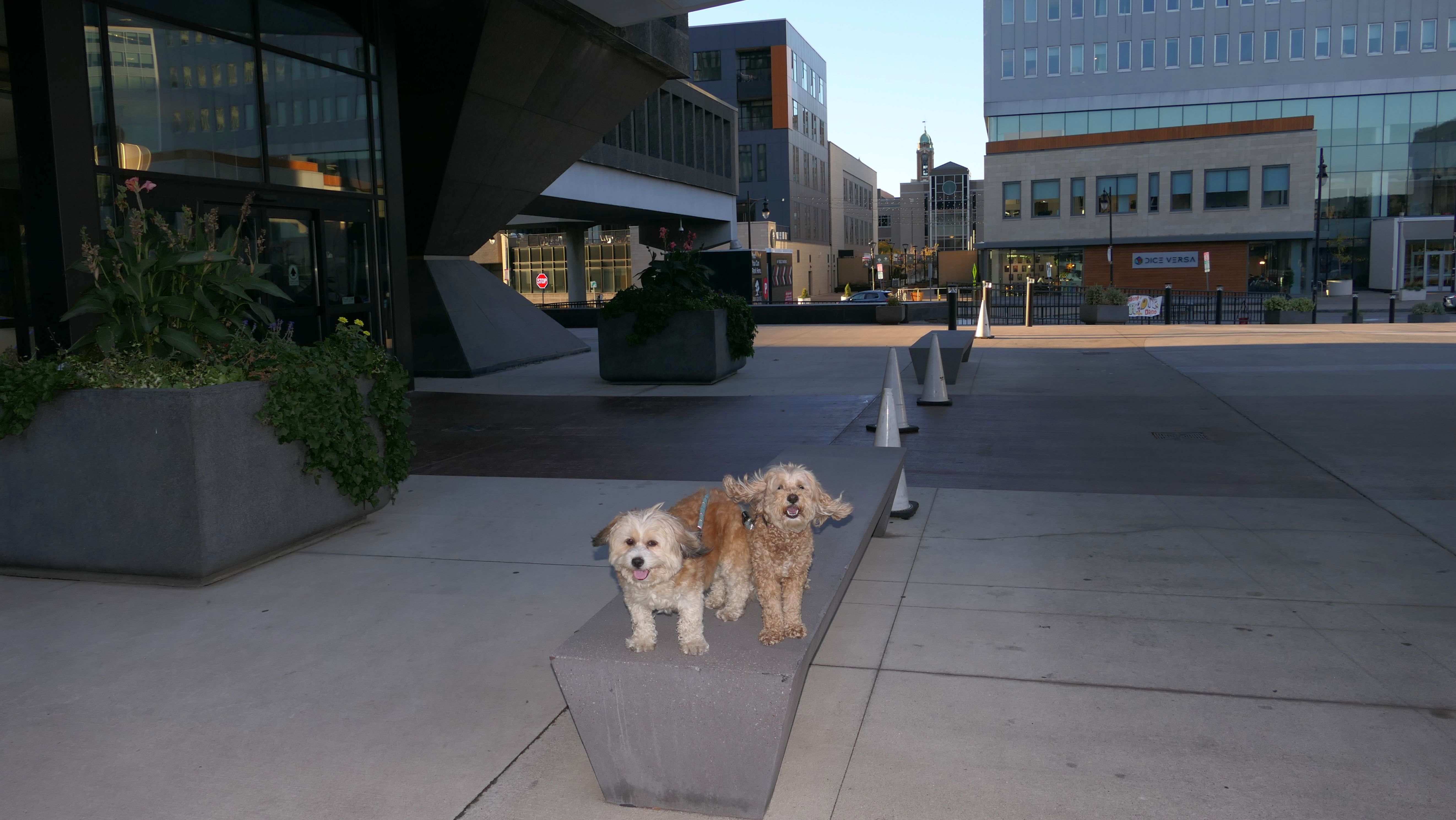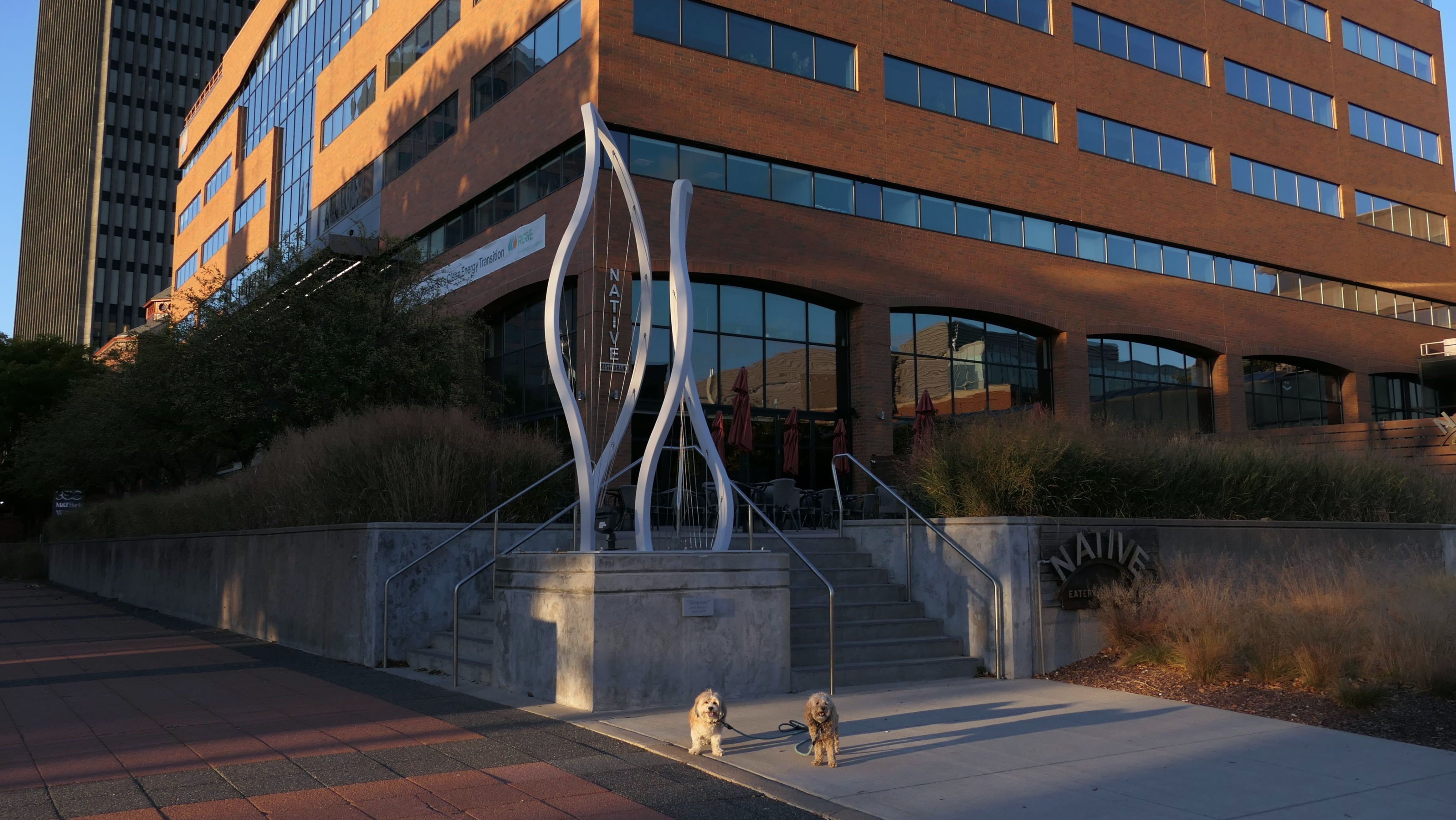 We actually adopted Mandy in Rochester, 10 years and 18 days prior to this visit! This was a homecoming for her, but I'm sure she doesn't remember any of it, as she was pretty much kept in a crate outside before we rescued her. At any rate, we were out near Syracuse in a town named Geddes, and decided to drive an hour east for the sunny skies in Rochester! This park features paved walking paths along the river, with great views of the city. The park was clean and looked well maintained. We didn't arrive until about 5:15PM, so we didn't have a lot of daylight left. The path led us to the downtown area, where we explored what we could, before heading back to the park. We walked a little over two and half miles total on a beautiful autumn evening.