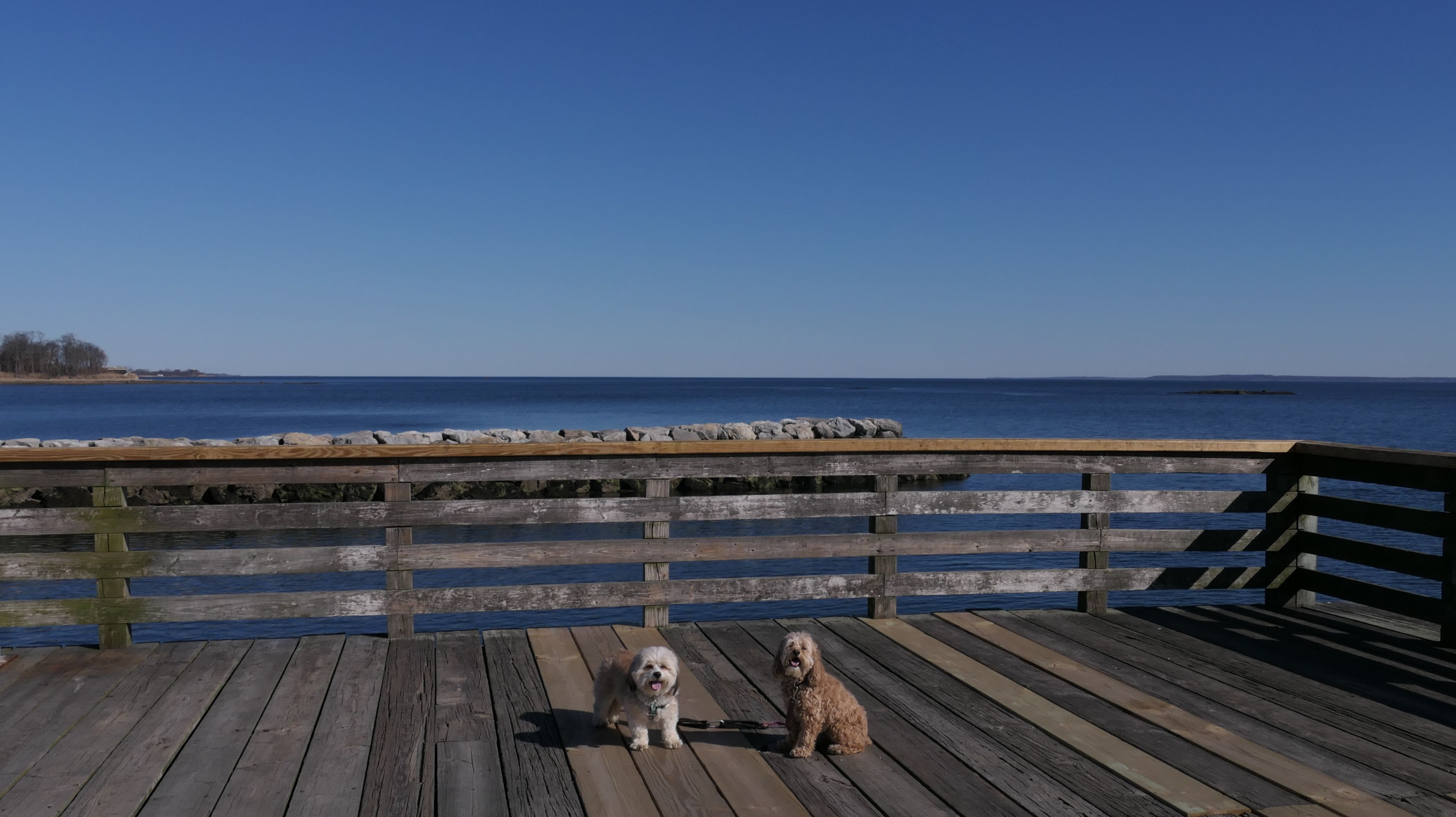 The highlight of the Playland Park in the winter is the beach. The company that runs the park allows the beach the become an off-leash dog park during the off-season. This year, the dates for the dog park are between October 8, 2022 and April 23, 2023. After we walked the boardwalk, and explored the adjacent Rye Town Park, the dogs got to run off-leash on the beach! Mandy and Lexi were sporting some long fur, so despite it being the middle of February, they got hot on the walk. They had no problem cooling off in the water, and had a lot of fun running around the beach as well!