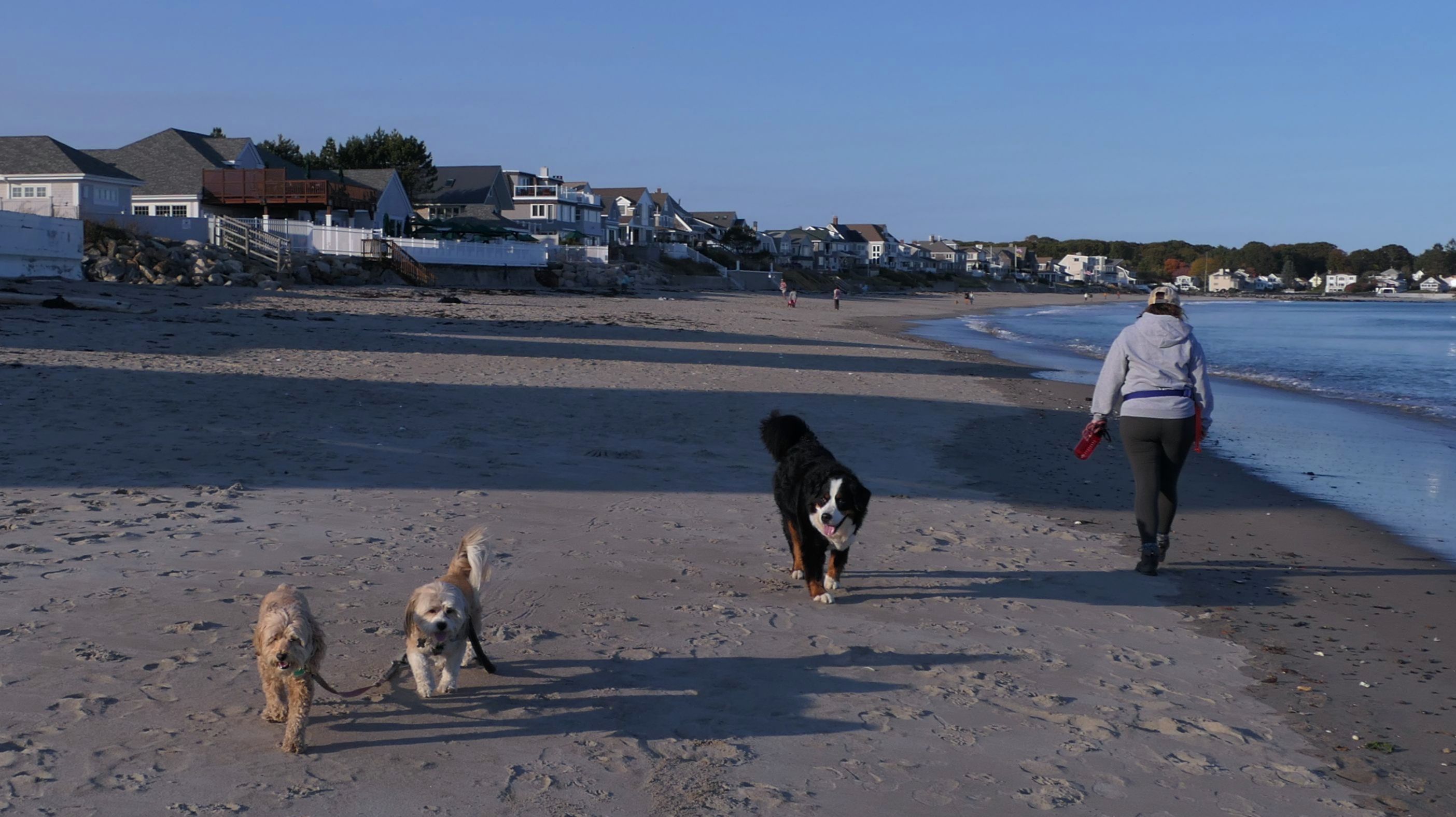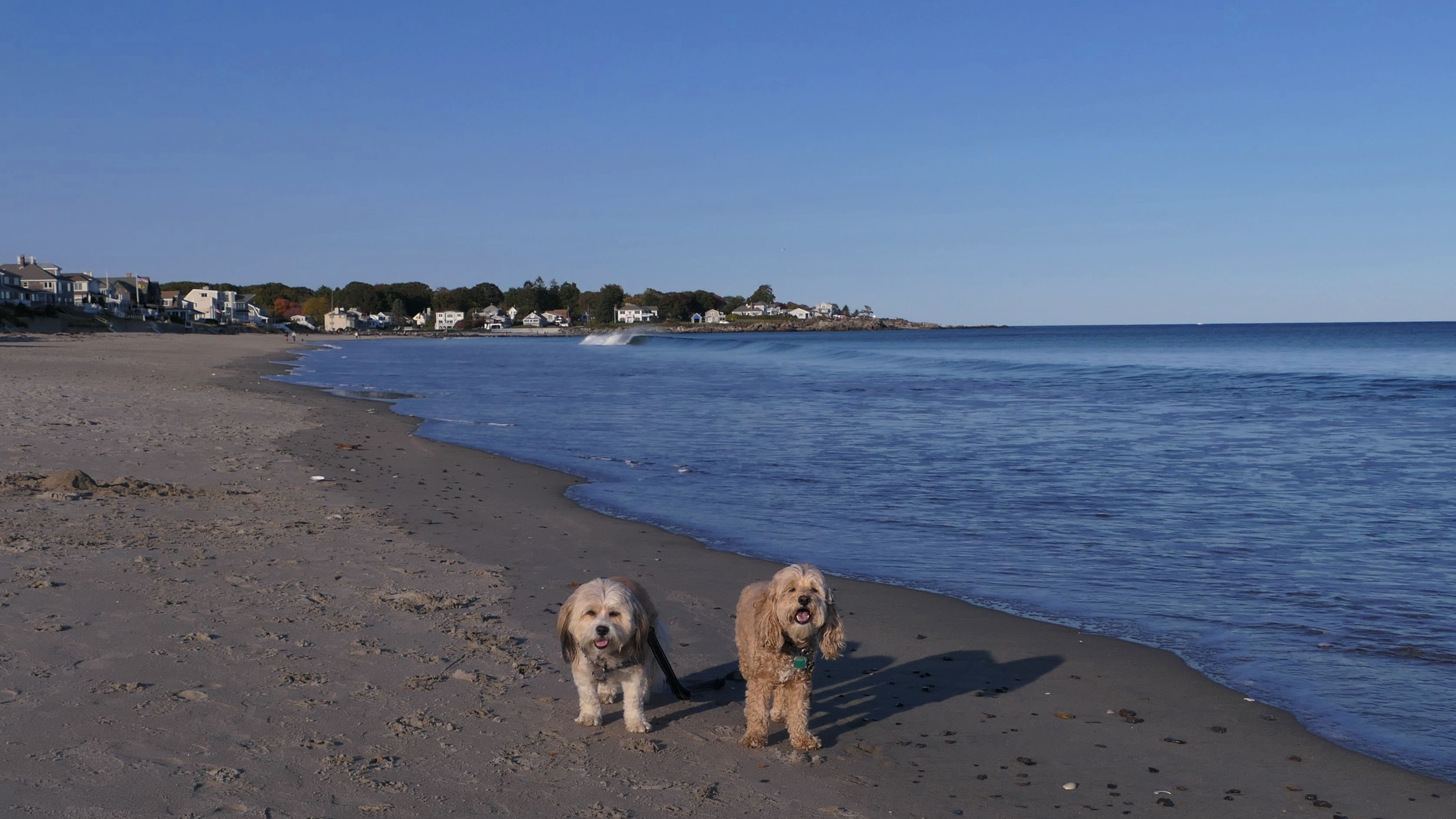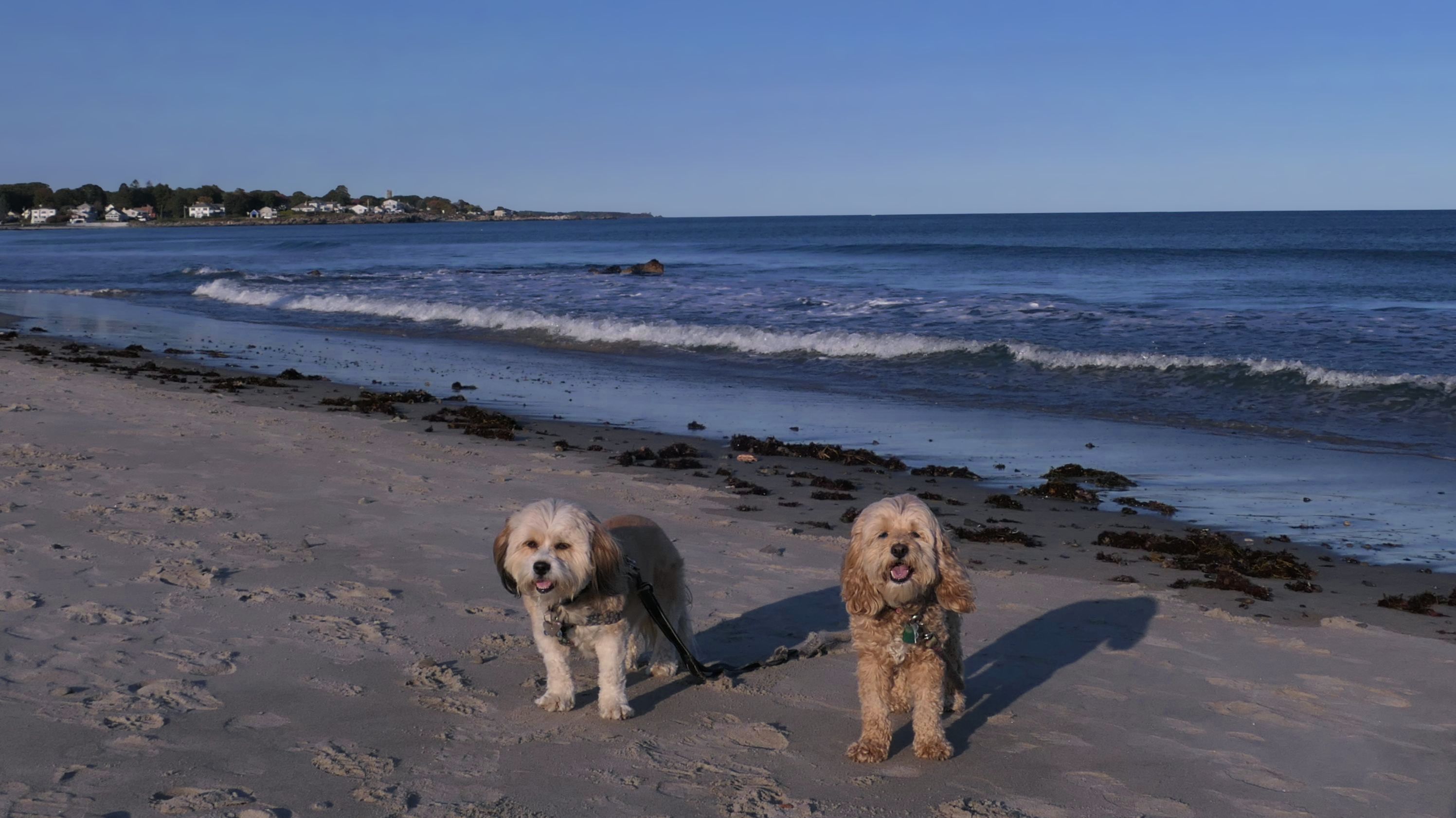 This is a pretty nice town beach in Rye, NH. Dogs are allowed from the day after Labor Day until the Friday before Memorial Day, and allowed in the summer months before 9AM and after 7PM. It seems to be a popular place for the locals to walk their dogs. As you can see, we were visited by one along the way. The beach is three quarters of a mile long, and we walked the length of it and back.