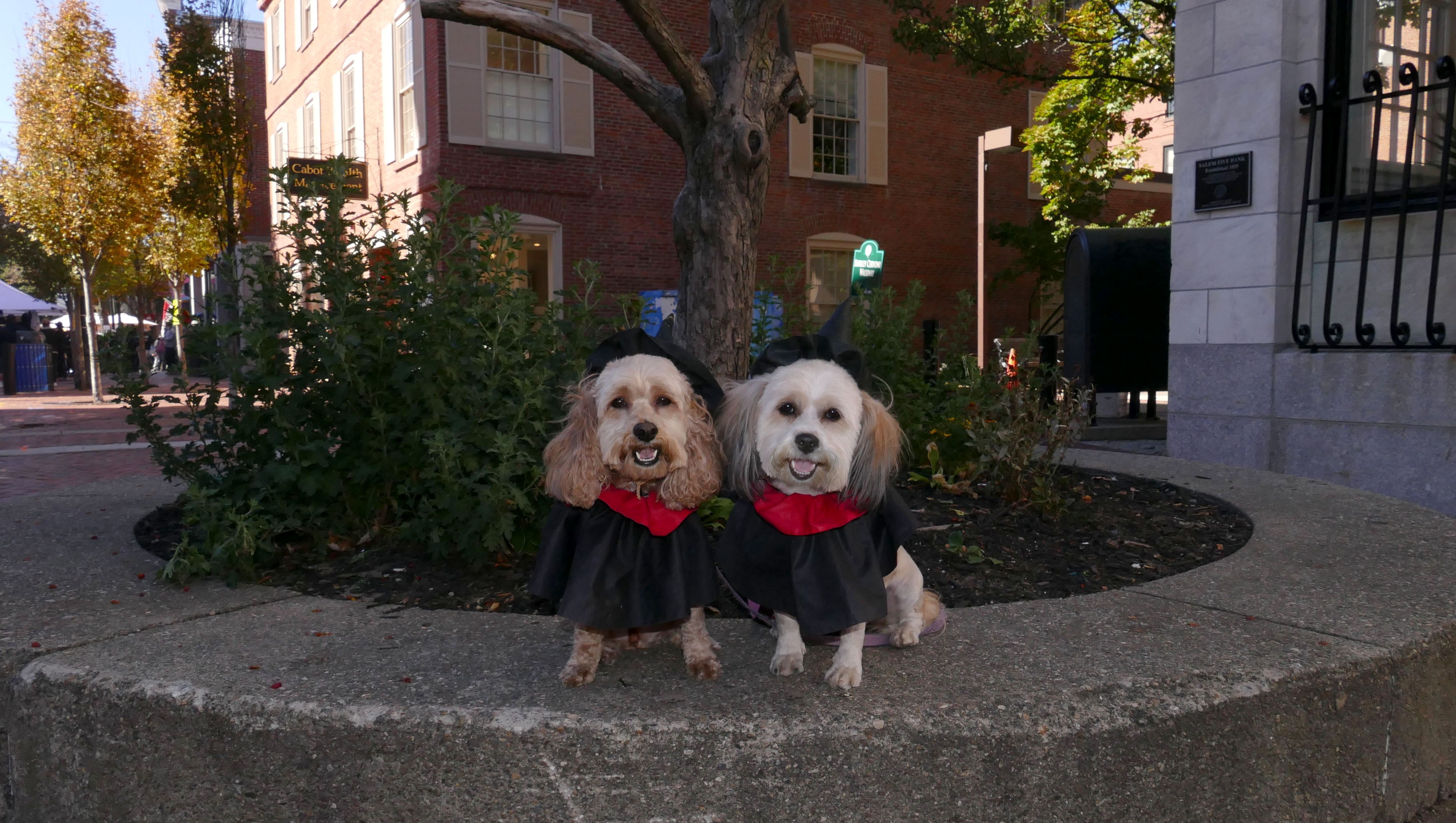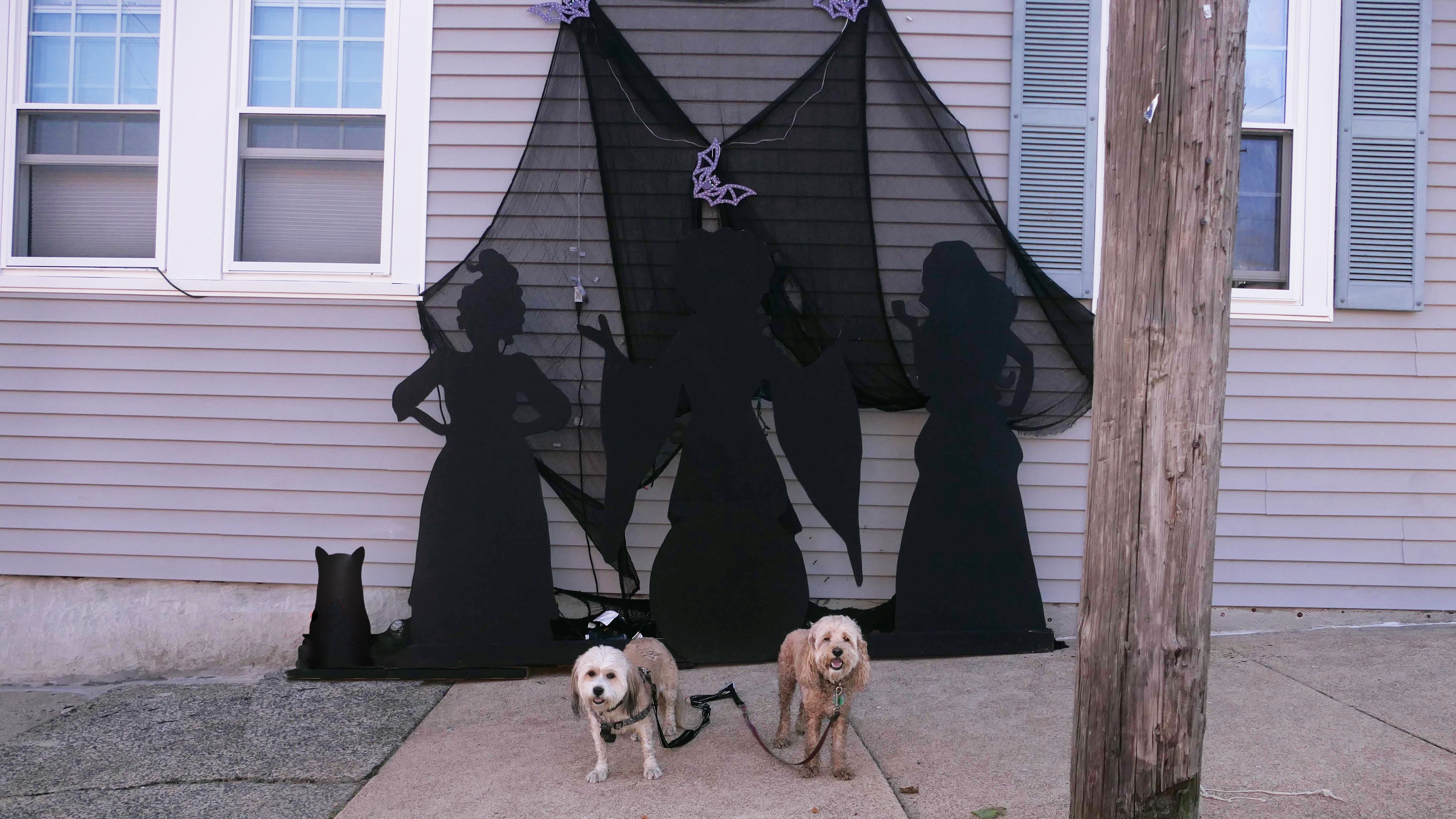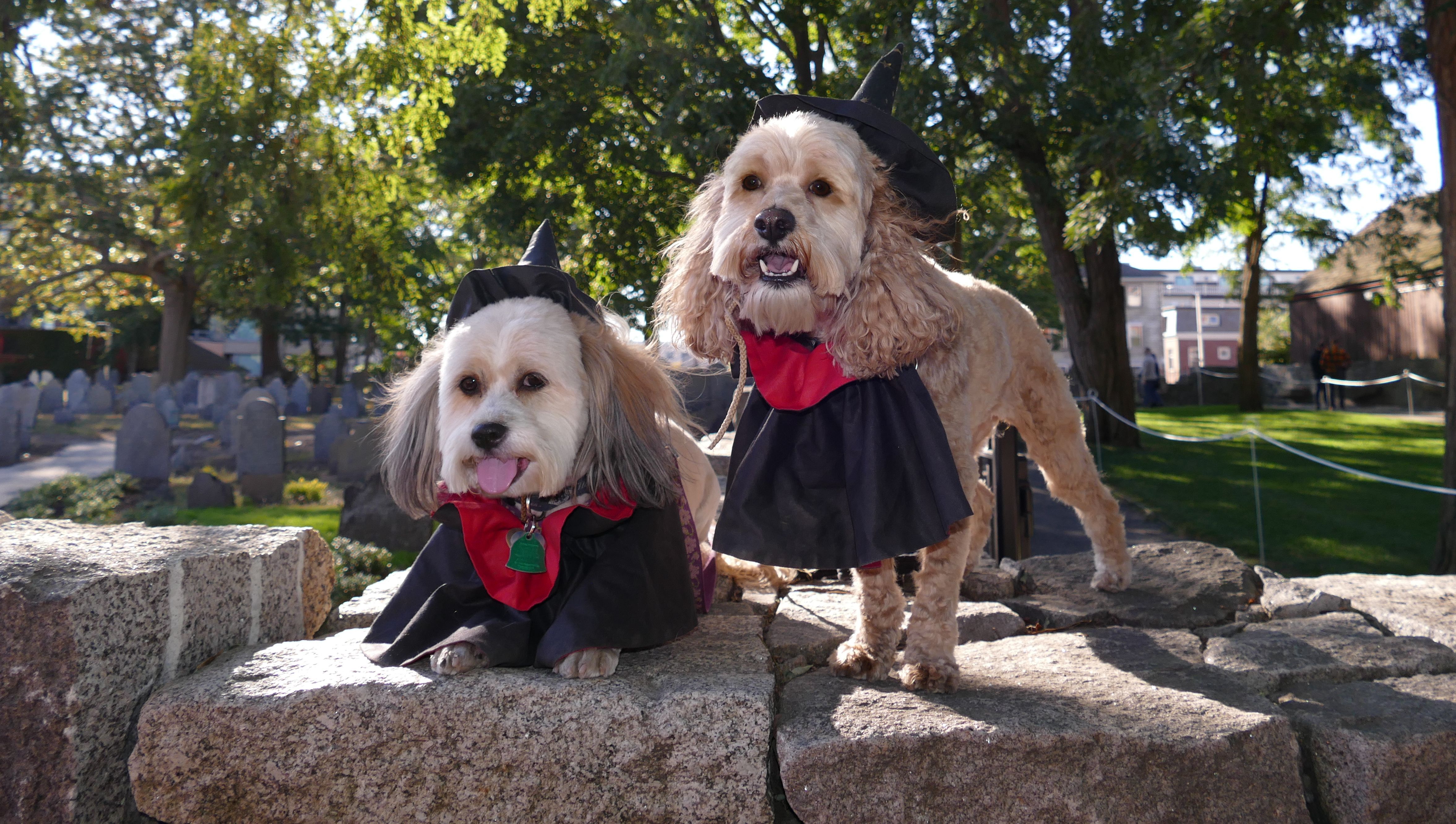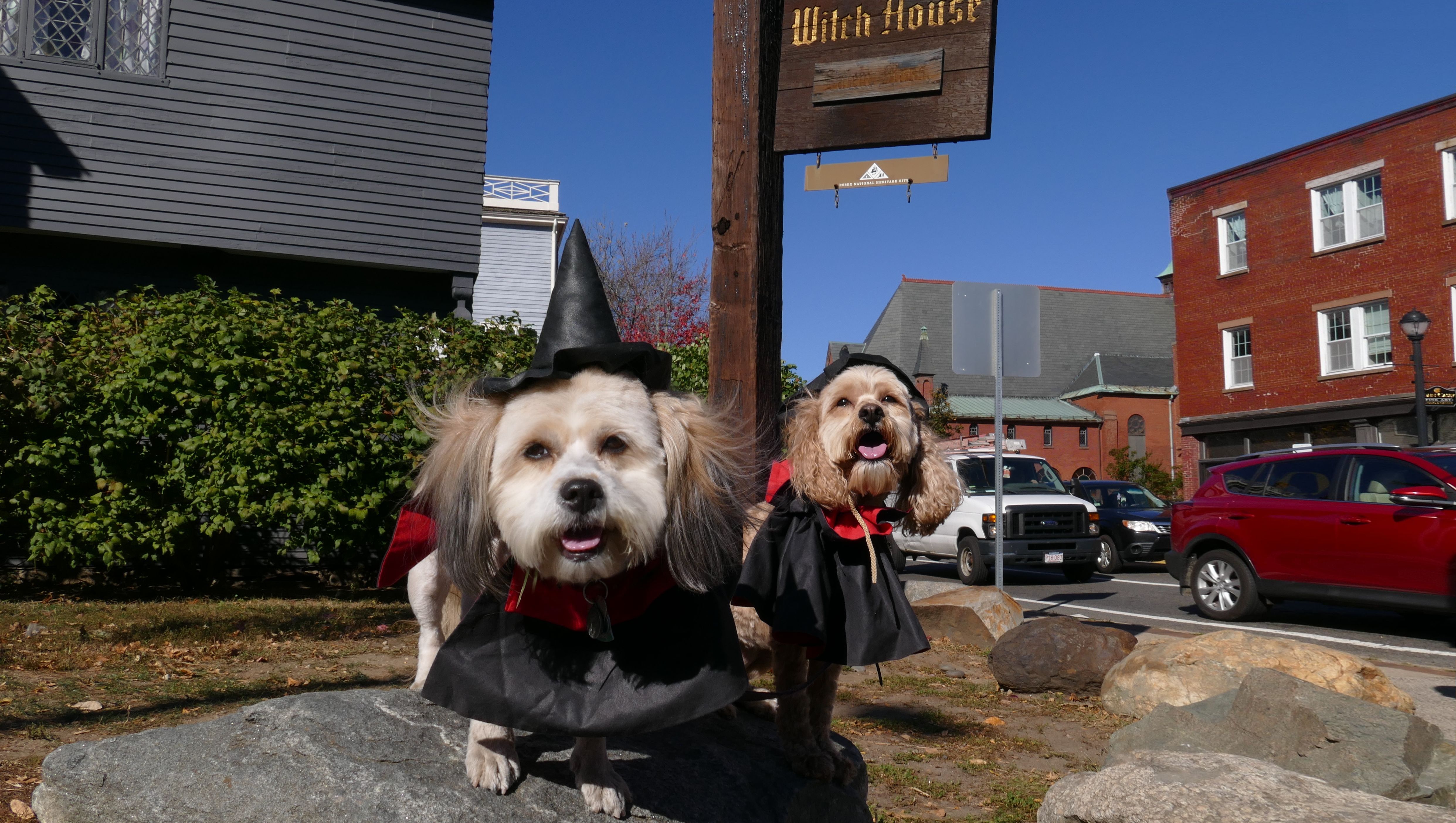 My wife wanted to go to Salem, MA in October to check out a bunch of shops. Since I wasn't going to go into any shops, I thought I could take Mandy and Lexi for a walk around town while she was shopping. Somewhere along the line, I had the idea that it would be cool to have the dogs wear their witch costumes since it was Salem during Halloween season. I really didn't think it was that original of an idea. Yet, they were very popular! I got stopped at least 30 times by people wanting to take their picture! Mandy and Lexi were instant celebrities. Lexi ate up the fame...Mandy had enough of it after a while! The last picture in the set my wife took as she left one of the shops and saw me with four young women all pawning over my dogs!