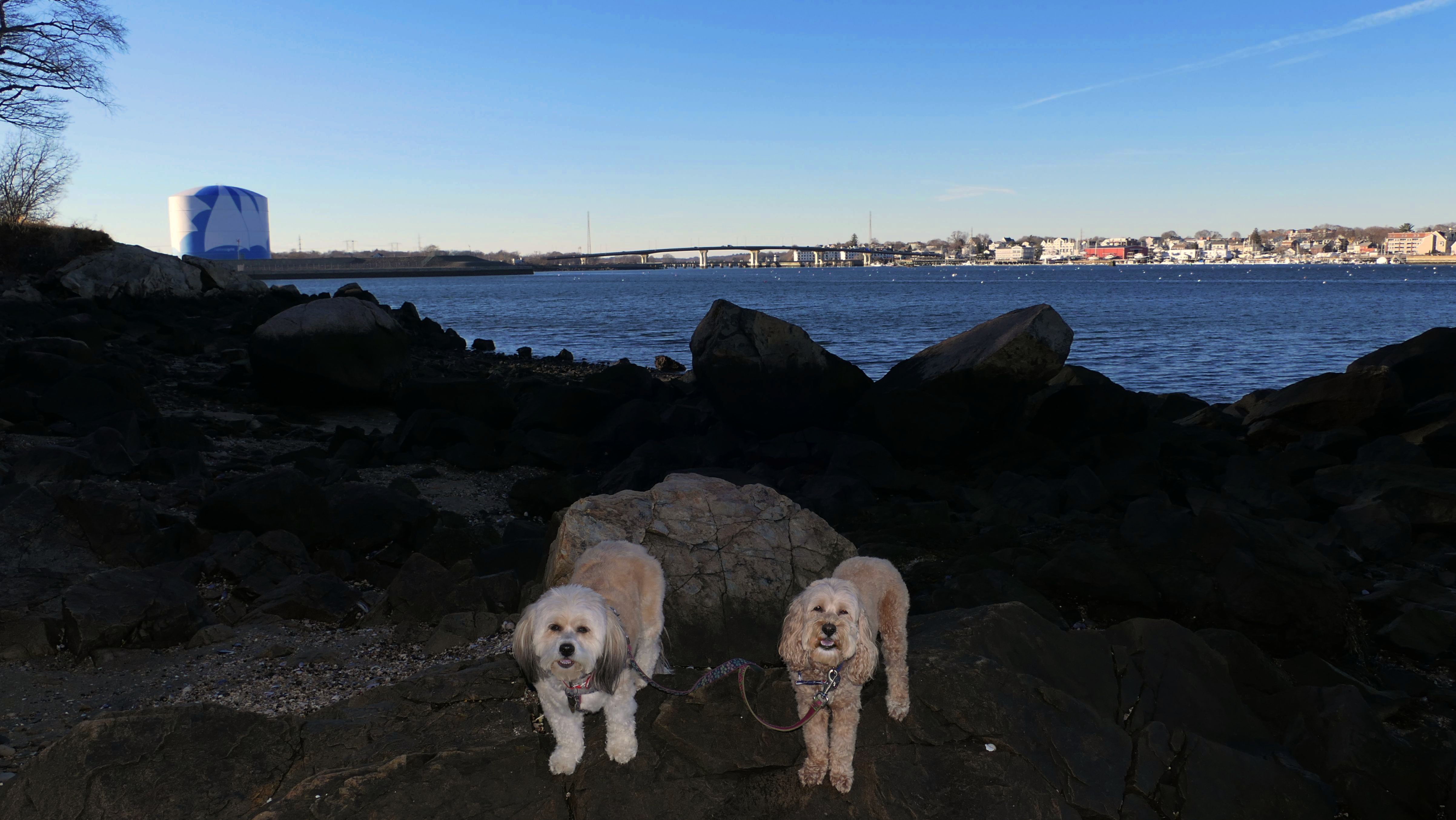 Salem is known for it's witches, but this park was a ghost town! It's probably a really happening place in the summer time, but it was eerily quiet on a Tuesday afternoon in December. There are a couple different beach areas, and a paved walking trail around the park, with picnic tables, benches, and a shell shaped stage. The beaches open out to a cove, and you can see the Beverly beaches across the cove. There's also an arcade area. Along with the arcade, there are a few differnt shops and food places. Of course it was all closed, except for the Taco place. Dogs are only allowed on the beaches from September 4th through April 30th. This is probably a real nice place to take your dogs during September and October when the weather is a bit warmer.