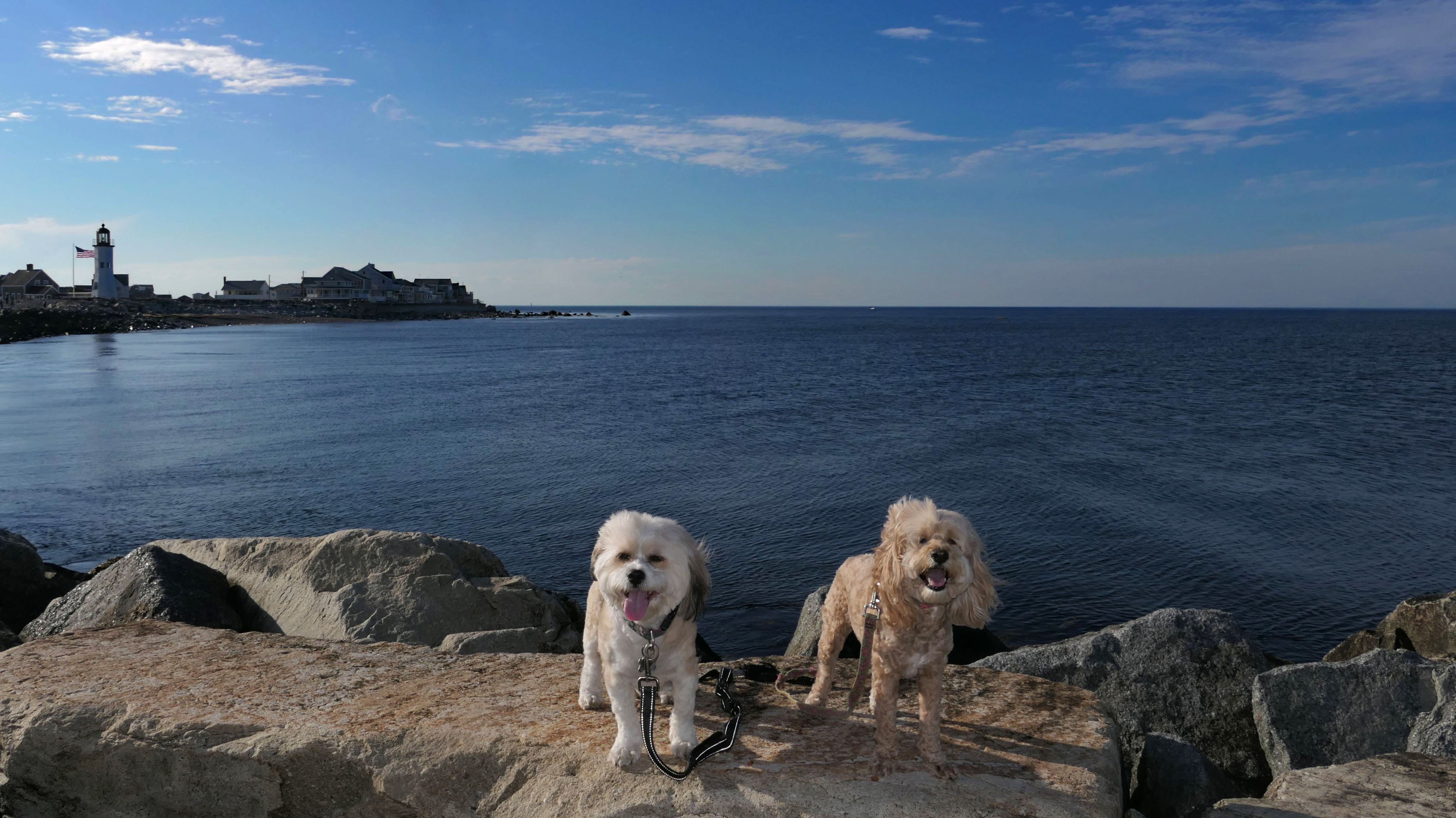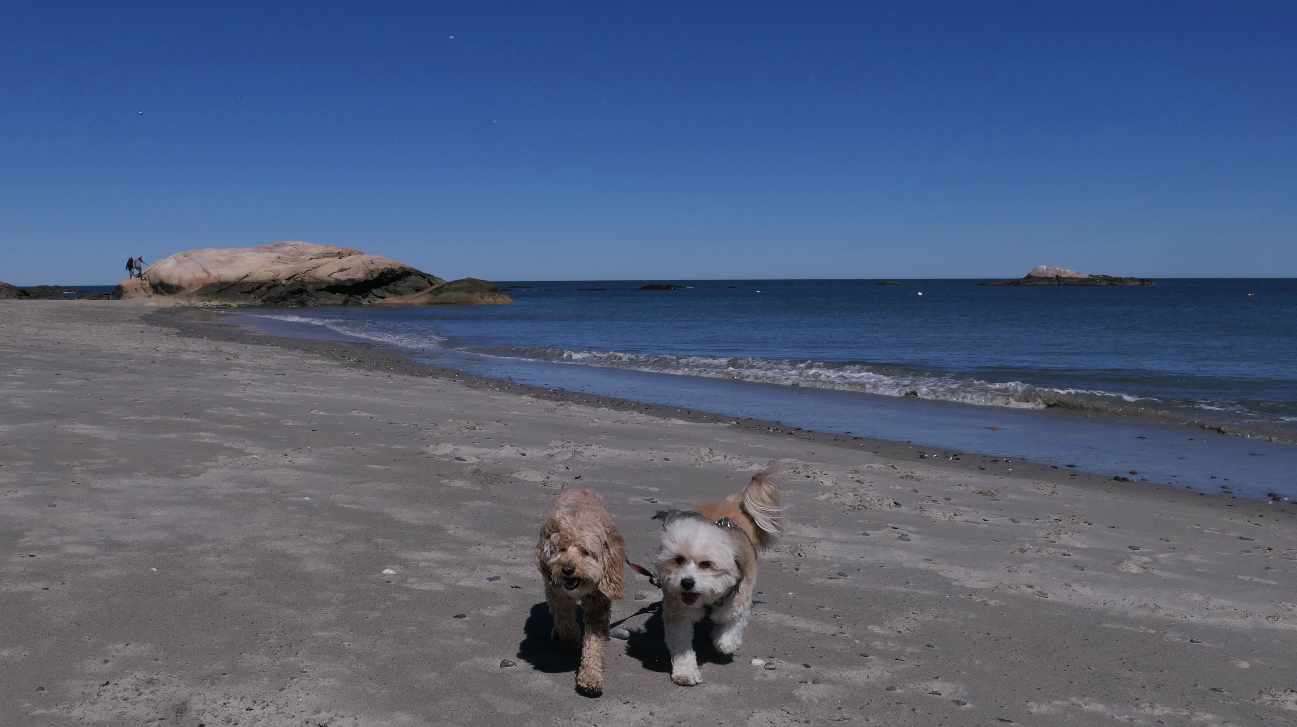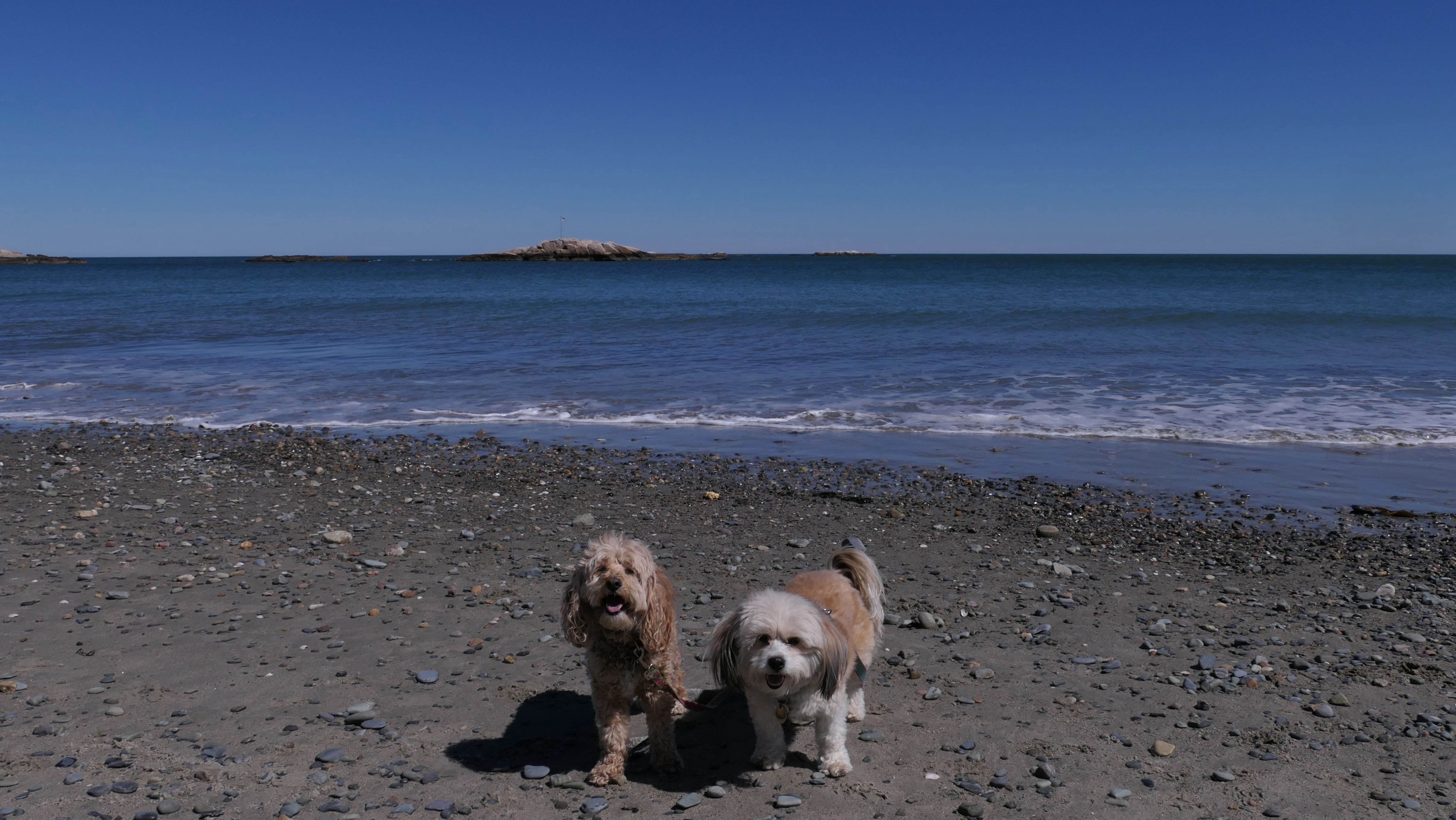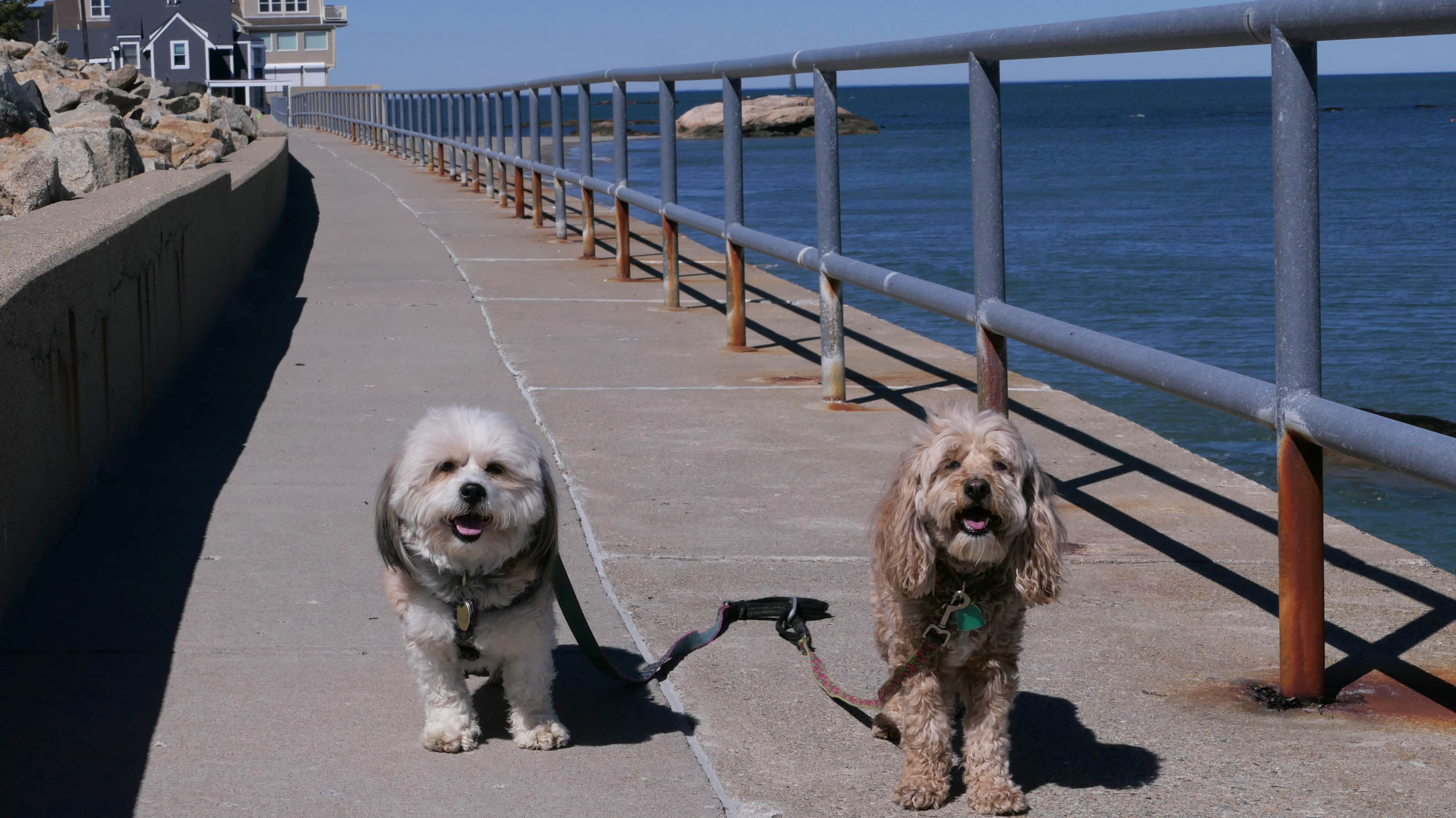 It was difficult to find a parking spot here. The small lots for this beach were all permit parking only. We eventually did find some parking on the road, but like Cohasset, I get the distinct impression the locals don't want us outsiders here. This is a small beach, and dogs are allowed from Sept 16 to June 14th. The beach is in two sections separated by a seawall. The seawall has a walking trail that runs along the top of the wall. There are poop bag dispensers, but no garbage cans. People left their filled poop bags all along the seawall. The bags were likely left by the people who live in the town and have a permit to park, but as an unwanted outsider, I took Mandy and Lexi's poop bags with me when I left.
