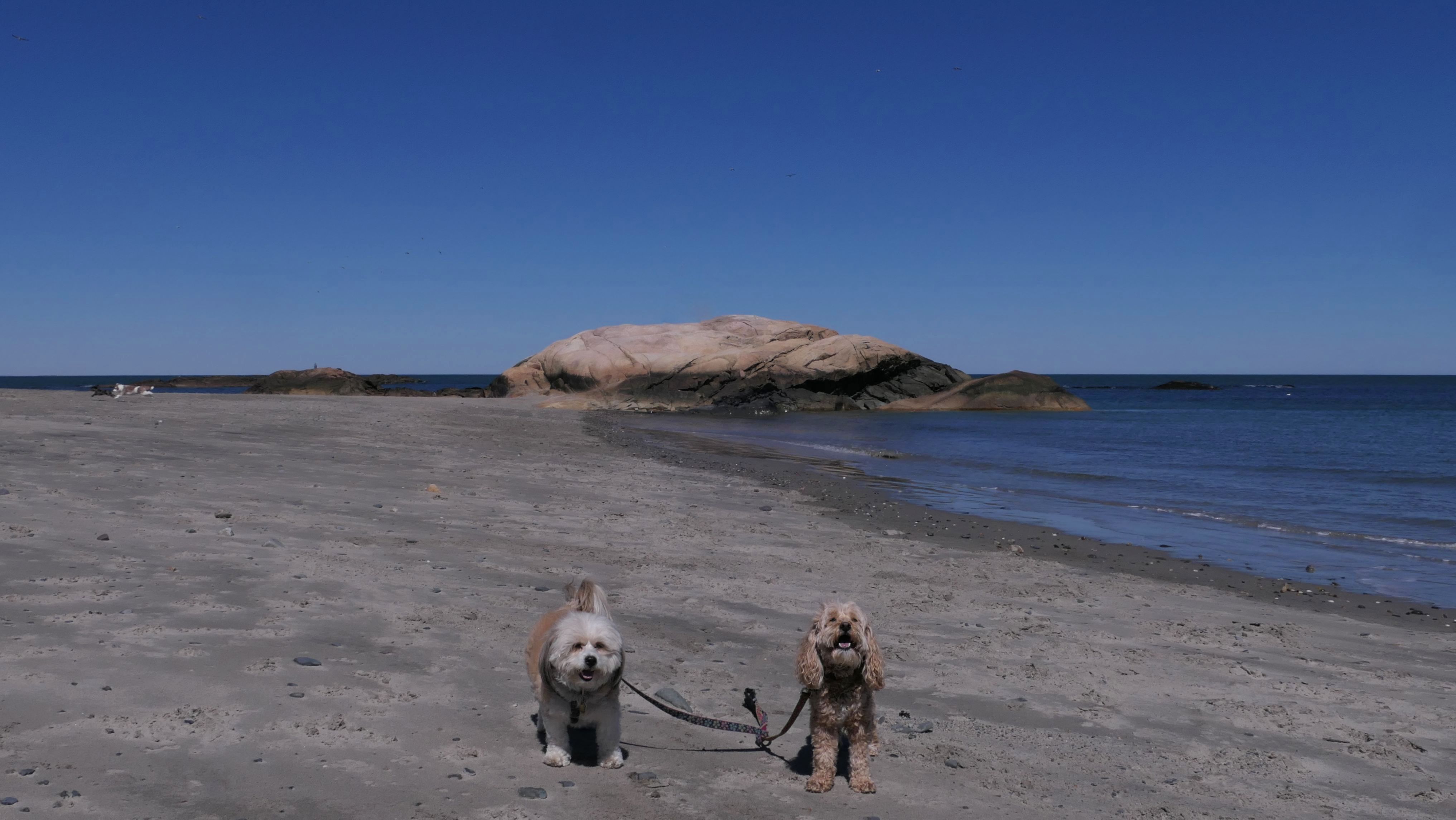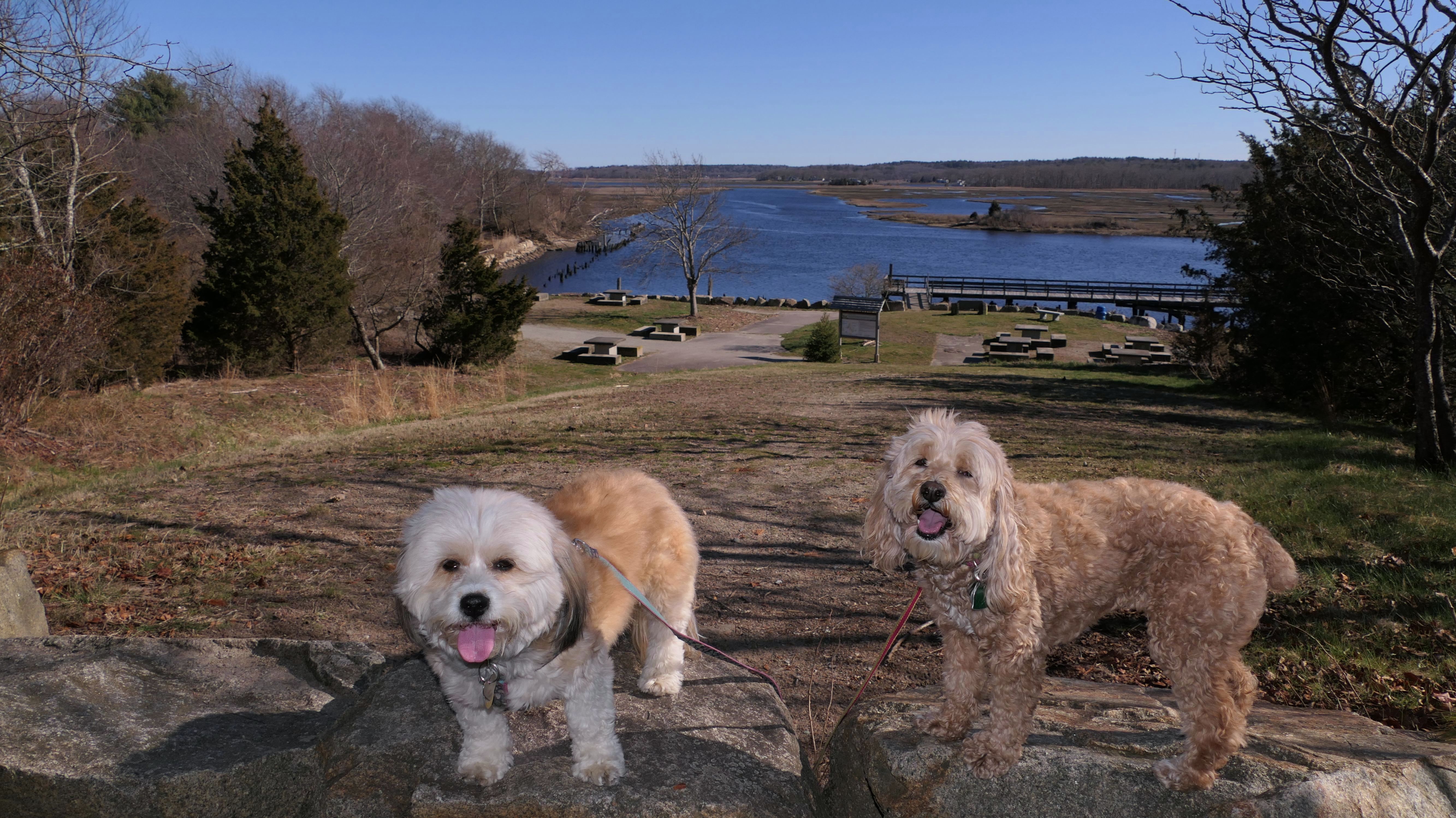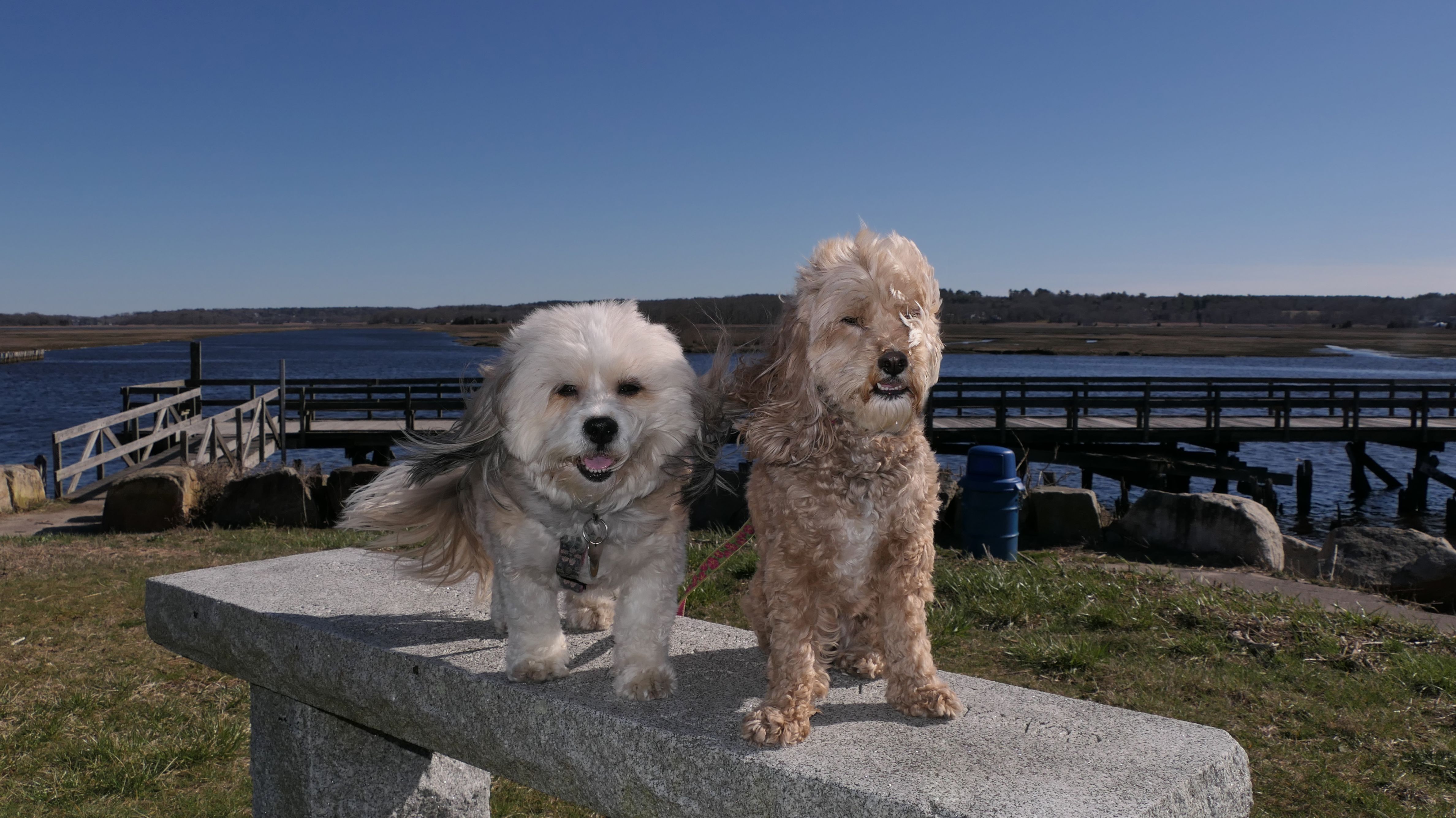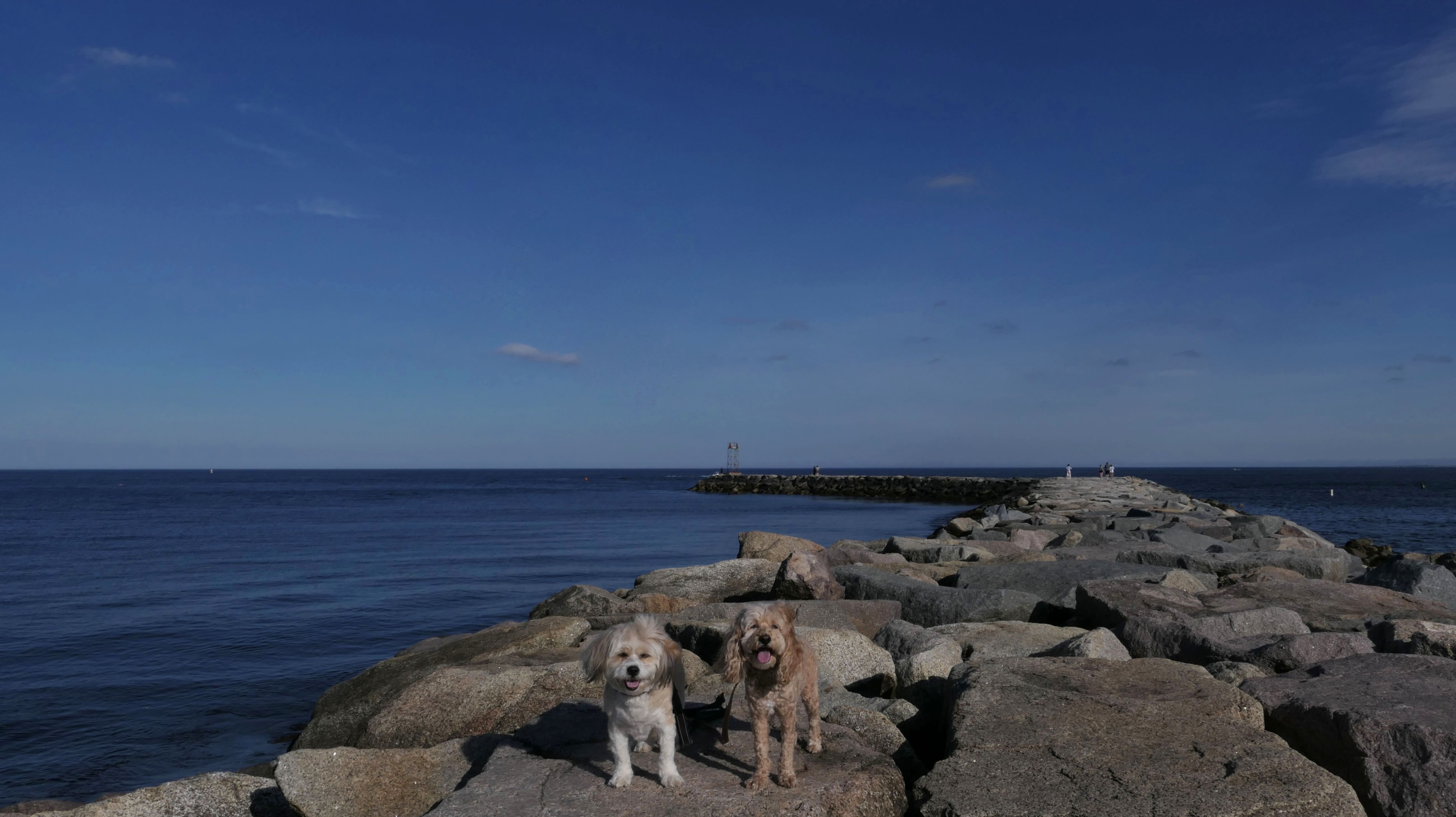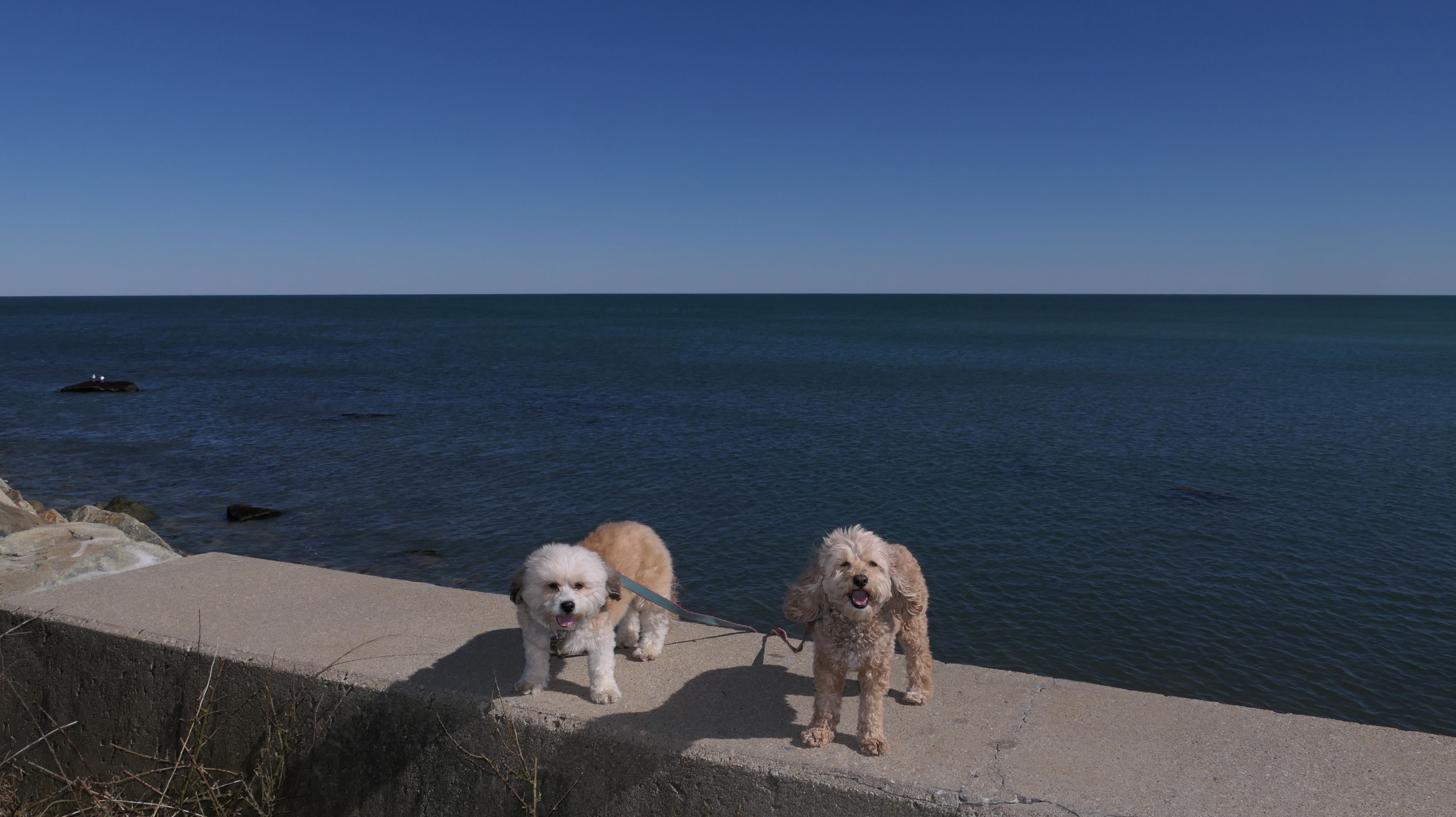 It was difficult to find a parking spot here. The small lots for this beach were all permit parking only. We eventually did find some parking on the road, but like Cohasset, I get the distinct impression the locals don't want us outsiders here. This is a small beach, and dogs are allowed from Sept 16 to June 14th. The beach is in two sections separated by a seawall. The seawall has a walking trail that runs along the top of the wall. There are poop bag dispensers, but no garbage cans. People left their filled poop bags all along the seawall. The bags were likely left by the people who live in the town and have a permit to park, but as an unwanted outsider, I took Mandy and Lexi's poop bags with me when I left.
