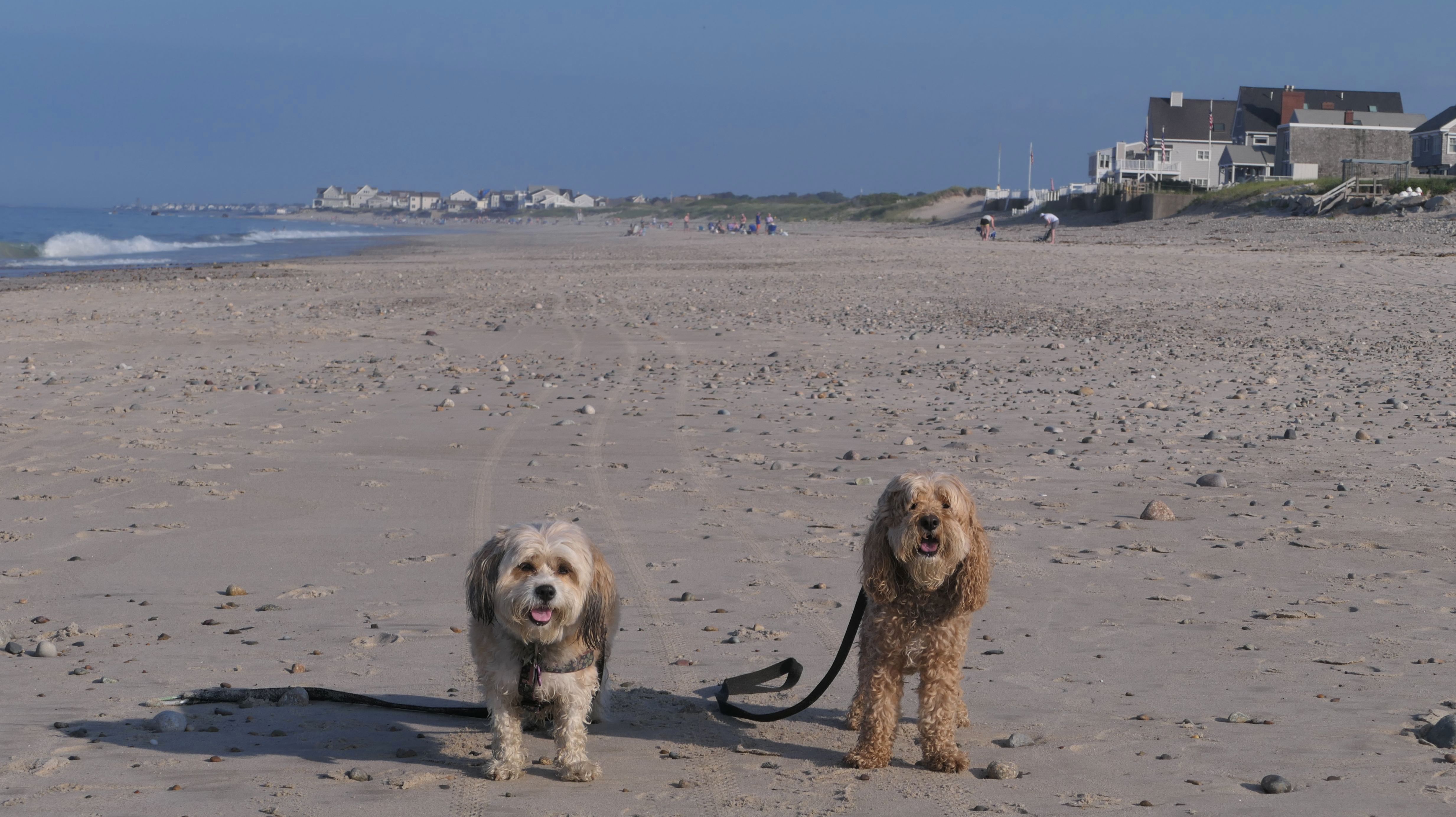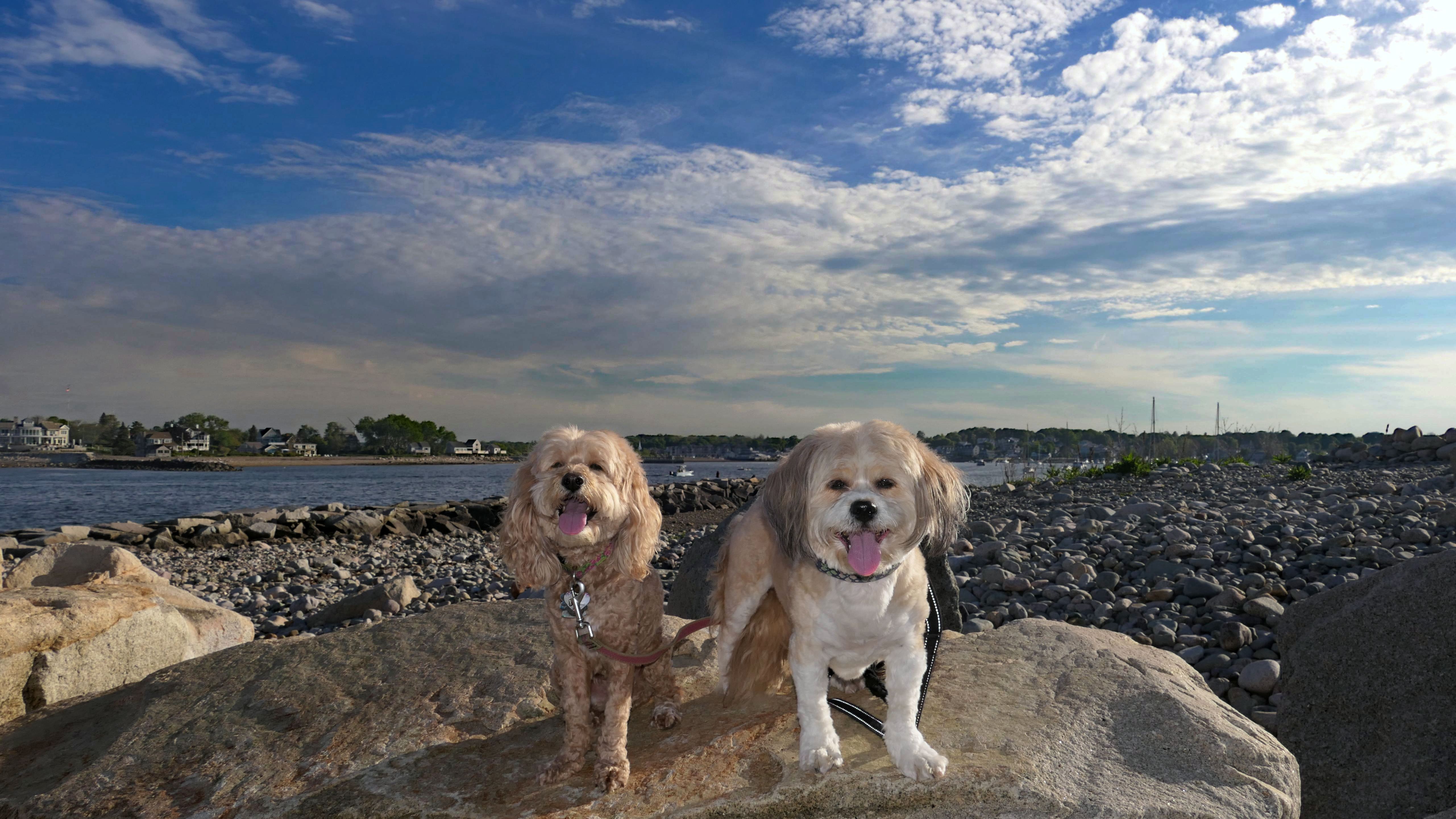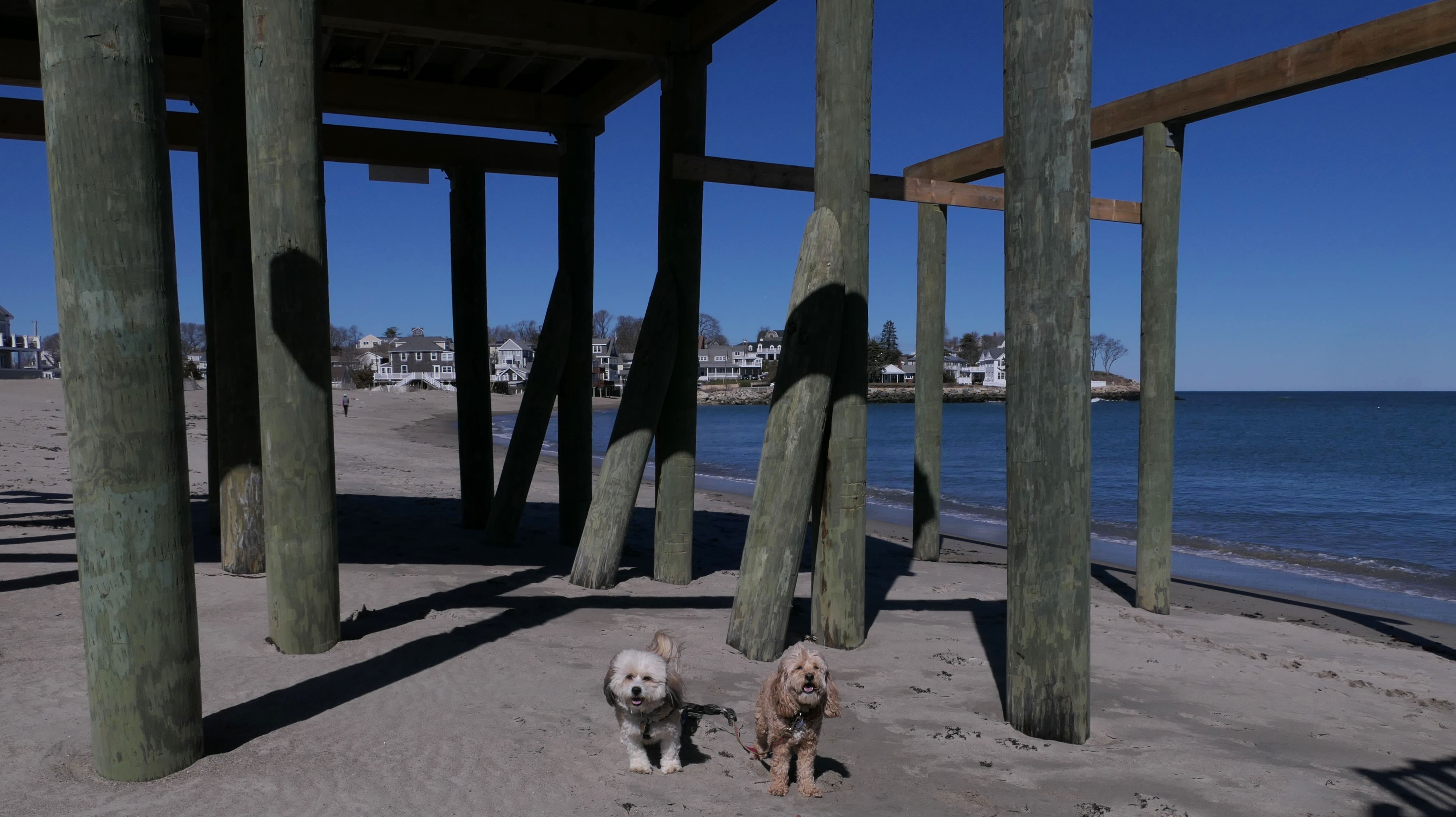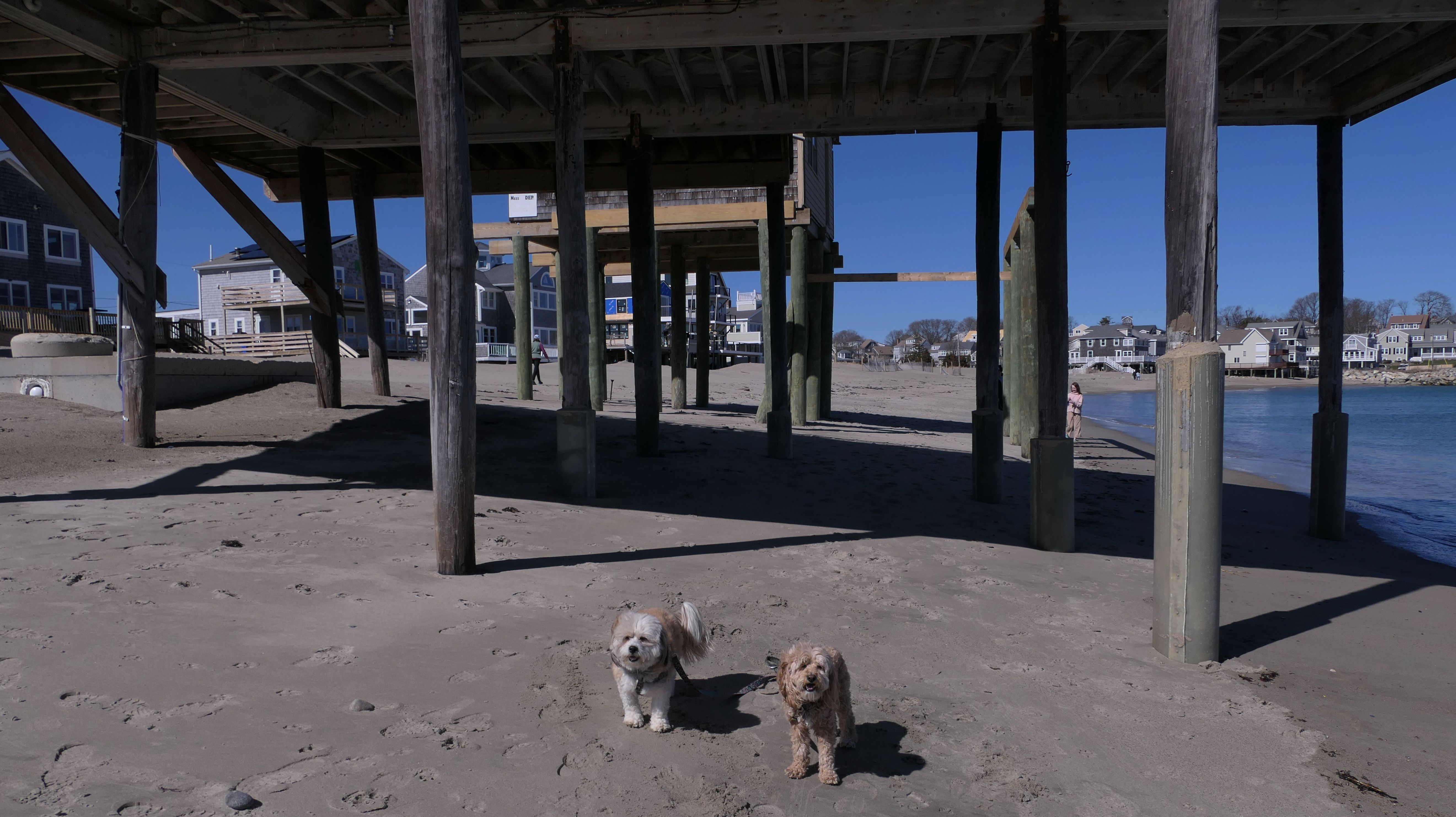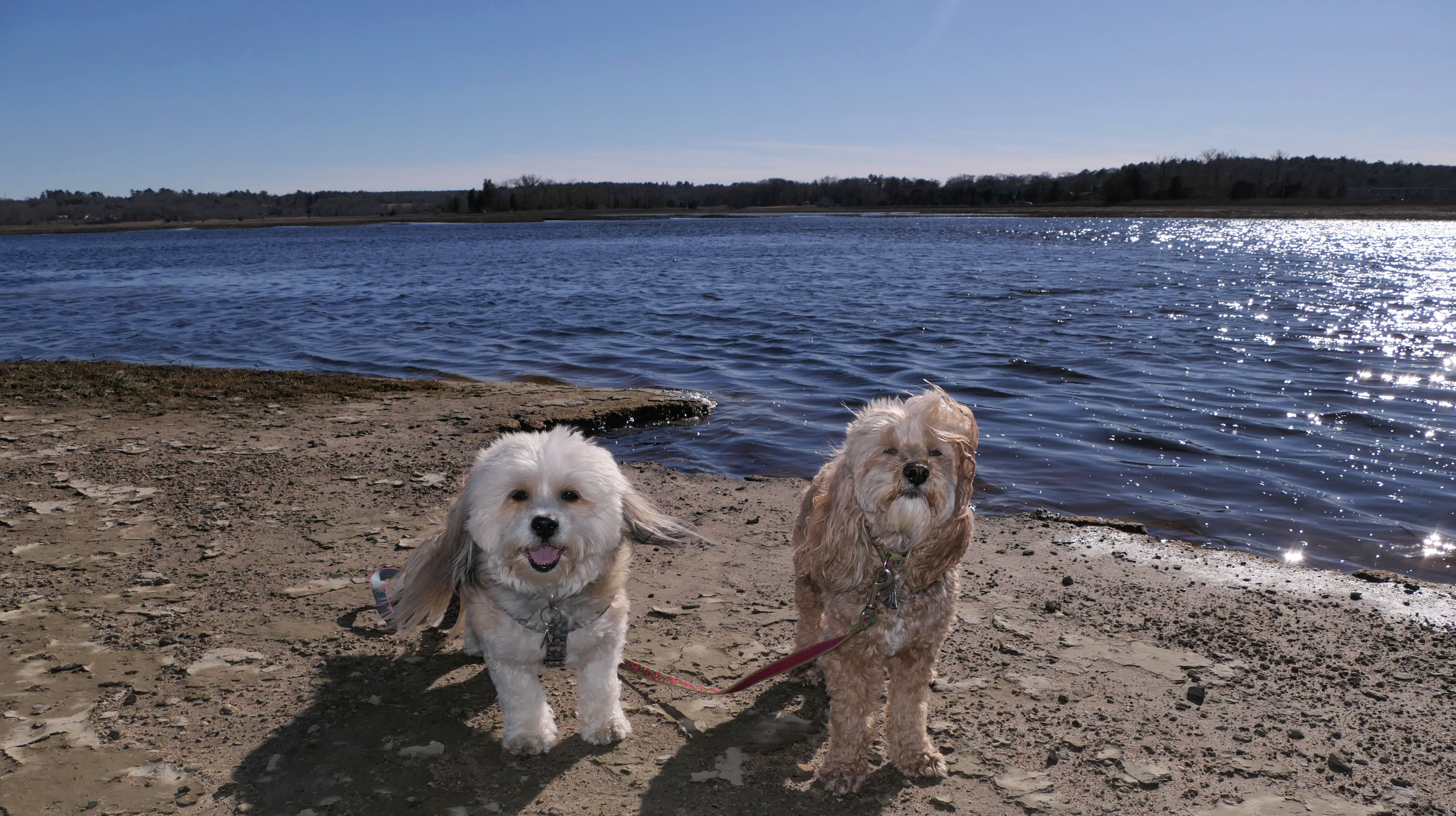 It was difficult to find a parking spot here. The small lots for this beach were all permit parking only. We eventually did find some parking on the road, but like Cohasset, I get the distinct impression the locals don't want us outsiders here. This is a small beach, and dogs are allowed from Sept 16 to June 14th. The beach is in two sections separated by a seawall. The seawall has a walking trail that runs along the top of the wall. There are poop bag dispensers, but no garbage cans. People left their filled poop bags all along the seawall. The bags were likely left by the people who live in the town and have a permit to park, but as an unwanted outsider, I took Mandy and Lexi's poop bags with me when I left.