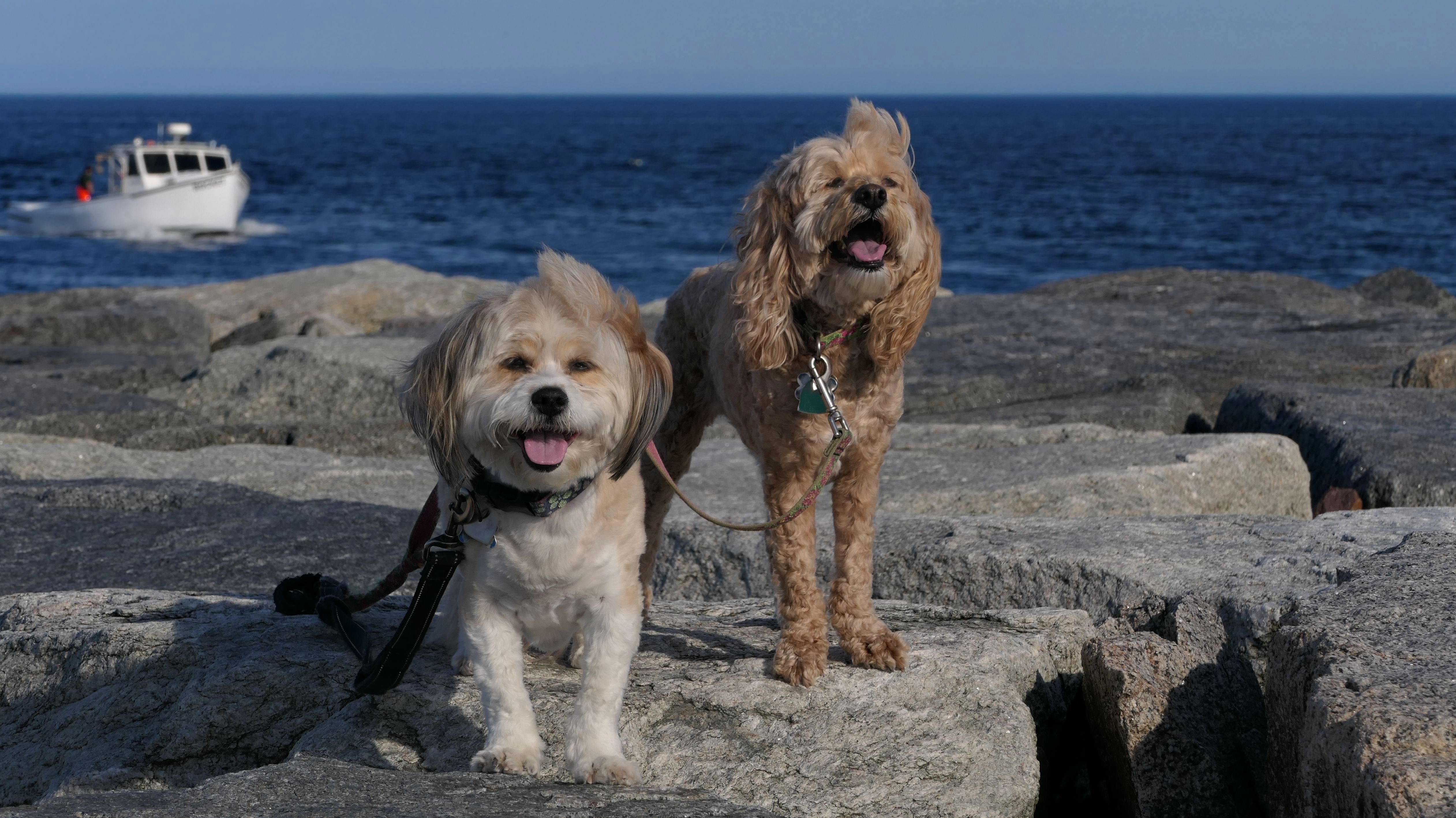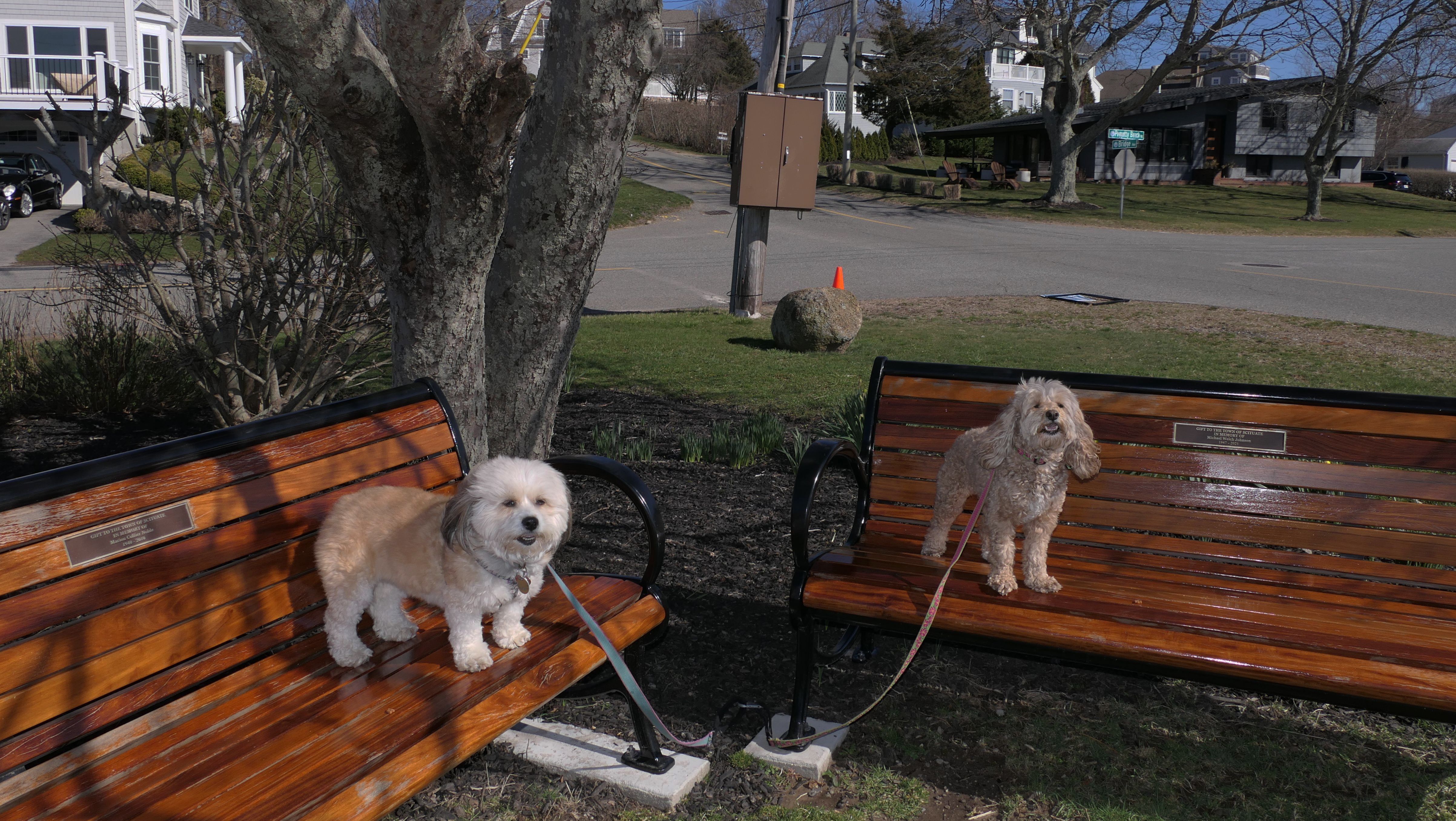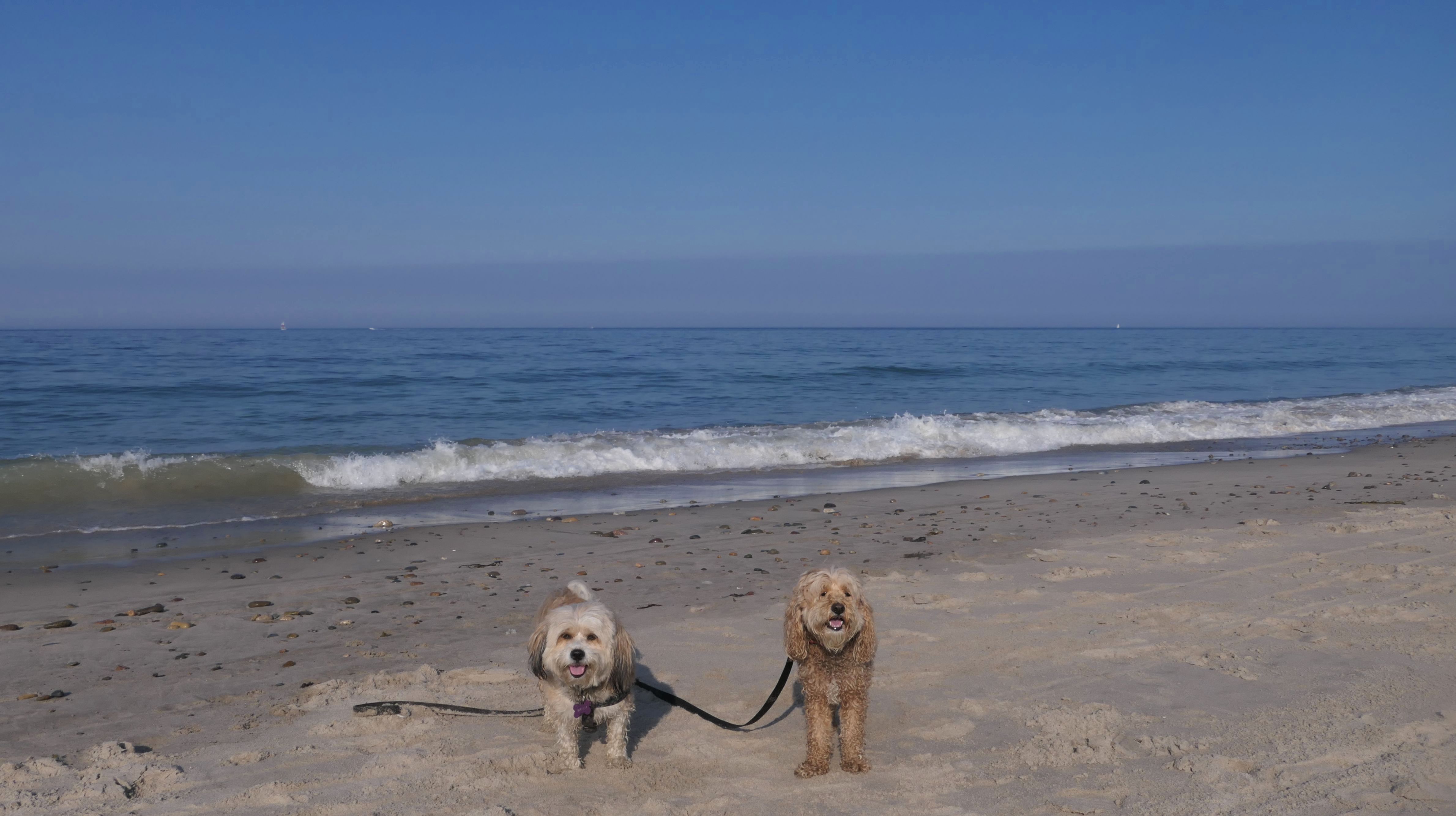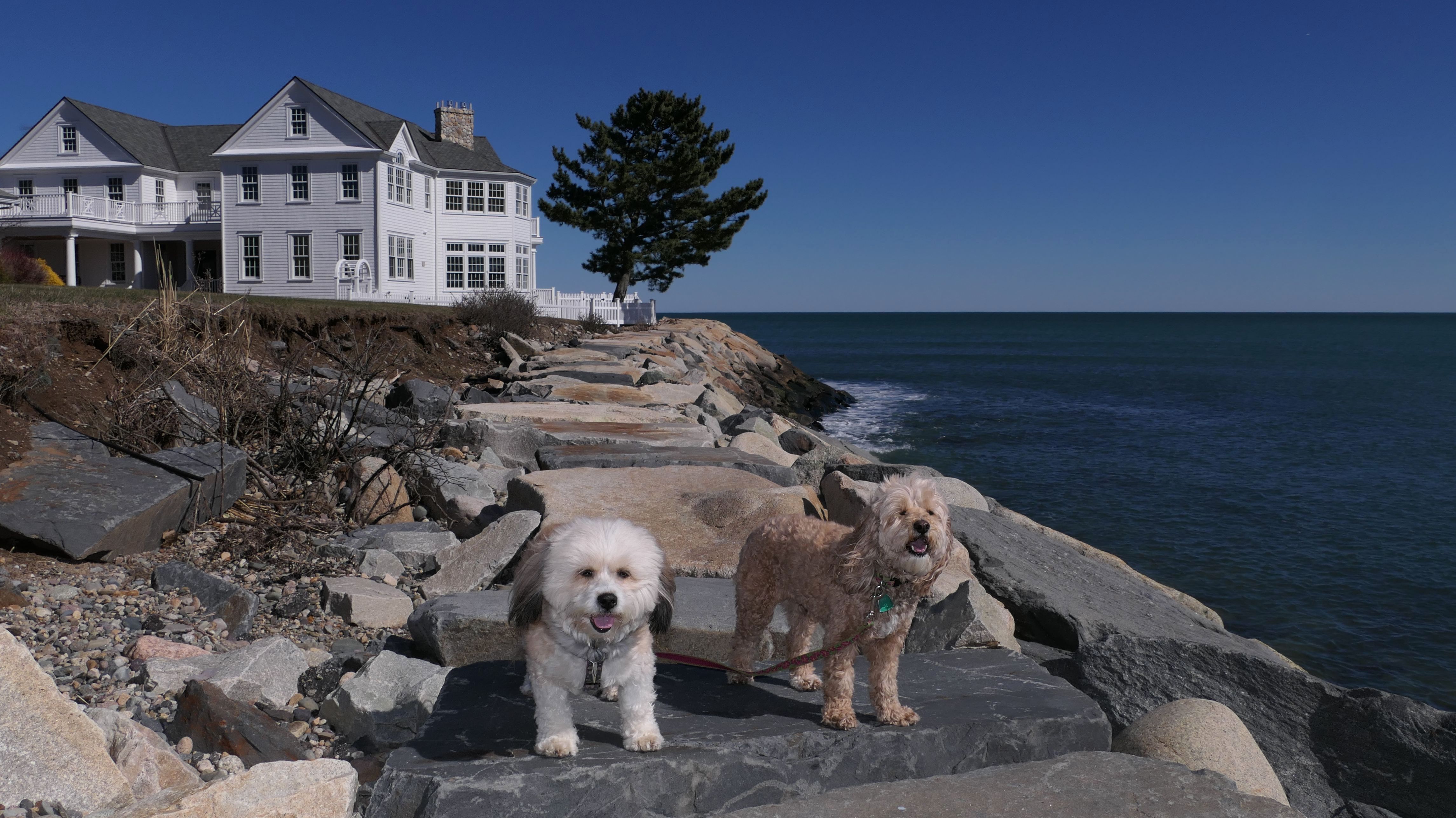 It was difficult to find a parking spot here. The small lots for this beach were all permit parking only. We eventually did find some parking on the road, but like Cohasset, I get the distinct impression the locals don't want us outsiders here. This is a small beach, and dogs are allowed from Sept 16 to June 14th. The beach is in two sections separated by a seawall. The seawall has a walking trail that runs along the top of the wall. There are poop bag dispensers, but no garbage cans. People left their filled poop bags all along the seawall. The bags were likely left by the people who live in the town and have a permit to park, but as an unwanted outsider, I took Mandy and Lexi's poop bags with me when I left.