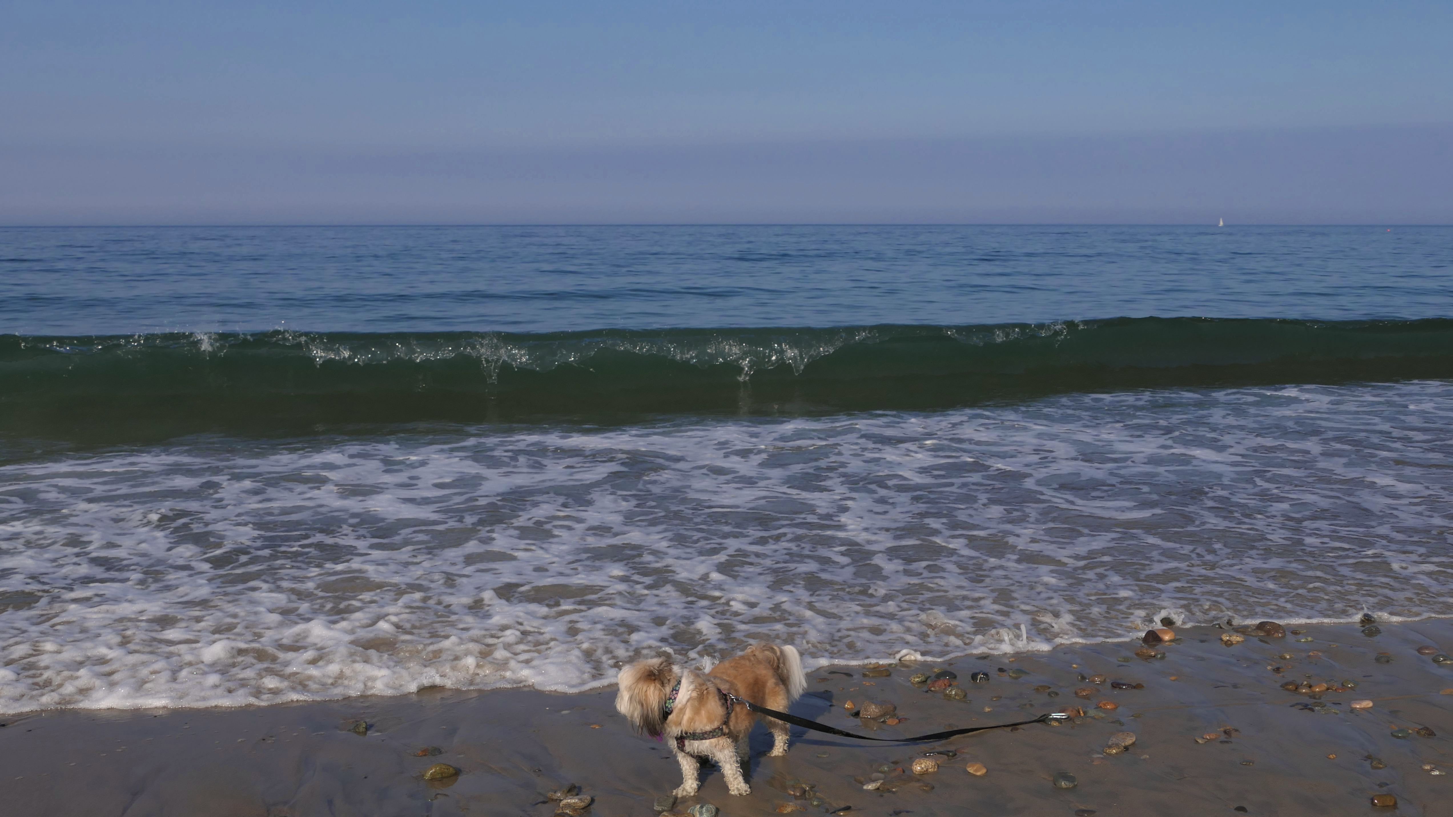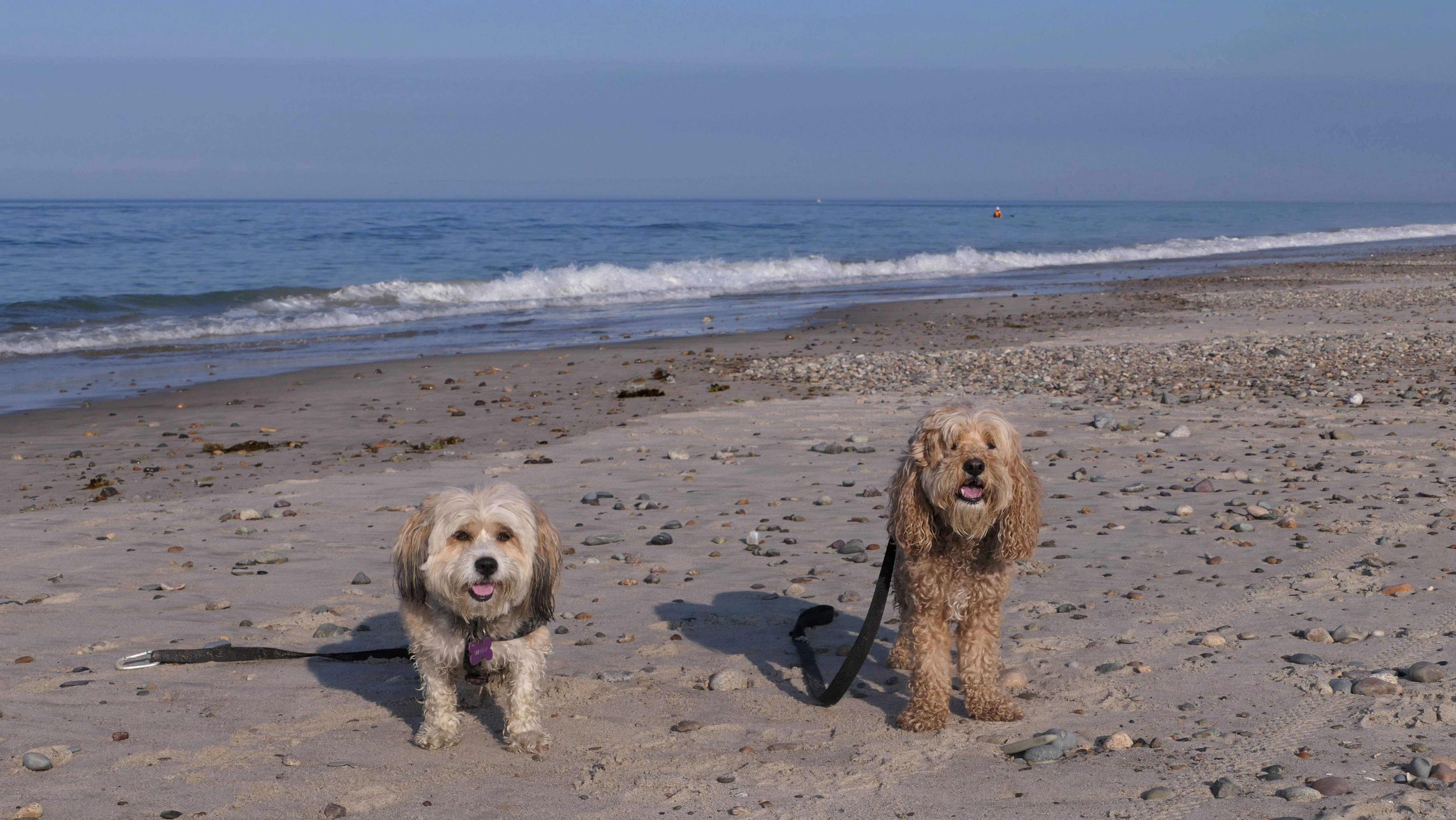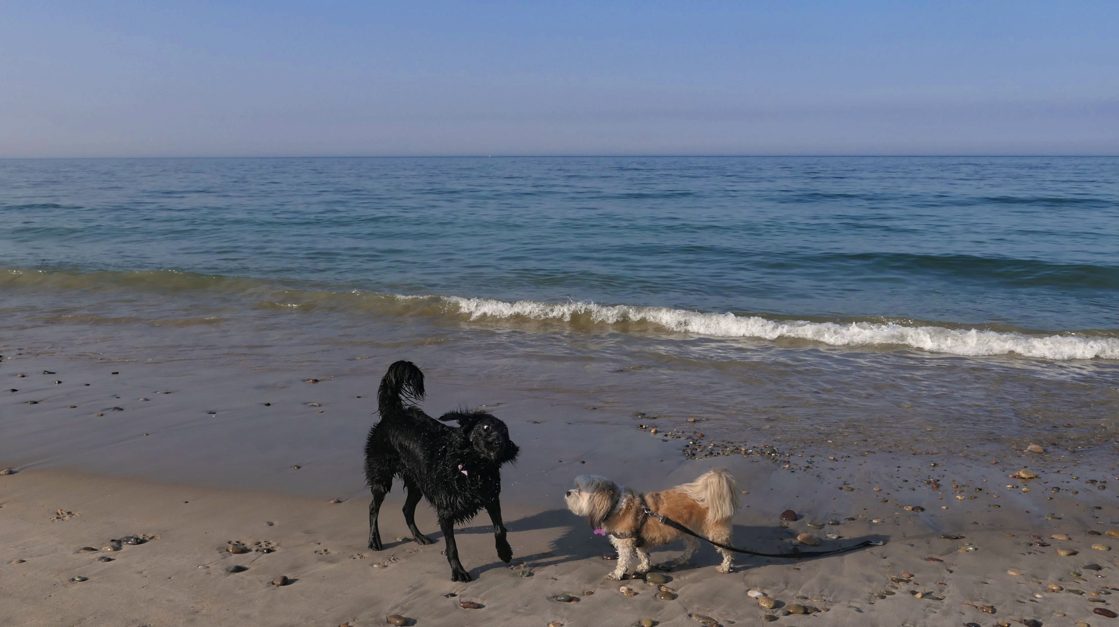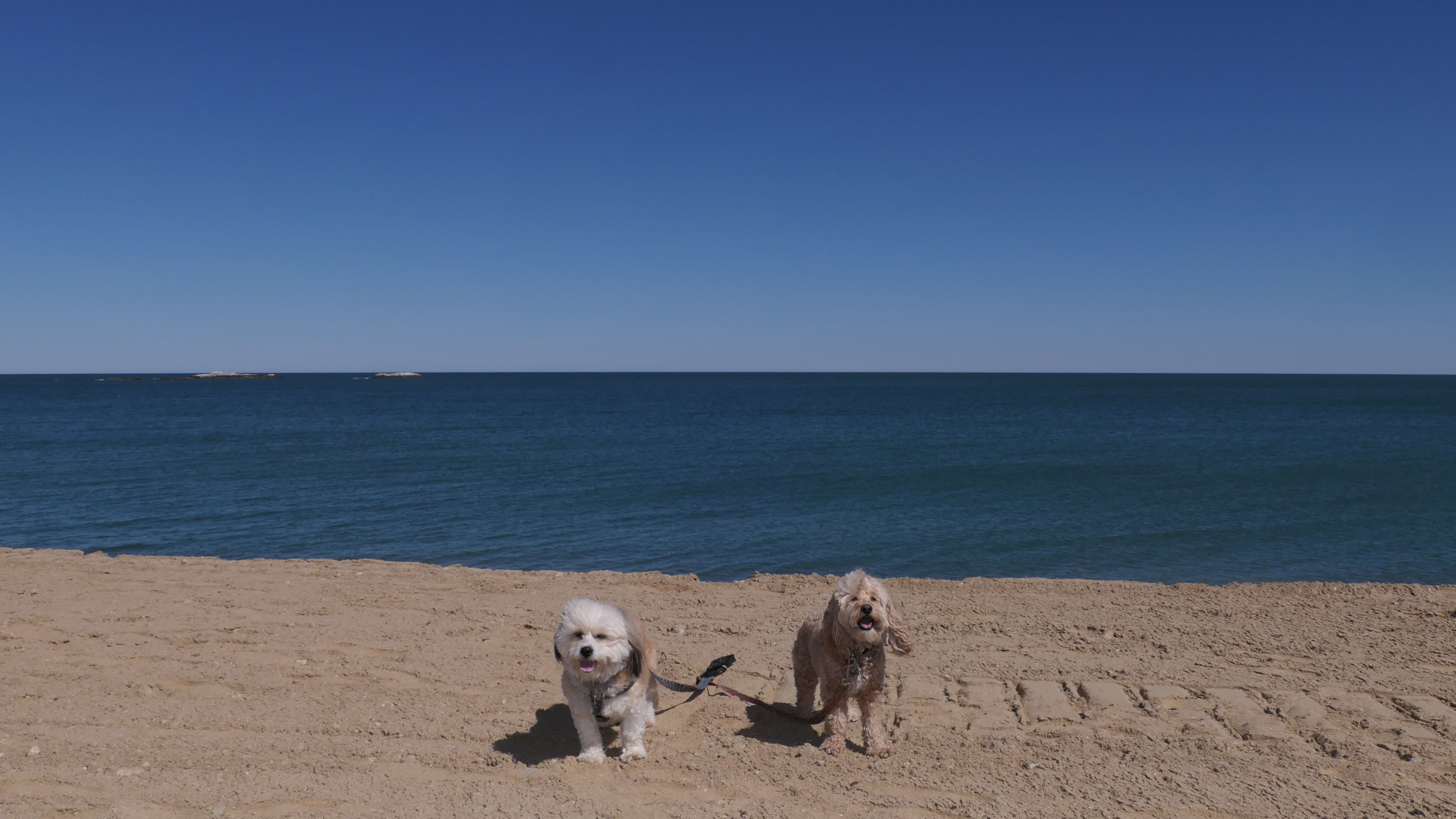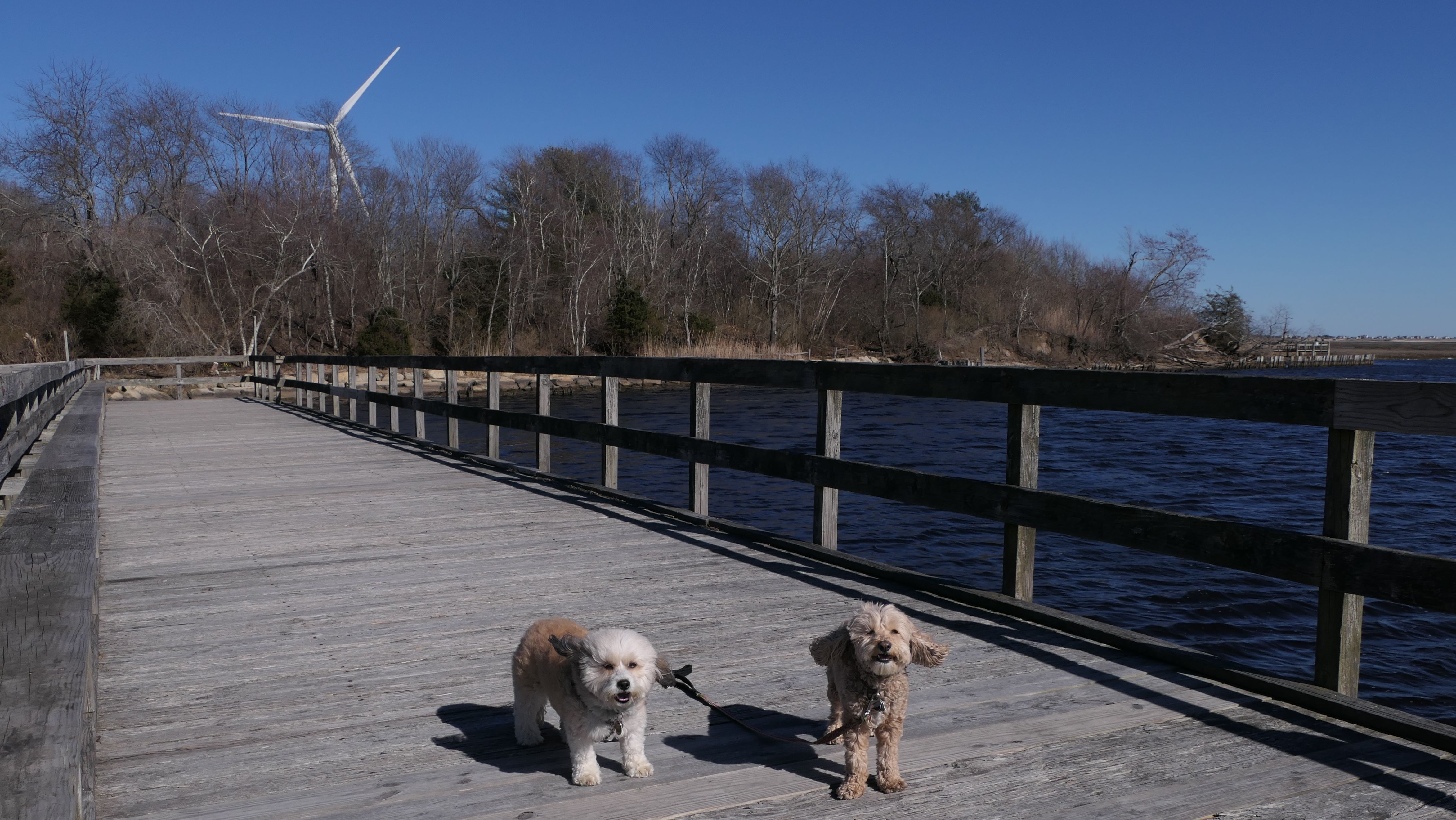 It was difficult to find a parking spot here. The small lots for this beach were all permit parking only. We eventually did find some parking on the road, but like Cohasset, I get the distinct impression the locals don't want us outsiders here. This is a small beach, and dogs are allowed from Sept 16 to June 14th. The beach is in two sections separated by a seawall. The seawall has a walking trail that runs along the top of the wall. There are poop bag dispensers, but no garbage cans. People left their filled poop bags all along the seawall. The bags were likely left by the people who live in the town and have a permit to park, but as an unwanted outsider, I took Mandy and Lexi's poop bags with me when I left.