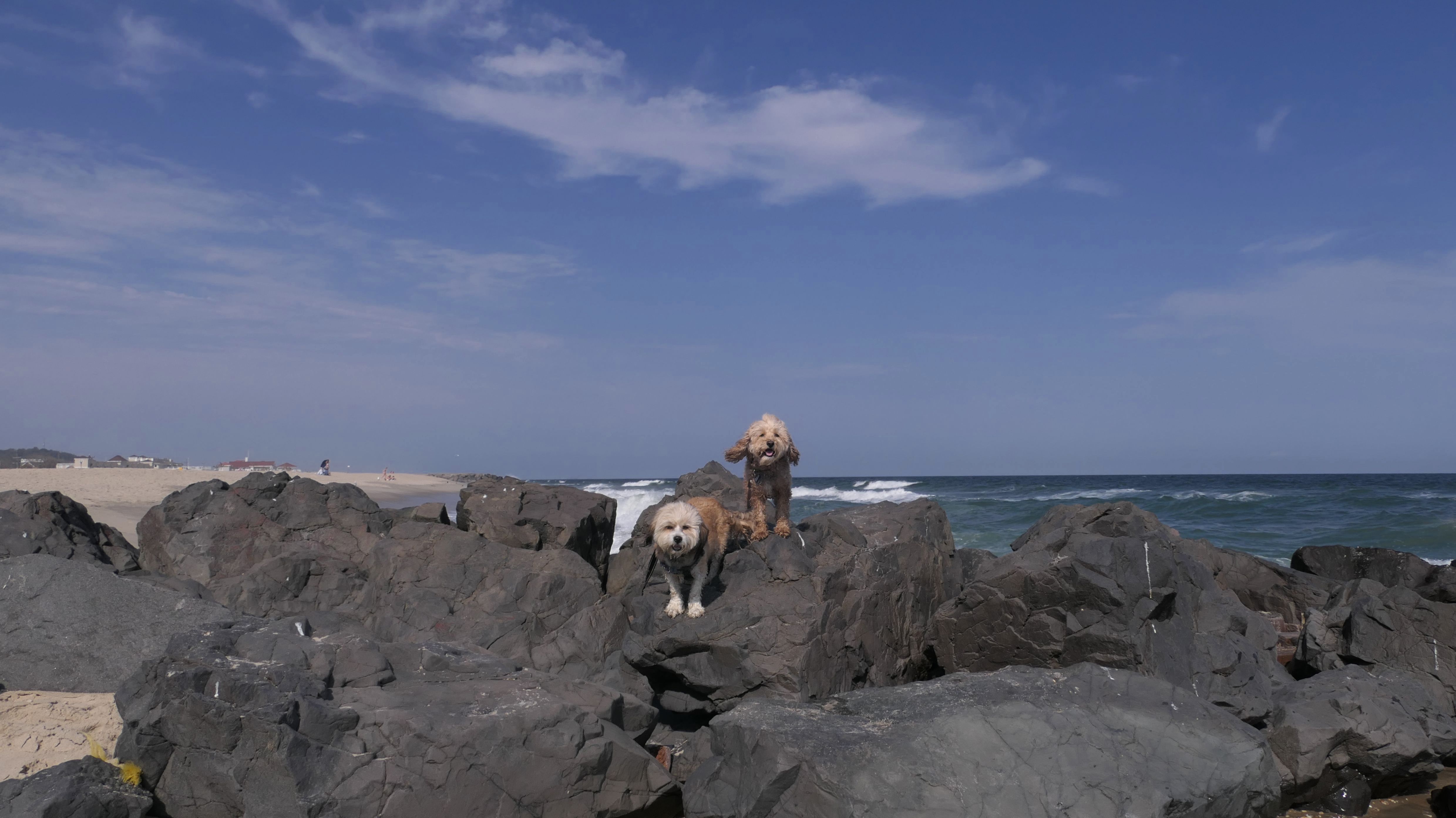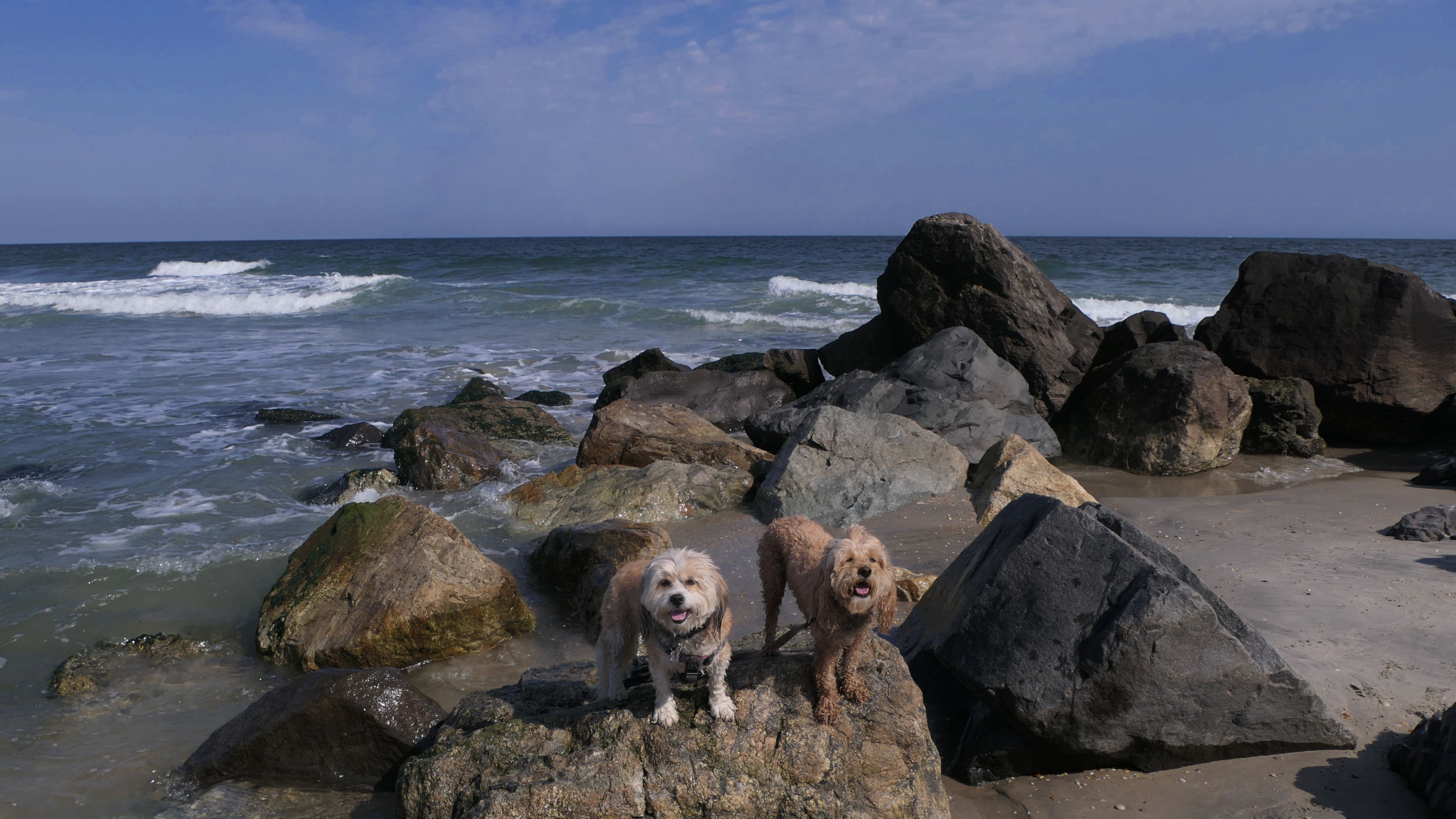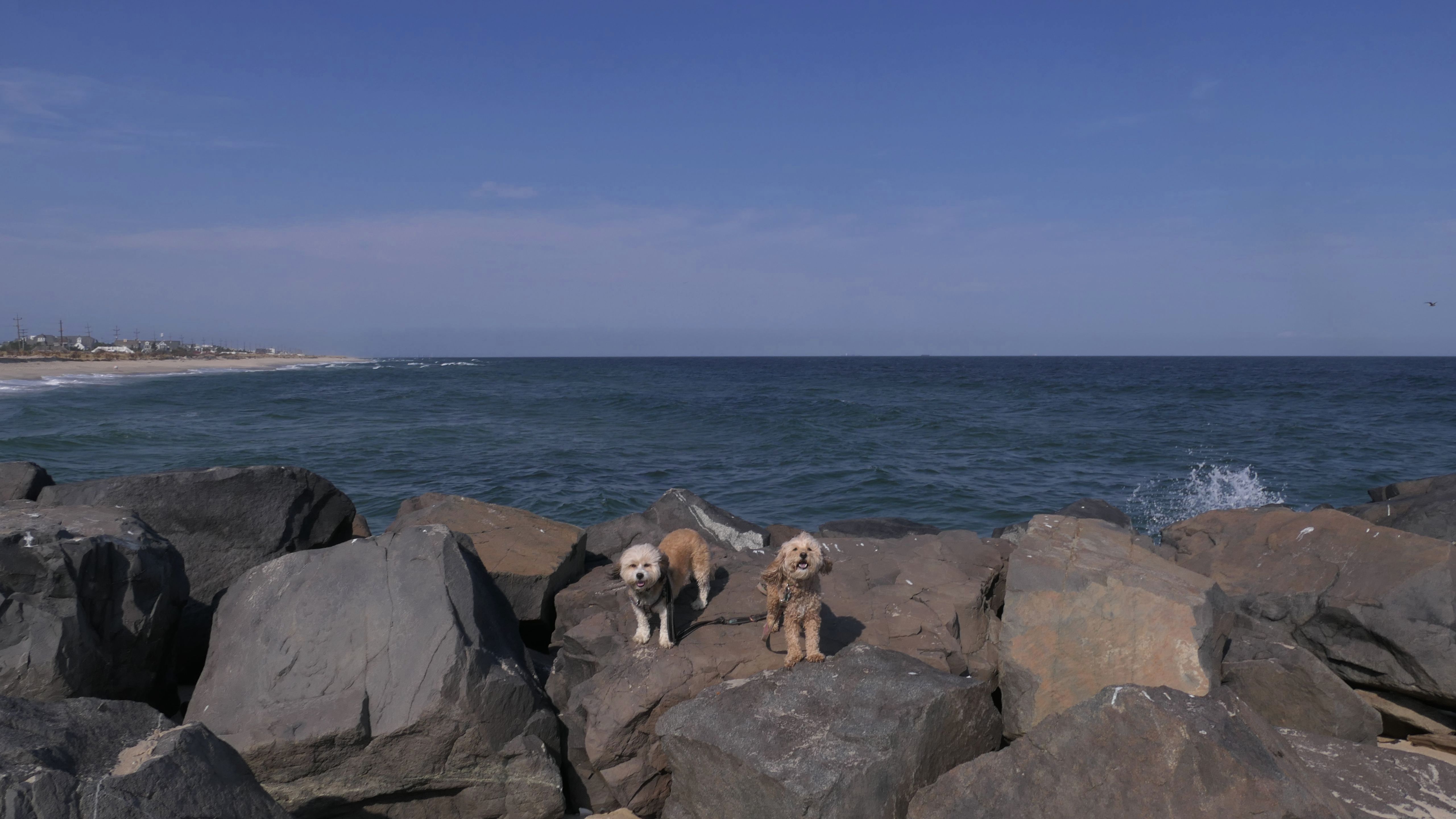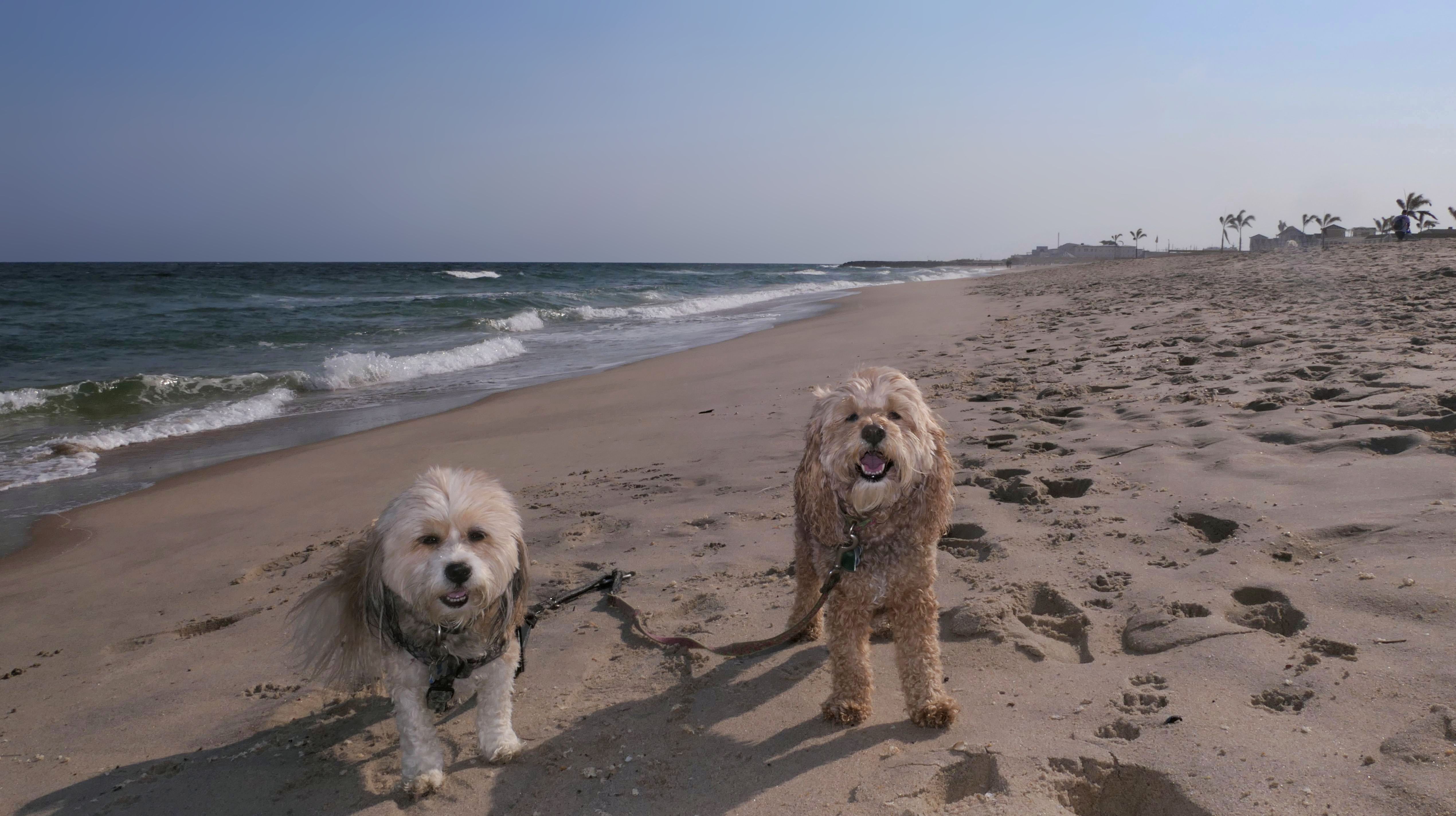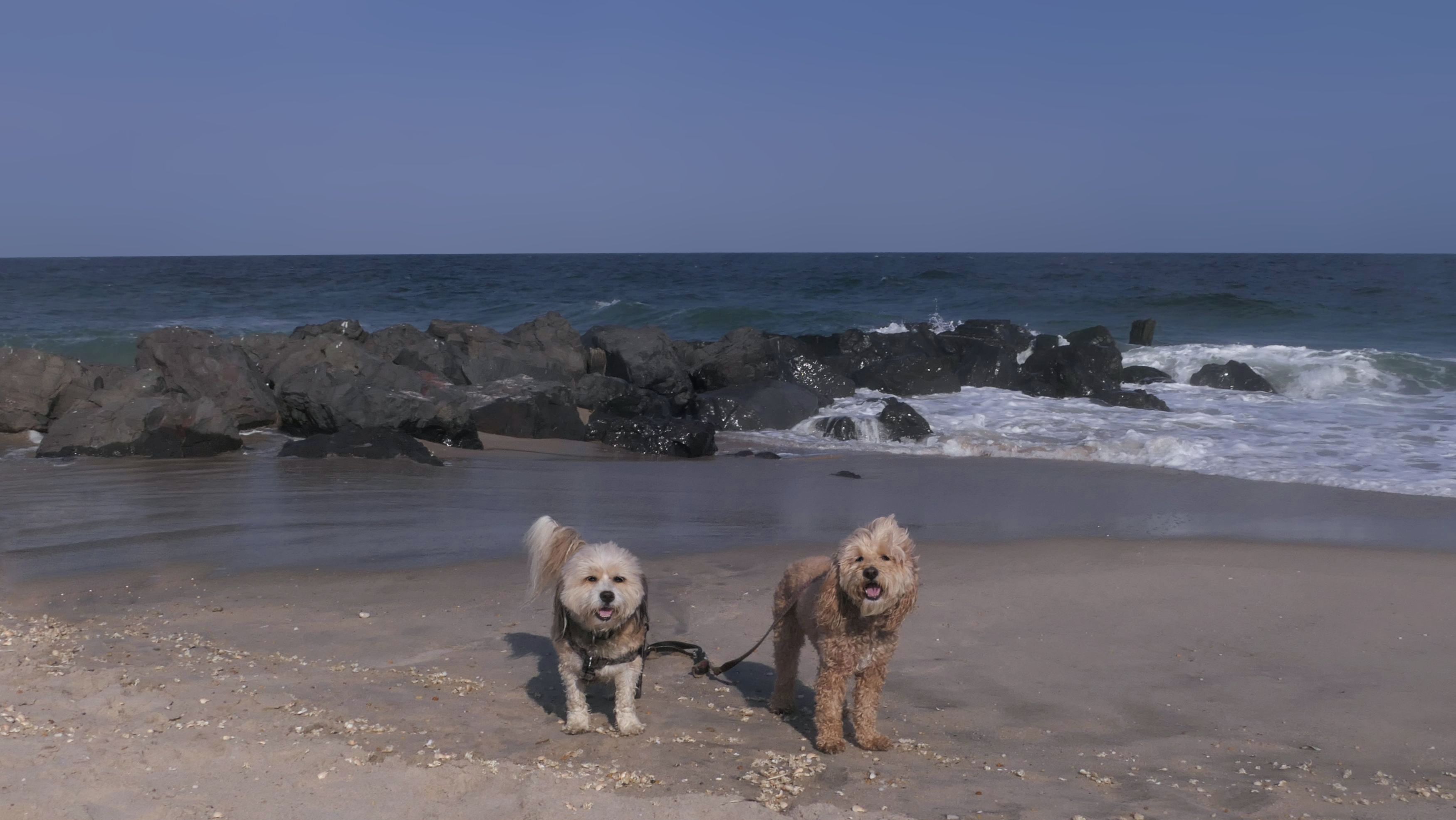 I just don't want to give up on summer! We drove 3+ hours for another little taste of summer. It was 45 degrees, cloudy and raining in Connecticut when we left the house, but 73 degrees, warm and mostly sunny at this beach on the Jersey Shore. It's a pretty nice beach too. Dogs are allowed in the off-season, from September 16th to March 14th. Parking is free in the off-season as well. We parked at the main lot and walked about a mile and back in both directions, walking a bit over four miles total. I was surprised to see the palm trees. They appear to be part of Surfrider Beach Club. Do they plant new ones every year? That, along with the haze in the air, certainly added to the summer feel. It was wonderful to have another day like this, especially considering how miserable the weather was in Connecticut.