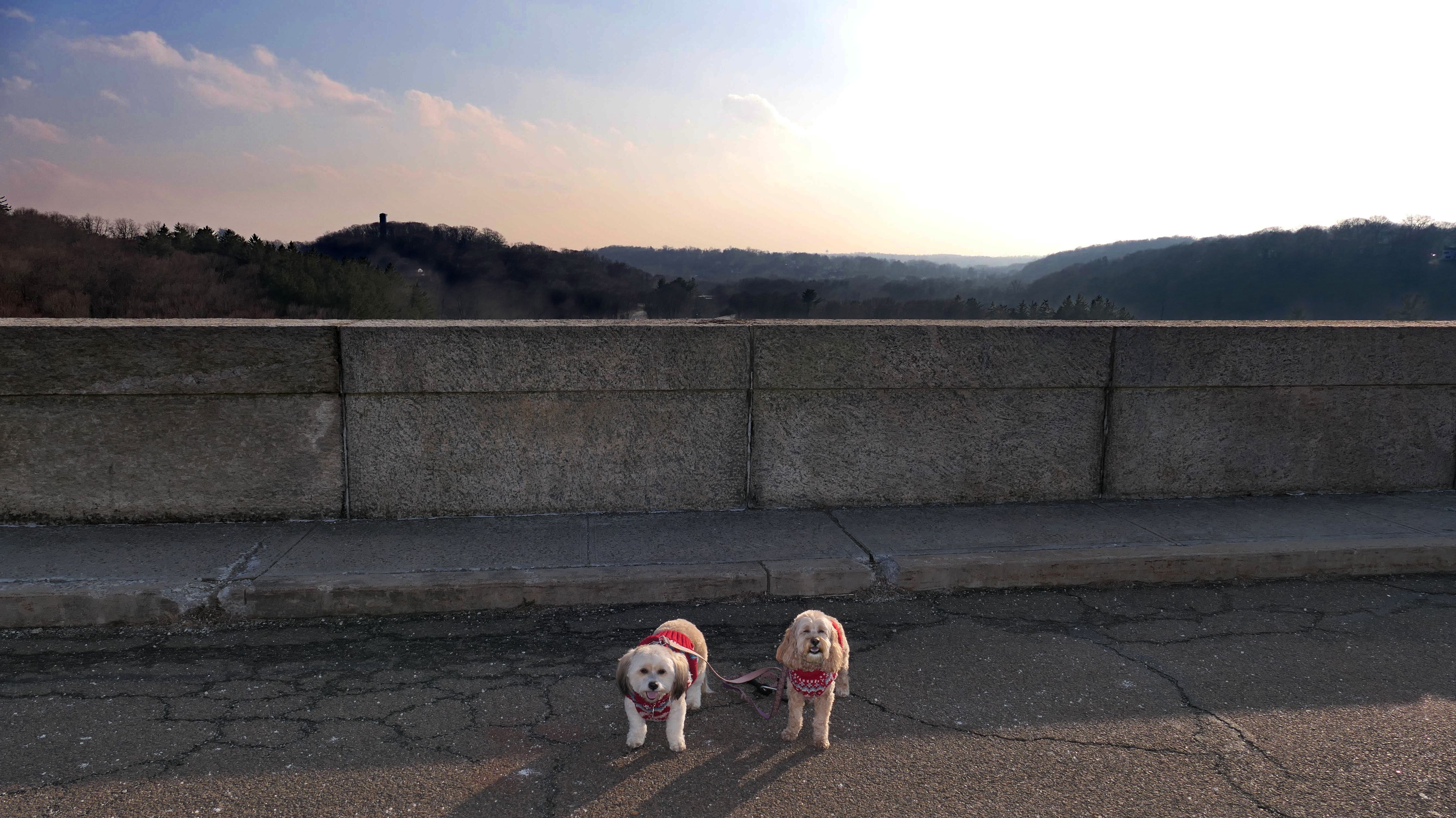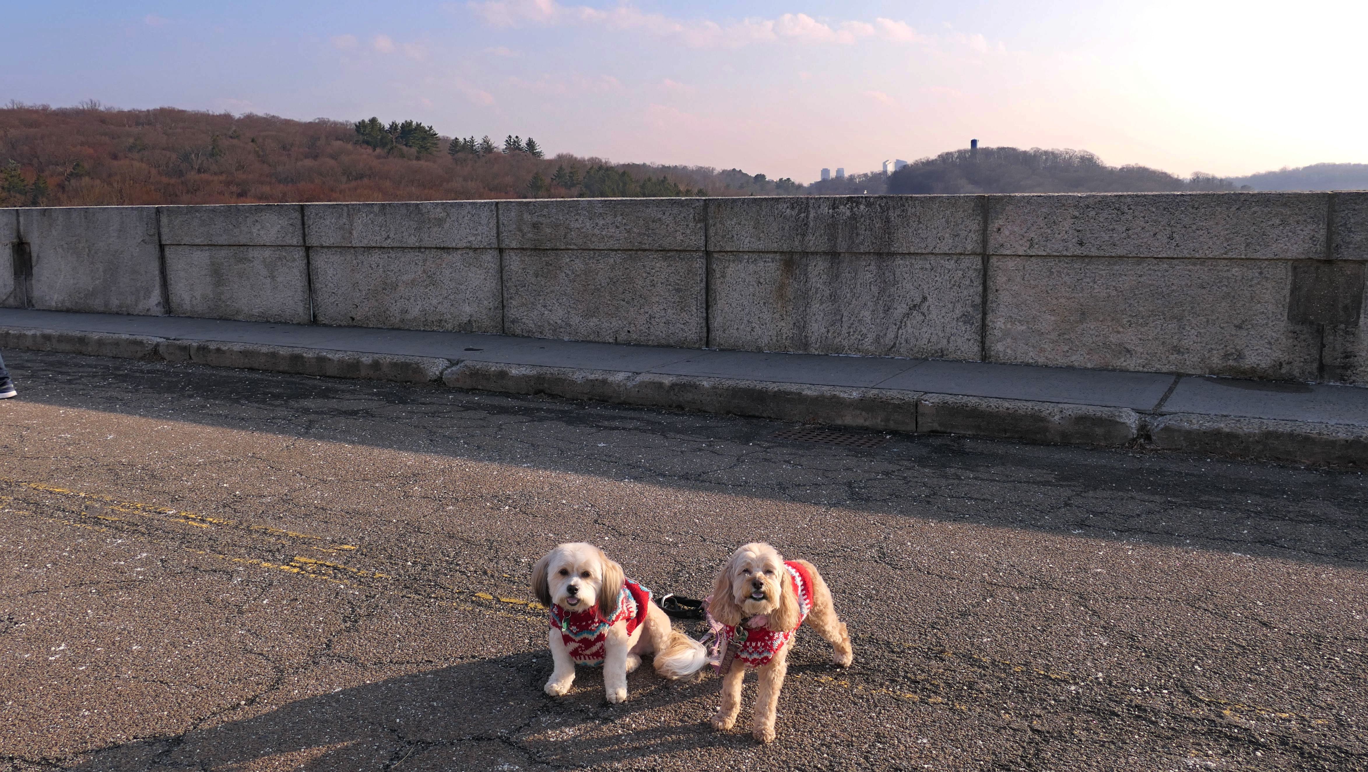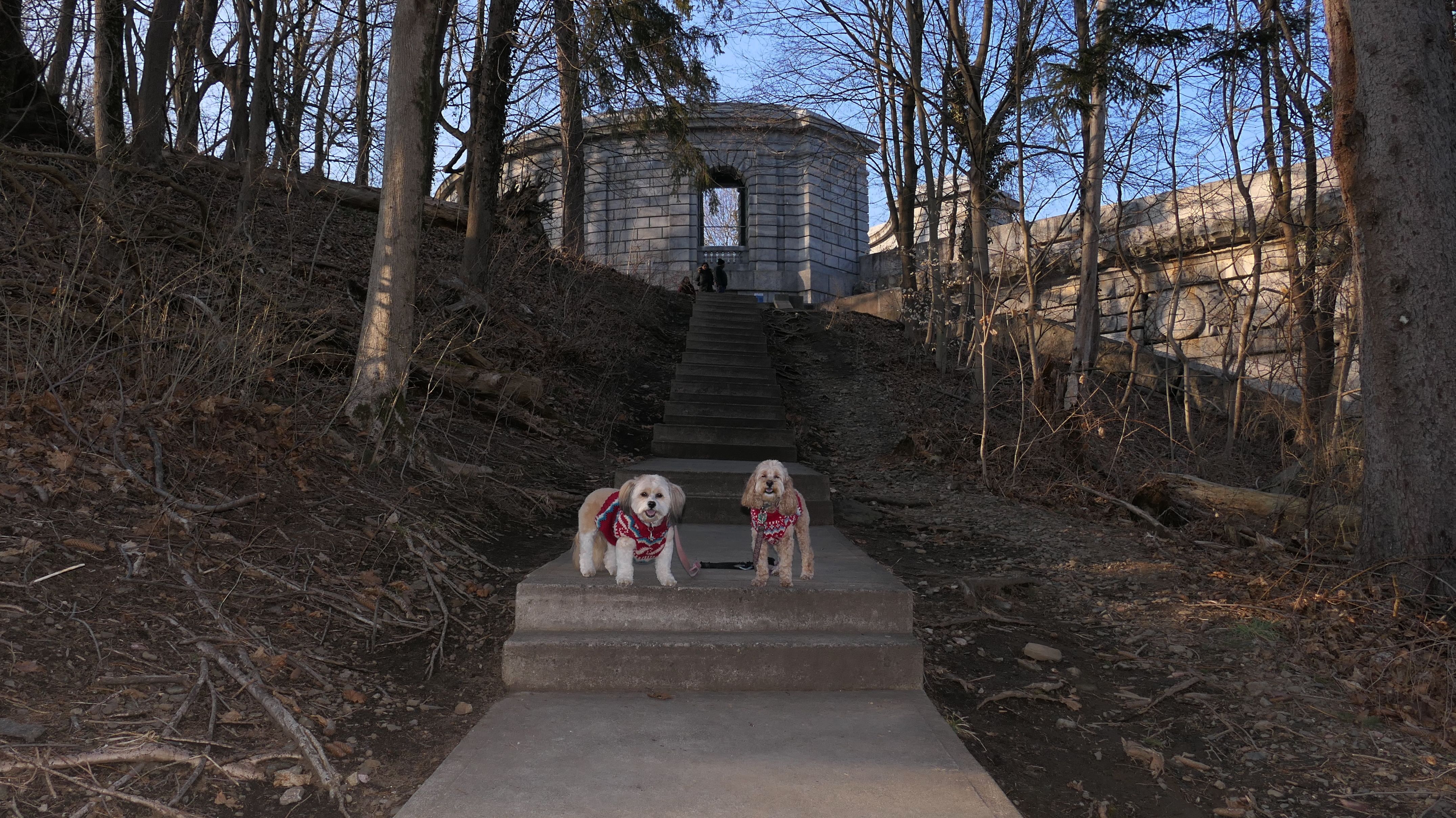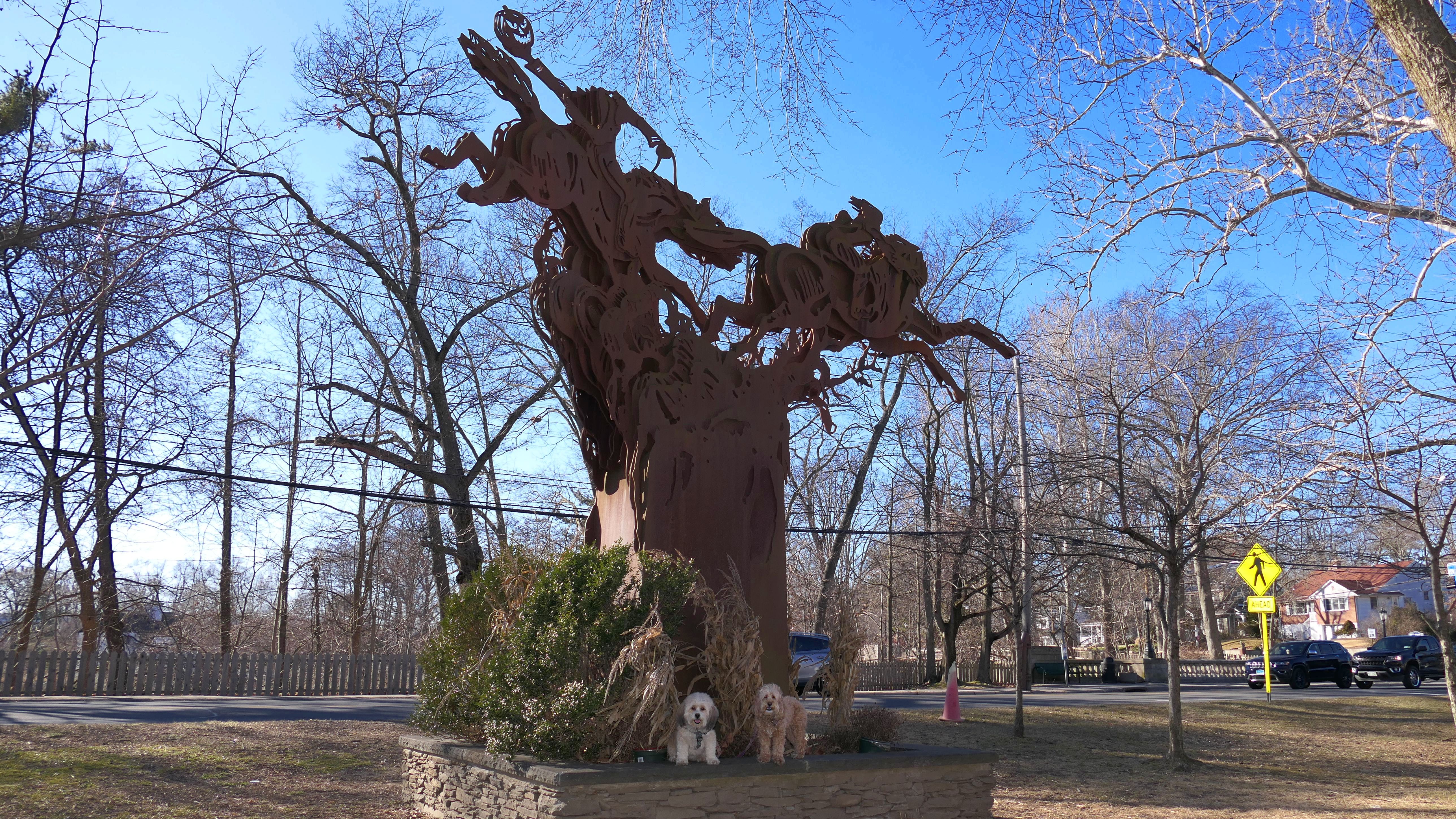 We hadn't been on an adventure in six days. Our wonderful February weather this year finally took a turn of the worse, and it was rainy and cold all week. It was warmer and sunnier in Westchester County New York, so we headed to this place. This is a really neat park that straddles the town line between the Valhalla section of Mount Pleasant and North Castle. There is an open grass area, and a promenade of sorts, in front of the very large dam. The west side of the park features a playground, while the east side of the park includes "The Rising", a 9/11 monument that honors the victims from Westchester County. Obviously, the main feature of the park is the dam. There are stairways on both sides of the dam, so we climbed to the top. There is an old road that runs right across the top of the dam that is closed to vehicular traffic. It is now just a pedestrian walk way. There are nice views from the top of the dam. I have to admit, climbing the stairs was a good workout. The climb is over 20 flights of the stairs. The dogs didn't really seem to have much issue with the climb. We did this after walking four miles on the Bronx River Pathway, that starts at this park. Needless to say, we made up for not being able to get out of the house in six days. Below are the pictures from the Mount Pleasant section of the park. Visit the North Castle page for pictures from that section.