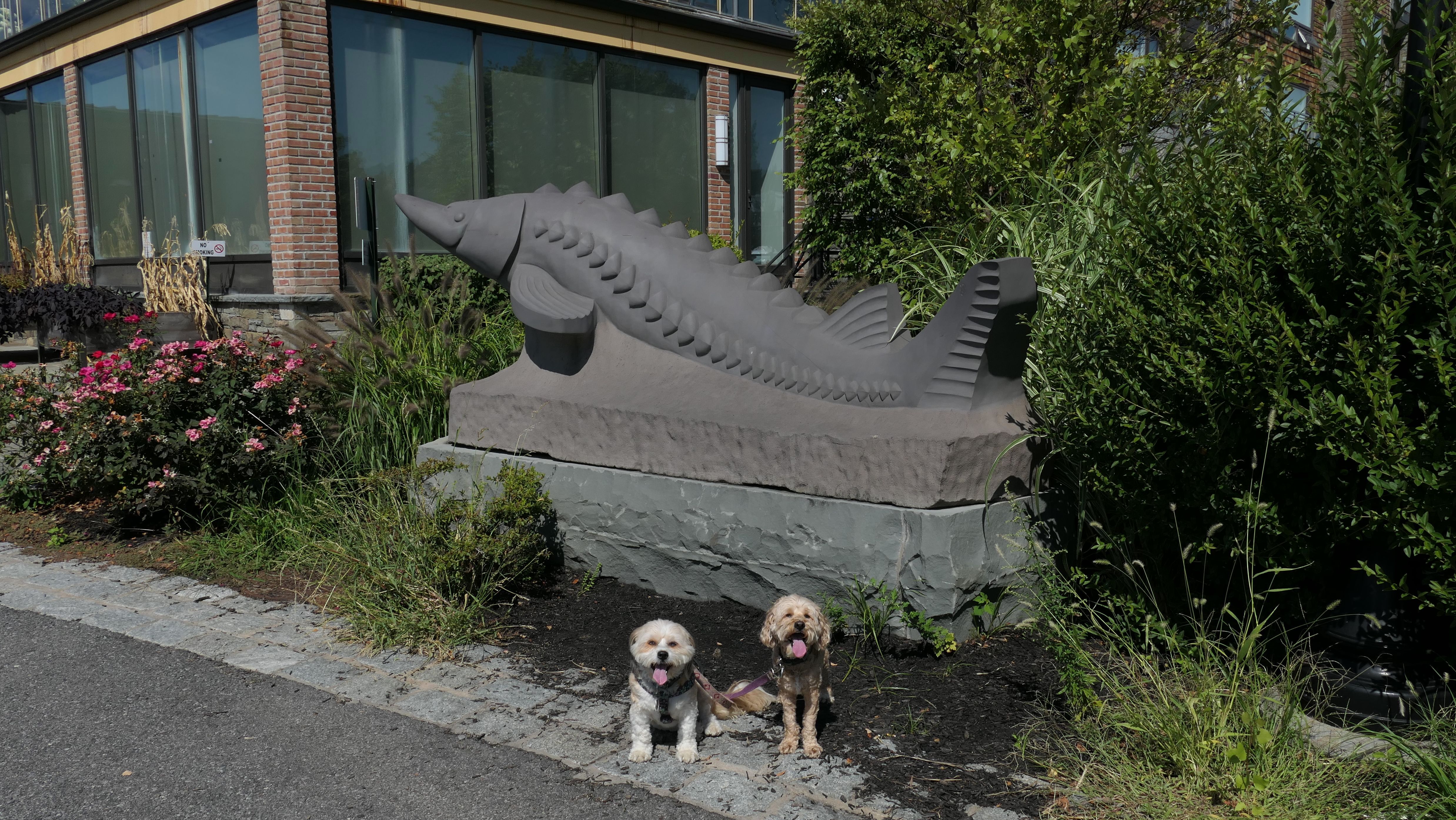 I was very surprised that dogs were allowed here because it is a cemetery, but there were "Pets Must Be Leashed" and "Pick Up After Your Pet" signs. The Sleepy Hollow Cemetery is a National Historic Site, so it is a tourist attraction. There were a few others walking their dogs on the grounds as well. My only knowledge of the "Legend of Sleepy Hollow "comes from that silly Fox TV show that was on a few years back, so I am not well versed on the historical significance of the place. The architecture of the buildings is unique, and the grounds are very well maintained. We also visited the Old Dutch Church of Sleepy Hollow which is situated in front of the cemetery, as well as the statue of the Headless Horseman which is just across the street.
