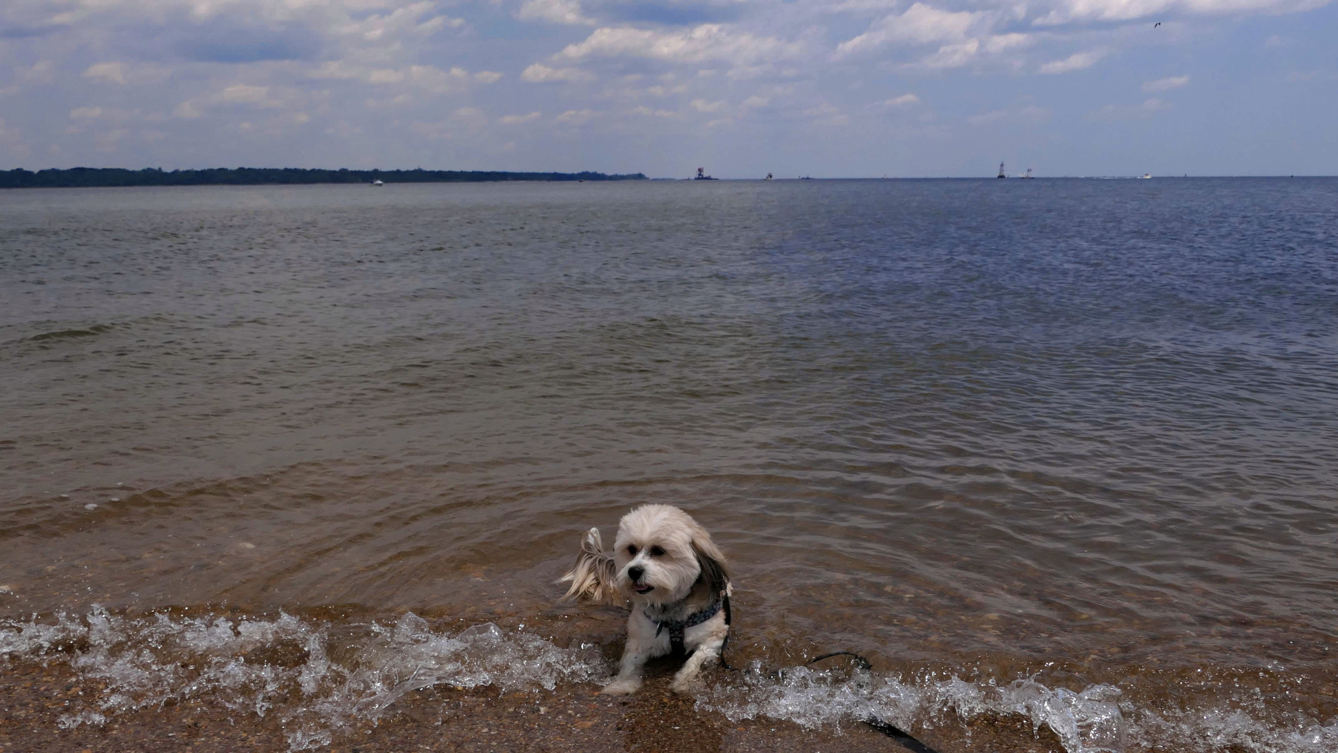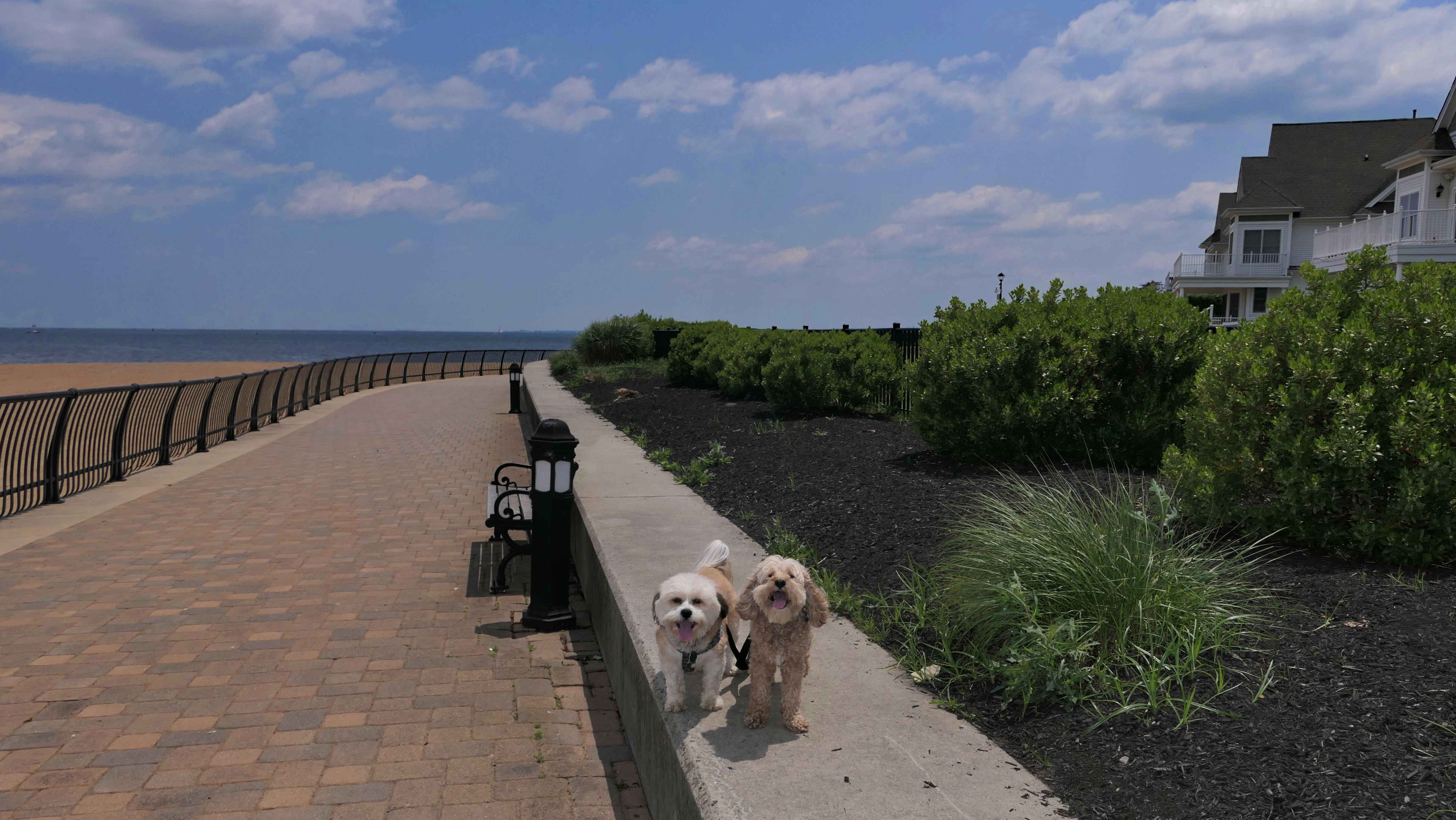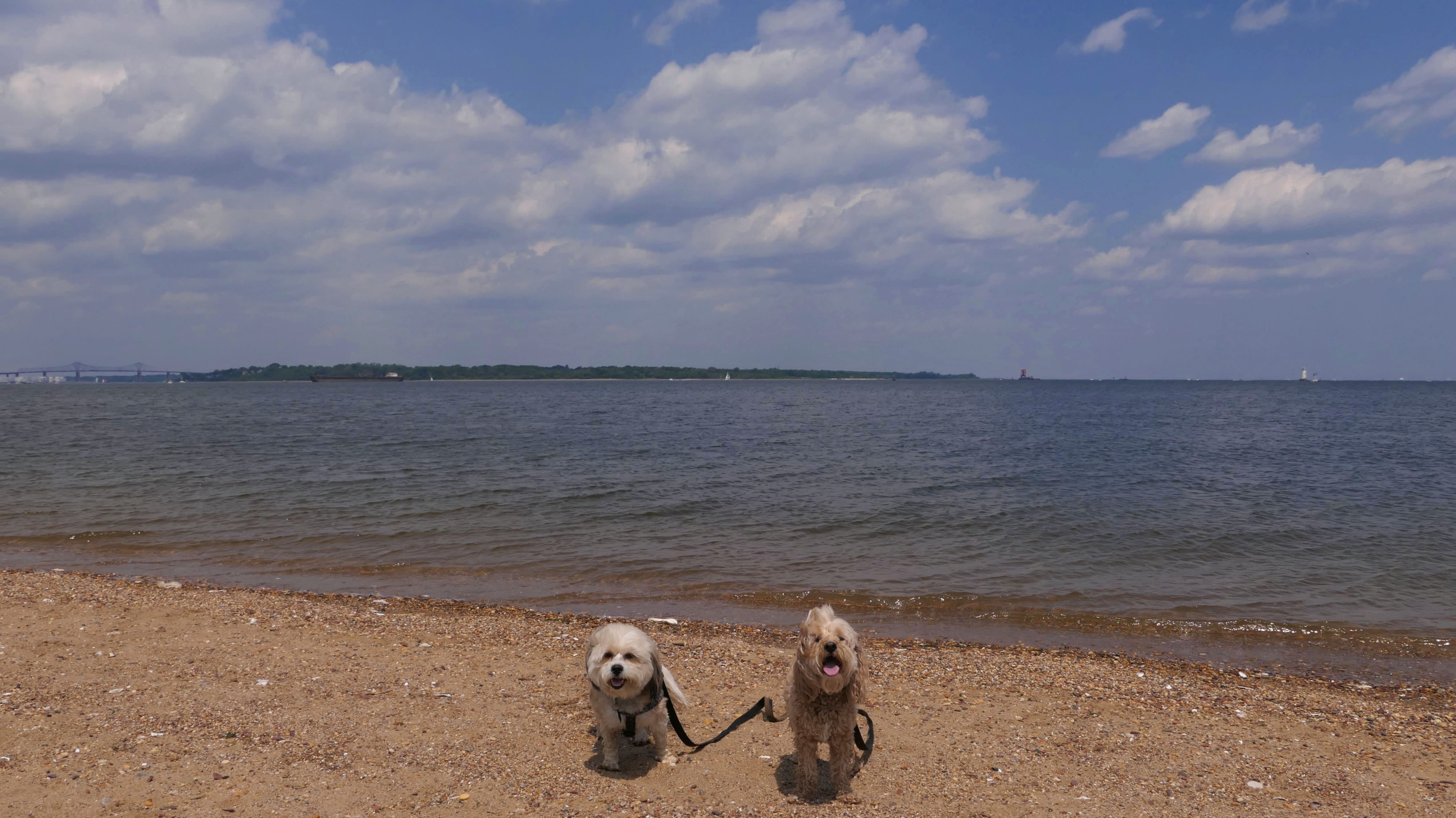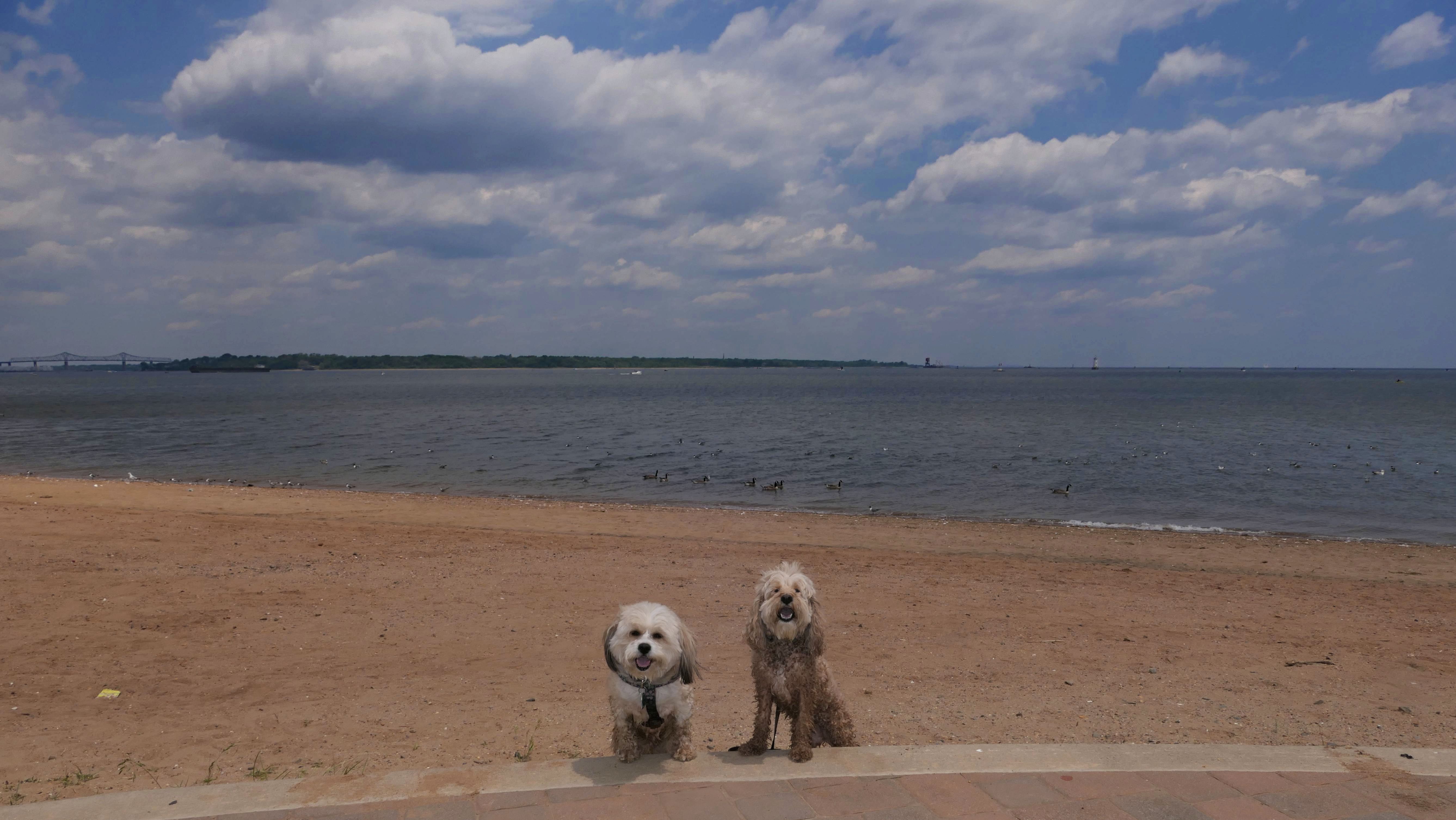 Here we have another dog friendly beach in New Jersey. This one is not quite as nice as Bayshore Waterfront Park in Middletown, but it still serves it's purpose of being a place where the dogs can cool off. There's a wide stone walking path that leads from the parking area to the beach. It connects to Raritan Bay Waterfront Park in Sayreville, which we also visited. There was a Food Truck Festival across the street from the parking area that we visited as well.