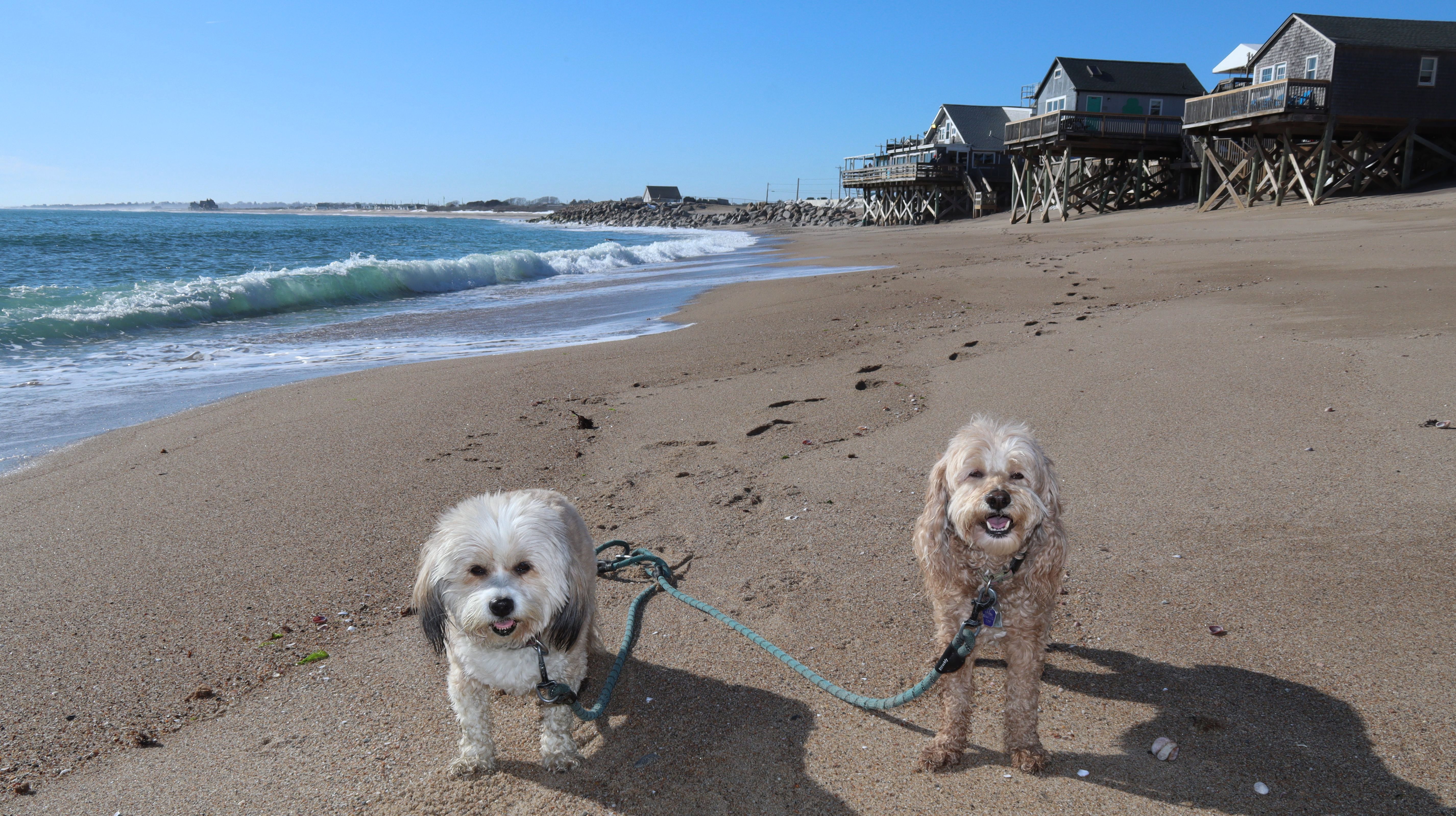 Last year we visited a beach on Christmas Day, so I thought maybe we could make this a tradition. It wasn't as warm this year, and this beach wasn't as nice as the one we went to last year. We didn't take that many photos, and some of the ones we did take didn't come out that well for various reasons...mostly because I forgot the good dog treats at home, and Mandy and Lexi weren't as cooperative posing with the emergency treats I keep in the car. (They are so spoiled!) After walking down the beach, we wound up walking up Cards Pond Road to the Theatre By-The-Sea, before heading back to the car and calling it a day.