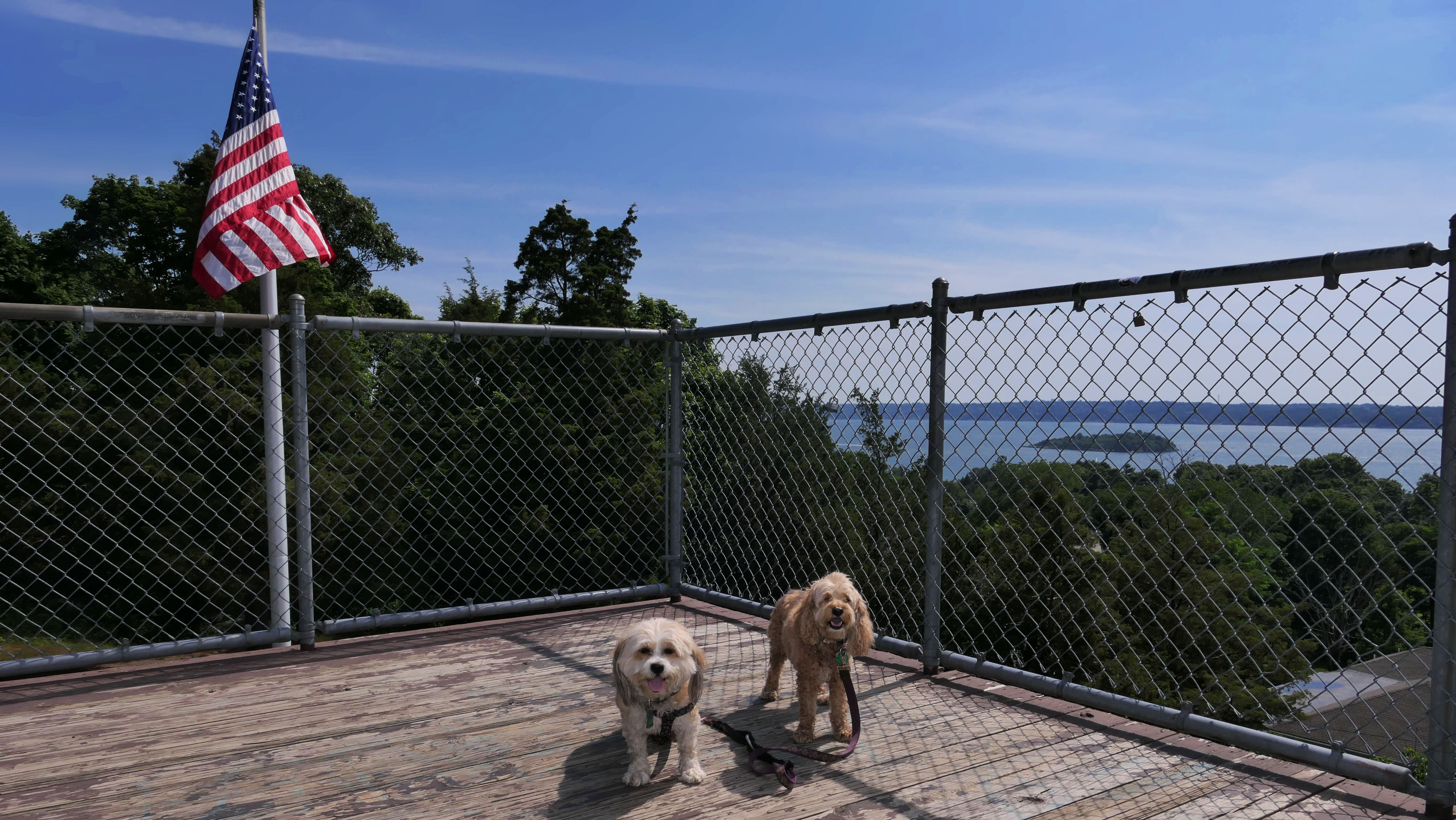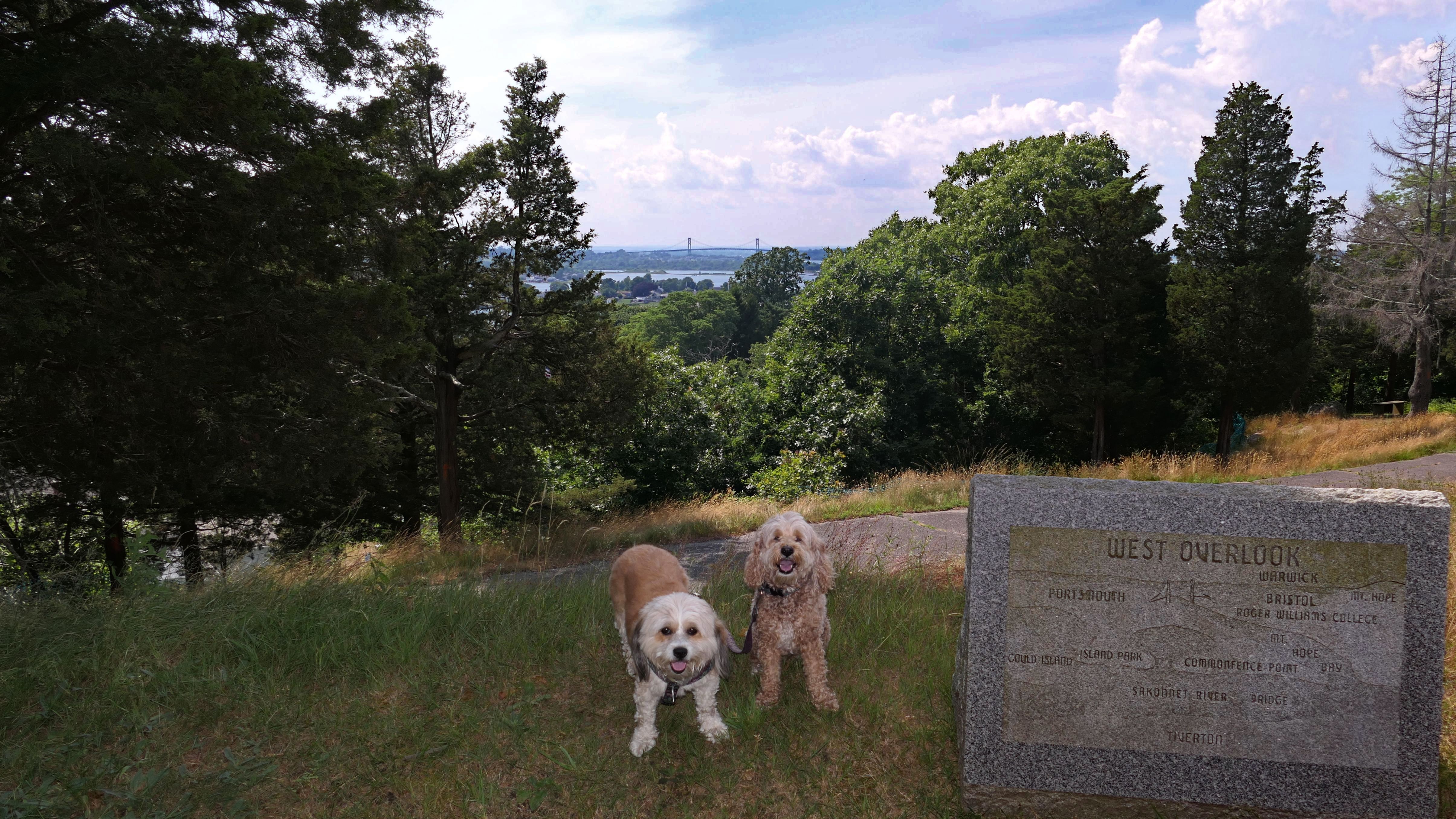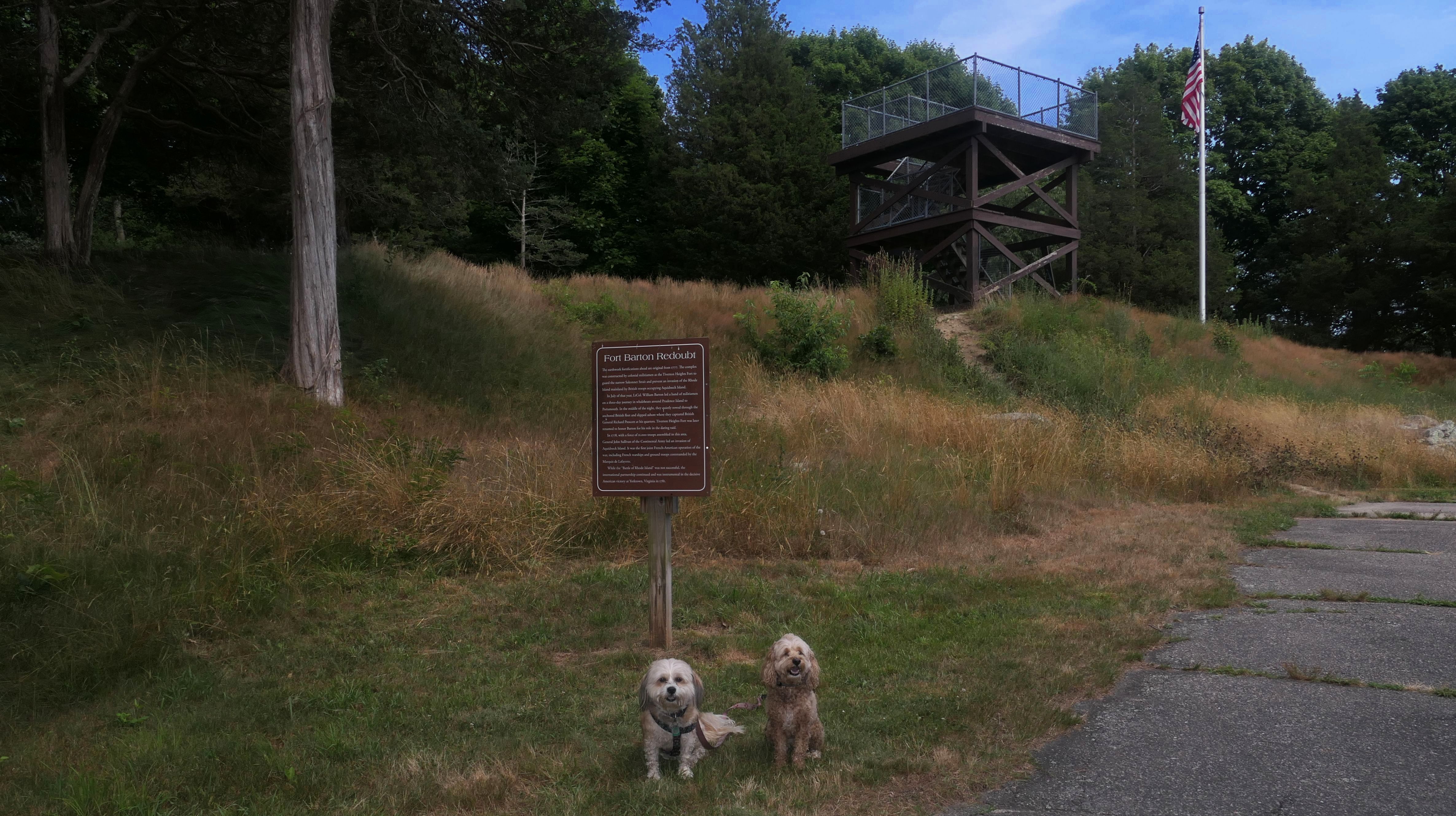 I had a difficult finding a place to take the dogs in Tiverton. There's a lot of waterfront, but none that I could find that let me take my dogs. We wound up at historic Fort Barton. The fort was originally named the Tiverton Heights Fort and dates back to 1777. It was renamed for Lt. Col. William Barton, who led a successful raid against British forces near here during the Revolutionary War. We climbed to the top of the observation deck and took in the views from the top. There are a series of trails behind the observation deck, but we didn't hike them since we had already done a long hike earlier in the day.