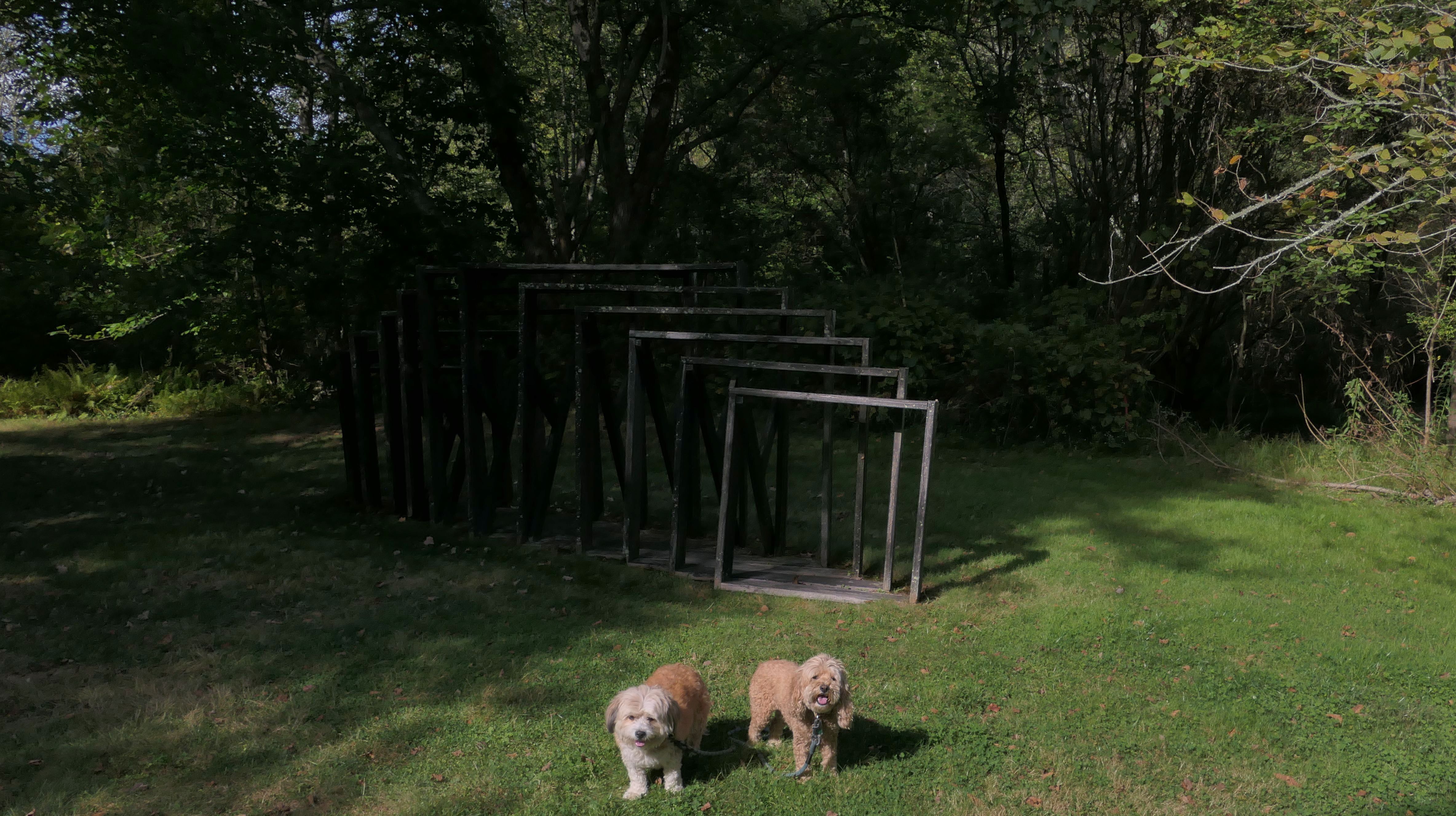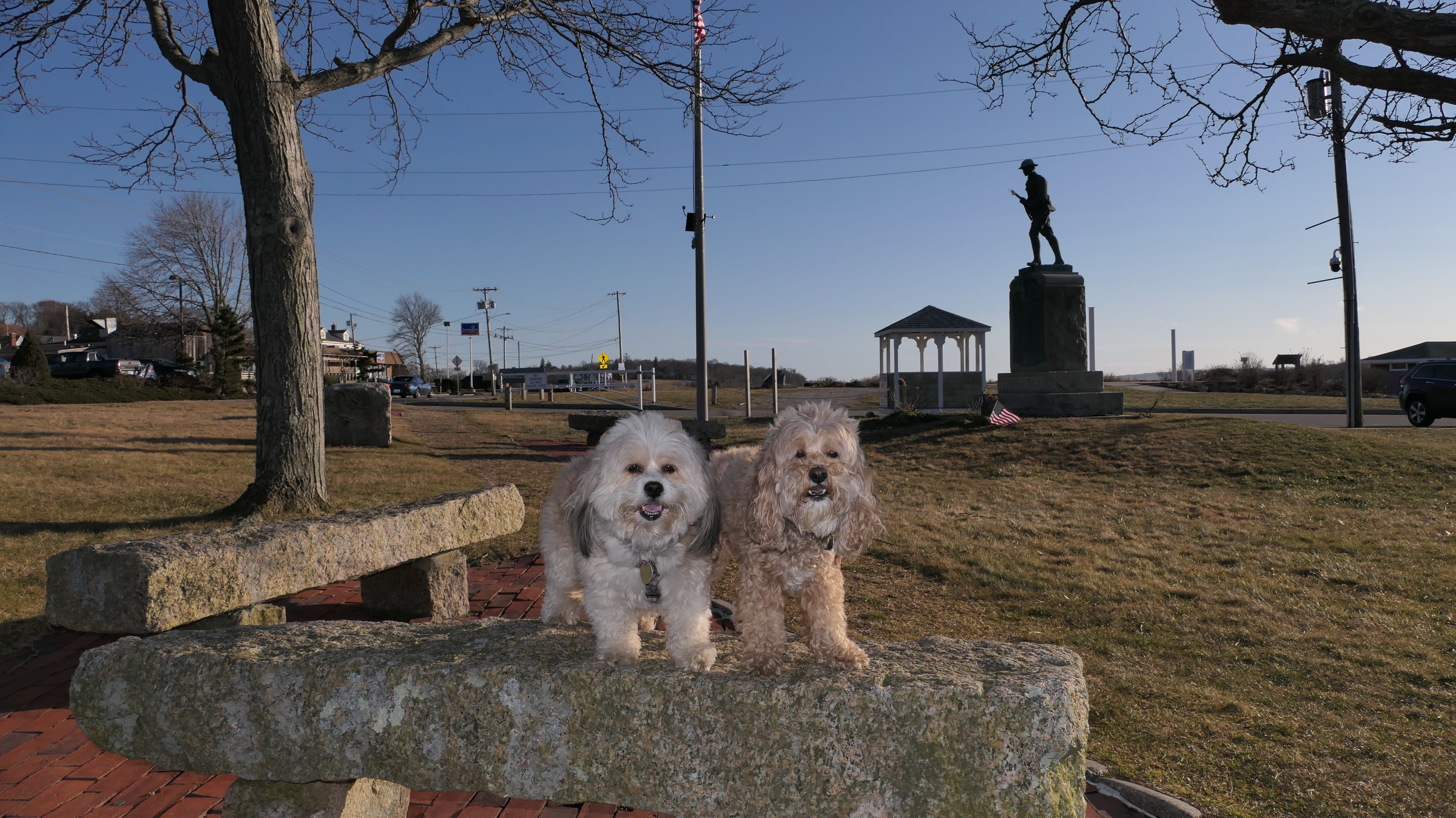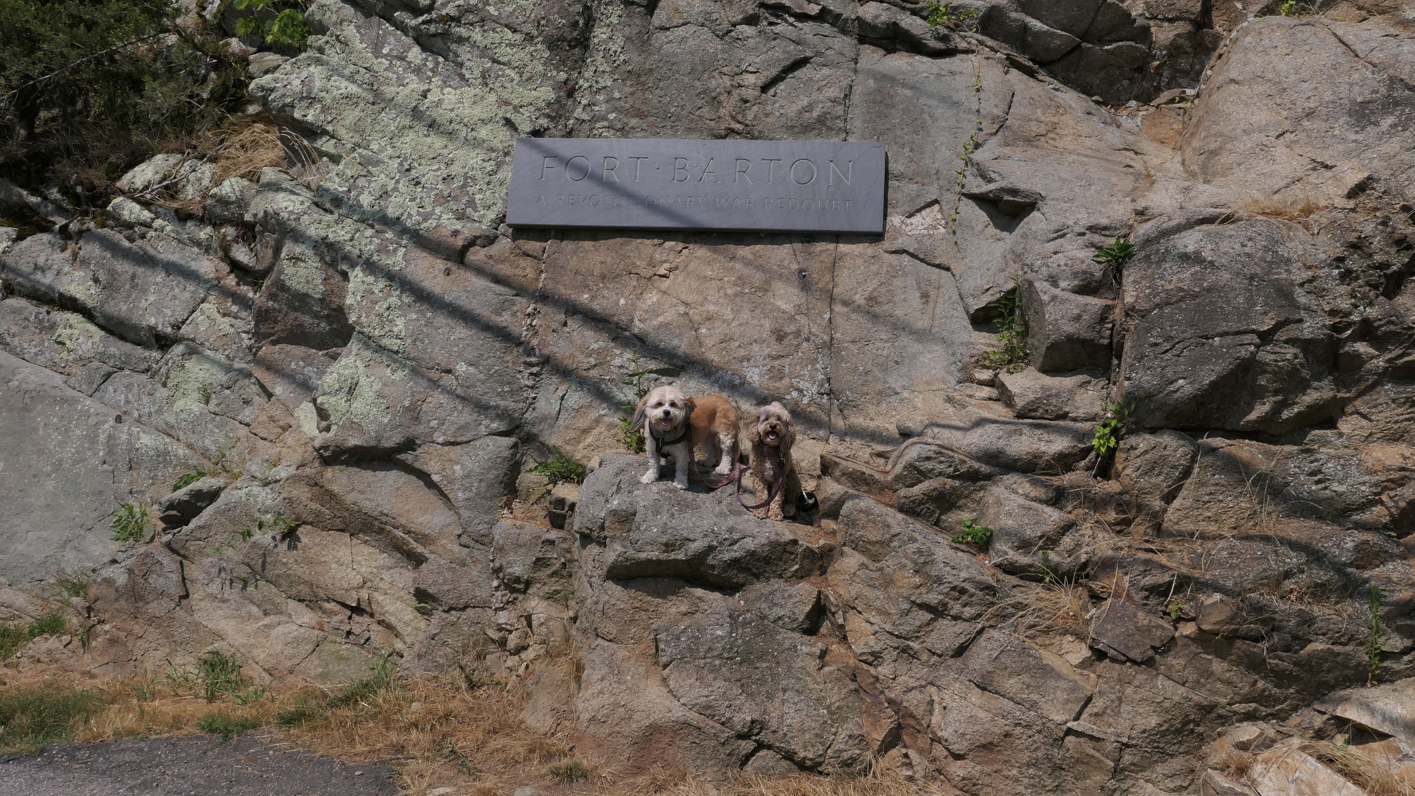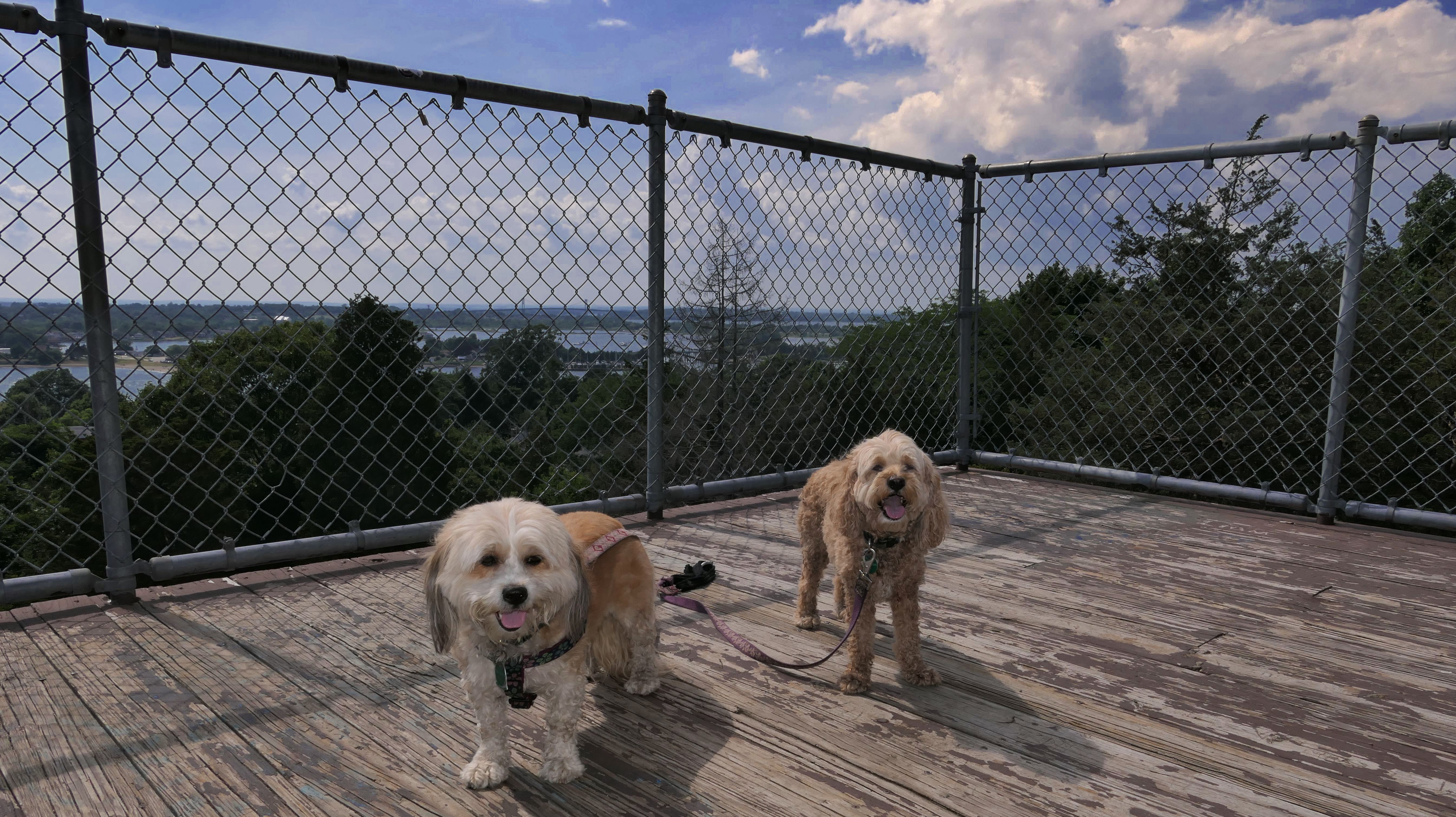 I had a difficult finding a place to take the dogs in Tiverton. There's a lot of waterfront, but none that I could find that let me take my dogs. We wound up at historic Fort Barton. The fort was originally named the Tiverton Heights Fort and dates back to 1777. It was renamed for Lt. Col. William Barton, who led a successful raid against British forces near here during the Revolutionary War. We climbed to the top of the observation deck and took in the views from the top. There are a series of trails behind the observation deck, but we didn't hike them since we had already done a long hike earlier in the day.