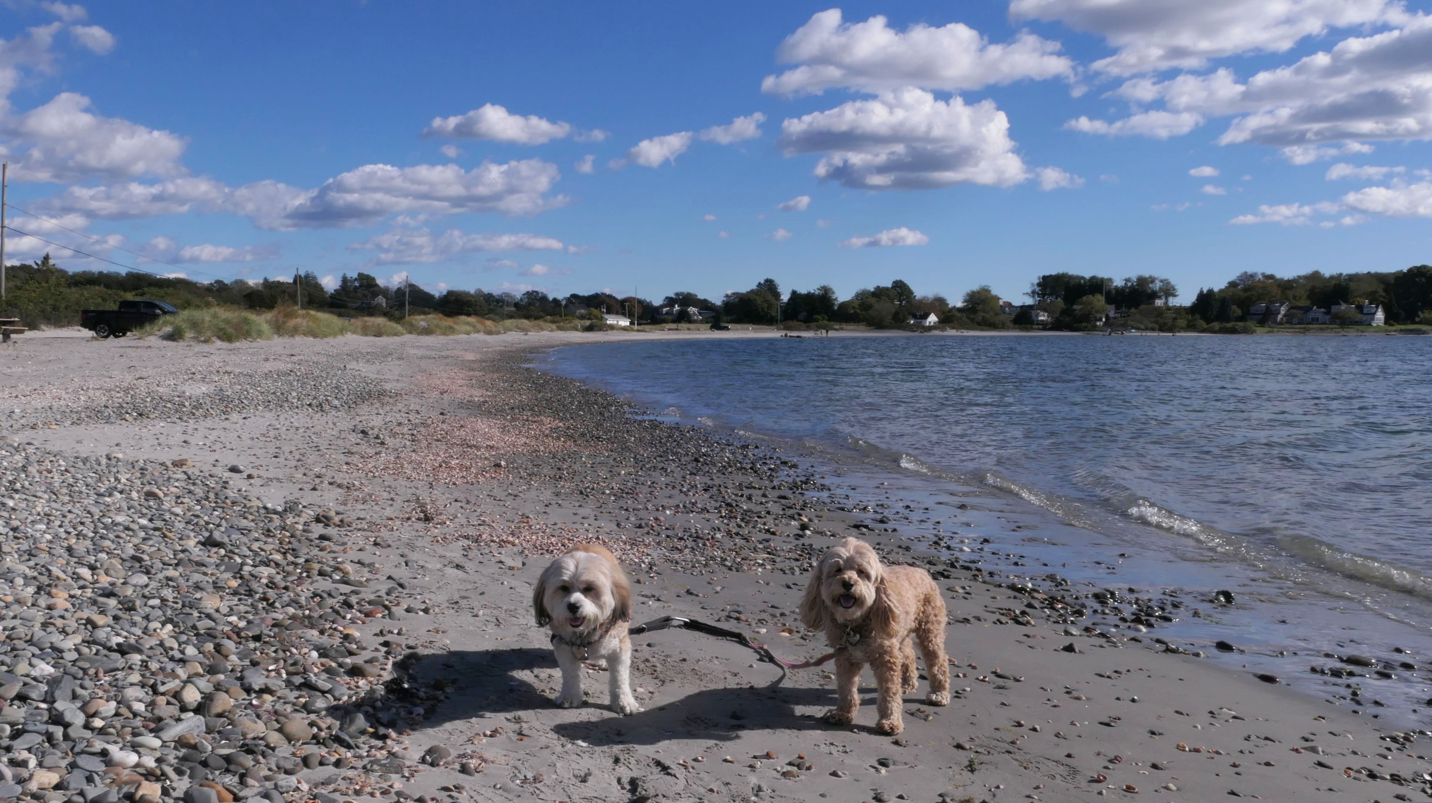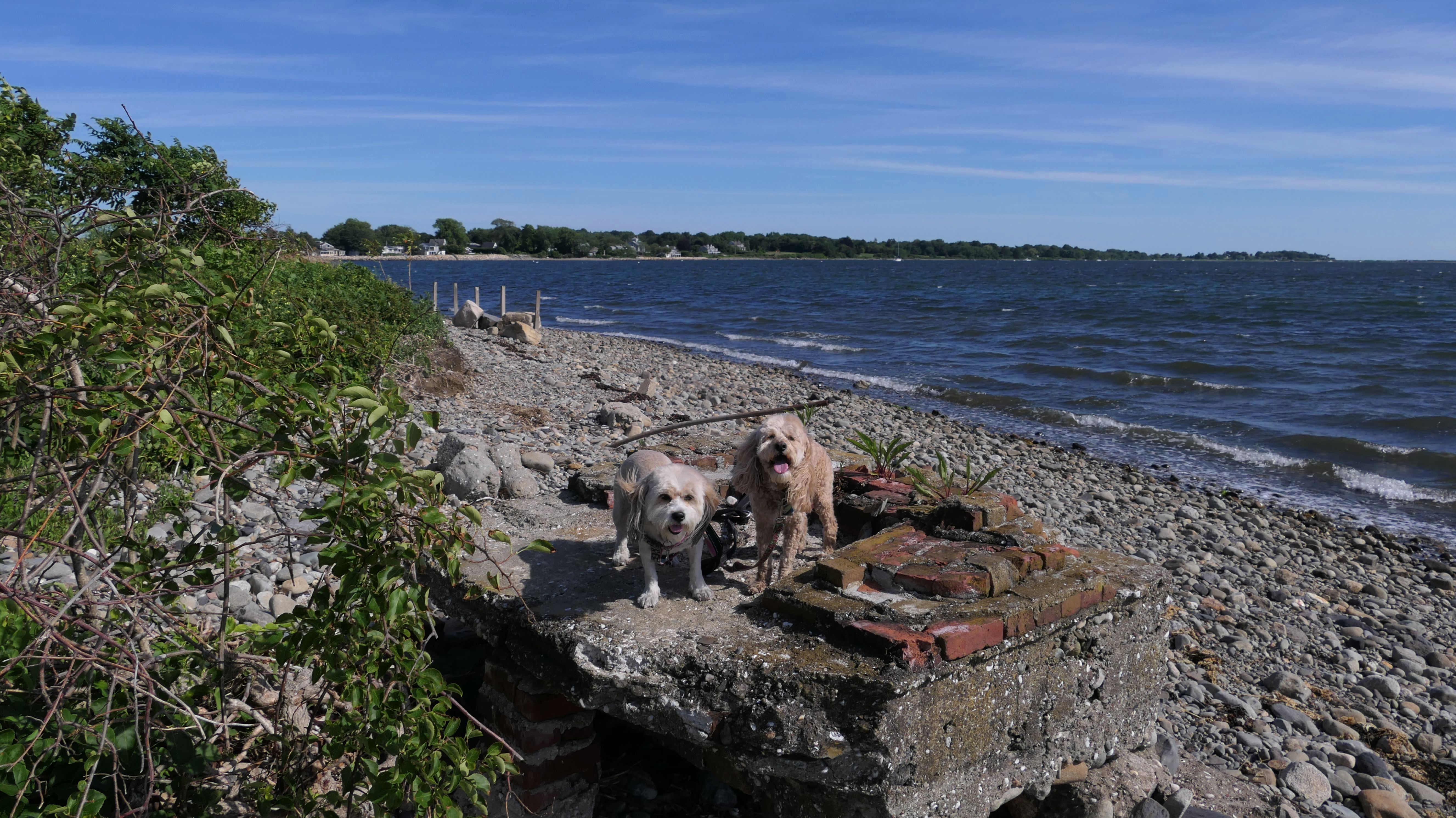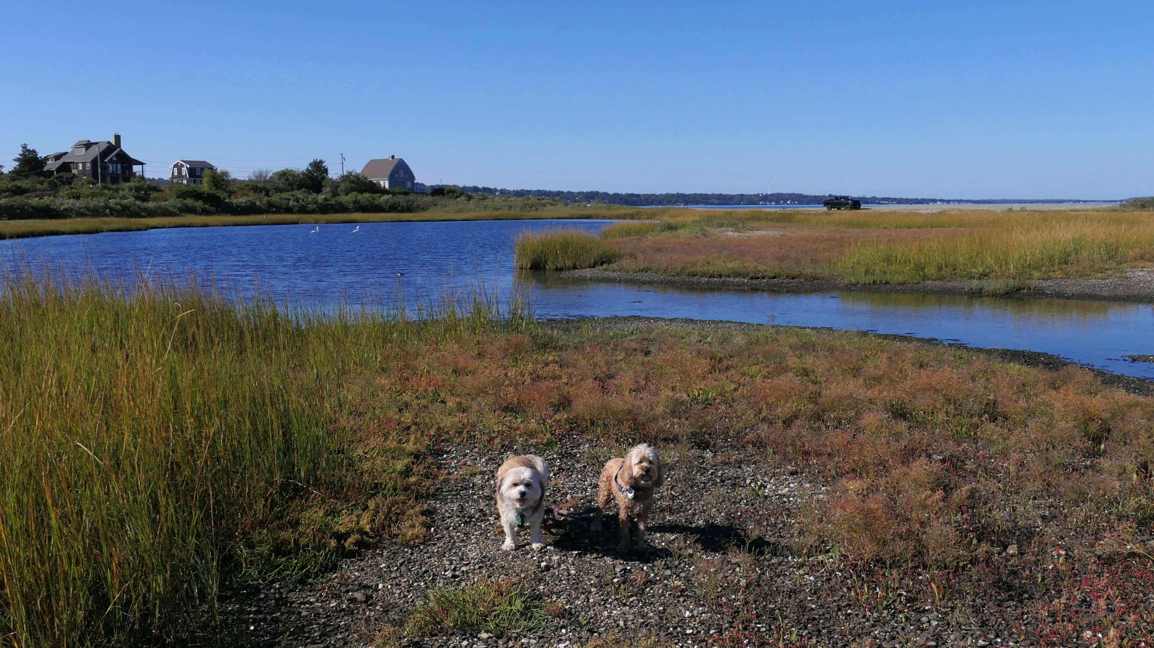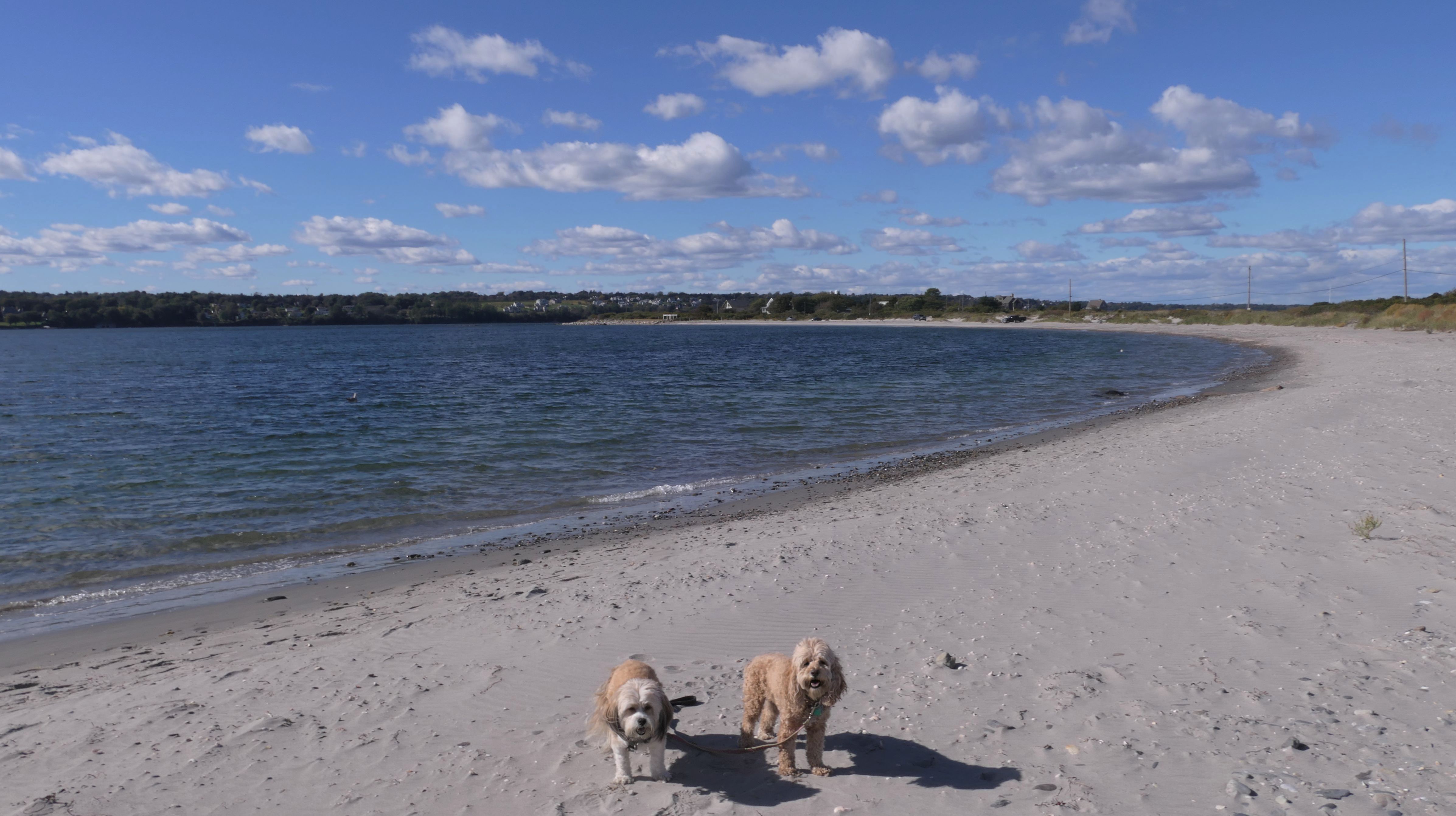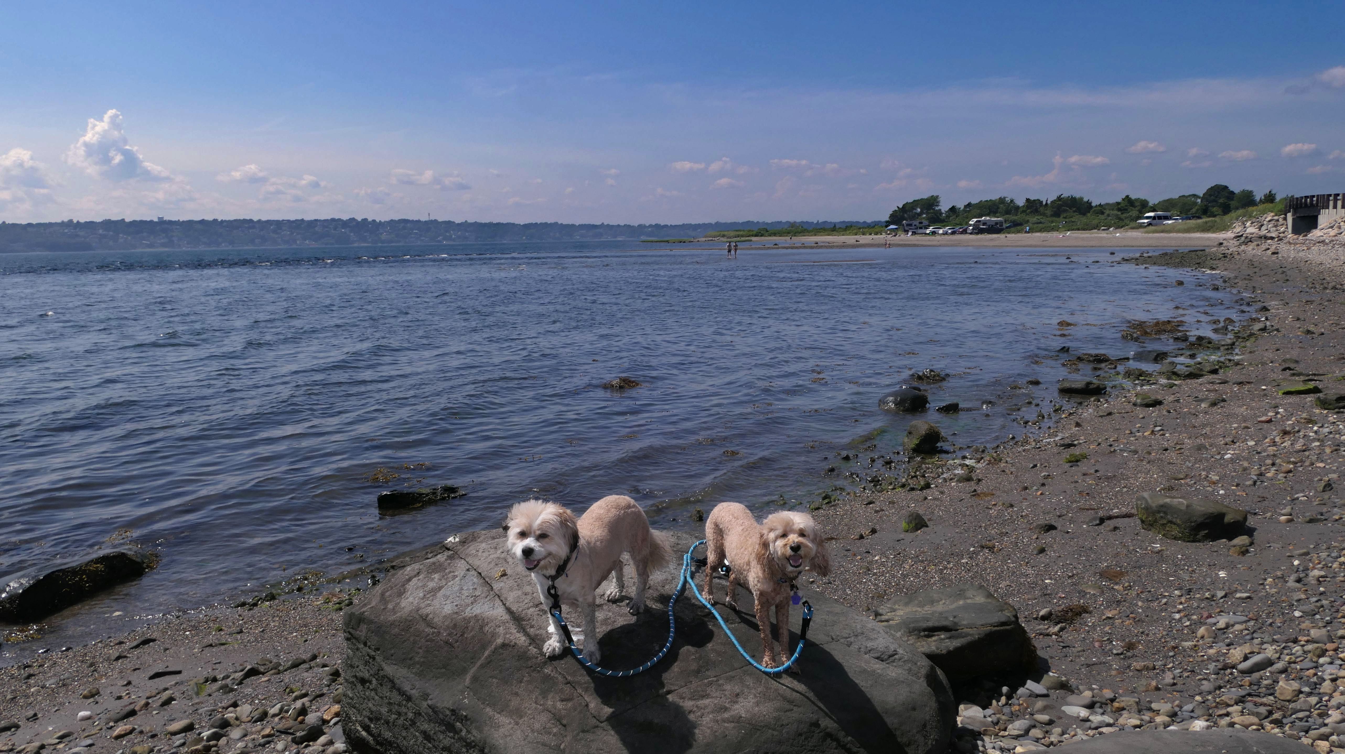 First of all, the rules for dogs here are quite confusing. The town of Tiverton's website indicates that leashed dogs are allowed off-season, but it isn't specific as to what time of the year constitutes "off-season". They charge for parking between Memorial and Labor Day, but based on the signage at the actual beach, dogs aren't allowed until Columbus Day and only allowed on off-beach areas. But this wasn't the actual beach. I believe we were at the conservation area, but the whole thing is quite confusing. There were five other dogs here when we arrived, so we just went with it! At any rate, we walked the 1.2 mile trail outlined in the All-Trails app, but it really wasn't a trail. It was more of a path along a rocky road at first, and then just along side the shore. It was okay, but this is far from the best "beachy" area we visited in Rhode Island. Still, it was a nice day, and the dogs enjoyed wading into the water.