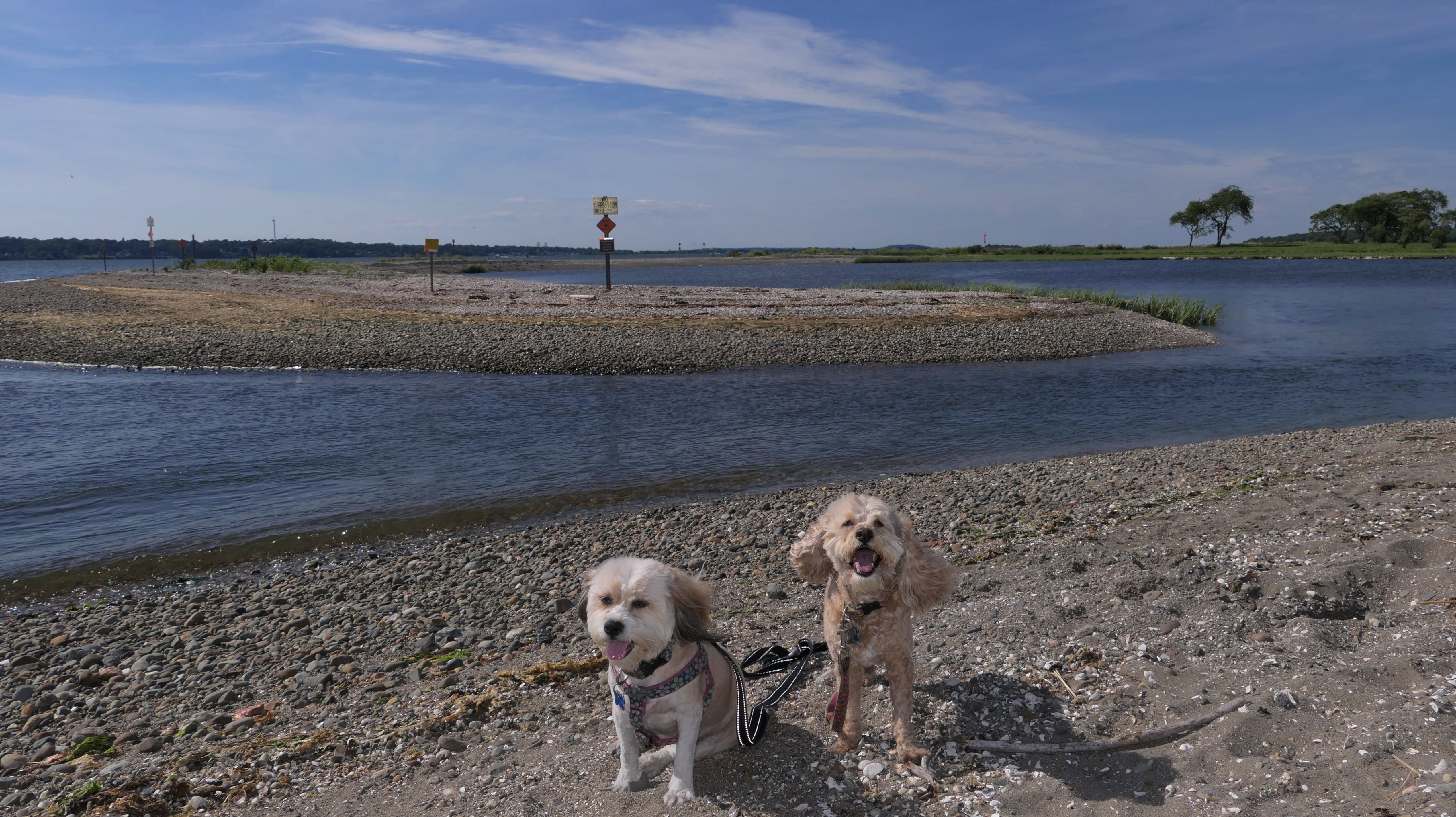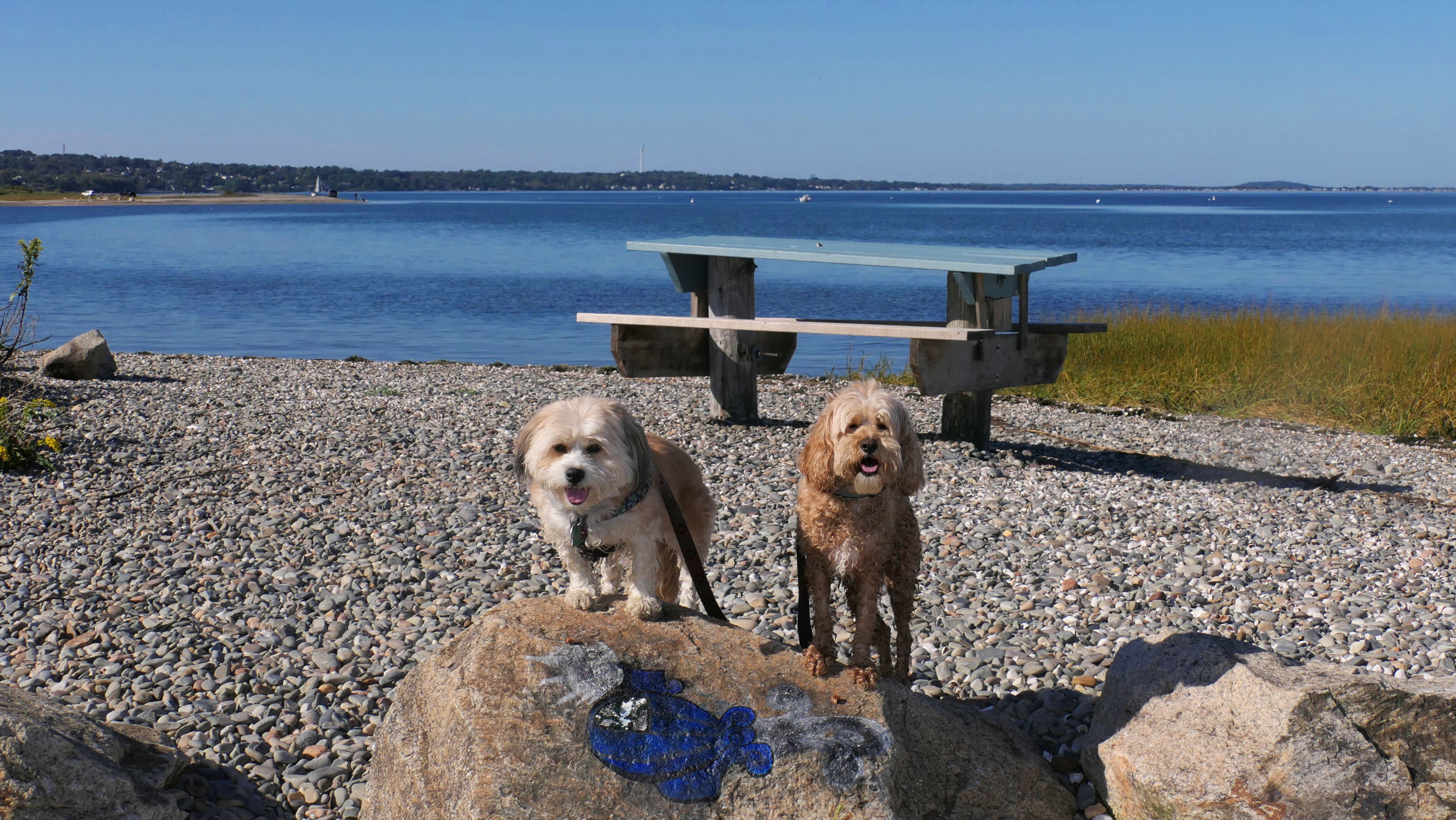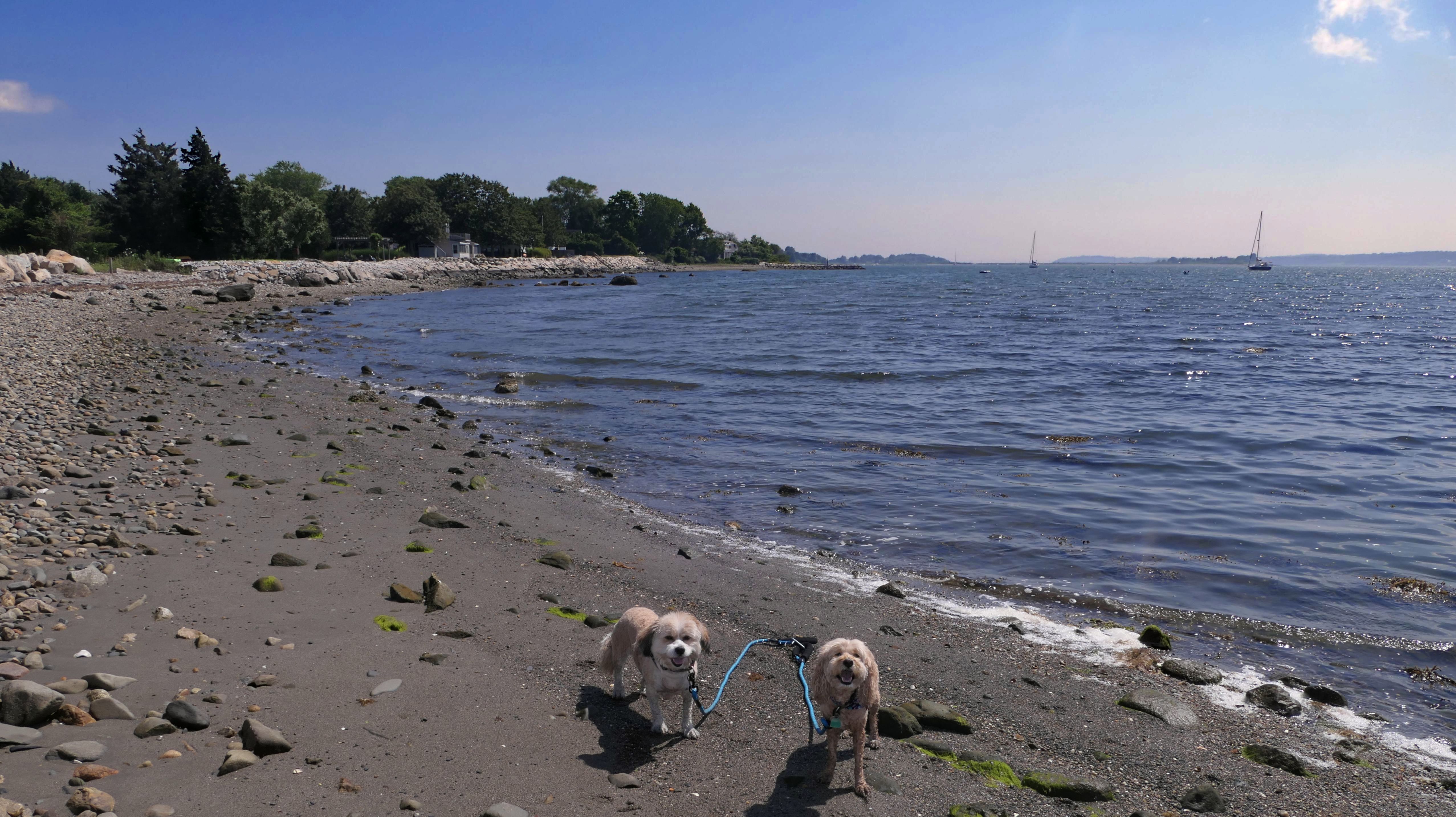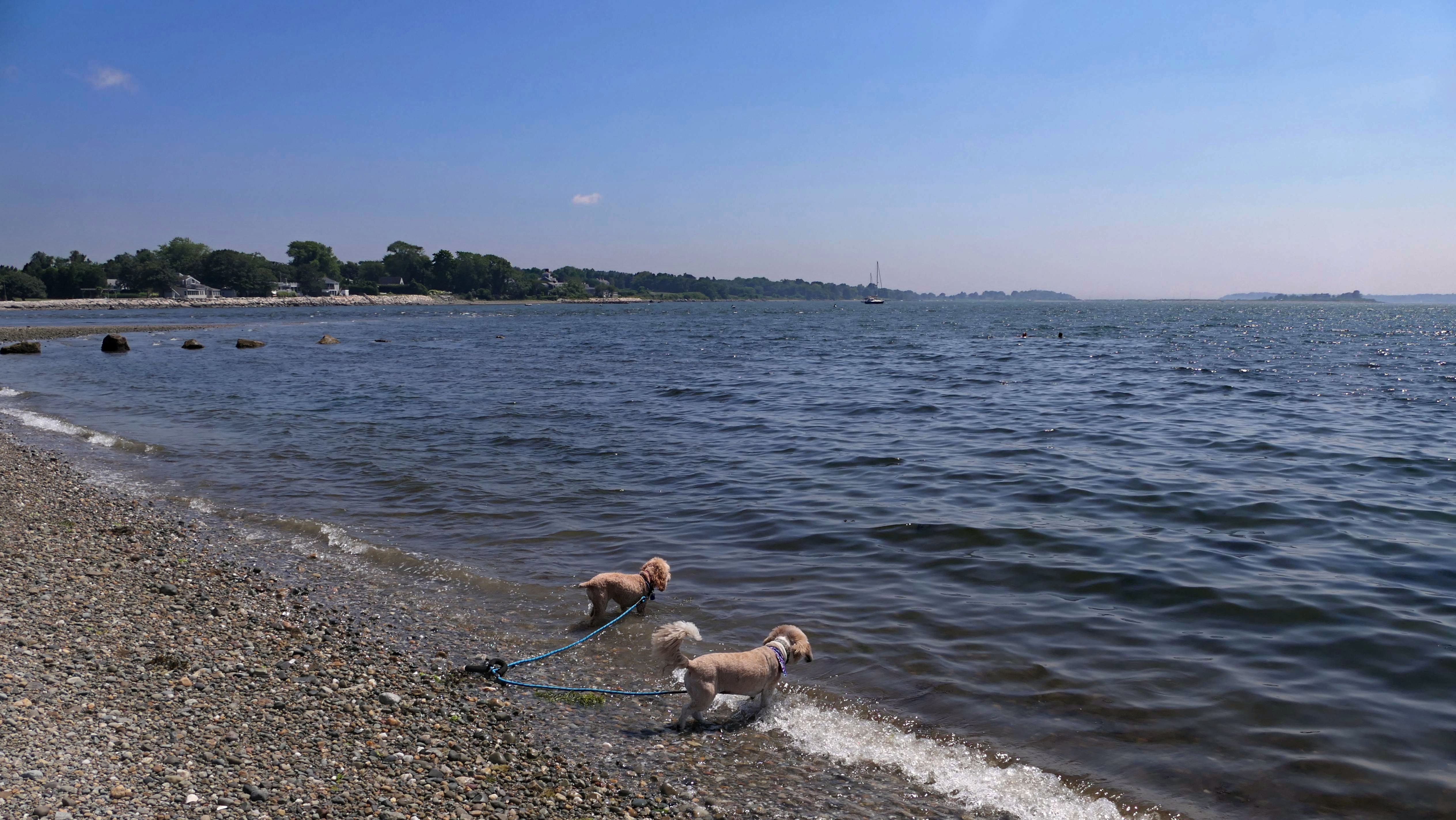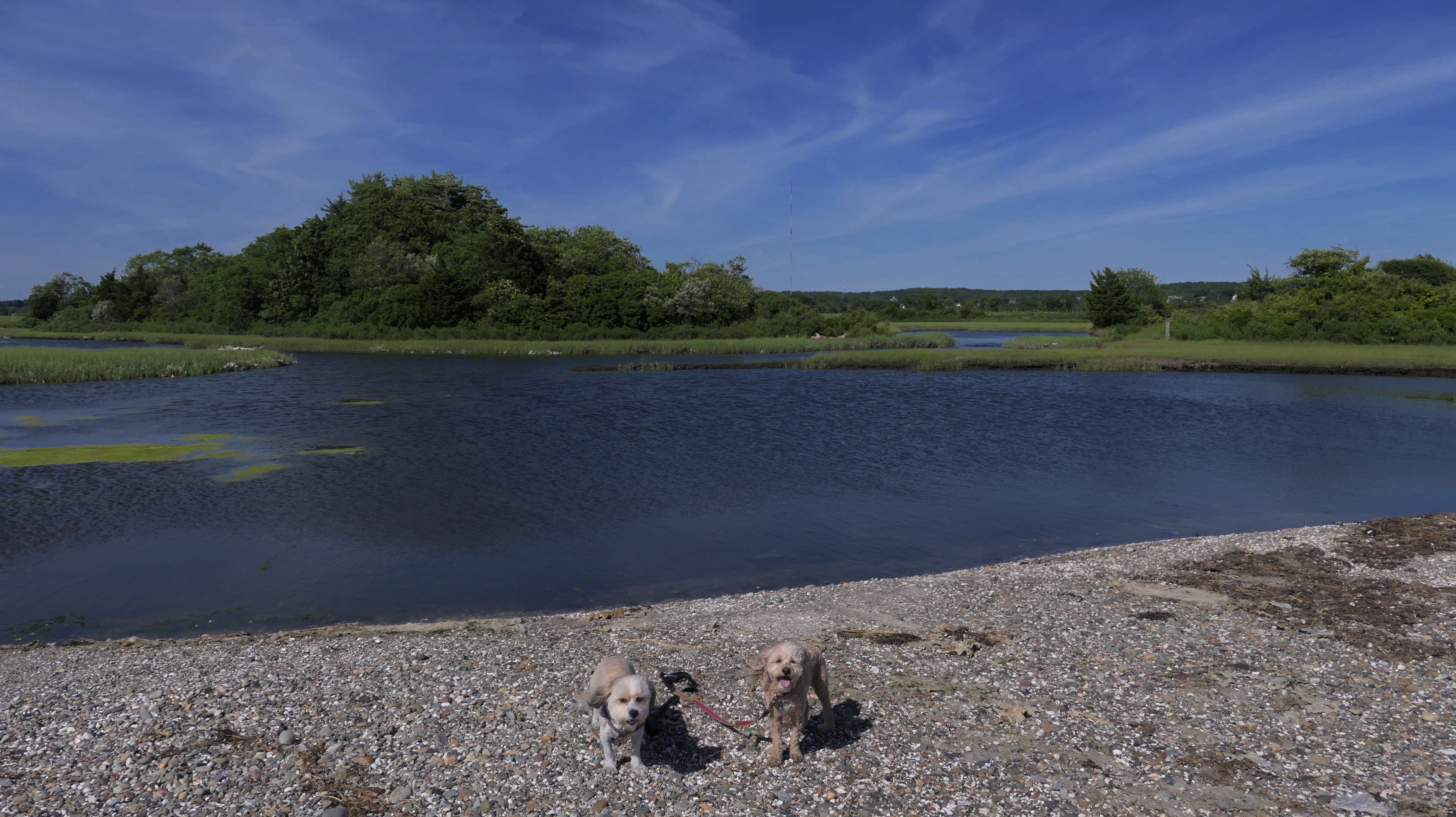 First of all, the rules for dogs here are quite confusing. The town of Tiverton's website indicates that leashed dogs are allowed off-season, but it isn't specific as to what time of the year constitutes "off-season". They charge for parking between Memorial and Labor Day, but based on the signage at the actual beach, dogs aren't allowed until Columbus Day and only allowed on off-beach areas. But this wasn't the actual beach. I believe we were at the conservation area, but the whole thing is quite confusing. There were five other dogs here when we arrived, so we just went with it! At any rate, we walked the 1.2 mile trail outlined in the All-Trails app, but it really wasn't a trail. It was more of a path along a rocky road at first, and then just along side the shore. It was okay, but this is far from the best "beachy" area we visited in Rhode Island. Still, it was a nice day, and the dogs enjoyed wading into the water.