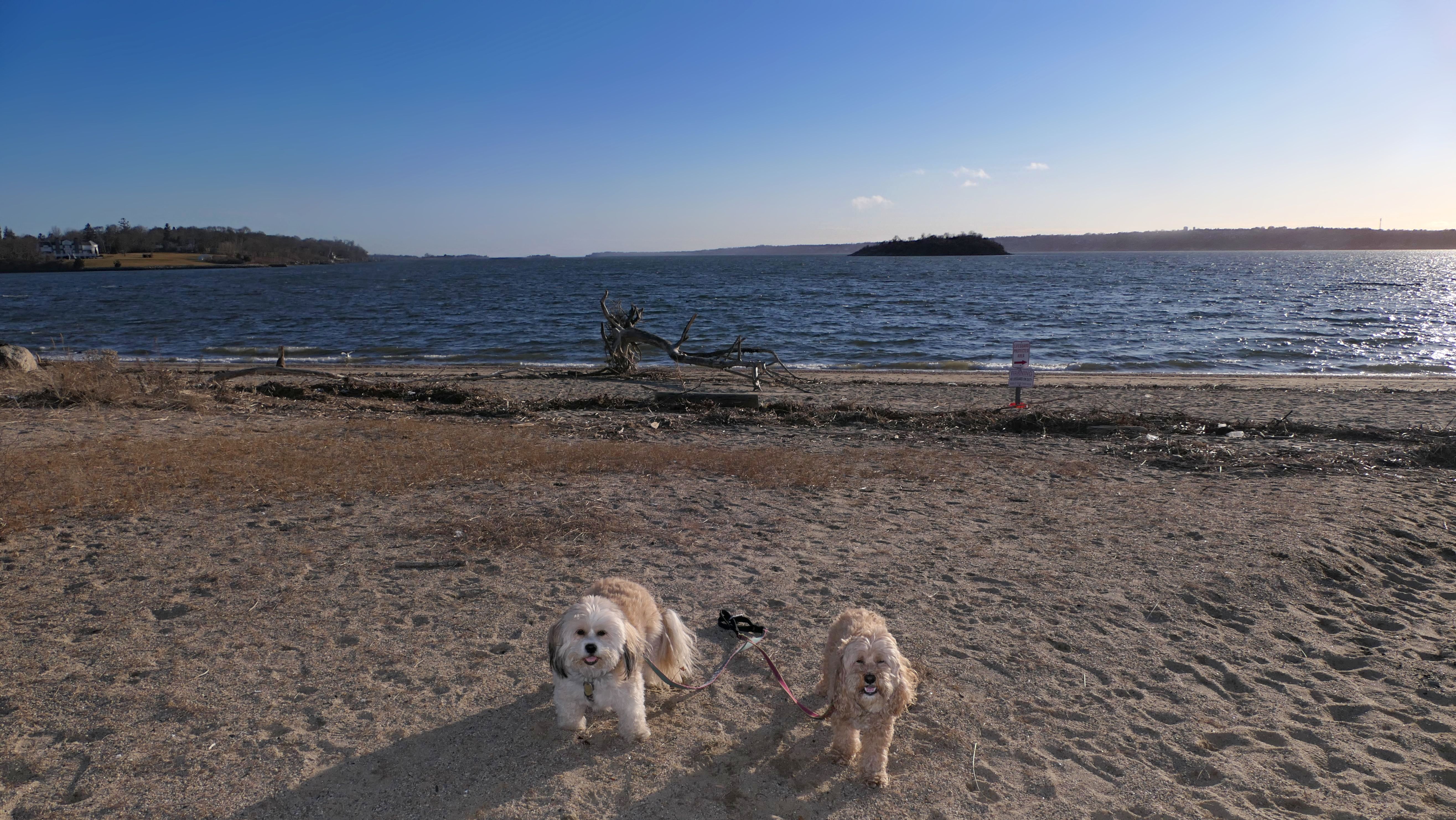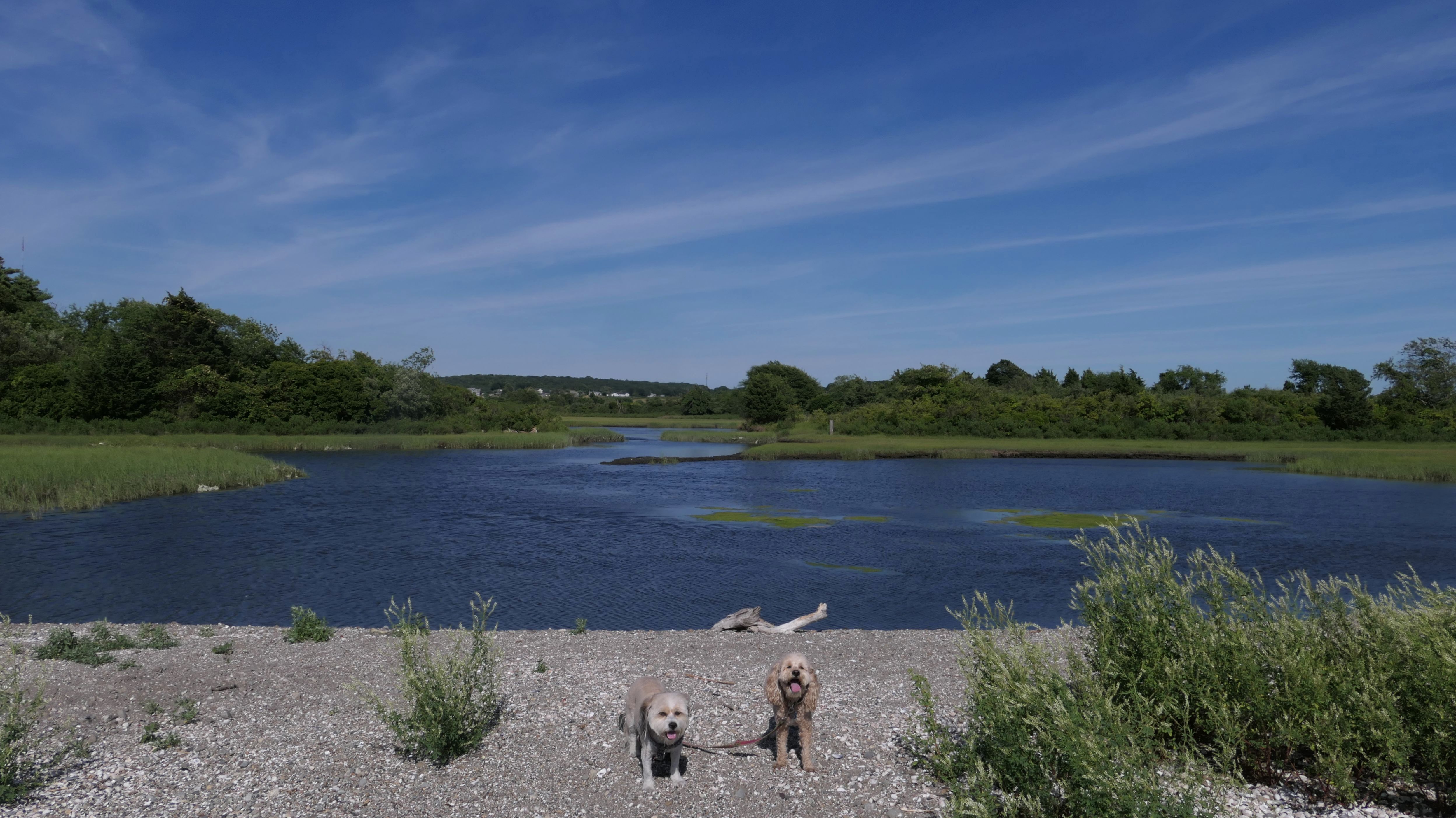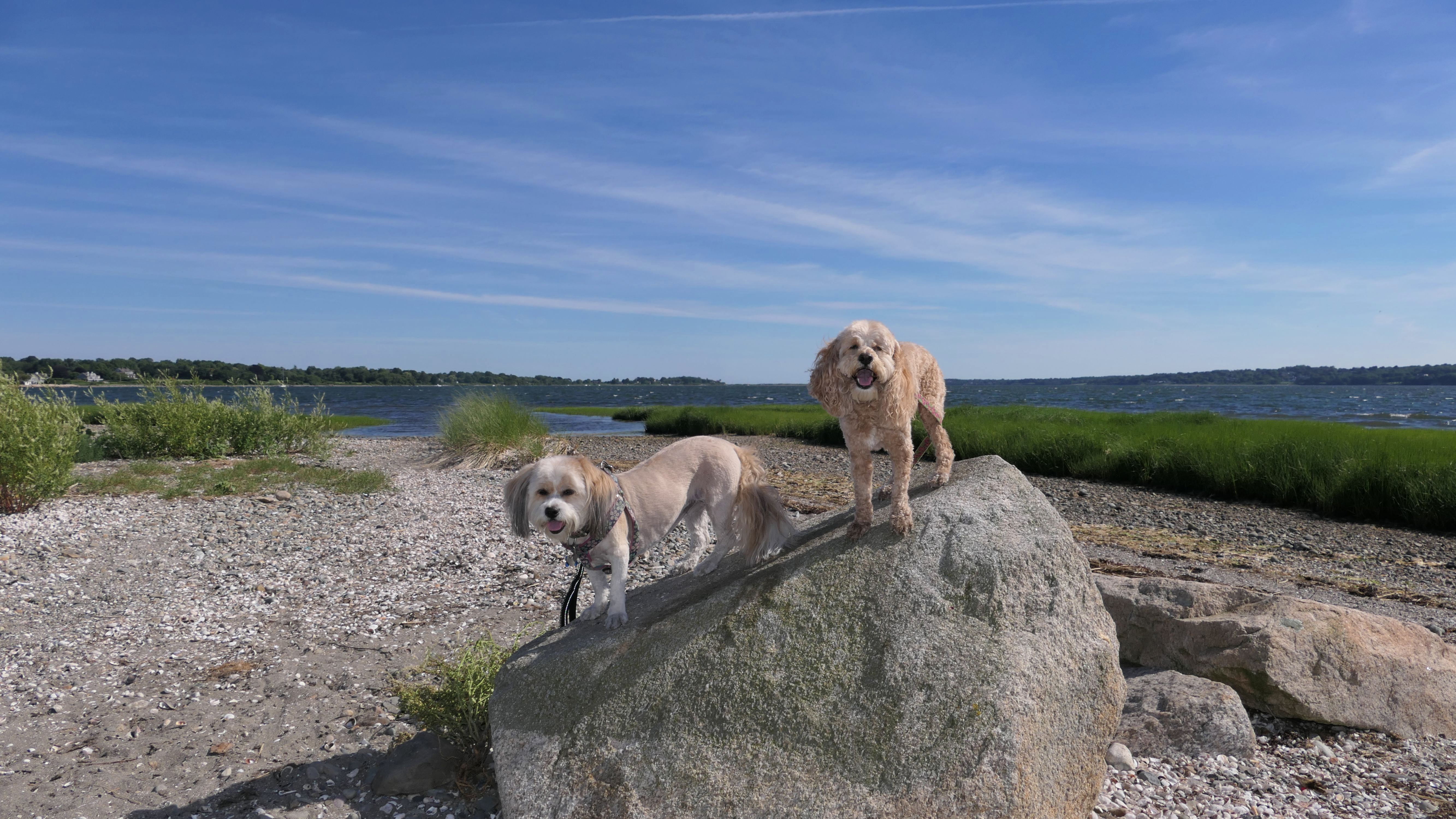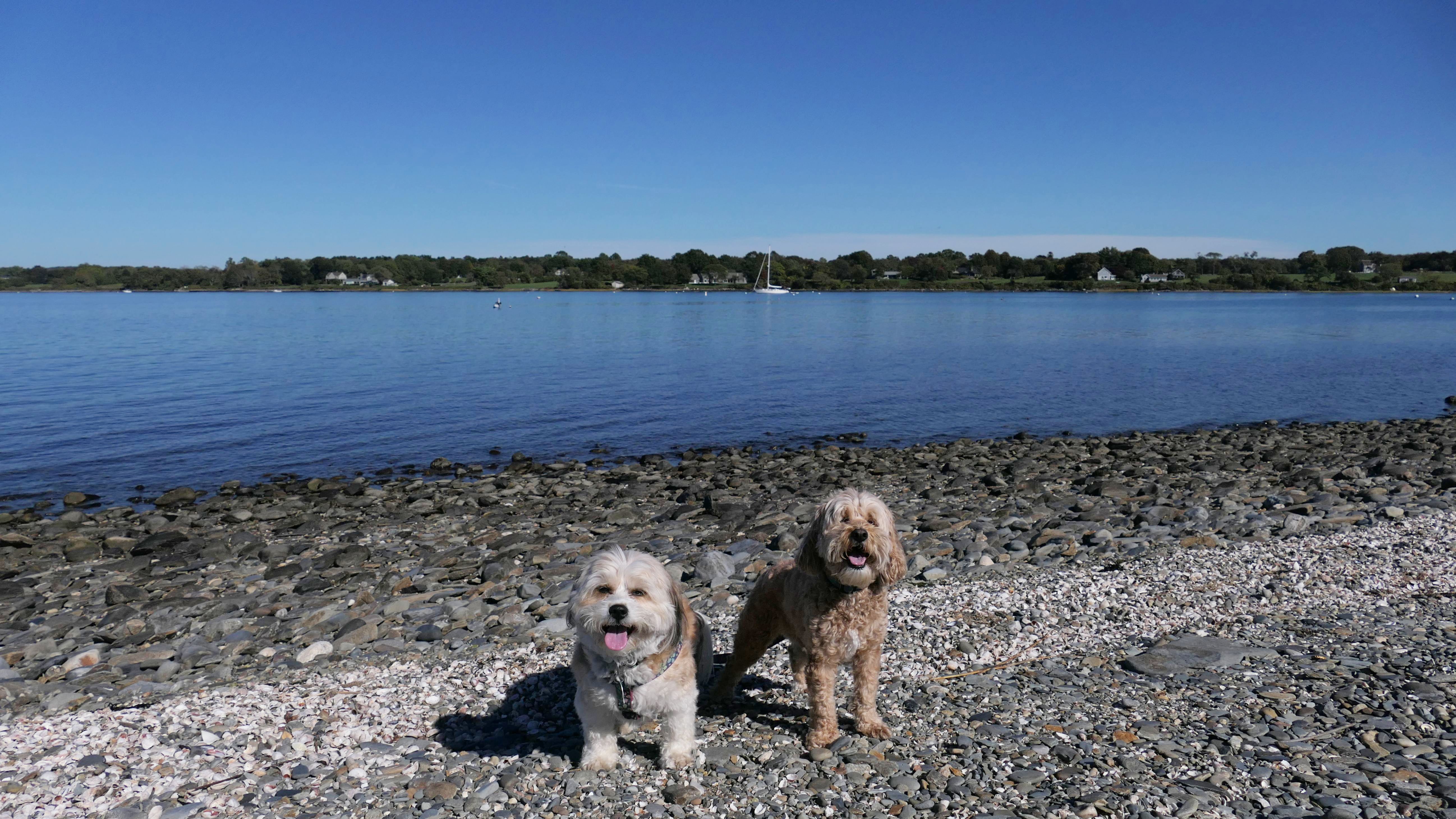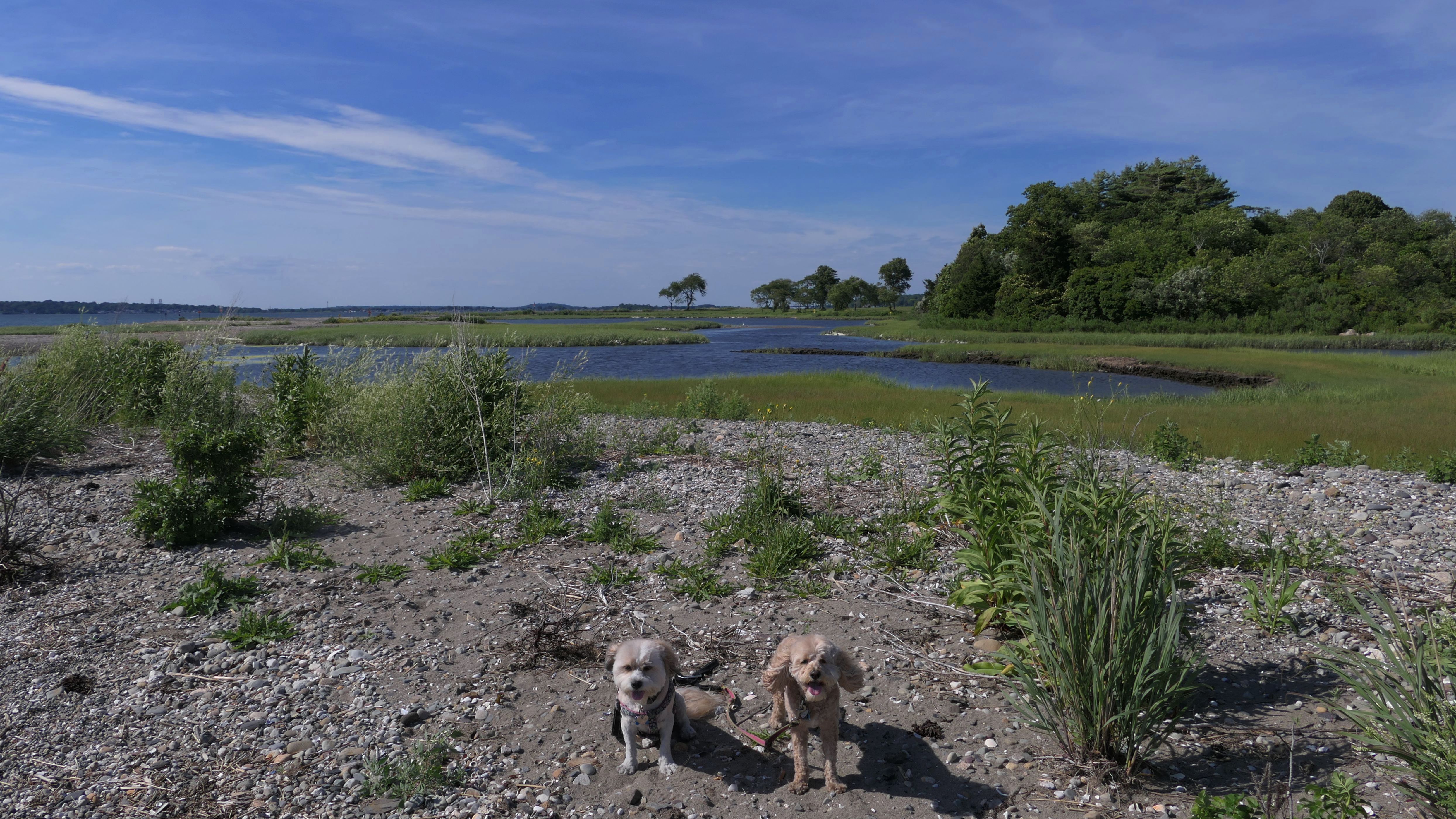 First of all, the rules for dogs here are quite confusing. The town of Tiverton's website indicates that leashed dogs are allowed off-season, but it isn't specific as to what time of the year constitutes "off-season". They charge for parking between Memorial and Labor Day, but based on the signage at the actual beach, dogs aren't allowed until Columbus Day and only allowed on off-beach areas. But this wasn't the actual beach. I believe we were at the conservation area, but the whole thing is quite confusing. There were five other dogs here when we arrived, so we just went with it! At any rate, we walked the 1.2 mile trail outlined in the All-Trails app, but it really wasn't a trail. It was more of a path along a rocky road at first, and then just along side the shore. It was okay, but this is far from the best "beachy" area we visited in Rhode Island. Still, it was a nice day, and the dogs enjoyed wading into the water.